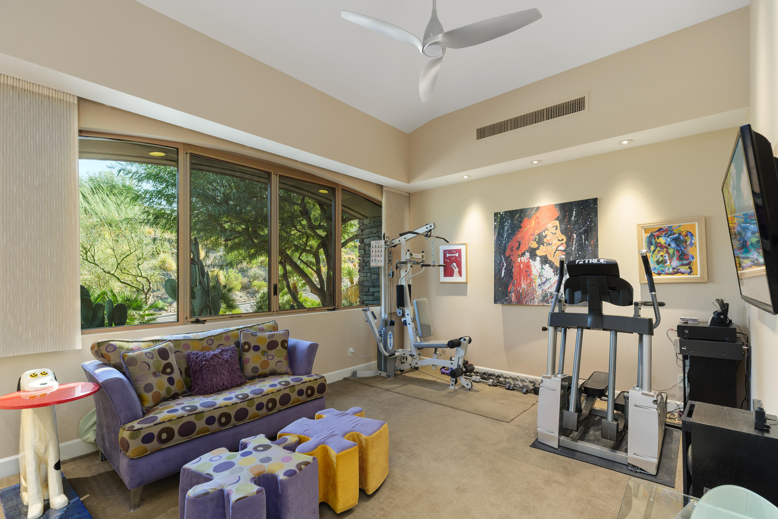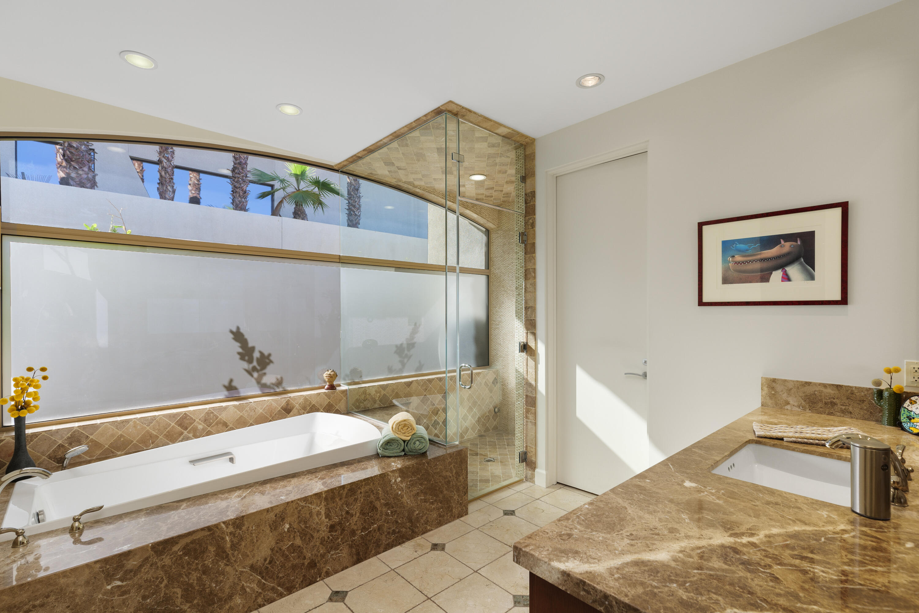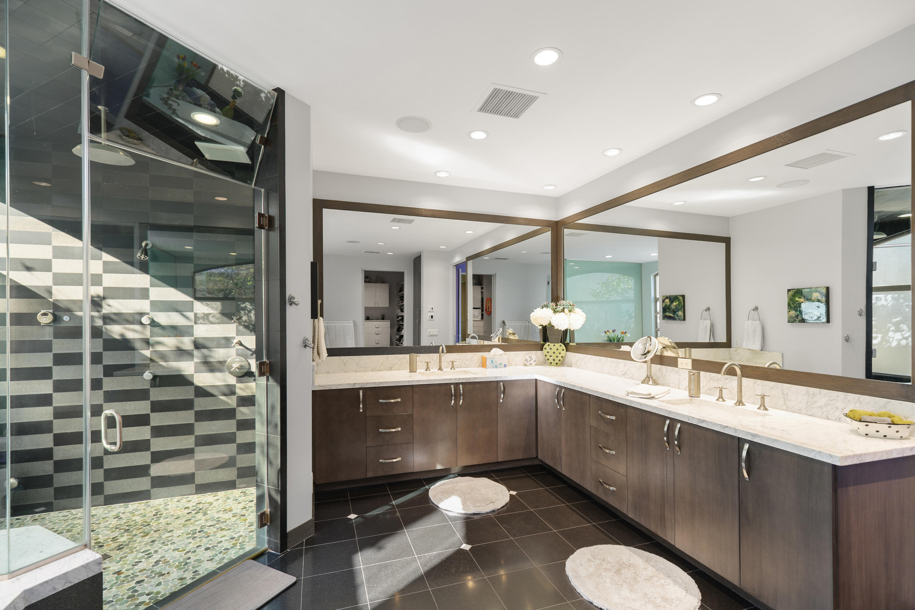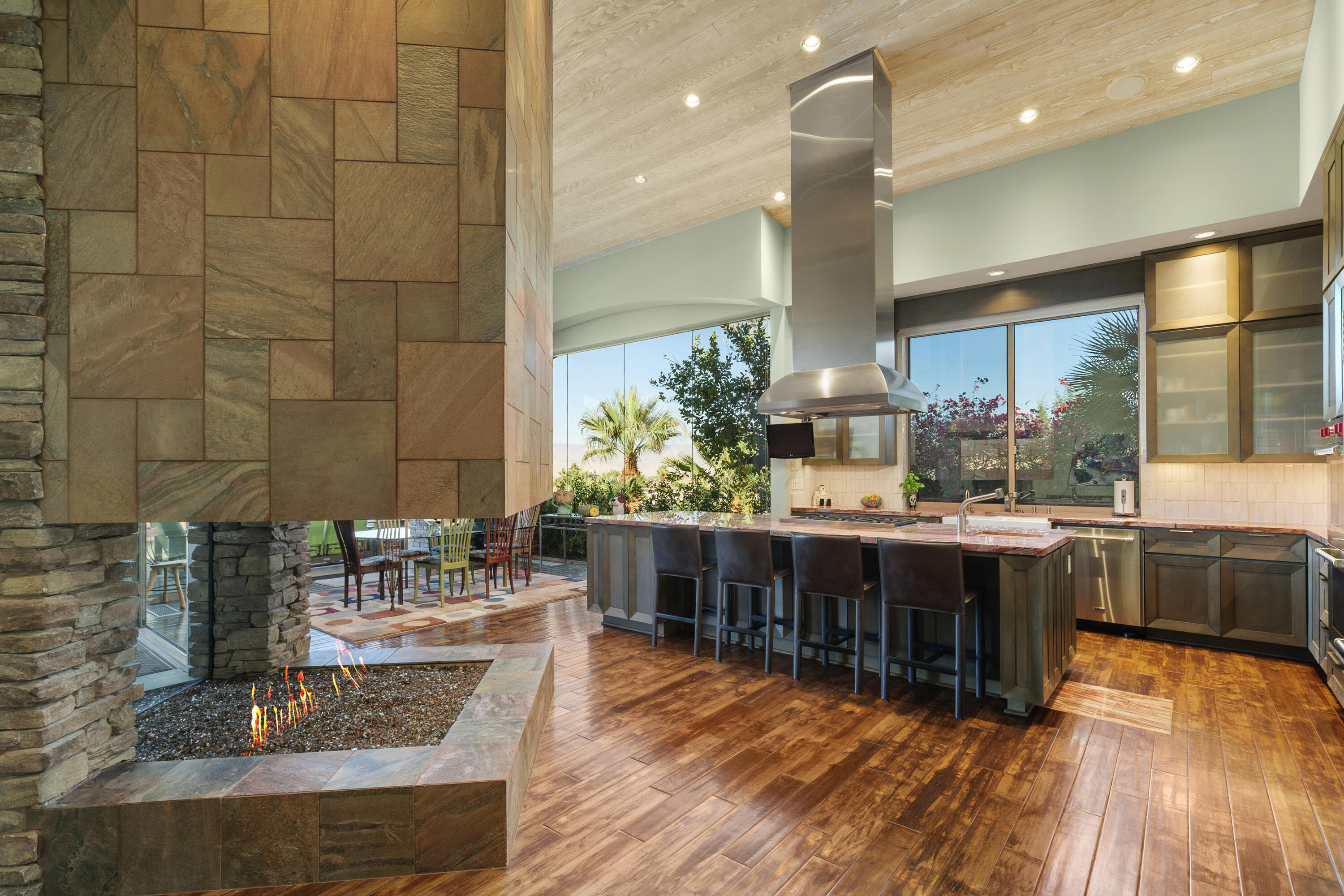 One of the best views in the entire Coachella Valley! Perched on an elevated corner lot within Rancho Mirage's exclusive Mirada Estates, this architecturally distinct residence captures the essence of refined desert living. With expansive walls of glass, the home showcases spectacular mountain and city light views from every room, merging indoor and outdoor spaces in perfect harmony. Privacy is paramount in this 3,964 sq. ft. retreat, which features three luxurious en-suite bedrooms, including a primary suite with steam shower and heated floor, and a private-entry casita. A Murphy bed in the den/office increases the sleeping capacity to 8+. Elegant design elements, from quartzite stone finishes to the custom built-in storage, underscore the meticulous craftsmanship throughout. At the heart of the home, a recently remodeled gourmet kitchen with Wolf appliances, Subzero refrigeration, and custom quartzite counters enhances the home's unique architectural flair. The outdoor spaces, featuring an infinity-edge saltwater pool, cooling misters lining the patios to cool down hot summer days, Burning Bush fire pit, and expansive patio areas, provide an ideal setting for both relaxation and entertaining. The home is equipped with a wholly owned 52 panel rooftop solar system and Tesla Power Walls, and a whole-house music system, marrying high-end technology with environmental sustainability. Residents enjoy exclusive access to the Ritz-Carlton's Mirada Preferred Access Program, which includes discounts on dining, spa services, and fitness facilities, as well as special room rates and privileged access to resort amenities. This remarkable property is an ideal choice for those seeking an elevated lifestyle with privacy, unparalleled views, and access to world-class amenities.Interested in this Listing?