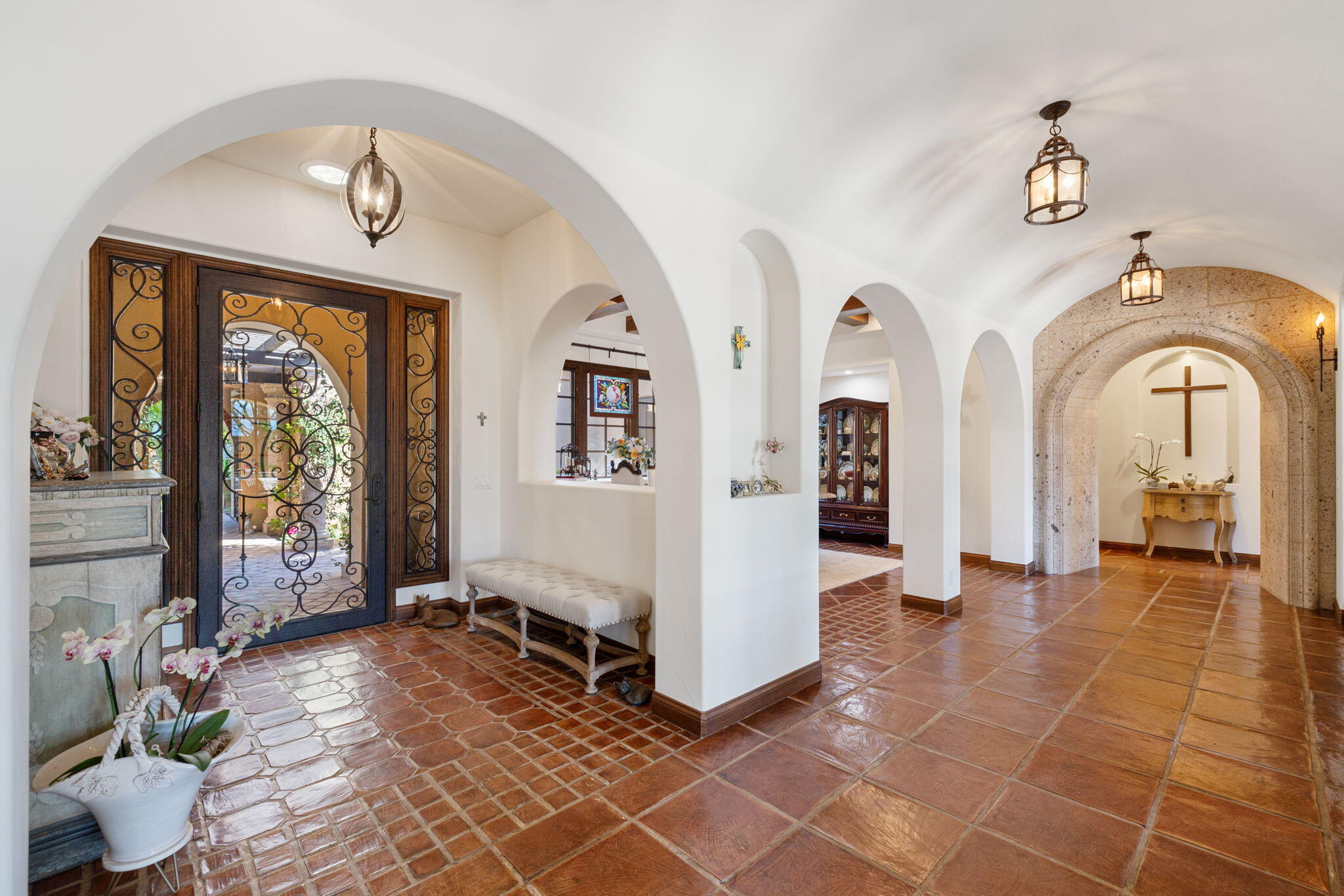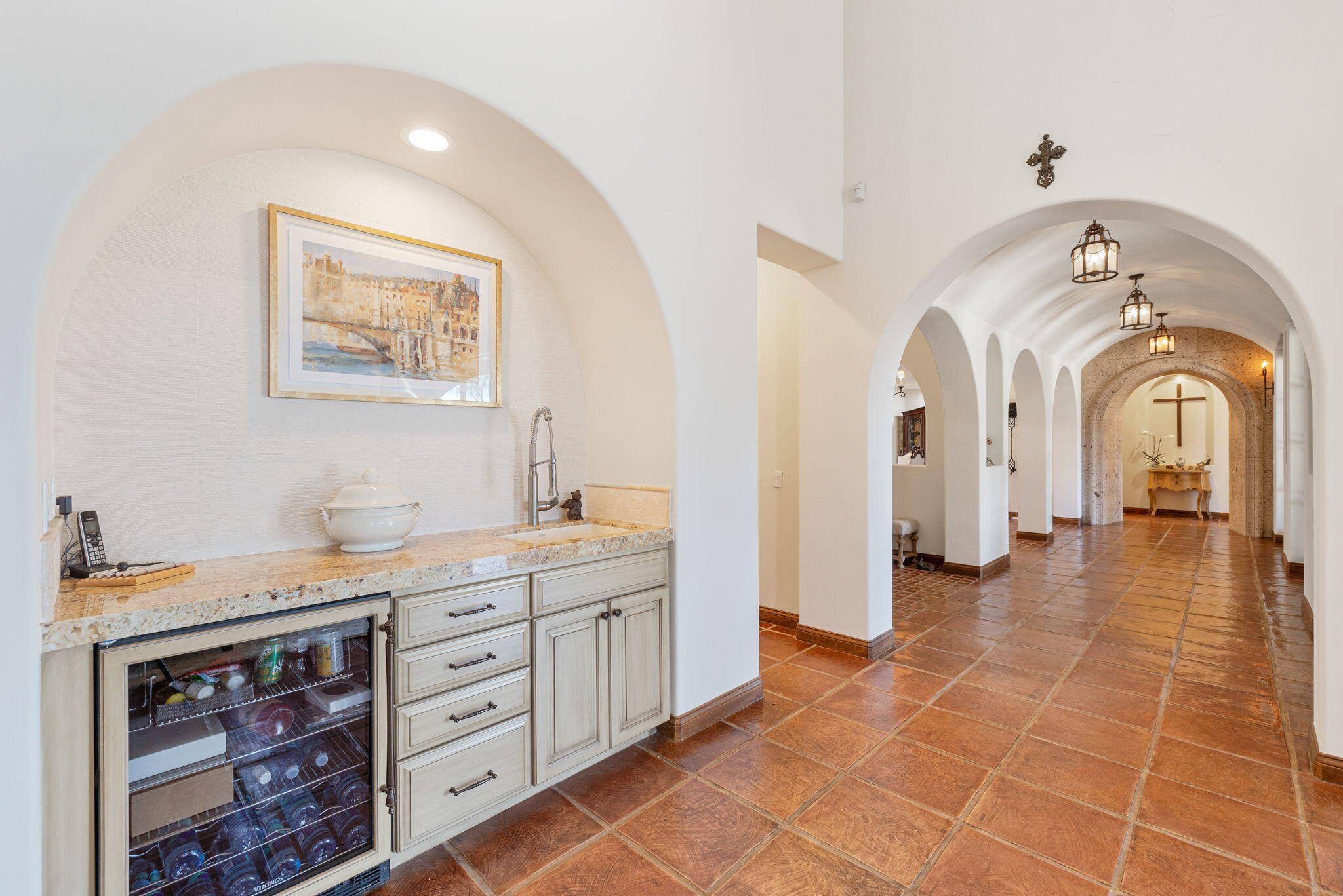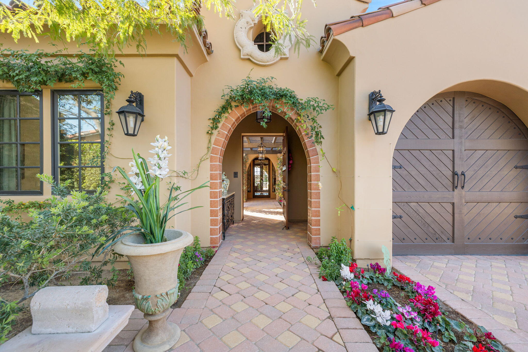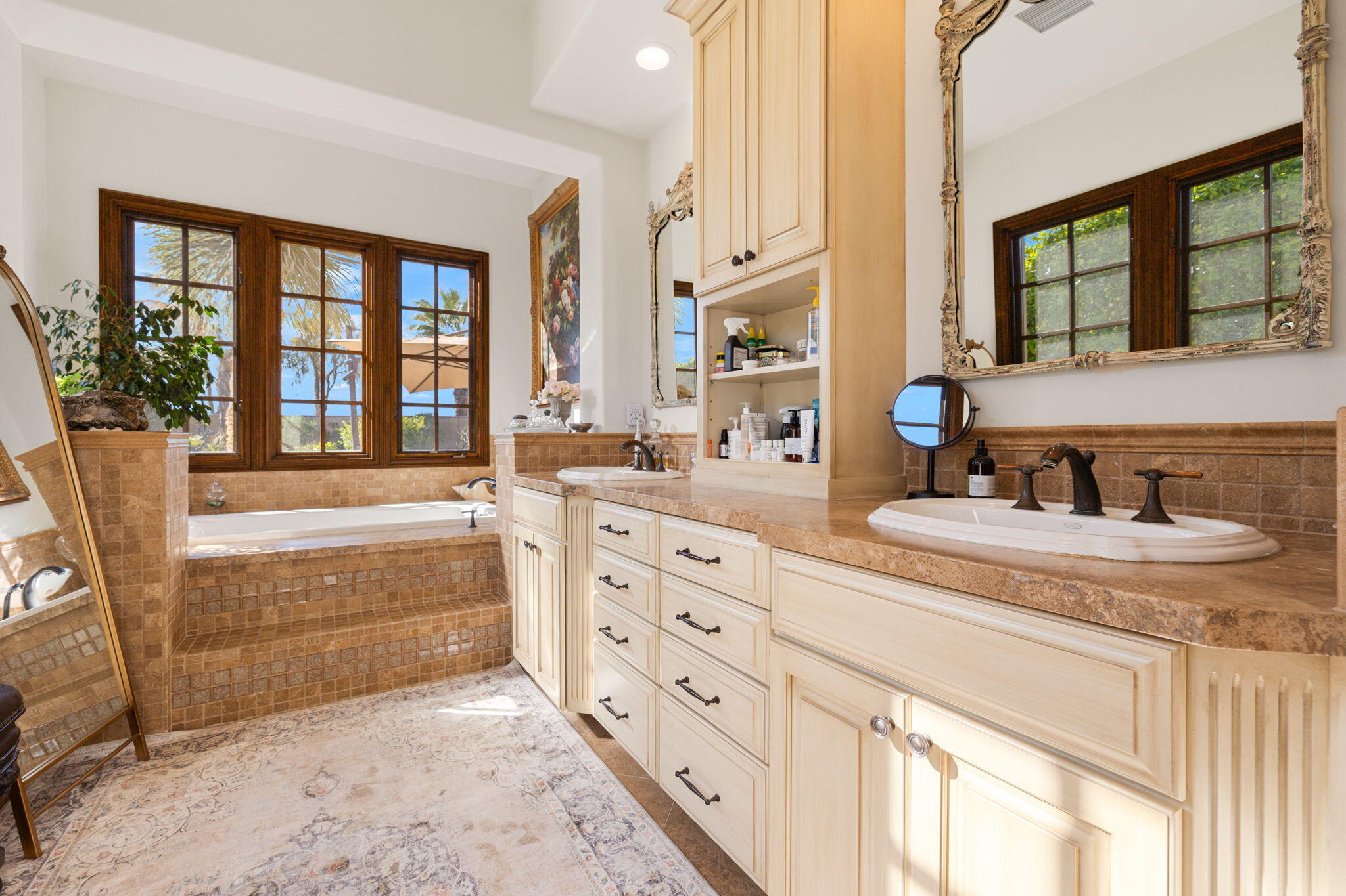 SIGNIFICANT PRICE IMPROVEMENT! Located in the highly desirable city of Rancho Mirage. This home is ready for it's new home owners and it could be you. This Tuscan inspired estate exudes Old World Charm and elegance behind the gates of ESCALA. There are five bedrooms,,that could have mulitiple uses, flex space i.e., office, zen room, art studio, you make it yours. Four bedrooms have ensuites. This residence is a masterpiece of craftsmanship and timeless design. From the moment you arrive you are welcomed by beautifully landscaped entry and your worries could melt away. Walk through the front couryard which features a tiered water fountain that sets the tone for the tranquil ambiance that flows throughout the property. Lush gardens bloom year-round, offering a vibrant display of color and fragrance in every season. Once you step inside you're greeted by soaring ceilings and unparalled mountain views. An expansive floor to ceiling Cantera stone fireplace anchors the great room creating a warm and inviting atmosphere. The formal dining room allows for elegant gatherings. Three sets of French doors open to the covered back patio with fireplace overlooking the saltwater, pebbletech pool and spa and manicured gardens. The heart of the home is the gourmet kitchen, a chef's dream, equipped with a VIKING 6 burner and griddle range with two ovens. In addition two VIKING wall ovens, micro-wave and Sub Zero tower refridgerator and freezer, all Stainless Steel. The design is perfect for culinary creations and enteraining guests. The upgrades continue with custom cabinetry, solid granite counter tops and oversized center island with built in beverage refridgeration drawers, and elegant limestone backsplace. The additional wet bar adjacent to the great room continues the entertainers dream layout. The outdoor oasis is equally impressive with breathtaking mountain views. The home features a resort-style pool and spa, four dramatic water features, providing a traInterested in this Listing?