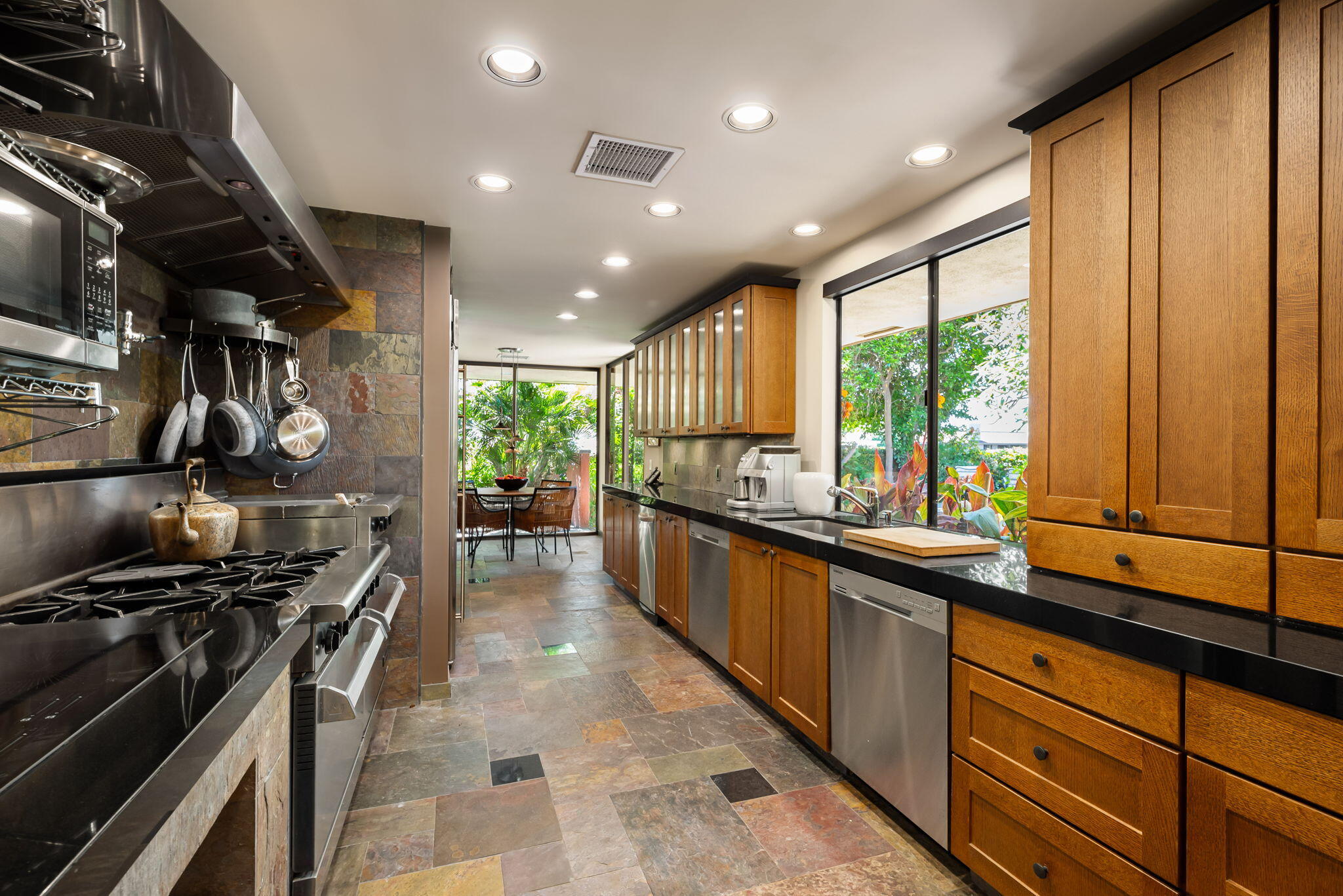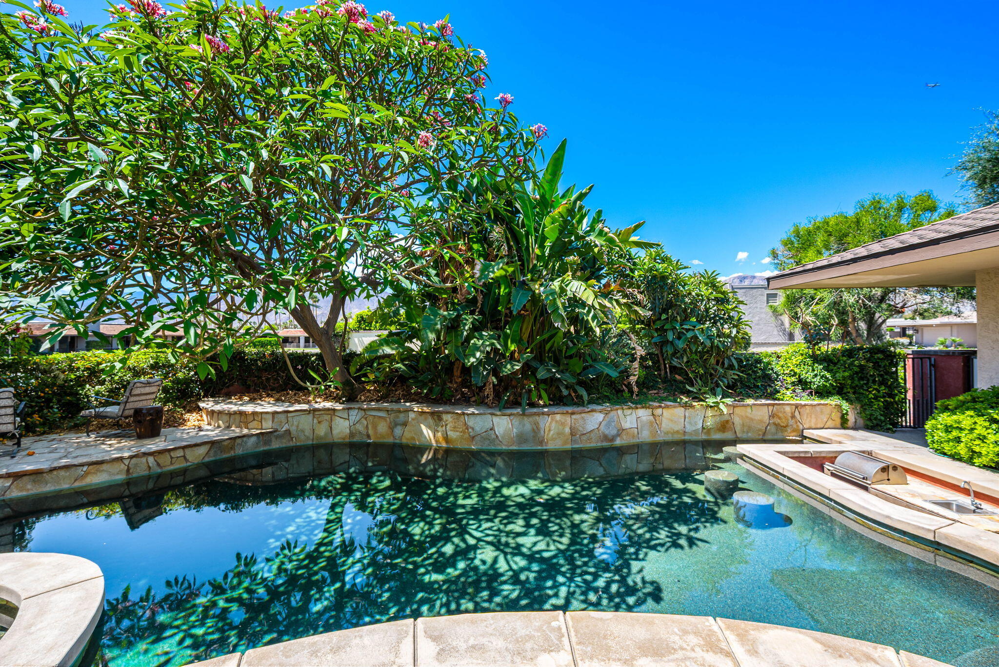 Experience desert living at its finest in this exquisite residence, a stunning 4-bedroom, 4-bathroom retreat nestled on an expansive lot. Located in the popular Springs Country Club in the heart of Rancho Mirage, the Pebble Beach floor plan is the only four bedroom plan in this vibrant community. This property promises the perfect blend of privacy and grandeur with its private pool and spa, framed by breathtaking panoramic views of the western and southern lakes and majestic mountains.Step into elegance and sophistication with the stunning slate flooring that sets the tone throughout the home. The gourmet chef's kitchen is a culinary dream, equipped with a restaurant-quality range featuring eight gas burners, dual ovens, a second cooktop, two microwaves, and a griddle--ideal for any cooking enthusiast.Open and inviting, the breakfast nook and dining room seamlessly extend to the patio pool area, making indoor-outdoor entertaining a delight. The living room provides a cozy haven, opening onto a lush, secluded patio. Indulge in leisure with the pebble tec pool and spa, and enjoy the unique sunken BBQ pit complete with bar stools for those unforgettable poolside gatherings.The primary bedroom suite offers a tranquil escape with its own access to a secluded courtyard and breathtaking mountain views. Luxuriate in the custom-built features and a spacious walk-in closet. The en-suite bathroom is a serene retreat, featuring a soaking tub, separate shower, dual vanities, and direct access to the pool and patio for ultimate convenience.One of the versatile bedrooms has been transformed into an office, complete with an en-suite bath which can easily reverted back to a fourth bedroom if desired. The second bedroom boasts abundant space, an en-suite bathroom, generous closet storage, and access to a private courtyard.The fourth bedroom is designed as a cozy study with thoughtful built-ins, yet offers ample space for a bed. Sliding doors lead to a charming private patio, perfectInterested in this Listing?