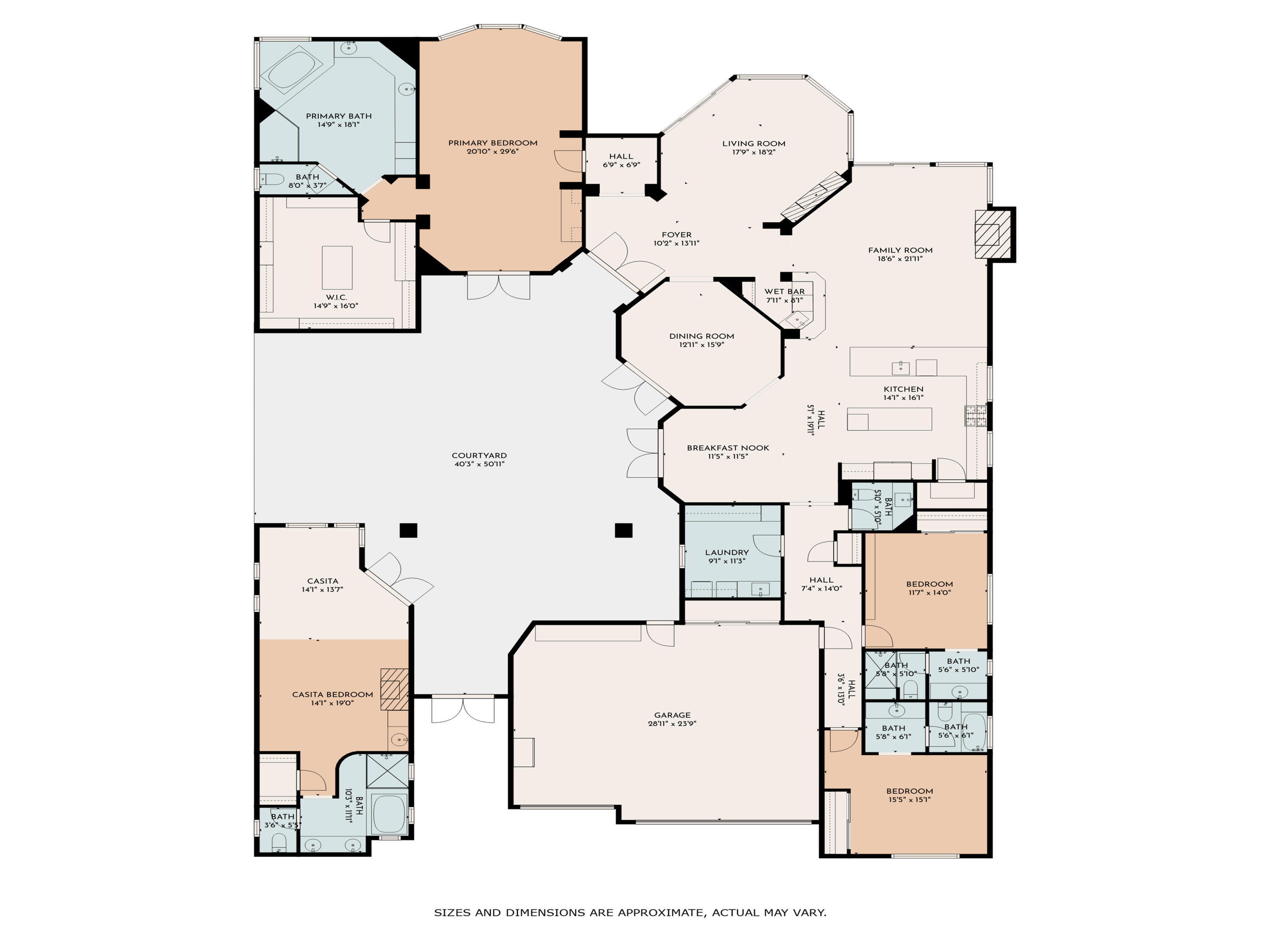 Situated on an exceptional south-facing lot, this home offers unobstructed down-fairway views and breathtaking panoramas of the surrounding south mountains, delivering a serene and luxurious desert lifestyle. From the moment you arrive, you're greeted by a full paver gated courtyard and meticulously designed landscaping that sets the tone for the elegance within. Inside, the home offers 4,126sf, 4-bedroom suites, 4.5 bathrooms, Living Room, Dining Room, Family Room, Detached Casita, Primary Suite with Office Retreat and more. Featuring highly upgraded finishes throughout, with the heart of the residence being an extraordinary chef's kitchen. This culinary masterpiece includes a restaurant-style stainless steel center island, exquisite natural stone countertops and backsplash, and a top-tier appliance package designed to satisfy the most discerning cook. The open-concept layout flows seamlessly to a stunning rear patio, also finished with pavers and surrounded by lush, curated plantings--perfect for entertaining or relaxing under the desert sky. The rear yard has a great blend of covered areas complete with built-in heaters, outdoor fireplace and a mist system along with plenty of sunny lounge areas around the lagoon style pool & spa all surrounded by the picturesque views. Every detail of this home has been thoughtfully crafted to blend luxury, comfort, and style. Whether you're drawn to the panoramic vistas, the impeccable upgrades, or the unmatched location within Legacy at Mission Hills Country, this is truly a one-of-a-kind desert retreat.Interested in this Listing?