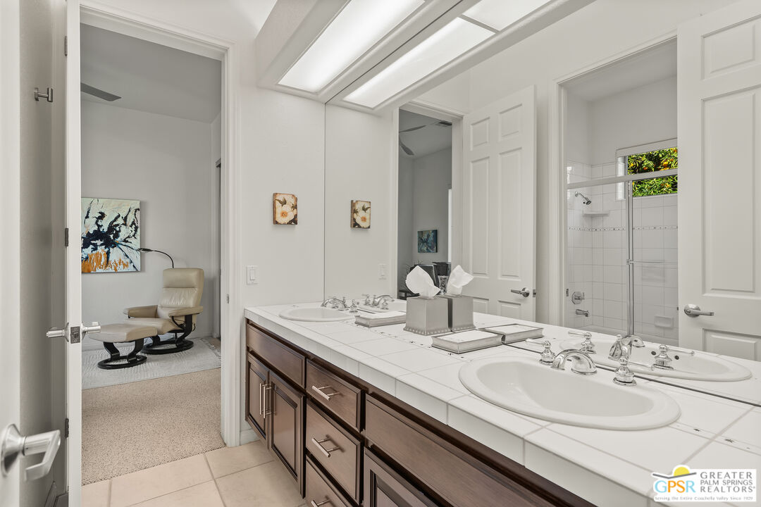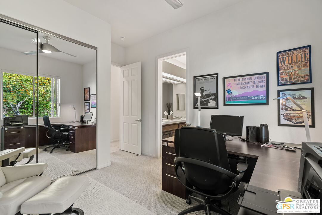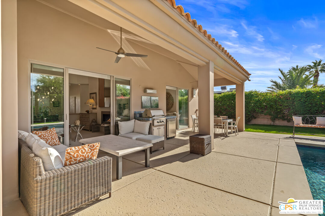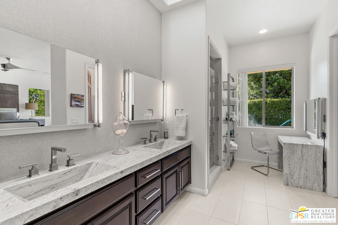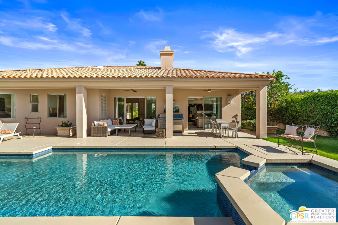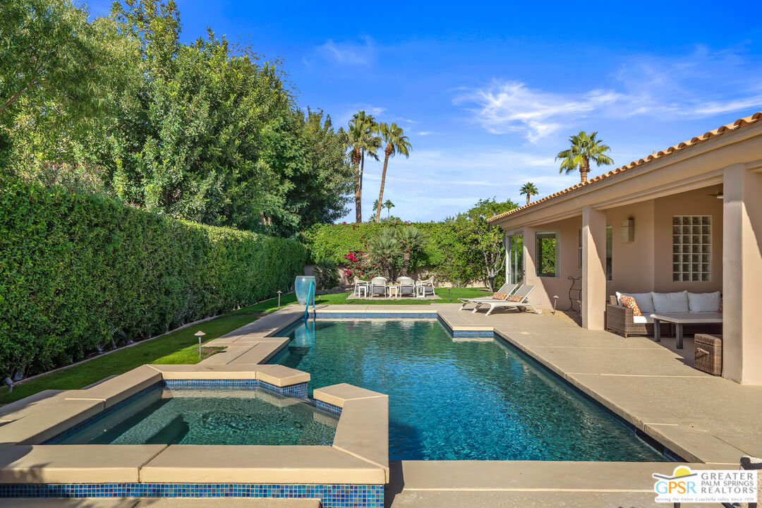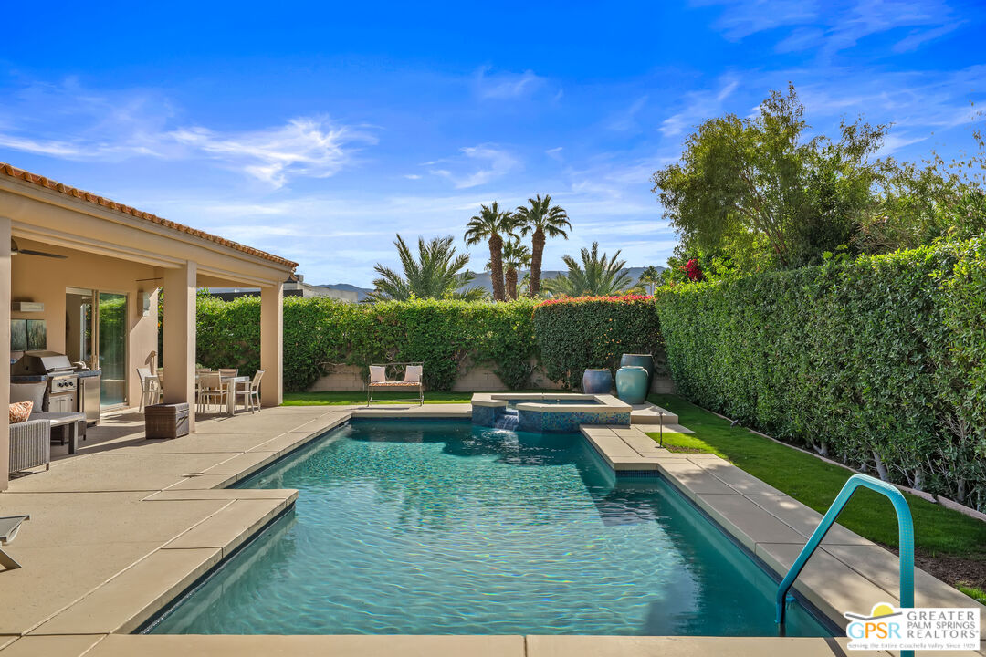 This quiet five home cul-de-sac ideally located in the Tamarisk area neighborhood in the heart of Rancho Mirage. This stunning 4-bedroom, 4.5-bathroom PLUS casita estate offers 3,155 square feet of bright, airy sophisticated desert living. With tall ceilings and oversized windows designed for both comfort and style, this home boasts an expansive chef's kitchen equipped with premium appliances including 6 burner gas cook top and double ovens for in home entertaining, a generous granite slab island, and abundant storage perfect for hosting or culinary creativity. The built-in bar enhances the refined living and dining areas placed right next to the double sided fireplace, making it ideal for hosting guests. The four bedrooms offer en-suite privacy, while the separate casita provides versatile space for visitors, a home office, in home carer or a private retreat. This home is perfect for gathering family and friends, with a large (1/3 of an acre) west facing private outdoor haven, complete with a sparkling salt-water pool and spa. Surrounded by lush landscaping and mature fruit trees that evoke a private oasis. Whether hosting al fresco dinners or enjoying serene desert evenings, the outdoor space delivers unmatched tranquility and charm. A designated fire pit and ample seating around allows you take in the gorgeous south mountain skyline. This spacious outdoor area is perfect for relaxing, dining, taking in the healing desert sun or soaks under the stars. The epoxy coated three car garage adds convenience and ample storage for vehicles, golf cart and gear. With its blend of timeless elegance with modern amenities, this Rancho Mirage home is a true gem all within minutes of world-class dining, shopping, and golf. Leave behind the HOA's and enjoy the freedom this private home offers. Make this desert dream your reality!Interested in this Listing?