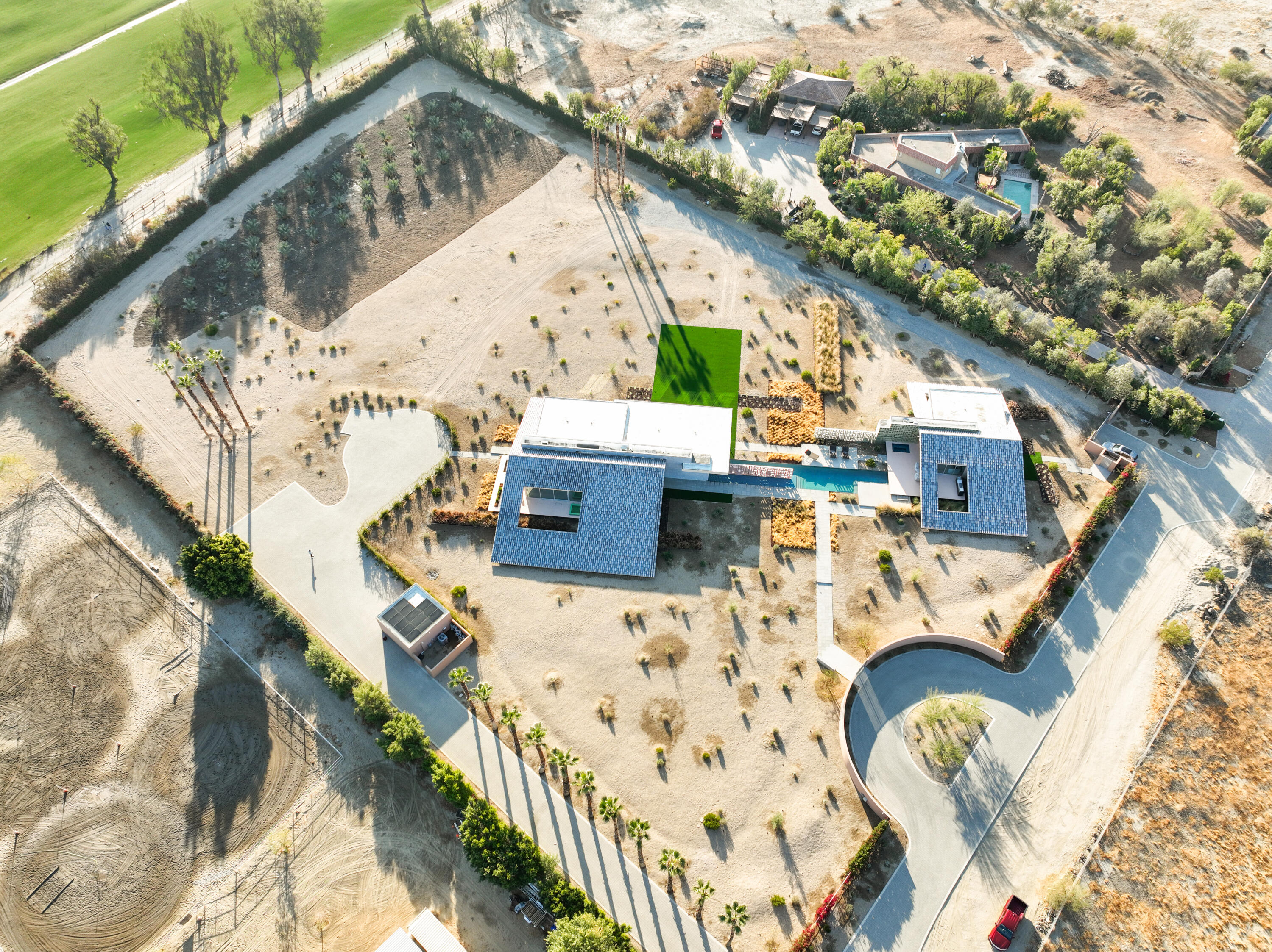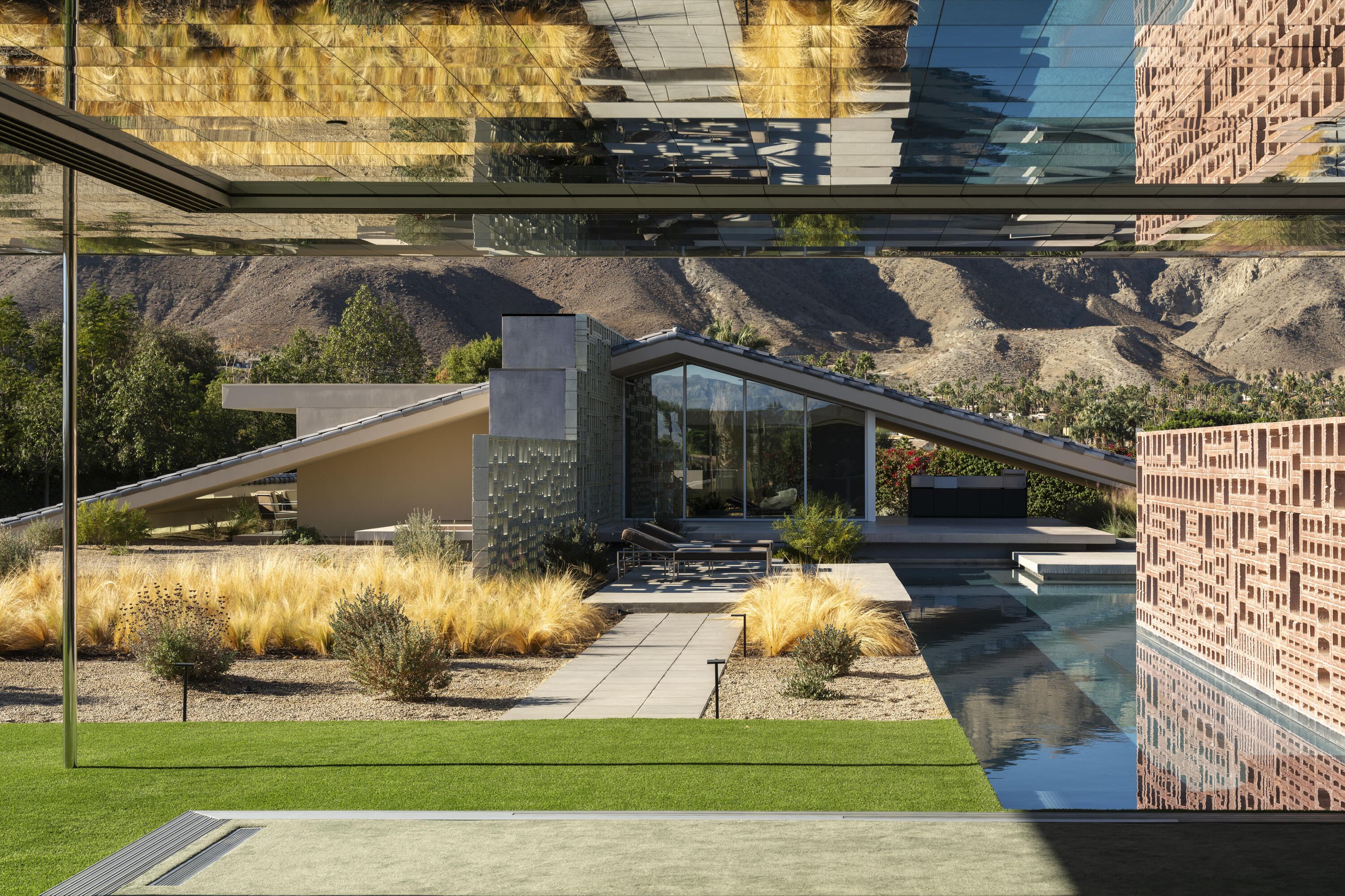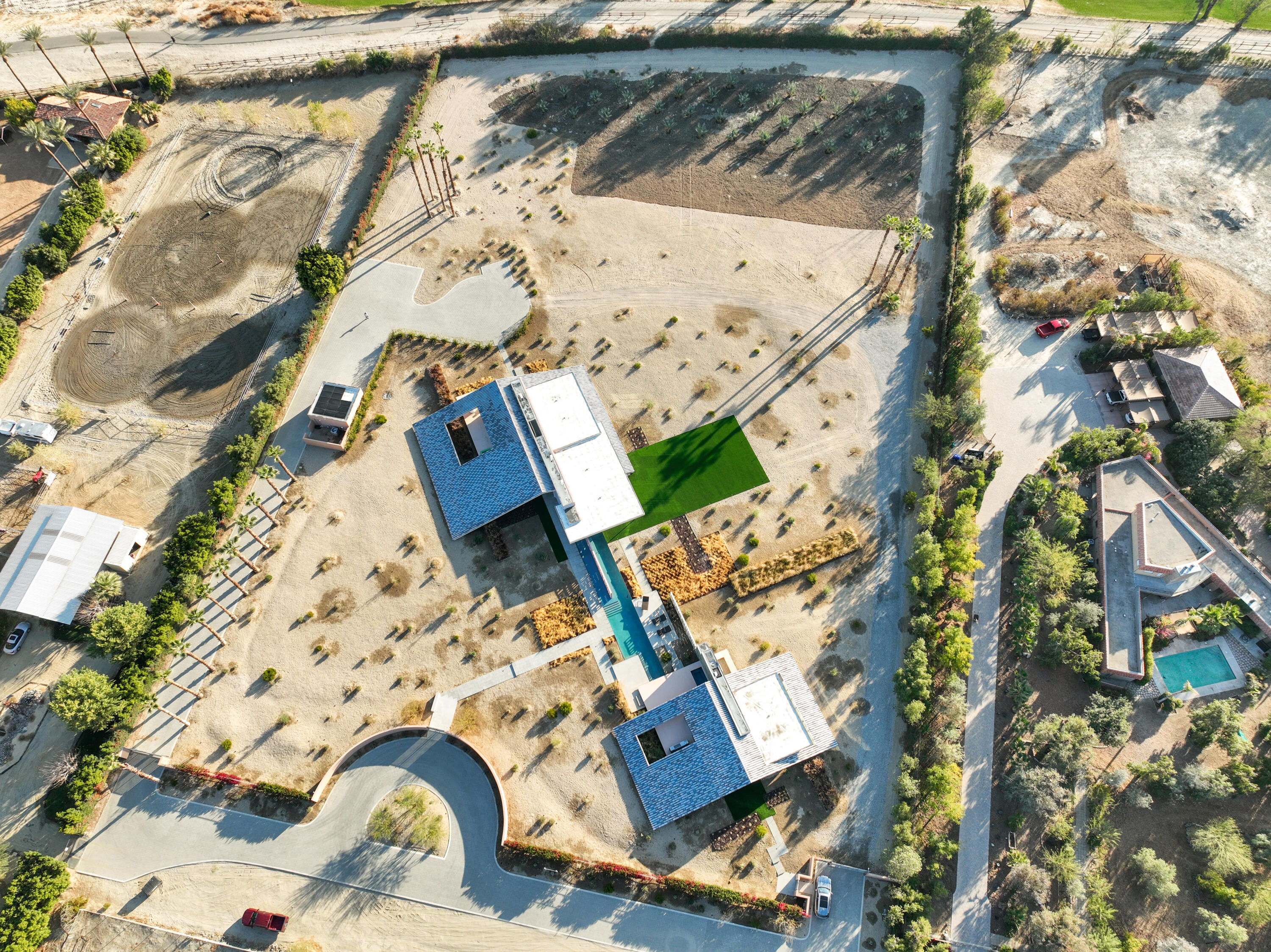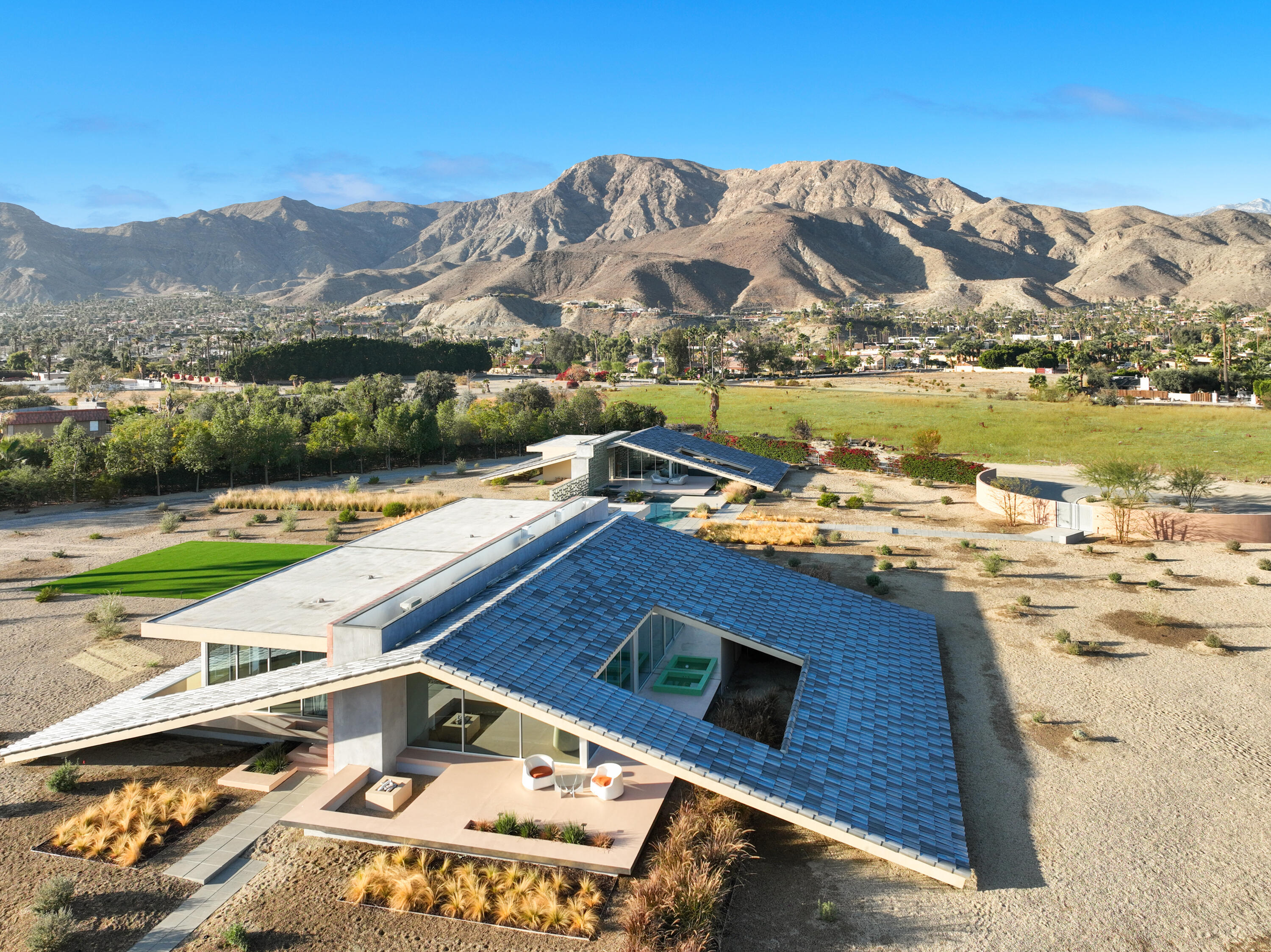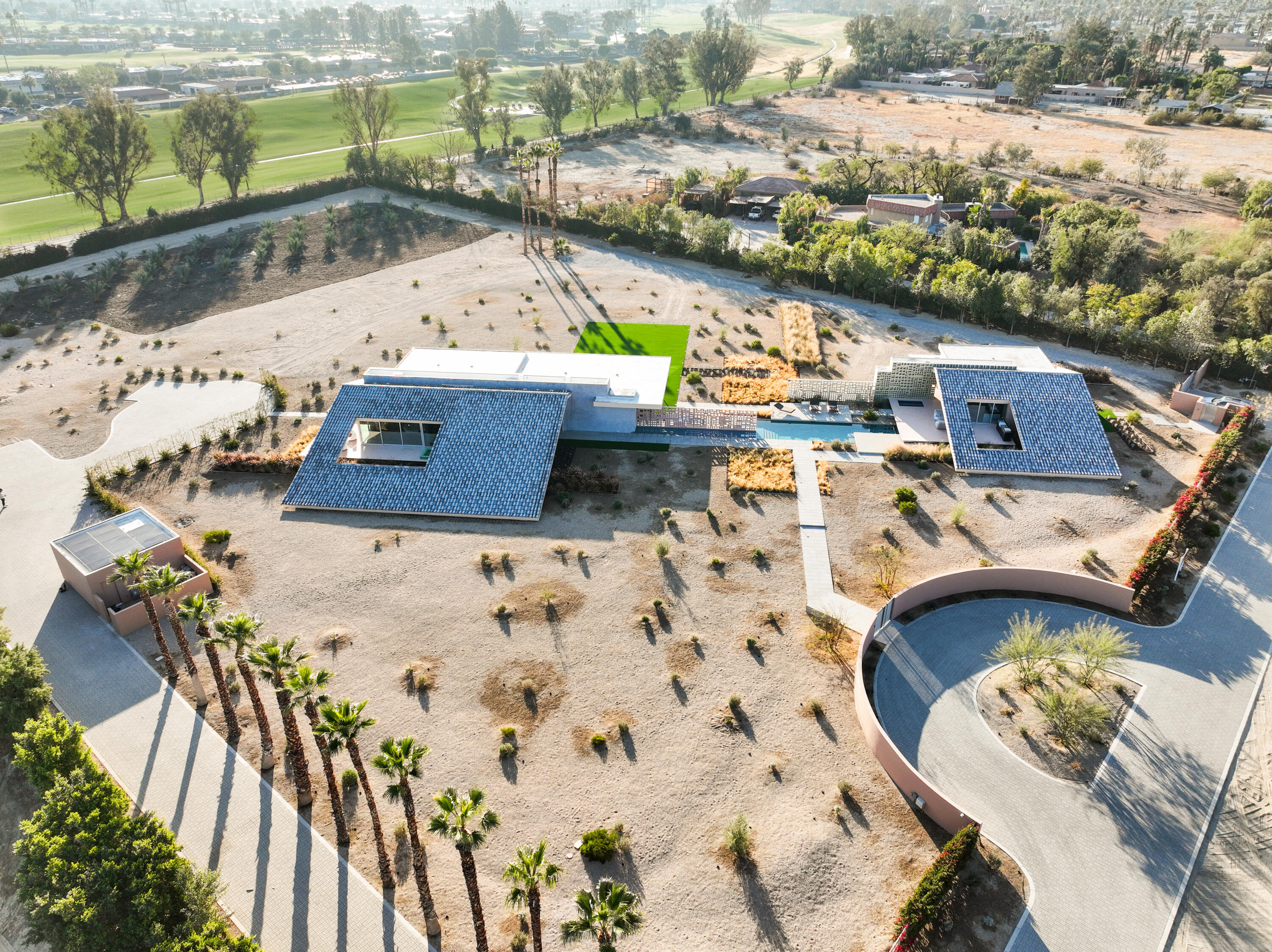 Avant-garde architect stuns with completion of new 5BR gated estate in Rancho Mirage. This exciting interpretation of ''new desert architecture'' on 3.83 ac. of a former date field inspires awe, appreciation and a desire to leave stylistic labels at the gate. Designed by award-winning Robert Stone,whose gold metallic Acido Dorado in Joshua Tree is a cultural icon for the art, fashion and design worlds, this 3BR home and 2BR guest house blend elements of desert vernacular, from classic modernism to Spanish, in flexible spaces for living, working and entertaining. Stone's dynamic collaboration with designer Tom Sudinsky reinvigorates familiar forms in an optimistic, contemporary expression. From a crocodile-textured kitchen with bespoke stainless hardware (Prada handbag meets Japanese Tansu) to the paneled-mirror living room ceiling with disappearing integrated lighting, every detail is intensely considered. Sloped roofs clad in futuristic silver tiles touch the terrain while framing palms in unique cut-outs. Spectacular Western views reach through a massive round window and hand-arranged metallic blockwork functions as sculpture. An Olympic-length pool connects the homes, firepits, spas and expansive grounds--perfect for garages, stables, lighted courts or studios. More than a residence, this work of art holds the power to ignite the design world's imagination. Years in the making, it elevates daily pleasures, entertains on any scale and will never fail to leave one speechlessInterested in this Listing?