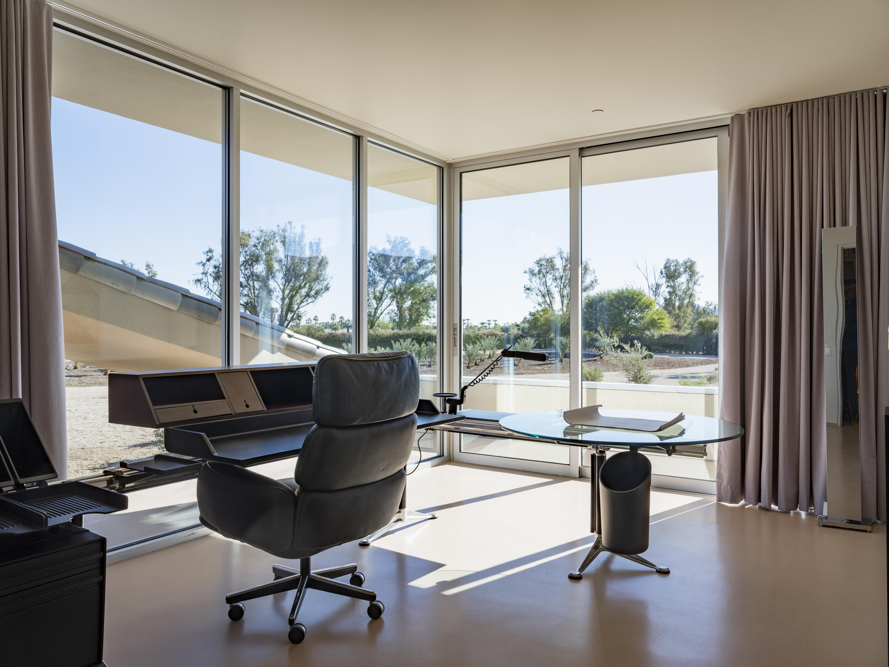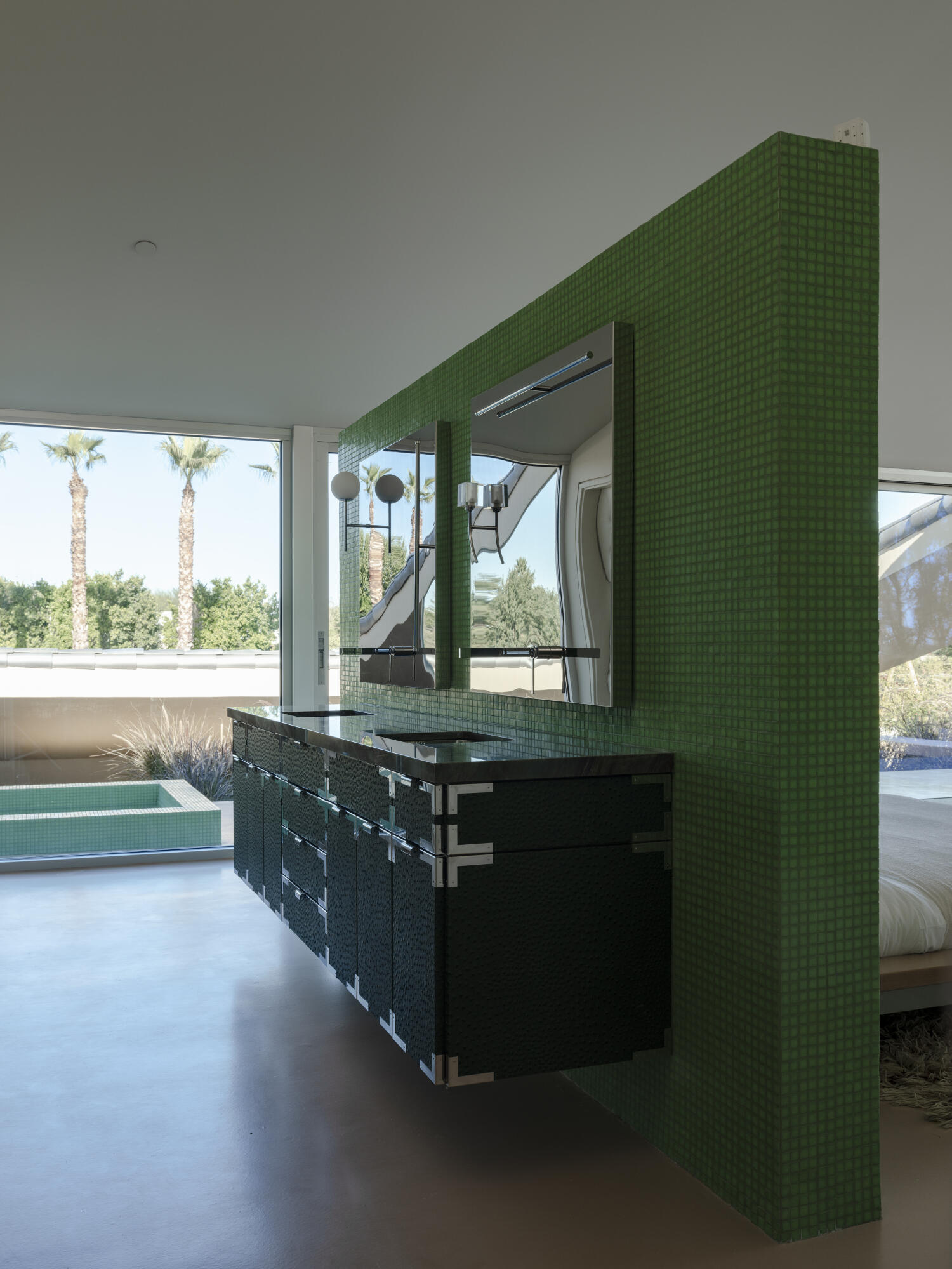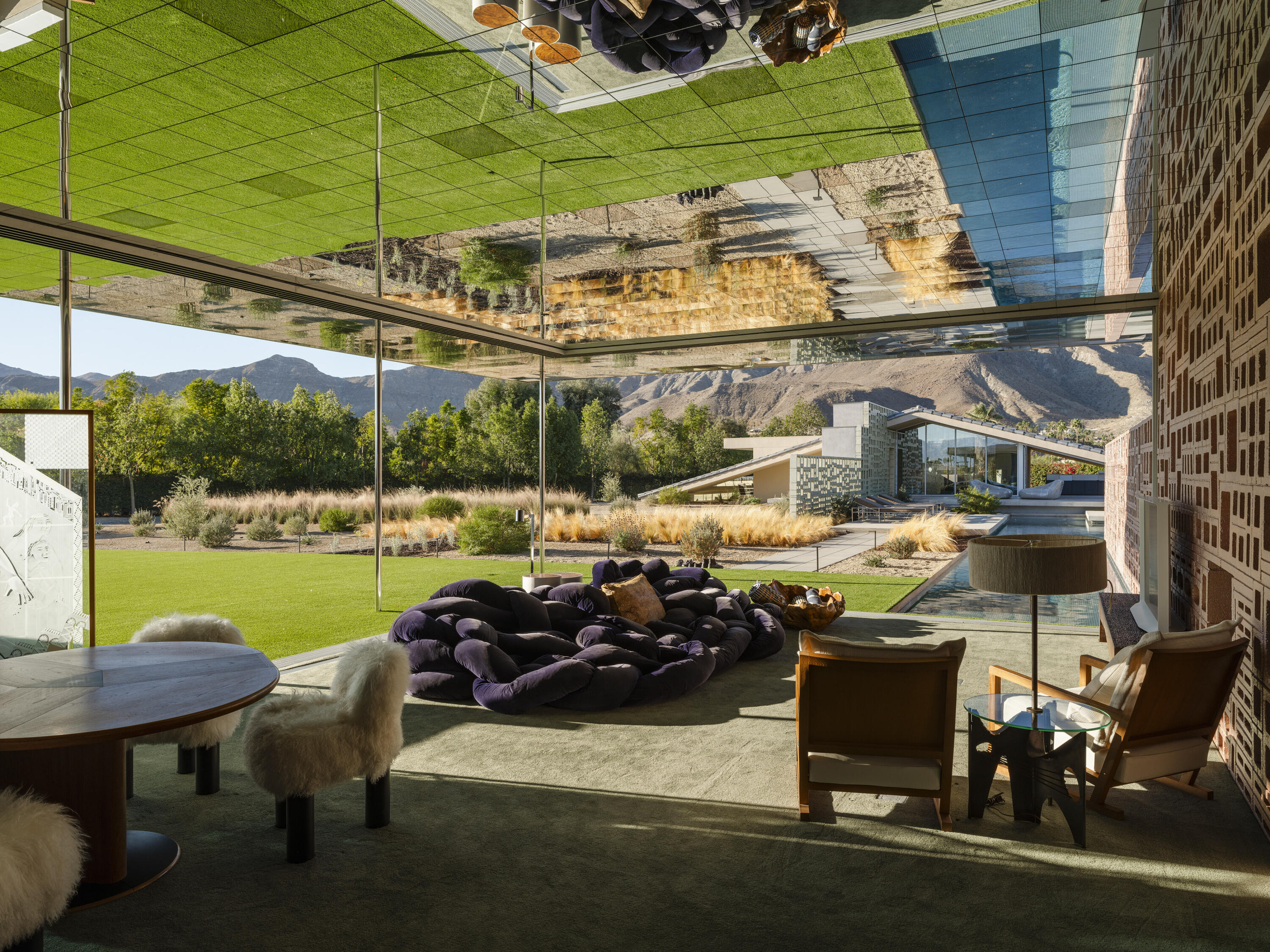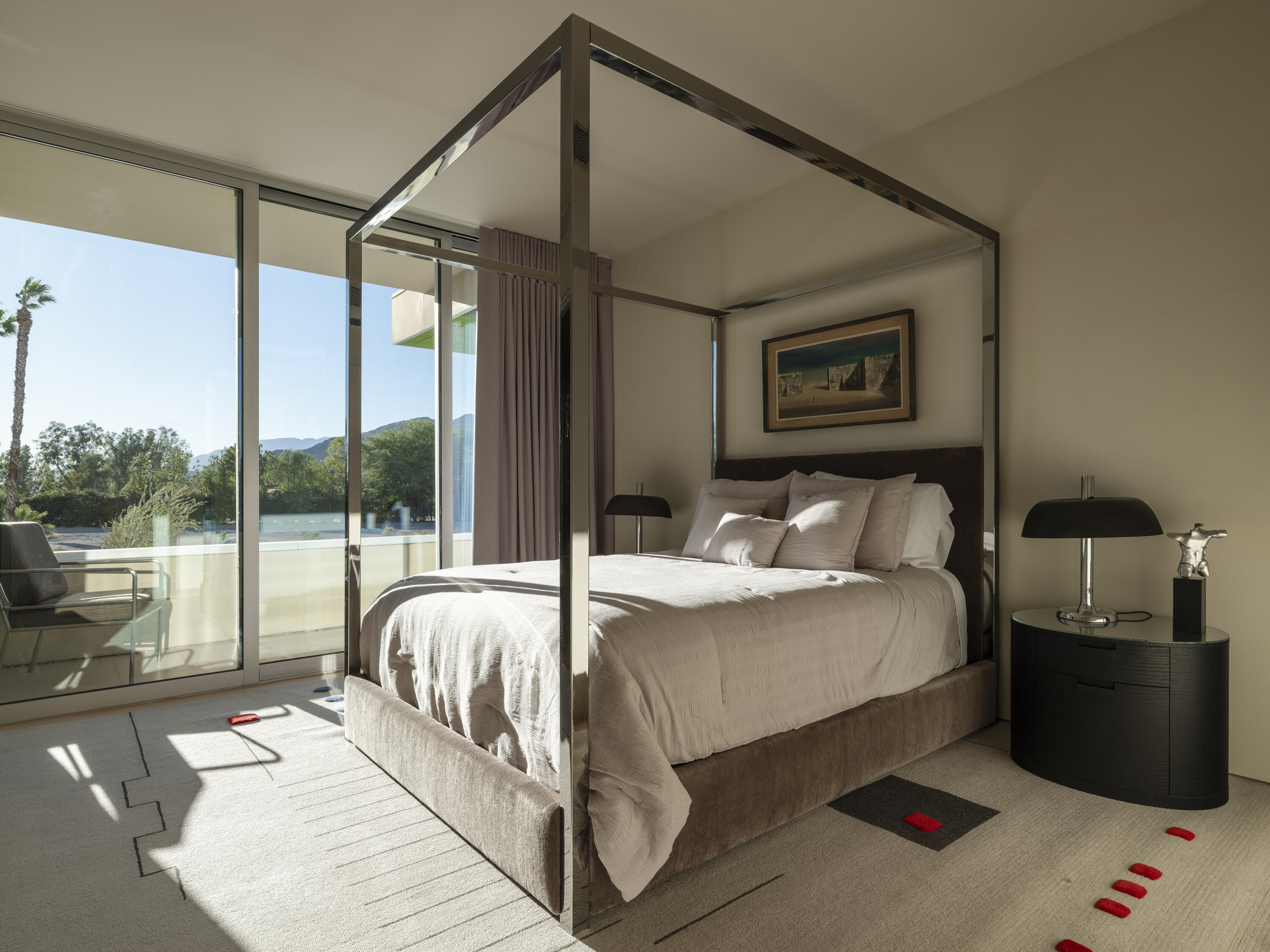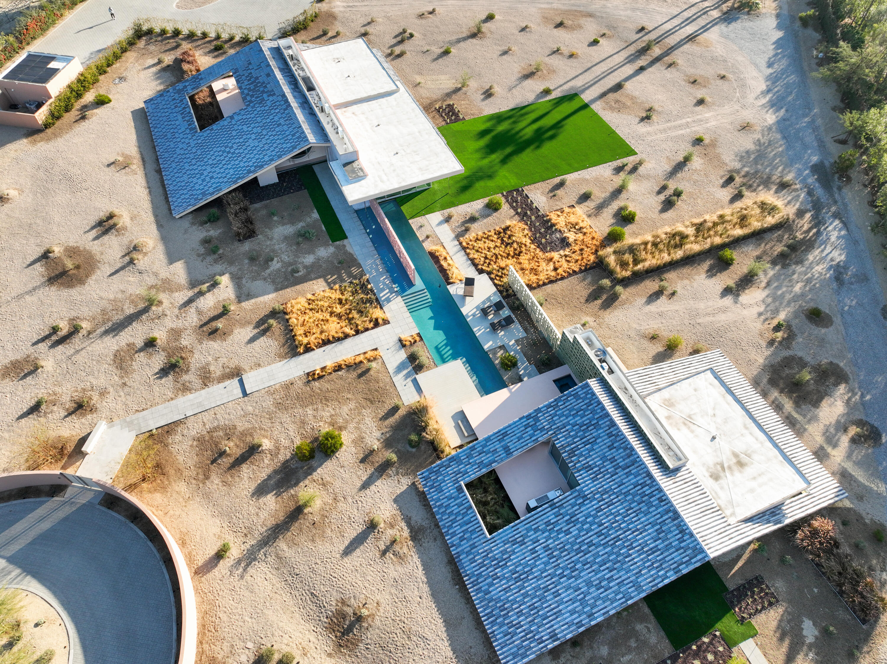 Avant-garde architect stuns with completion of new 5BR gated estate in Rancho Mirage. This exciting interpretation of ''new desert architecture'' on 3.83 ac. of a former date field inspires awe, appreciation and a desire to leave stylistic labels at the gate. Designed by award-winning Robert Stone,whose gold metallic Acido Dorado in Joshua Tree is a cultural icon for the art, fashion and design worlds, this 3BR home and 2BR guest house blend elements of desert vernacular, from classic modernism to Spanish, in flexible spaces for living, working and entertaining. Stone's dynamic collaboration with designer Tom Sudinsky reinvigorates familiar forms in an optimistic, contemporary expression. From a crocodile-textured kitchen with bespoke stainless hardware (Prada handbag meets Japanese Tansu) to the paneled-mirror living room ceiling with disappearing integrated lighting, every detail is intensely considered. Sloped roofs clad in futuristic silver tiles touch the terrain while framing palms in unique cut-outs. Spectacular Western views reach through a massive round window and hand-arranged metallic blockwork functions as sculpture. An Olympic-length pool connects the homes, firepits, spas and expansive grounds--perfect for garages, stables, lighted courts or studios. More than a residence, this work of art holds the power to ignite the design world's imagination. Years in the making, it elevates daily pleasures, entertains on any scale and will never fail to leave one speechlessInterested in this Listing?