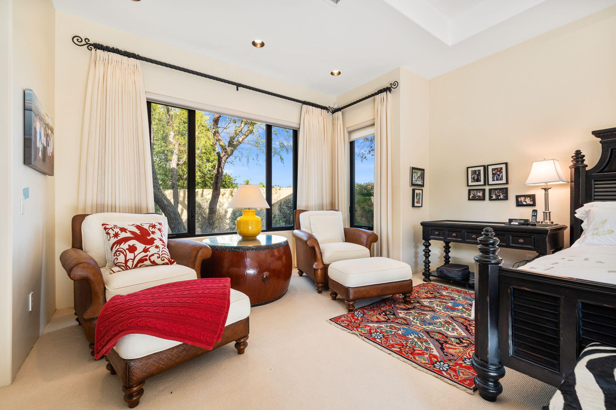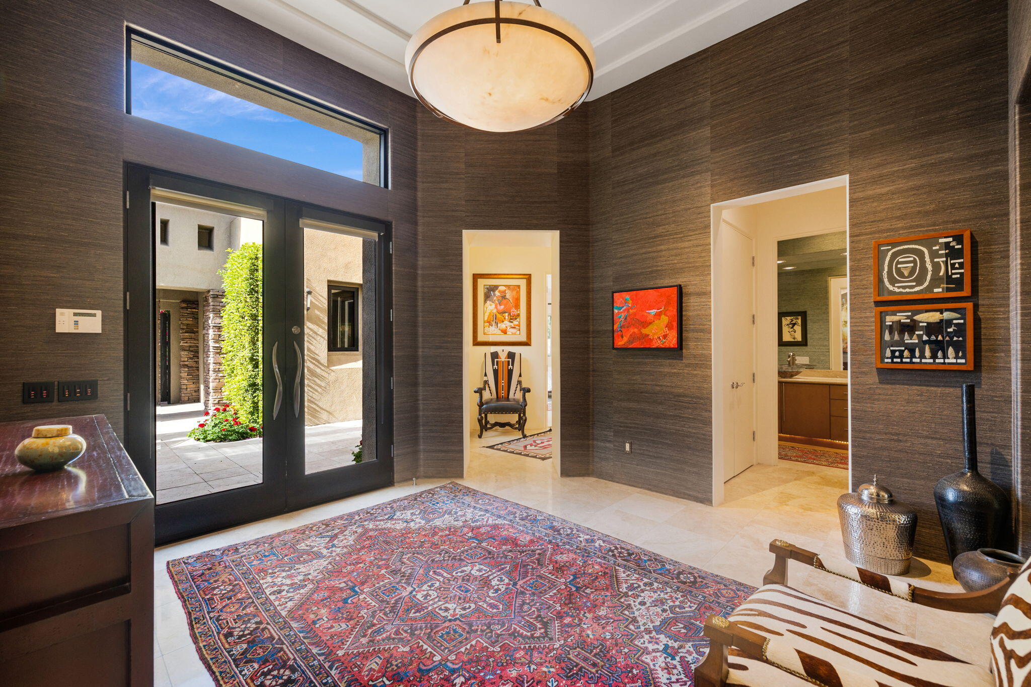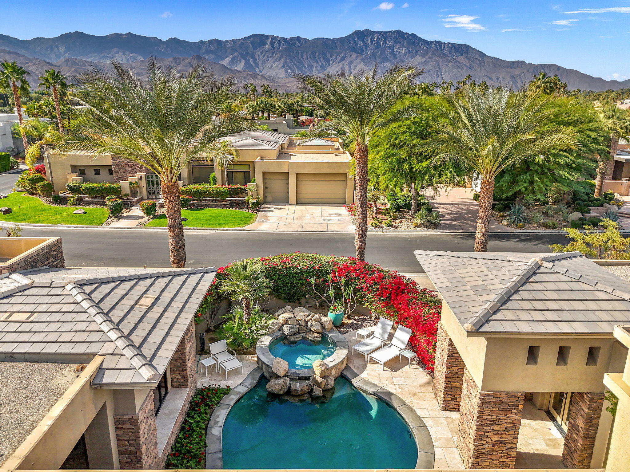 Welcome to an exquisite LIFESTYLE sanctuary nestled in the gated 40 luxury home community of Artisan in the heart of Rancho Mirage. This magnificent residence offers an unparalleled blend of sophistication and comfort on a near half-acre lot. Enter the front gate into a huge Private Courtyard providing access to the Casita and Outdoor comforts including Pool/Spa/Waterfall, Entertainment Center with Fireplace, BBQ Cooking Center and casual Dining area where you can relax and enjoy evening sunsets with an unobstructed view overlooking the San Jacinto Mountain range. Take a pathway to the front entry Foyer for access to the Great Room where floor to ceiling sliding glass wall pocket doors seamlessly integrate indoor spaces with the front Courtyard and three Backyard Patios. Great Room includes a full wall Entertainment Center, Fireplace, chef's Kitchen featuring upgraded cabinets, appliances, large casual eating area and Island with breakfast bar. An elegant formal dining room perfect for hosting lavish dinner parties completes the Great room. This home boasts five generously sized bedrooms including the Casita all with private bathroom ensuites thoughtfully designed to provide the utmost in privacy, relaxation and individual unique charm plus a Guest Powder room. Amenities include travertine floors throughout, carpeted bedrooms, three bay garage and professionally landscaped. Close to The River, El Paseo, Zoo, Golf, Casinos, Acrisure Arena and Palm Springs Int'l Airport.Interested in this Listing?