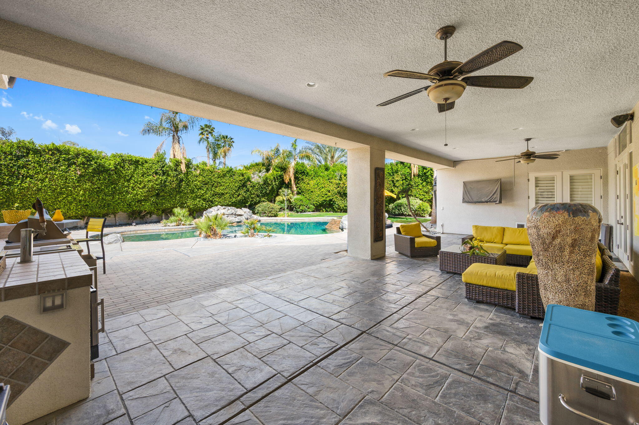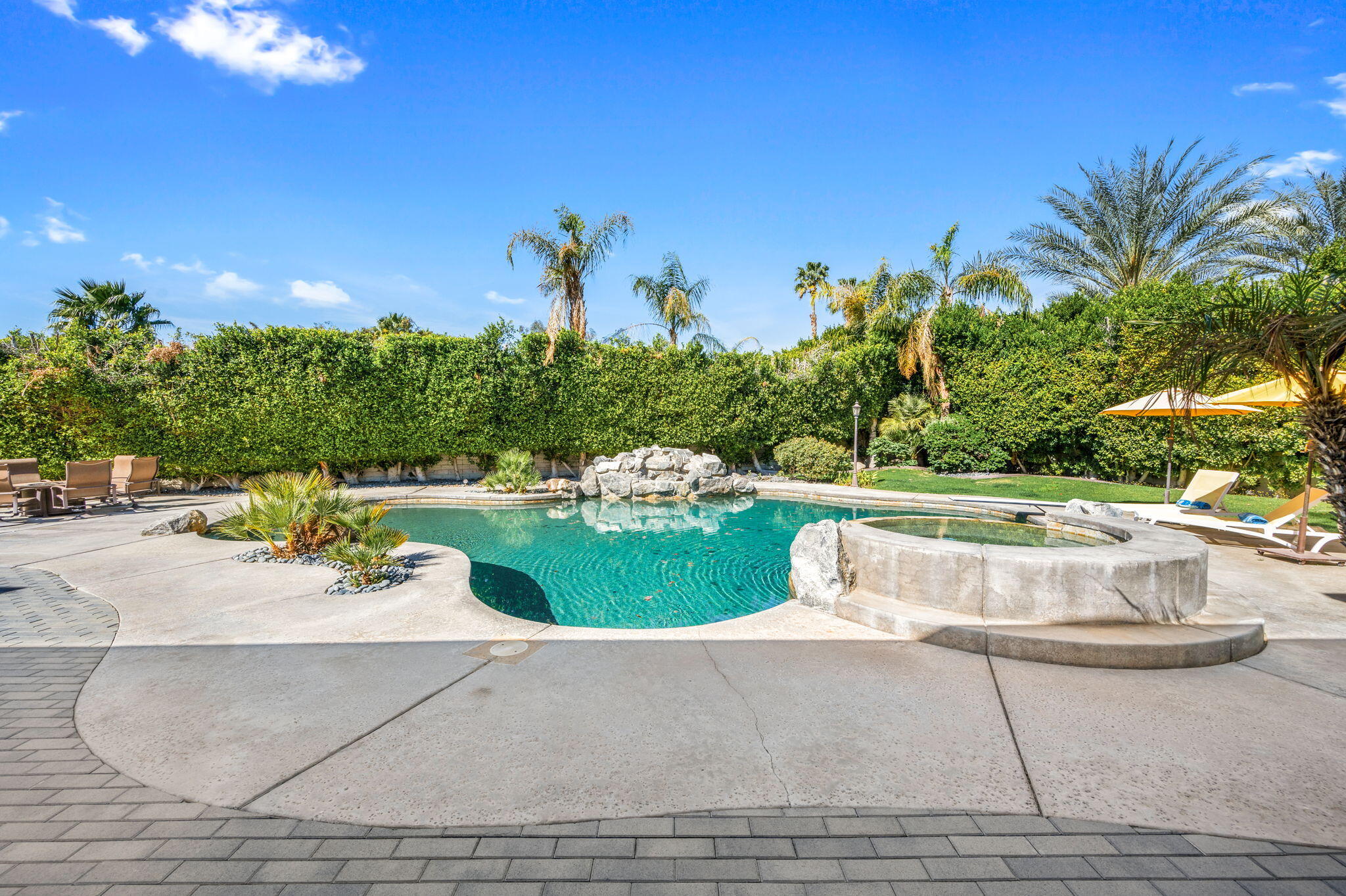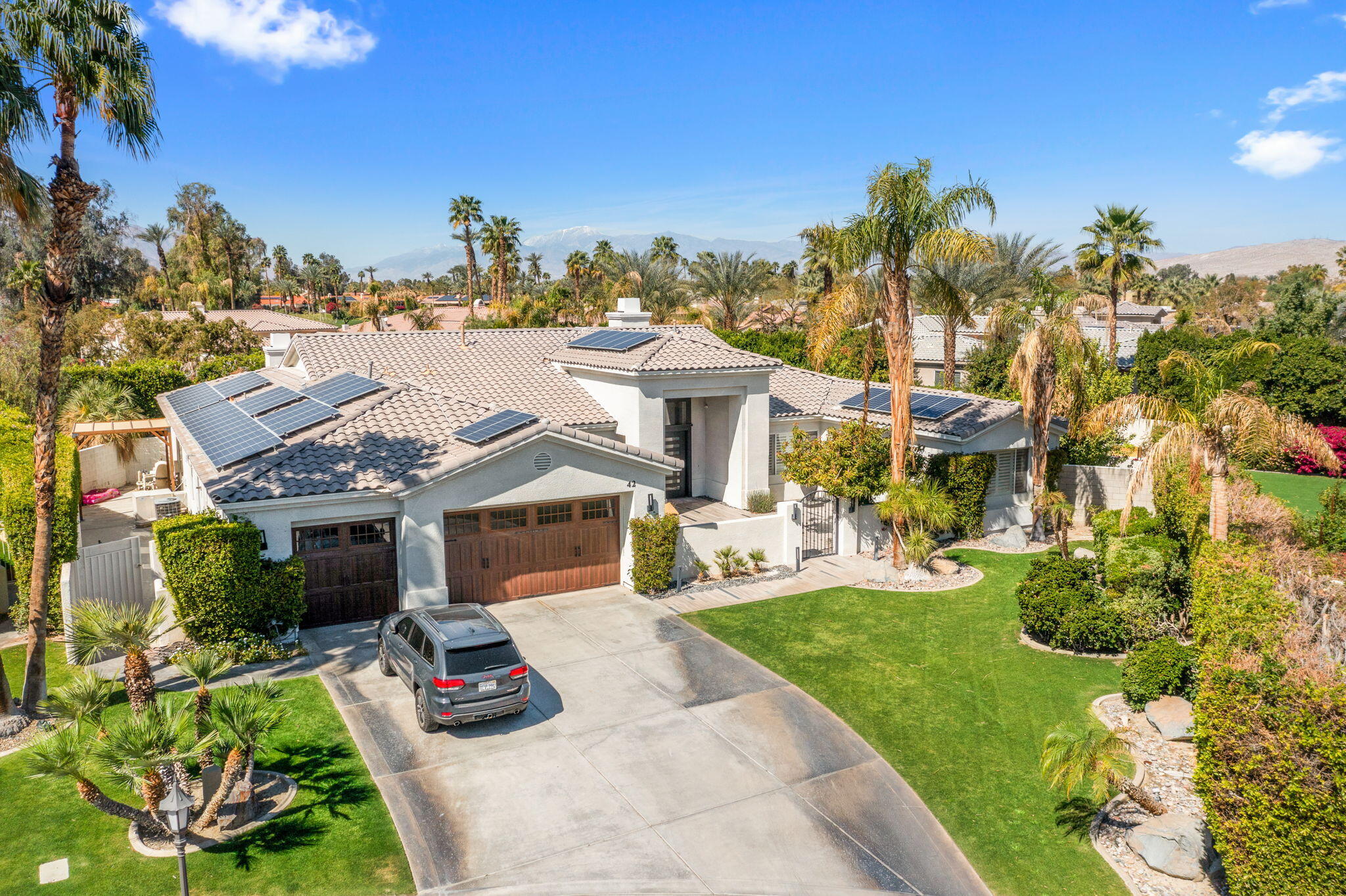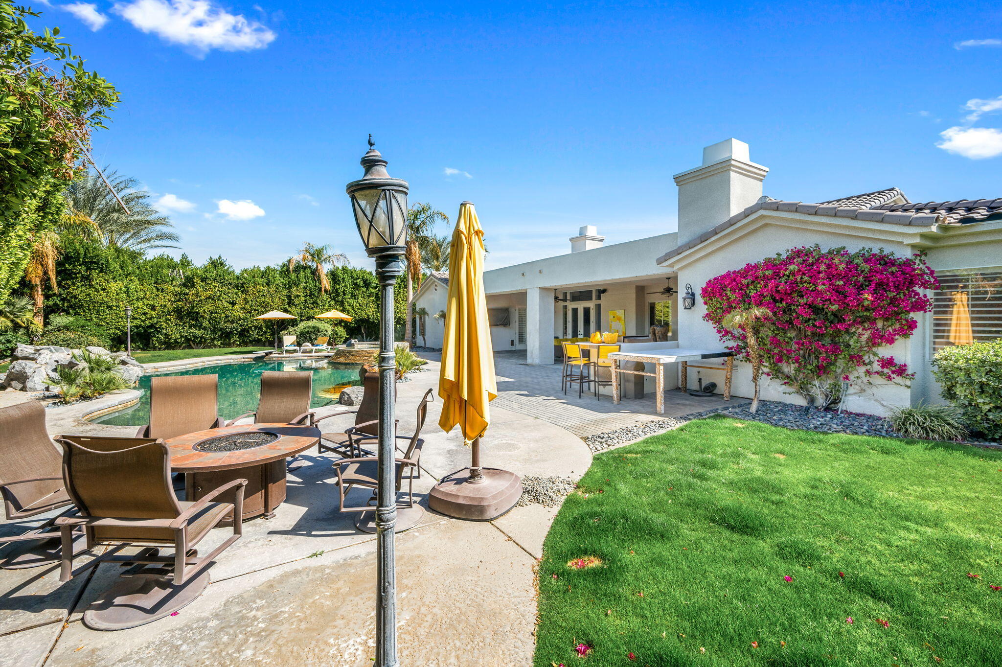 Exquisite home located in the heart of Rancho Mirage behind the prestigious gates of Victoria Falls. This oversized lot sits on a quiet cul-de-sac. An elegantly tiled courtyard welcomes you into the grand entrance of an open and spacious floor plan. The interior has been stylishly upgraded throughout, featuring wood like tile flooring, custom cabinetry, ceiling fans, custom lighting, and much more. The grand wet bar, complete with a walk-in 400-bottle wine fridge, is an entertainer's dream. The master suite includes a cozy fireplace and a large, sophisticated walk-in closet. Additionally, there are three more suites, each with a private full bathroom. An attached casita with a separate entrance is perfect for guests. The lush backyard offers mature landscaping, stone pavers, a misting system, a private pool and spa, a waterfall feature, and a built-in BBQ with a kitchen and a beer tap. Buyer to assume the solar loan. This home is move-in ready!Interested in this Listing?
