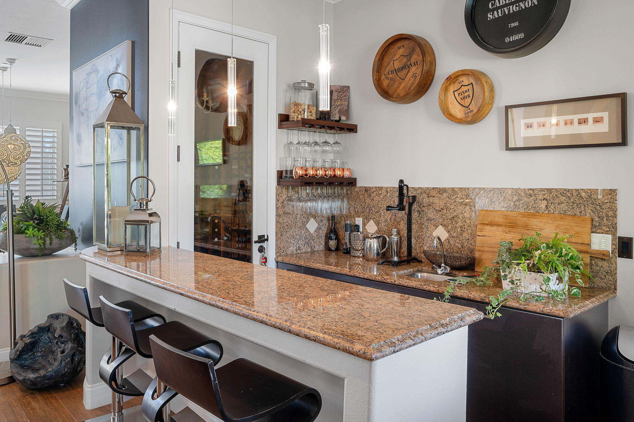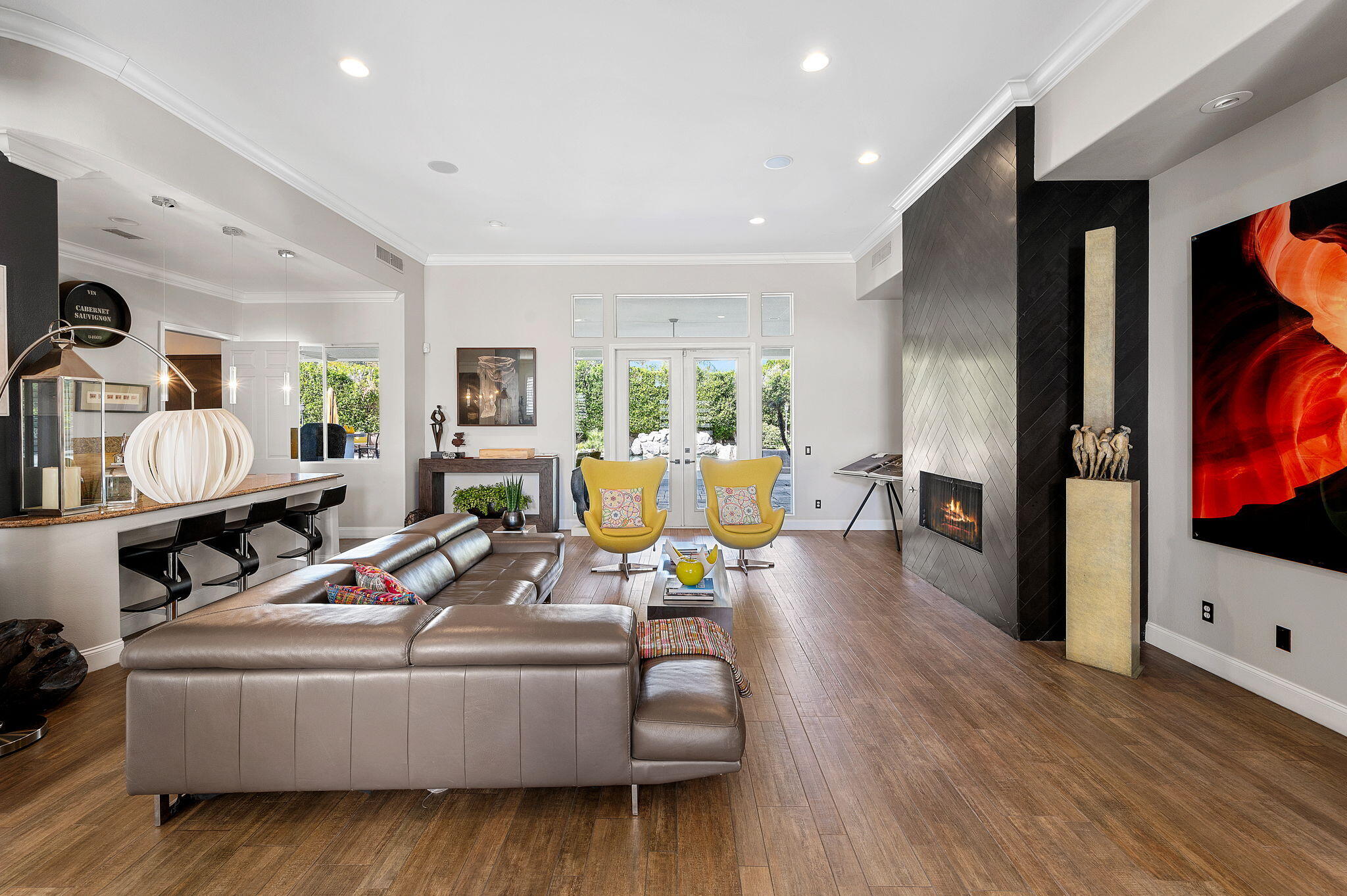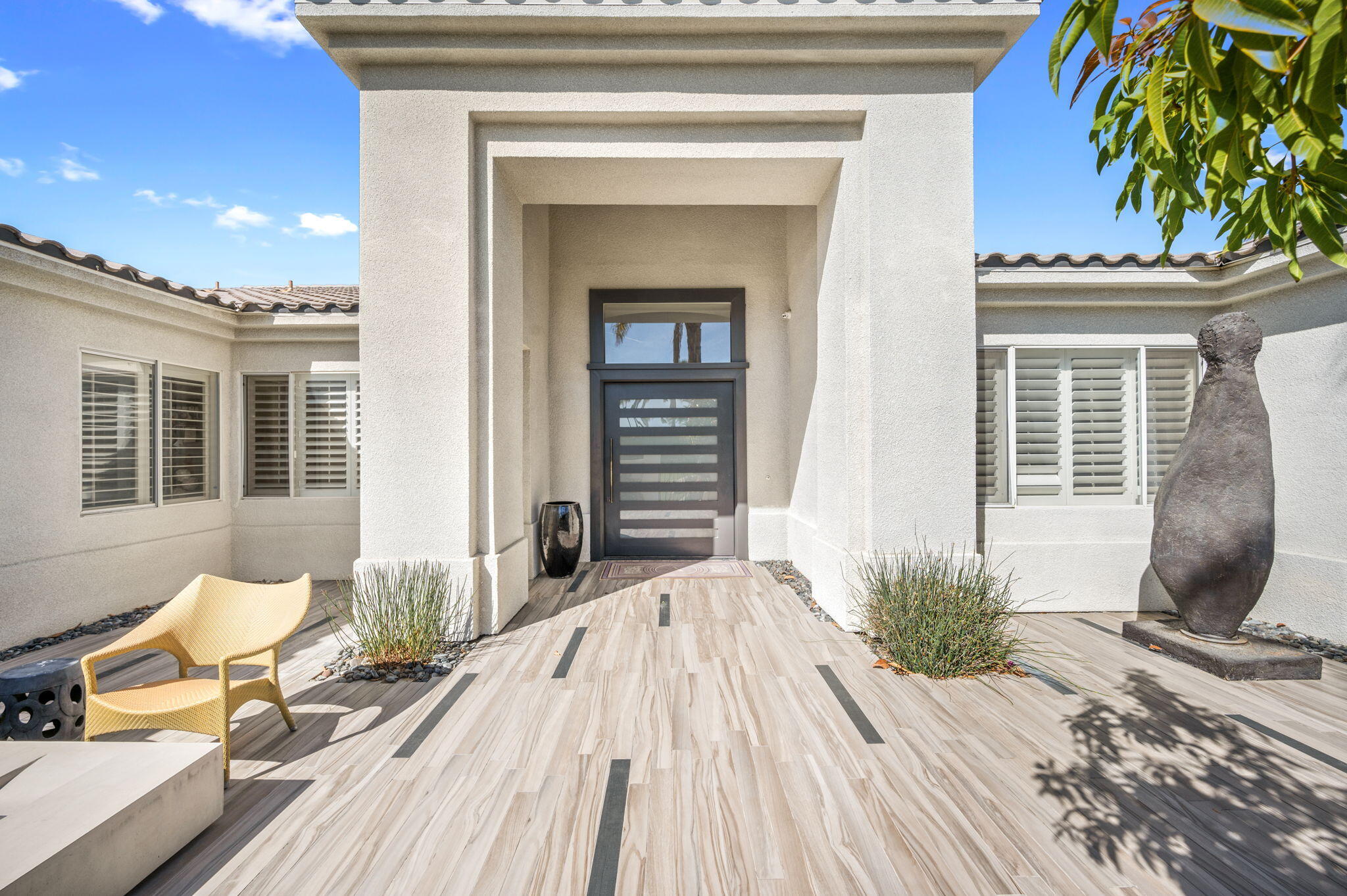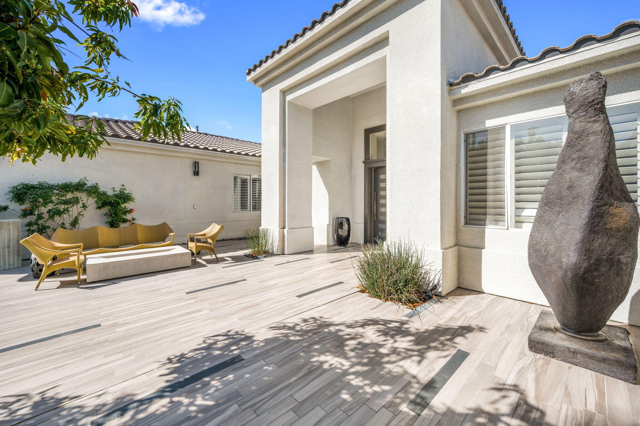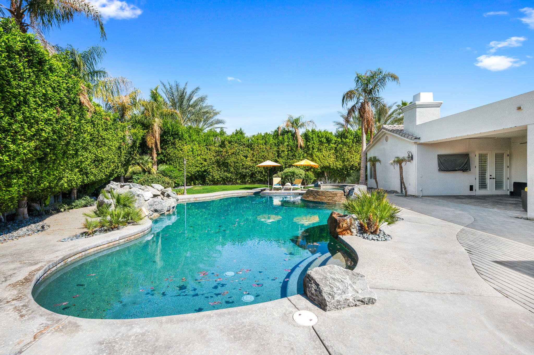 Exquisite home located in the heart of Rancho Mirage behind the prestigious gates of Victoria Falls. This oversized lot sits on a quiet cul-de-sac. An elegantly tiled courtyard welcomes you into the grand entrance of an open and spacious floor plan. The interior has been stylishly upgraded throughout, featuring wood like tile flooring, custom cabinetry, ceiling fans, custom lighting, and much more. The grand wet bar, complete with a walk-in 400-bottle wine fridge, is an entertainer's dream. The master suite includes a cozy fireplace and a large, sophisticated walk-in closet. Additionally, there are three more suites, each with a private full bathroom. An attached casita with a separate entrance is perfect for guests. The lush backyard offers mature landscaping, stone pavers, a misting system, a private pool and spa, a waterfall feature, and a built-in BBQ with a kitchen and a beer tap. Buyer to assume the solar loan. This home is move-in ready!Interested in this Listing?