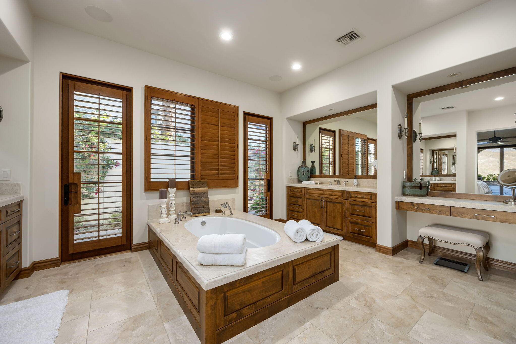 Everything you want in a home, plus privacy, quietude, and stunning across-valley mountain views. Set in sought-after Villas of Mirada, a charming, gated community nestled among the foothills of lovely Rancho Mirage, and central to everything. The spacious primary suite features a luxury bathroom, deep walk-in closet, and opens through pocket doors to a covered loggia with fireplace and breathtaking panoramas. A secondary suite has it all. And an additional, third bedroom suite shares a bathroom with a fourth bedroom set up as a customized-media-room/remote-working-office (with Murphy bed). A gourmet kitchen with sit-up island beckons, fully equipped with Wolf and Sub-Zero appliances. The open and light great room with soaring ceilings engenders a charming yet contemporary feel, with wall-spanning pocket doors, motorized blinds, custom Travertine floors, and beautiful hearth fireplace. And for total, all-season comfort, a four zone HVAC system awaits. The over-sized lot frames a large and attractive entertaining patio with pebble finish, infinity-edge pool & spa overlooking unparalleled, eye-popping vistas. A true Desert getaway, 43 Mount San Jacinto Circle offers tranquility days and sparkling night lights that amaze! Nearby, the prestigious Ritz-Carlton Hotel offers residents exclusive discount privileges.Interested in this Listing?
