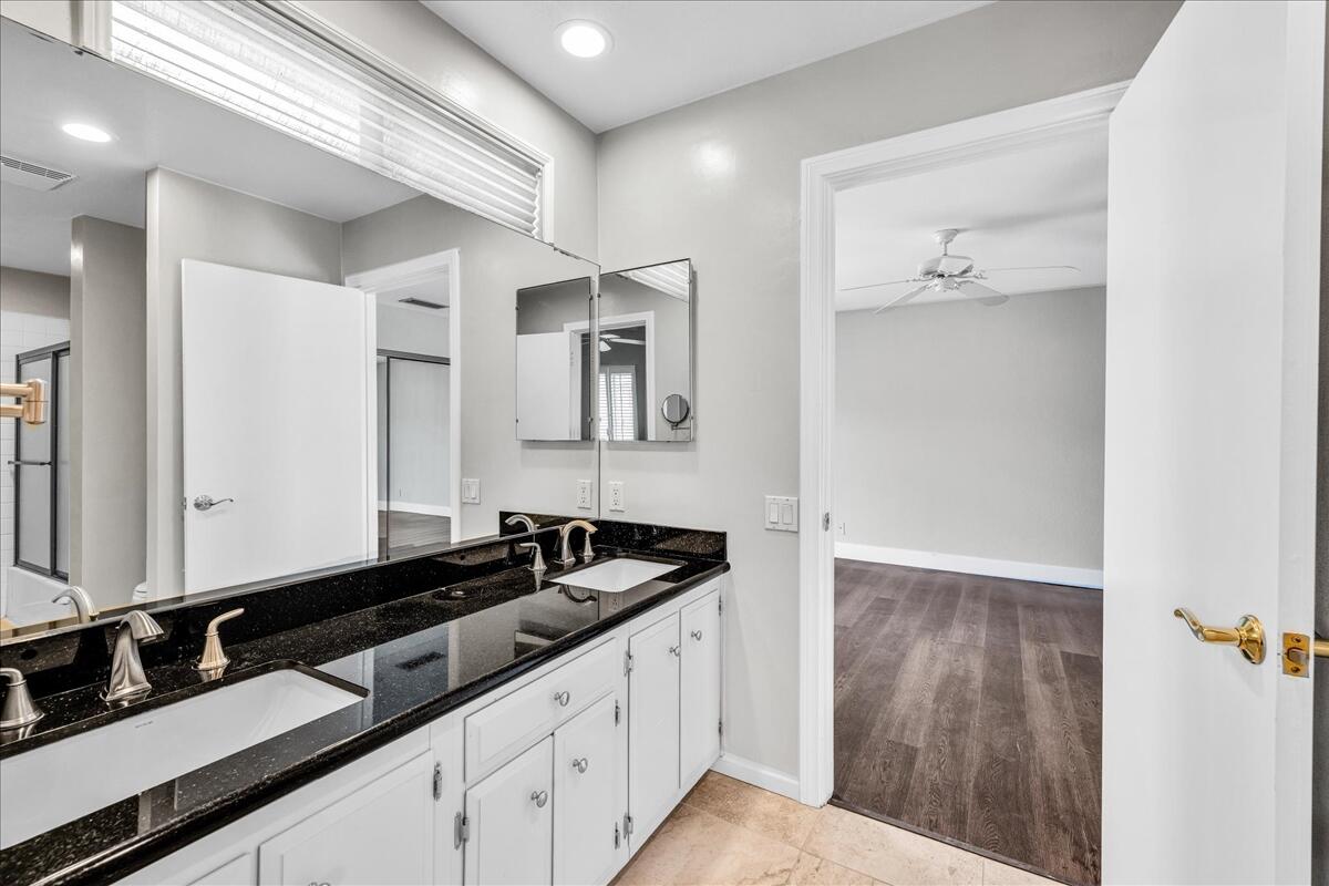 Located in the gated community of Presidential Estates in Rancho Mirage, this beautifully maintained 3BD/2.5BA contemporary home offers luxury, comfort, and low HOA fees. Situated on a private interior lot, it features soaring cathedral ceilings, an open floor plan, and a spacious living room with decorative fireplace and built-in wet bar. The large family room includes custom cabinetry, while the upgraded kitchen boasts granite countertops, center island, and stainless steel appliances. The oversized primary suite offers a soaking tub, walk-in shower, and generous closet space. The gorgeous backyard is designed for outdoor living with a gas fireplace, pergola-style patio covering, built-in misting system, and mature landscaping. Additional features include an indoor laundry room, two-car garage, and a separate space ideal for a golf cart, storage, or workshop. Located minutes from Rancho Mirage's Restaurant Row, this move-in ready home combines style, functionality, and a prime location.Interested in this Listing?