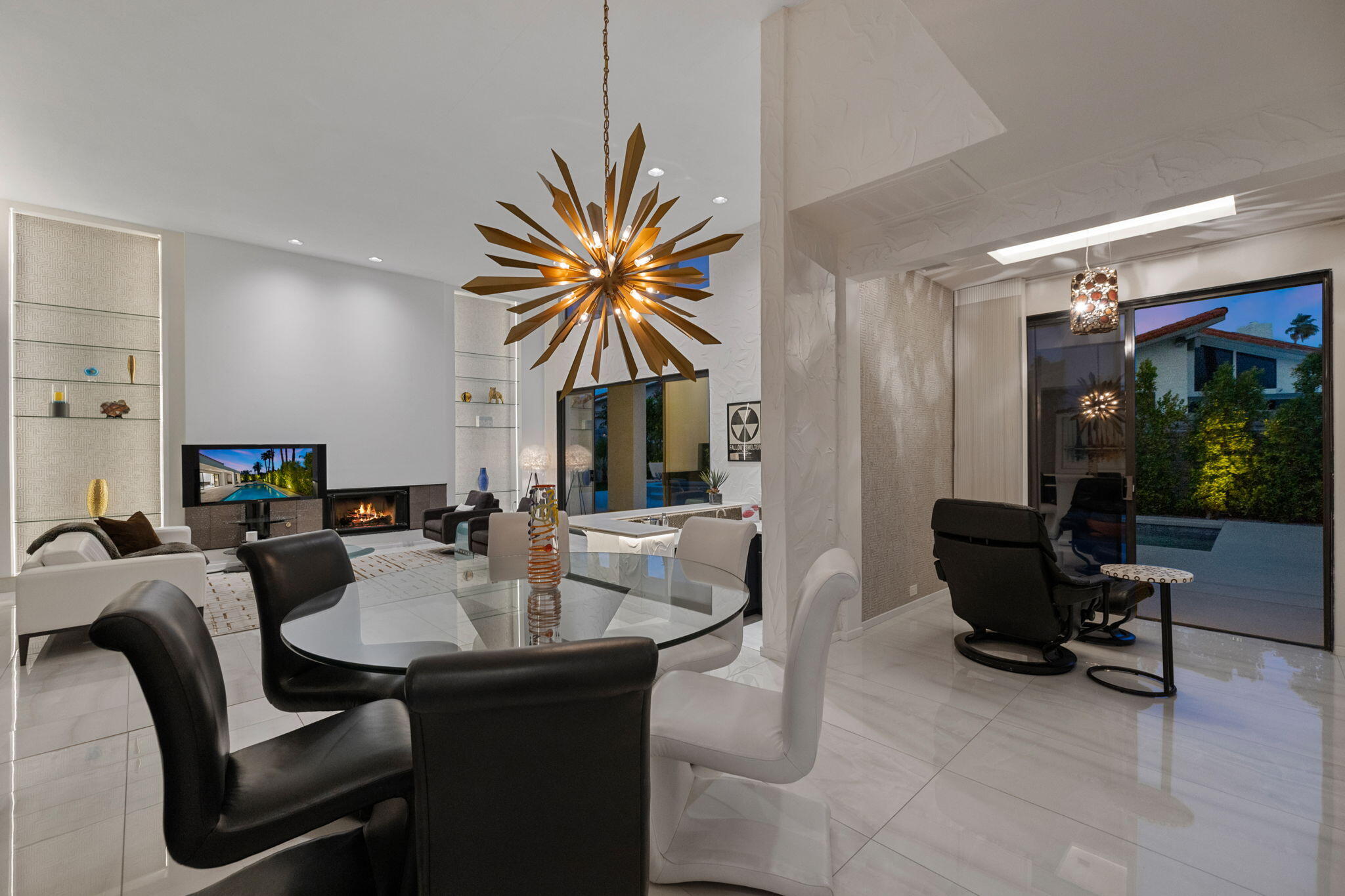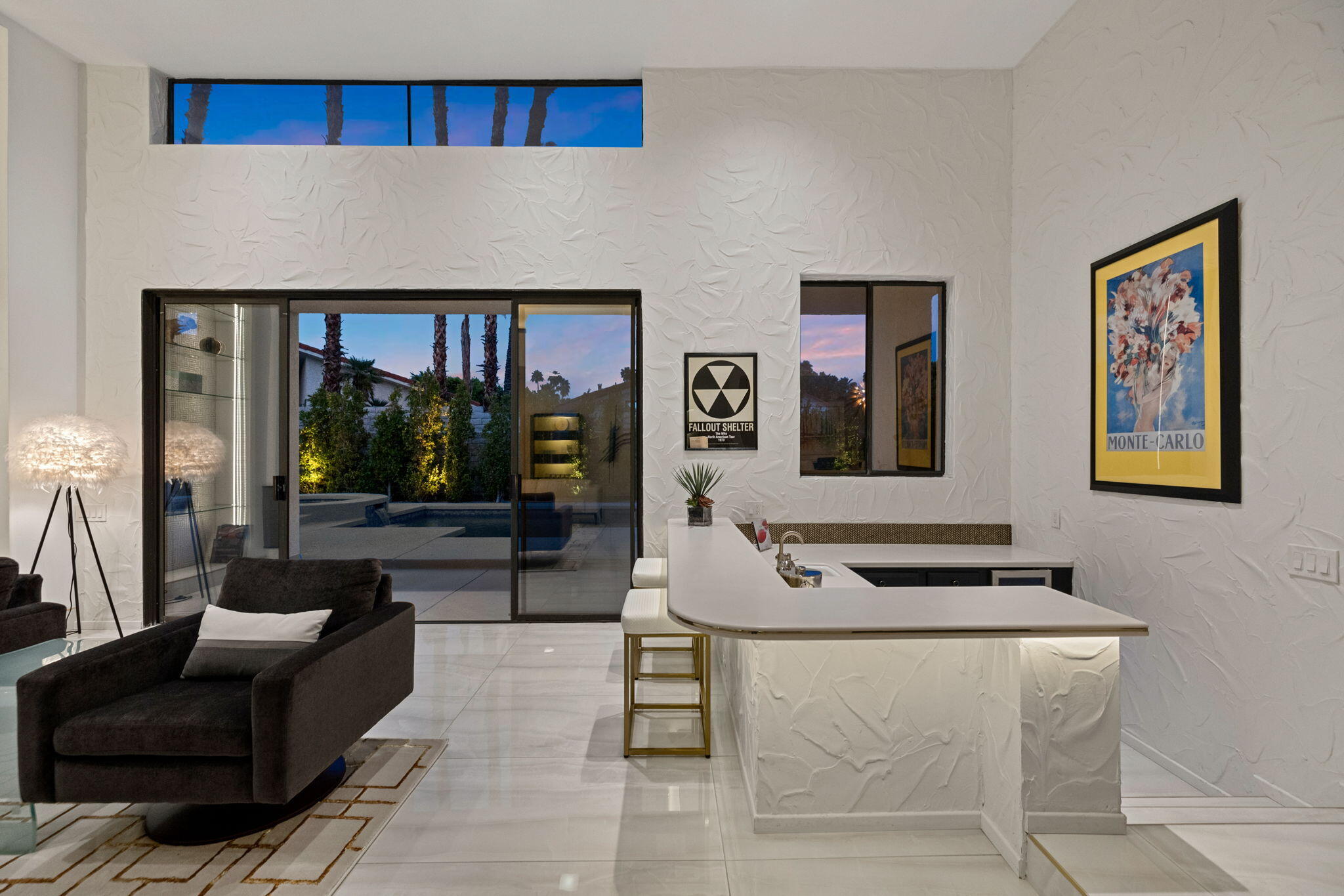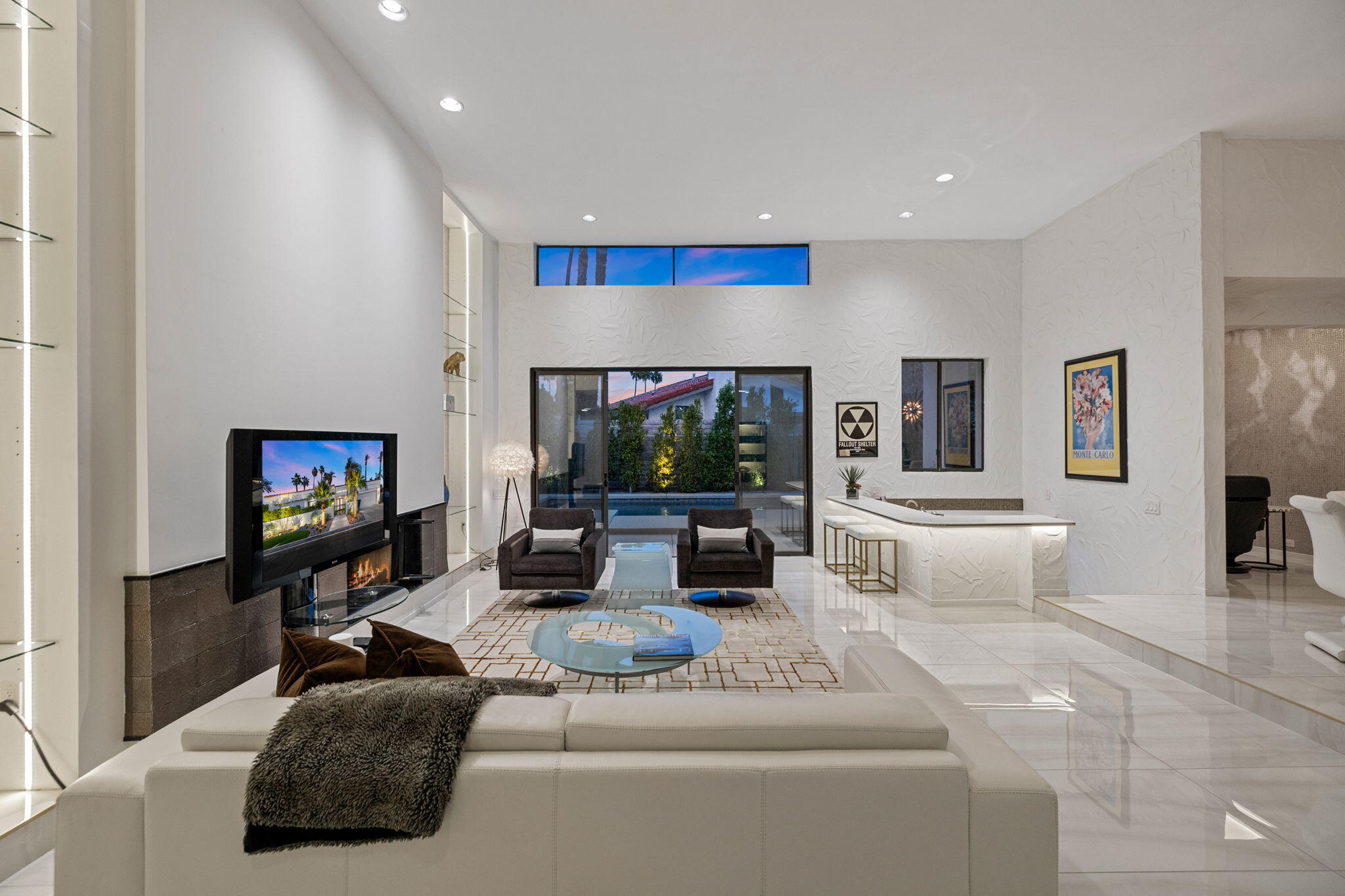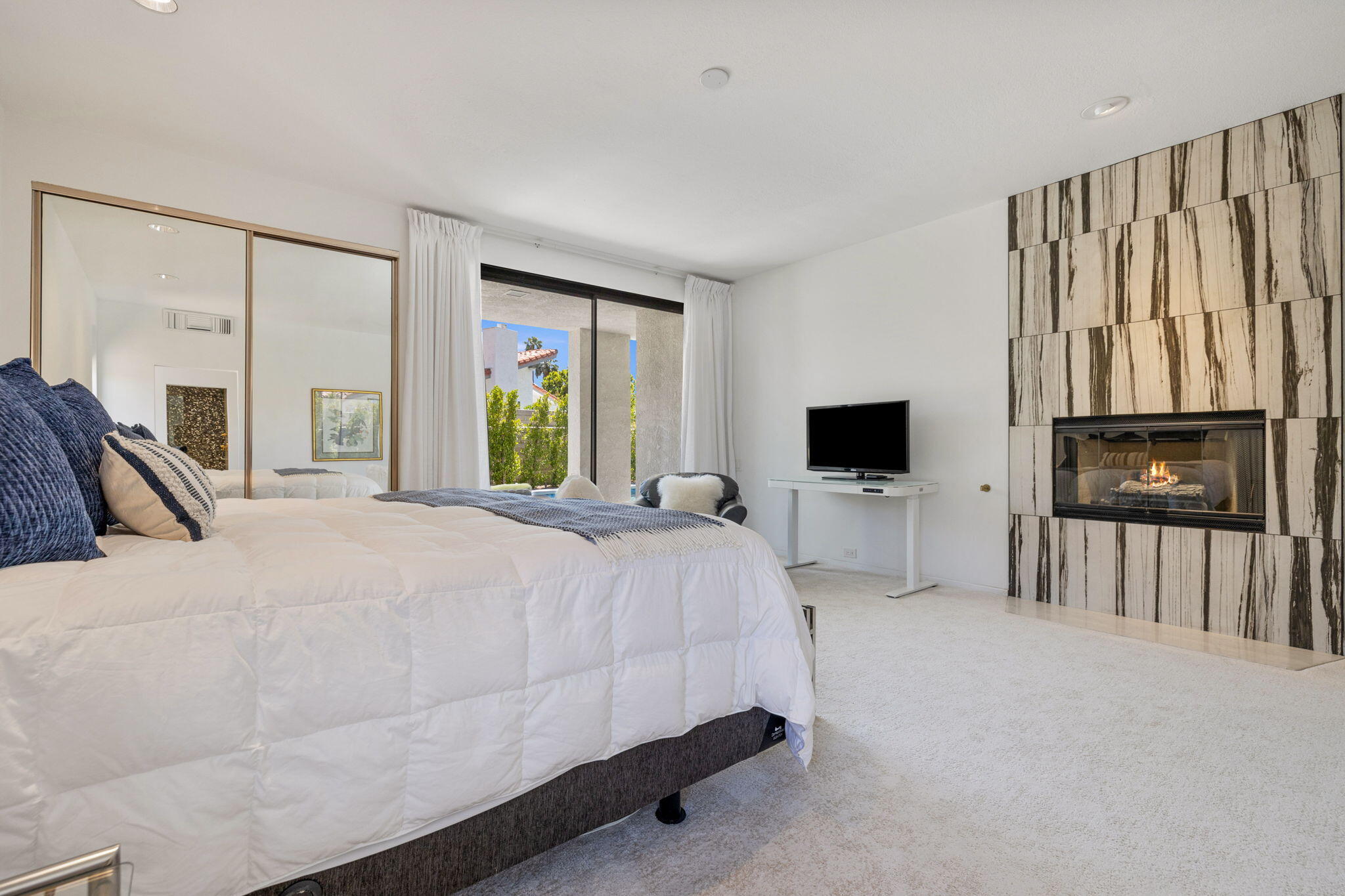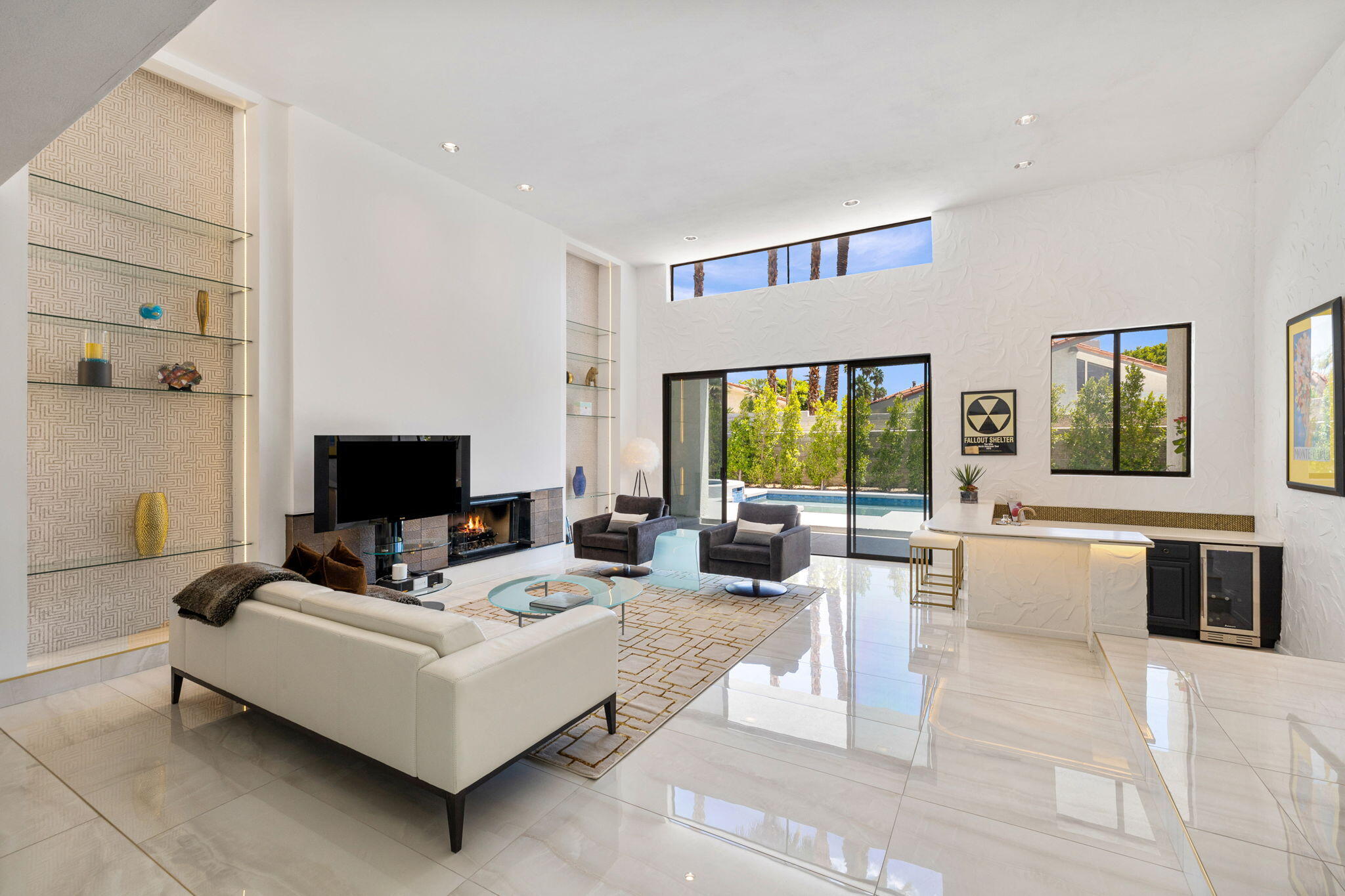 Architectural Luxury in the Heart of Rancho Mirage. Welcome to your private designer retreat in the exclusive gated enclave of Mission Pointe--a rare opportunity to own the original model home, architecturally distinct and meticulously reimagined for modern luxury living.Set on a generous 10,000+ sq ft lot, this 3-bedroom, 4-bath residence blends dramatic contemporary design with refined sophistication. A private courtyard entry opens to stunning interiors anchored by Italian 24'' x 48'' porcelain tile and soaring ceilings that amplify light and space throughout. Every room connects seamlessly to the outdoors via oversized sliders, creating a harmonious indoor-outdoor flow ideal for desert living.The open-concept living and dining gallery is enhanced by a custom sunken bar--a nod to classic Palm Springs entertaining--while a sculptural fireplace adorned with handcrafted tile adds a focal point of artistry and warmth. Curated LED lighting, bespoke wall textures, designer wallpapers, and custom millwork elevate each space with effortless style.The gourmet island kitchen is a chef's dream, featuring leathered stone countertops, premium Italian appliances, Monogram refrigeration, Bosch speed oven, and a cozy breakfast lounge with garden views.All three-bedroom suites offer private luxury, including spacious closets and spa-inspired baths. The main primary suite features a California Closet system with integrated lighting and the junior primary has a stunning mountain view--a true retreat.Outside, professionally designed landscaping frames the sparkling Pebble Tec pool and spa, complete with integrated lighting and multiple lounging areas--surrounded by mature palms and lush greenery for ultimate privacy.Additional features include an epoxy-finished two-car garage with custom storage and pet wash station, indoor laundry, and a low HOA offering access to a private gym, tennis, and pickleball courts.This one-of-a-kind residence offers a rare combination of architectural diInterested in this Listing?