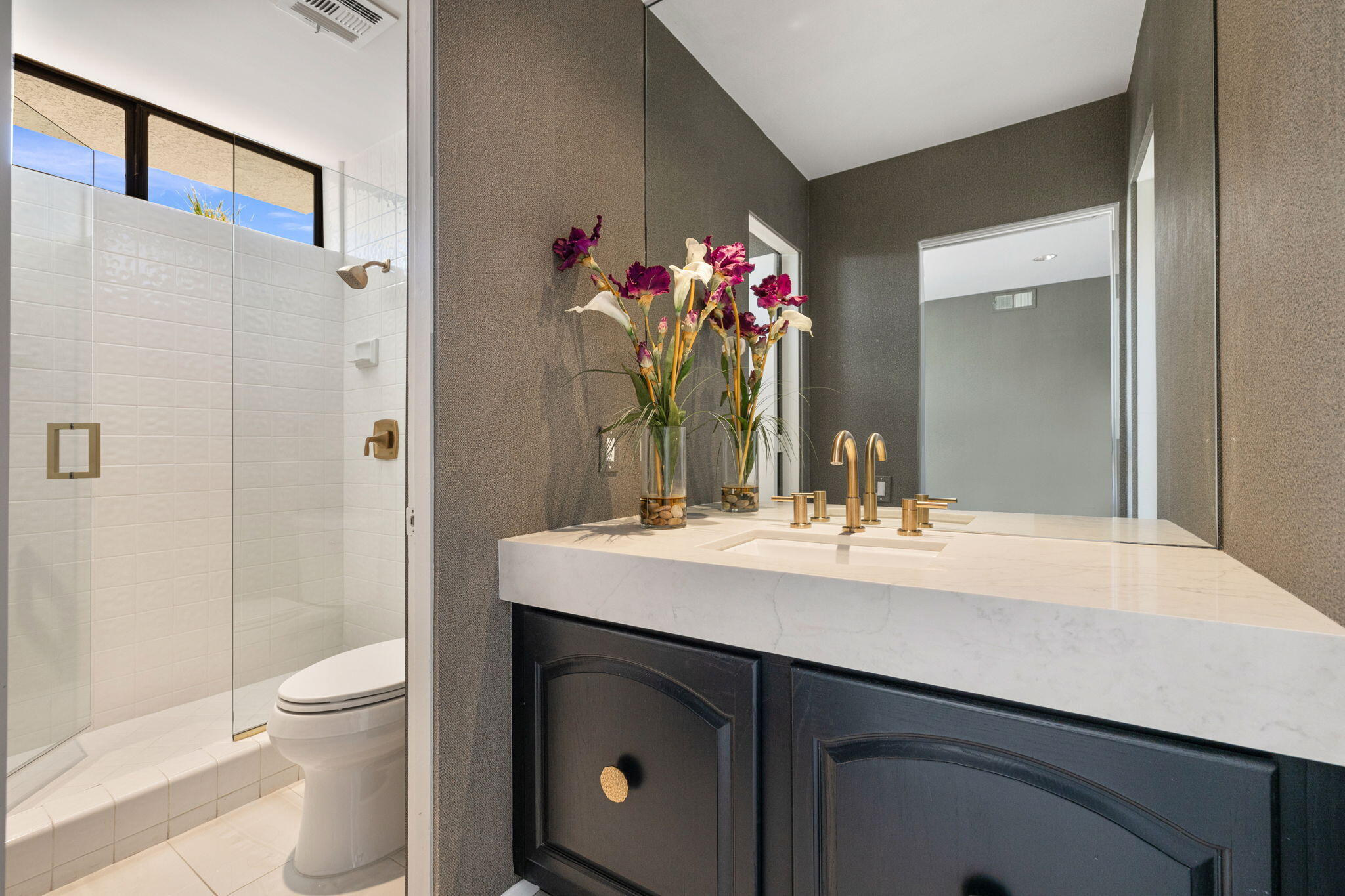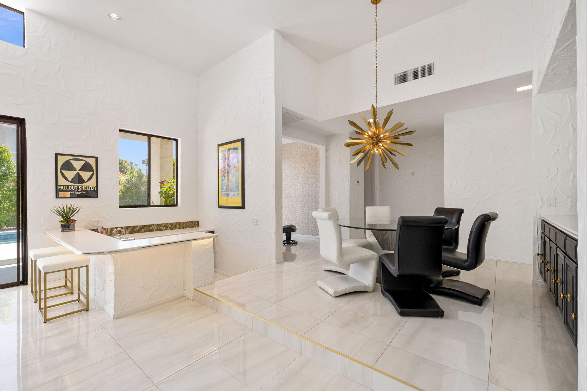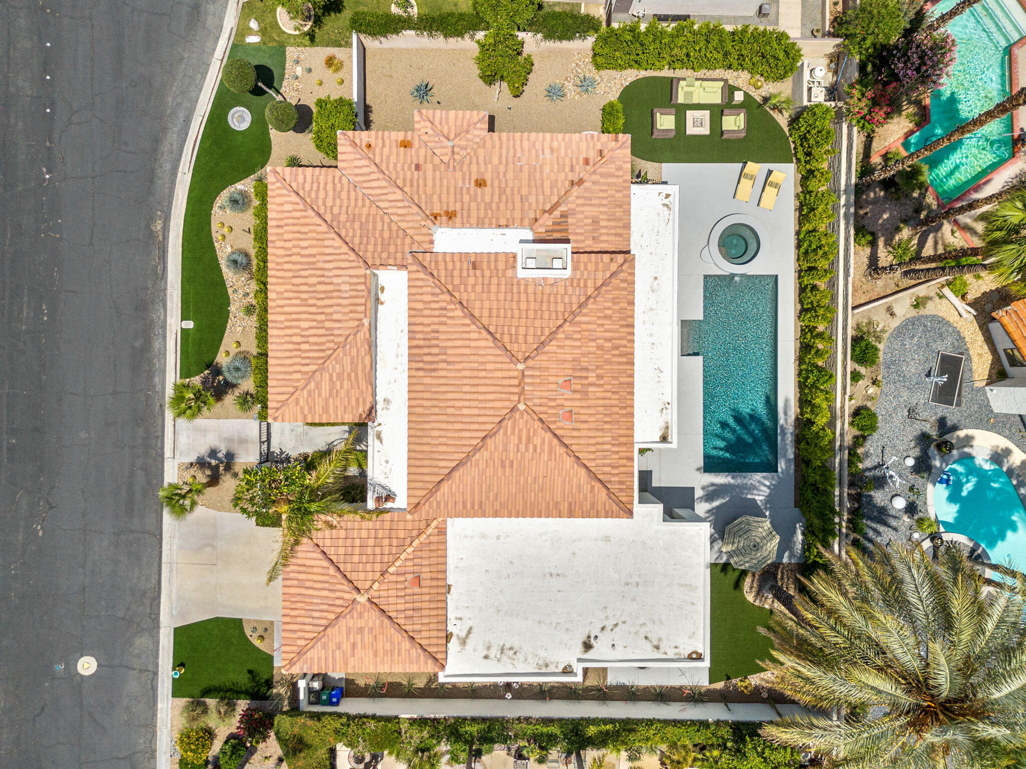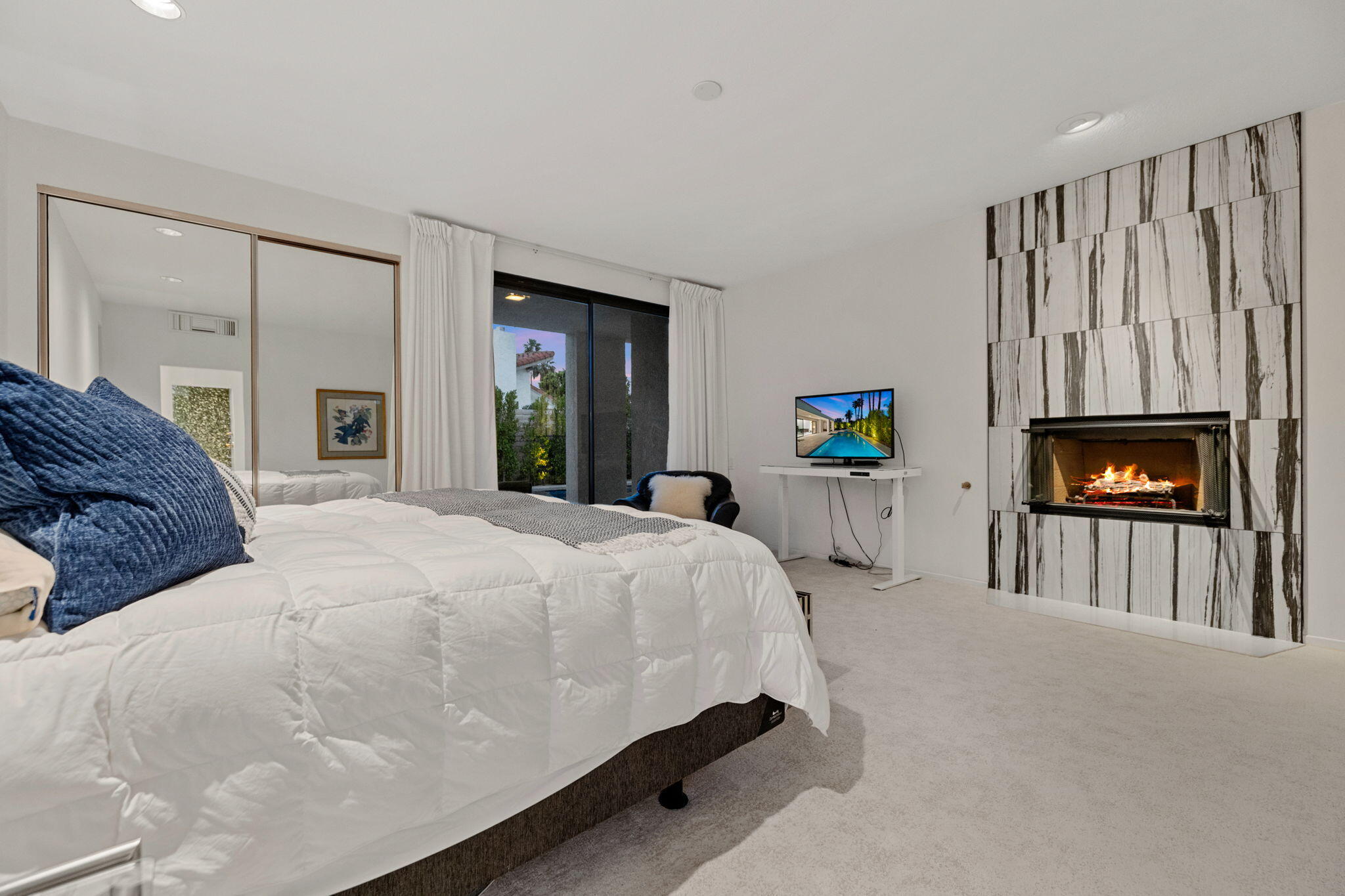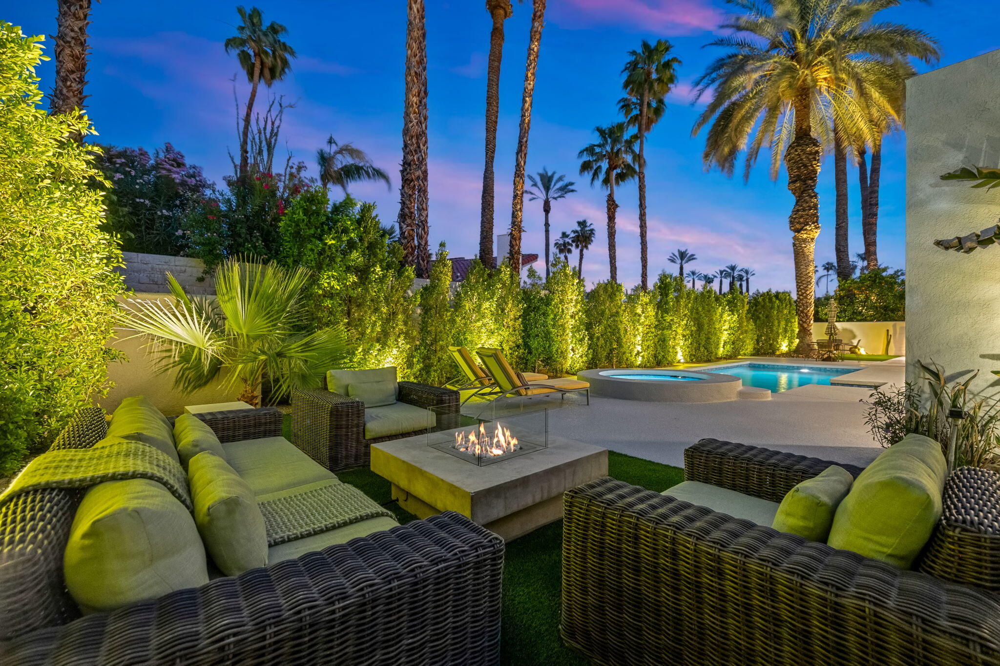 Architectural Luxury in the Heart of Rancho Mirage. Welcome to your private designer retreat in the exclusive gated enclave of Mission Pointe--a rare opportunity to own the original model home, architecturally distinct and meticulously reimagined for modern luxury living.Set on a generous 10,000+ sq ft lot, this 3-bedroom, 4-bath residence blends dramatic contemporary design with refined sophistication. A private courtyard entry opens to stunning interiors anchored by Italian 24'' x 48'' porcelain tile and soaring ceilings that amplify light and space throughout. Every room connects seamlessly to the outdoors via oversized sliders, creating a harmonious indoor-outdoor flow ideal for desert living.The open-concept living and dining gallery is enhanced by a custom sunken bar--a nod to classic Palm Springs entertaining--while a sculptural fireplace adorned with handcrafted tile adds a focal point of artistry and warmth. Curated LED lighting, bespoke wall textures, designer wallpapers, and custom millwork elevate each space with effortless style.The gourmet island kitchen is a chef's dream, featuring leathered stone countertops, premium Italian appliances, Monogram refrigeration, Bosch speed oven, and a cozy breakfast lounge with garden views.All three-bedroom suites offer private luxury, including spacious closets and spa-inspired baths. The main primary suite features a California Closet system with integrated lighting and the junior primary has a stunning mountain view--a true retreat.Outside, professionally designed landscaping frames the sparkling Pebble Tec pool and spa, complete with integrated lighting and multiple lounging areas--surrounded by mature palms and lush greenery for ultimate privacy.Additional features include an epoxy-finished two-car garage with custom storage and pet wash station, indoor laundry, and a low HOA offering access to a private gym, tennis, and pickleball courts.This one-of-a-kind residence offers a rare combination of architectural diInterested in this Listing?