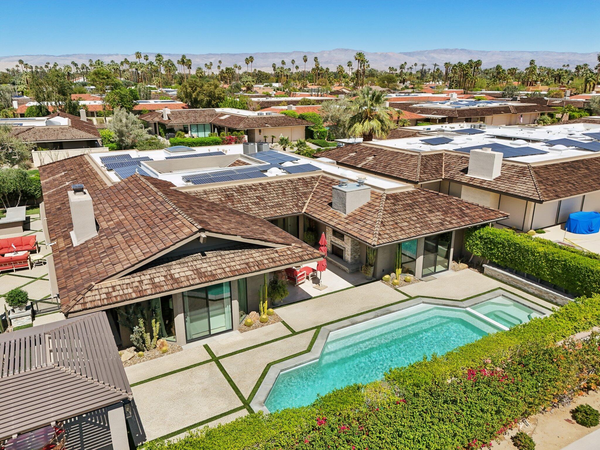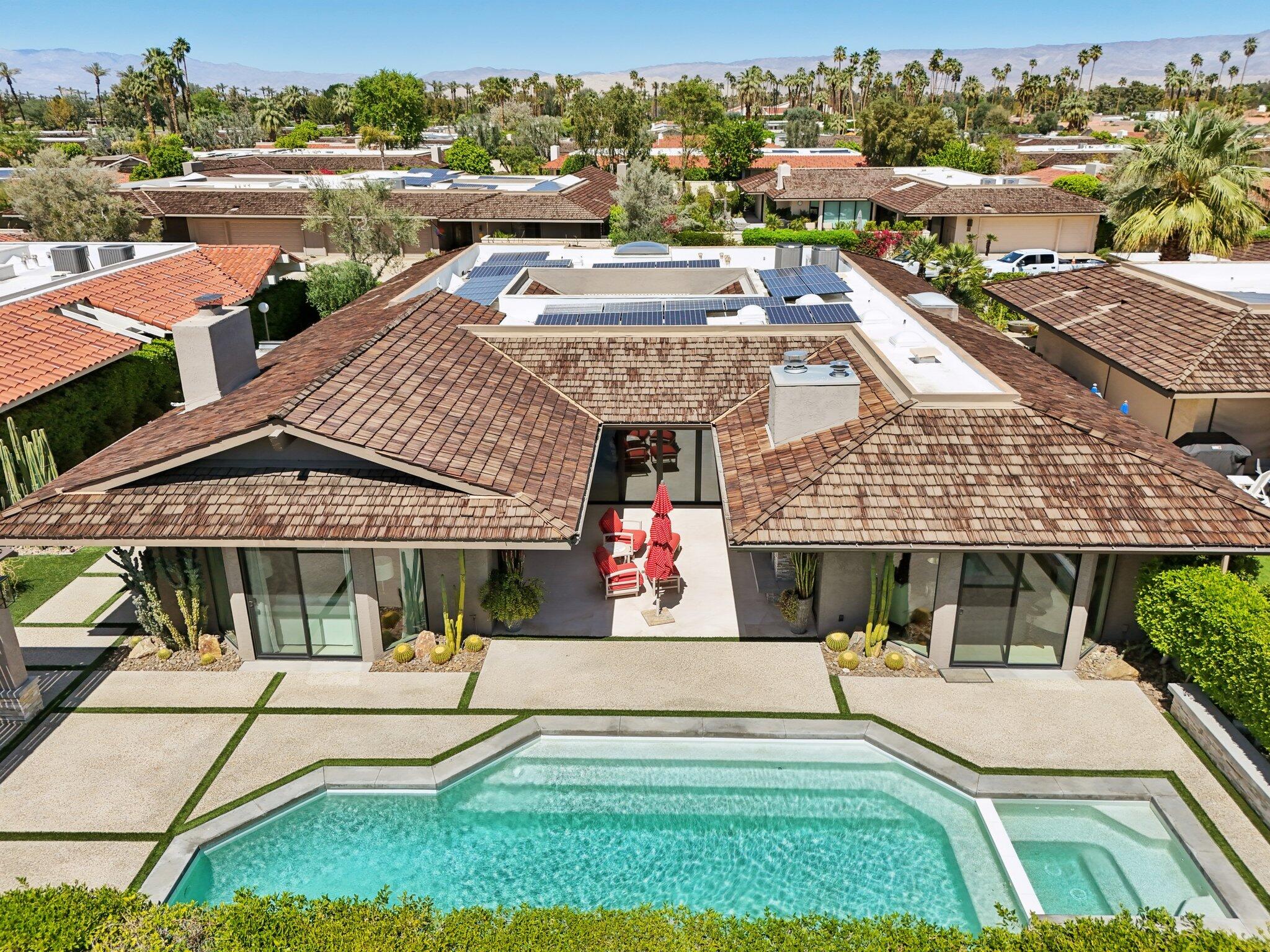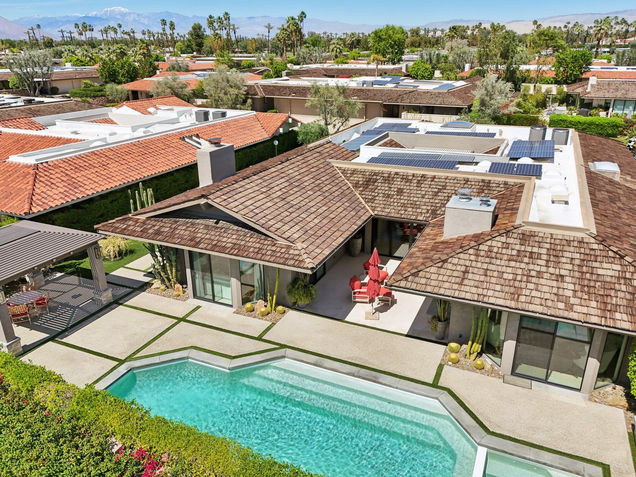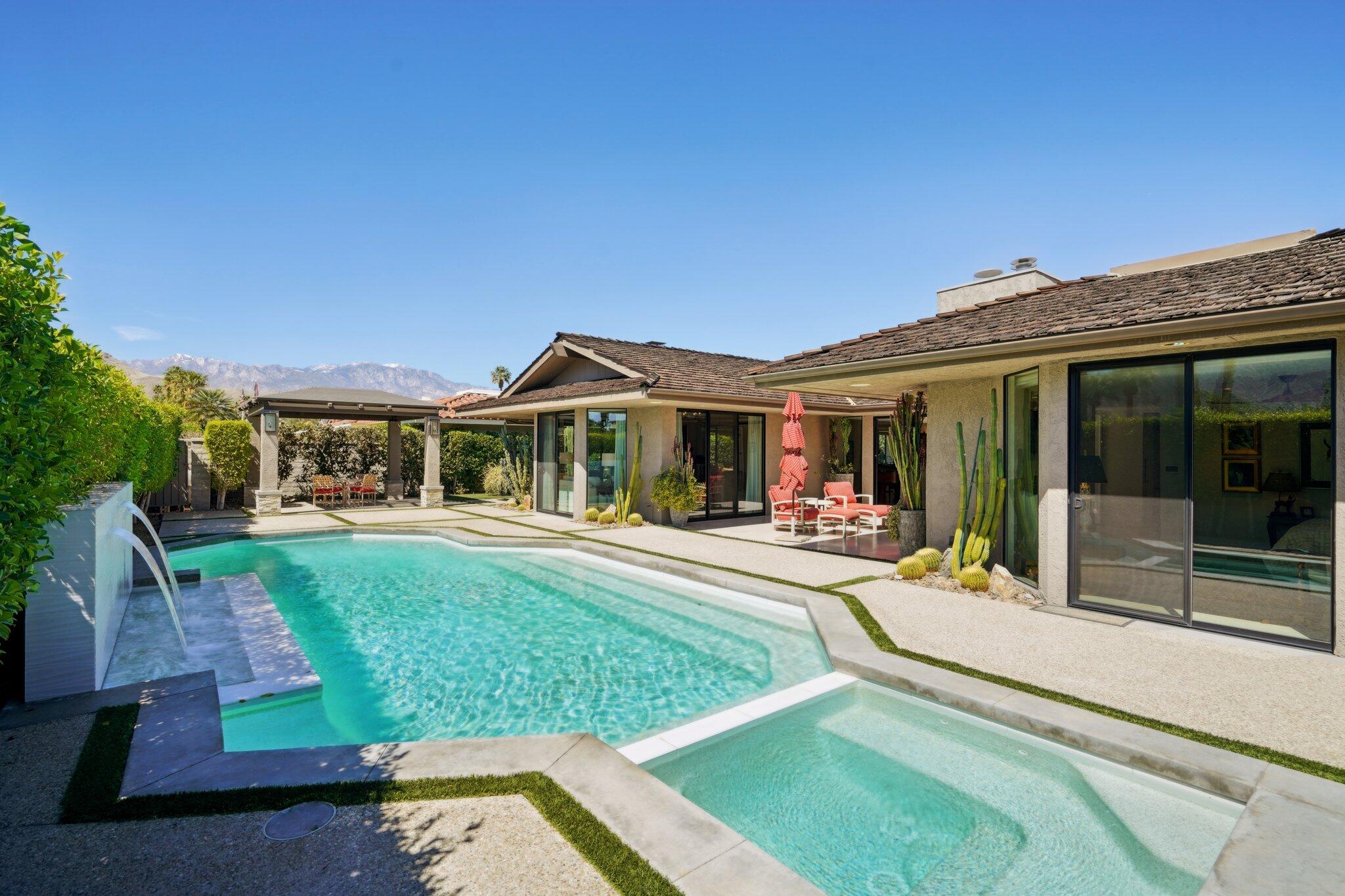 Exquisite Free-Standing La Jolla Floor Plan with Breathtaking Mountain Views & Luxury UpgradesExperience the pinnacle of desert living in this stunning home featuring cathedral ceilings and spectacular mountain views. Designed for both relaxation and entertaining, the expansive outdoor oasis boasts a sparkling pool with a contemporary water wall, a stylish pergola, an outdoor barbecue, a cozy fireplace, and retractable awnings--perfect for year-round enjoyment. Inside, sophisticated design meets modern comfort with level 5 smooth coat walls, Portuguese limestone flooring, and newer double and triple-pane windows. The grand foyer welcomes you with beautiful bi-fold doors, seamlessly blending indoor and outdoor living. The chef's kitchen is a masterpiece, featuring marble countertops, custom floor-to-ceiling cabinetry, a large walk-in butler's pantry, and top-of-the-line Thermador appliances.The primary suite is a spa-like retreat, complete with a dual steam shower, marble counters, and serene views. A dedicated home office in the third bedroom adds versatility to this exceptional home. Additional highlights include 32 owned solar panels with two battery backup units ensuring efficiency and peace of mind. The Springs, located in the heart of the Coachella Valley, offers an 18 hole championship golf course, pickle ball and tennis courts, fitness center and beautiful clubhouse that plays host to numerous social activities year-round. This stately, regal residence is truly a rare find--schedule your private tour today!Interested in this Listing?