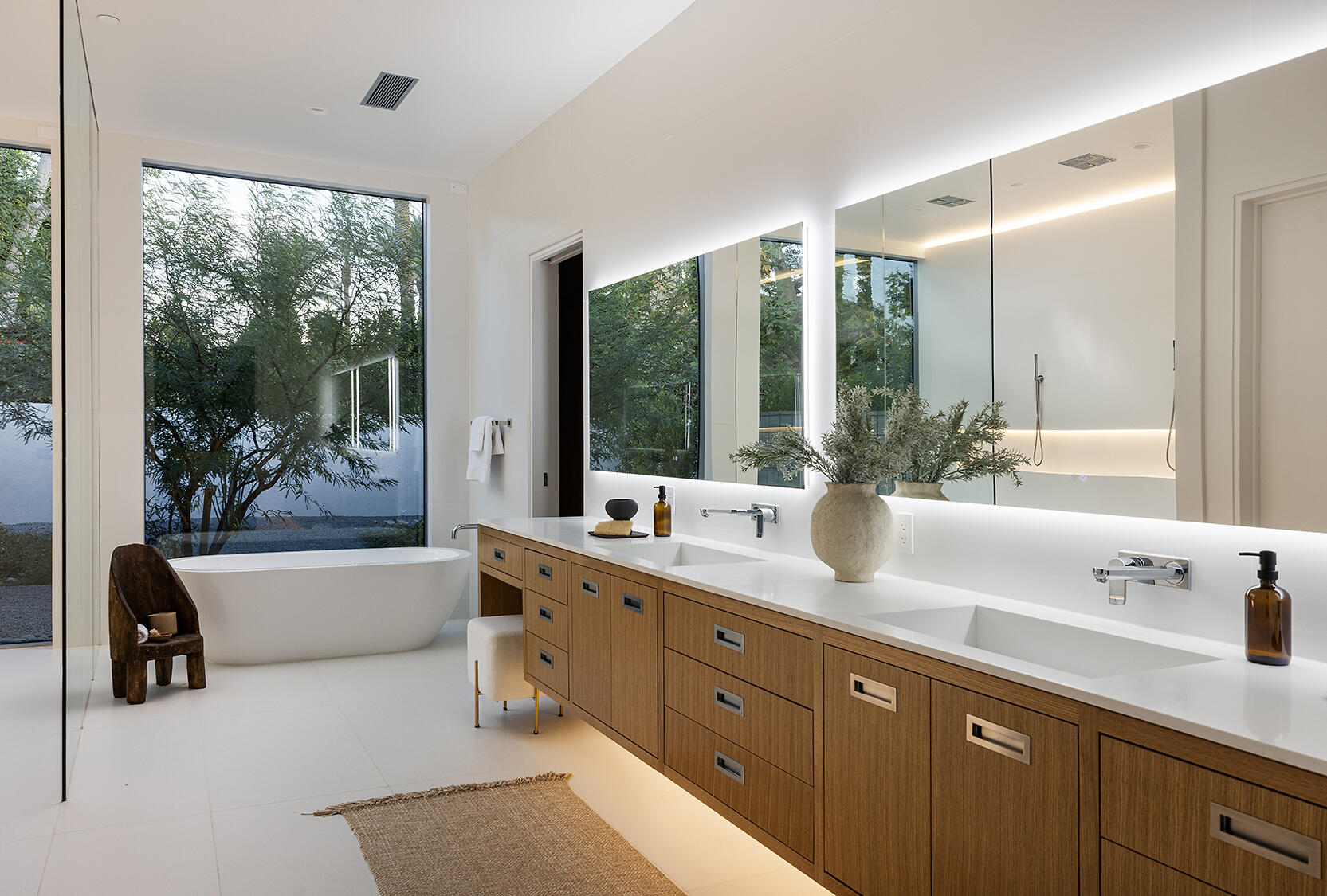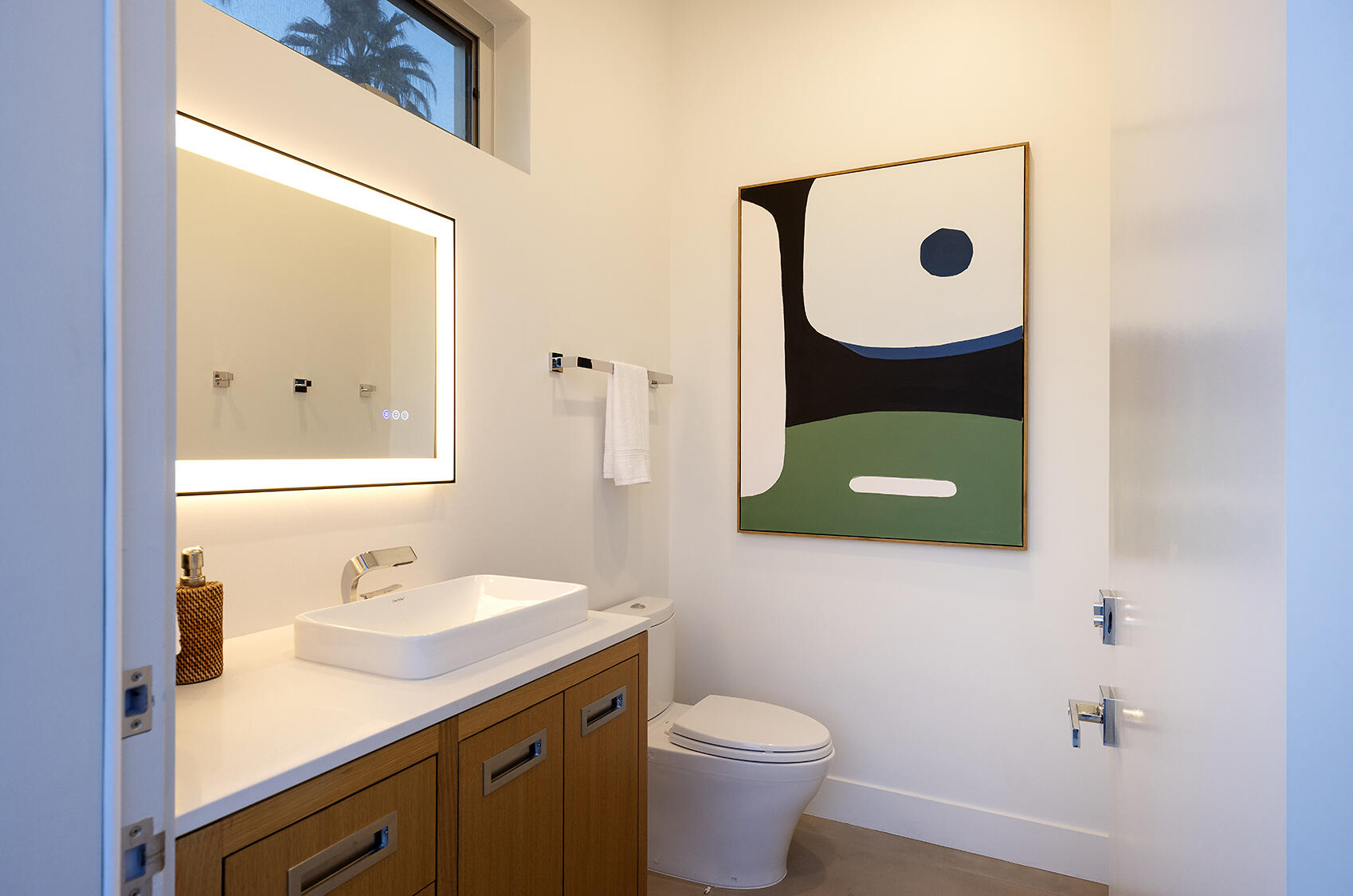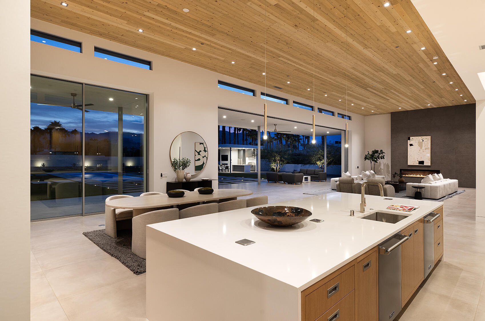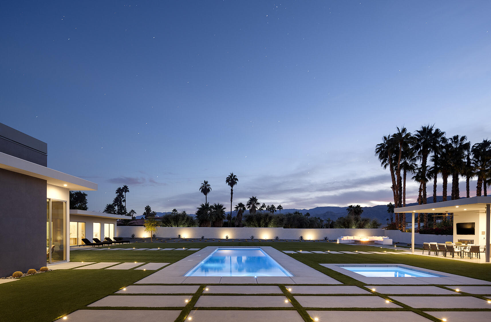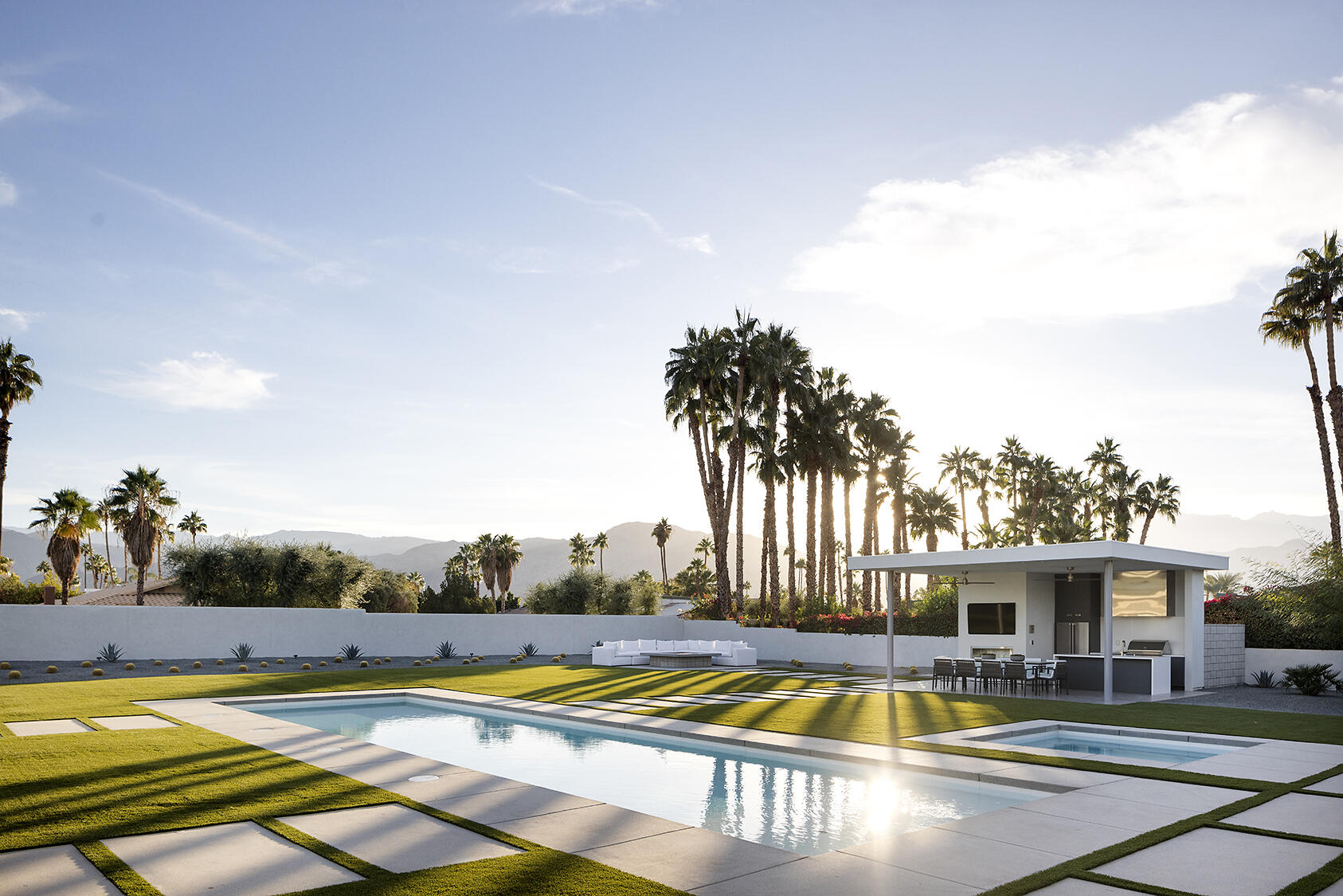 Nestled on a private 1-acre lot (.98) in an exclusive gated community, this New Construction custom-built luxury estate embraces the allure of mid-century modern elegance in the Tamarisk Country Club neighborhood, where timeless design harmonizes with organic minimalist architecture. Every corner whispers a story of sophistication and simplicity, creating a serene escape that feels both nostalgic and fresh. With 6 bedrooms, 7.5 bathrooms, and over 6,700 sq. ft. of meticulously crafted living space. The grand living room features soaring 16-ft ceilings, a remote-controlled 84'' fireplace, and expansive automated doors that frame breathtaking backyard views. Elegant rustic pine-stained ceilings add warmth and charm. The gourmet kitchen is a chef's dream, showcasing a 13.5-ft white quartz island, a Viking 6-burner stovetop with a 48'' range, a built-in Miele coffee maker, dual dishwashers, and custom lighting. Adjacent dining and living spaces offer the perfect flow for intimate gatherings and grand entertaining. The tranquil primary suite includes a cozy fireplace, custom grasscloth wallpaper, and a spa-inspired bath with a steam shower, dual rainfall shower heads, and Toto toilets. The custom-designed closet features bespoke cabinetry, motorized rods, and integrated lighting. The outdoor living space is a private retreat with a complete outdoor kitchen, a linear swimming pool with an integrated water feature. Detached private casita.Interested in this Listing?