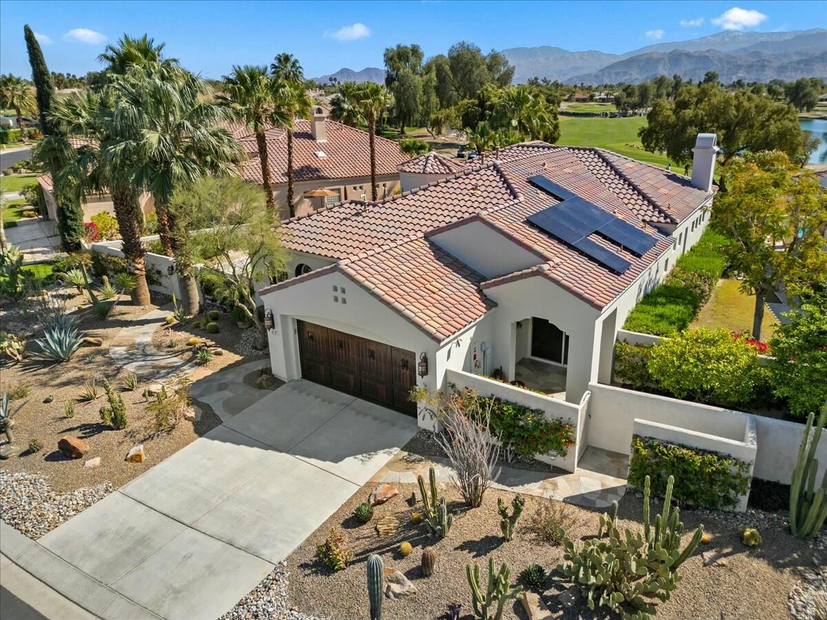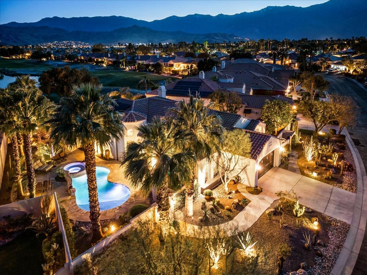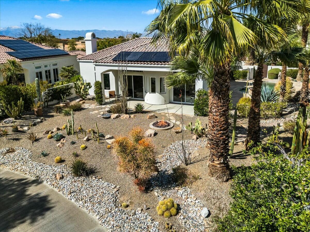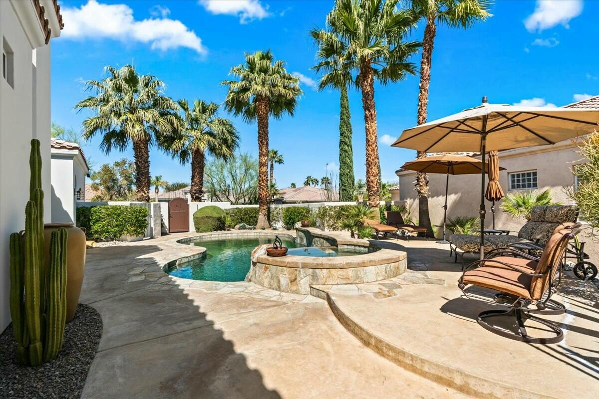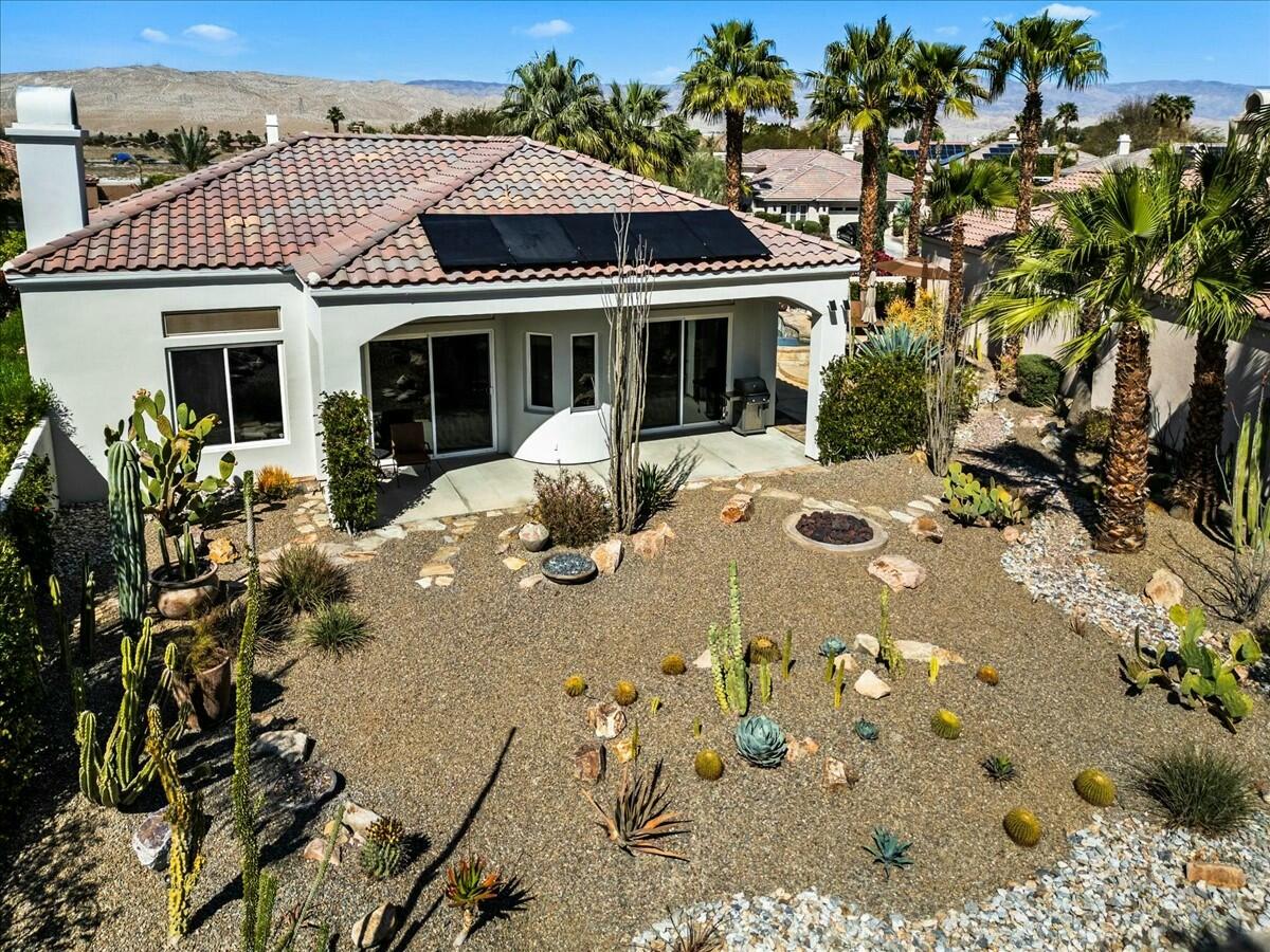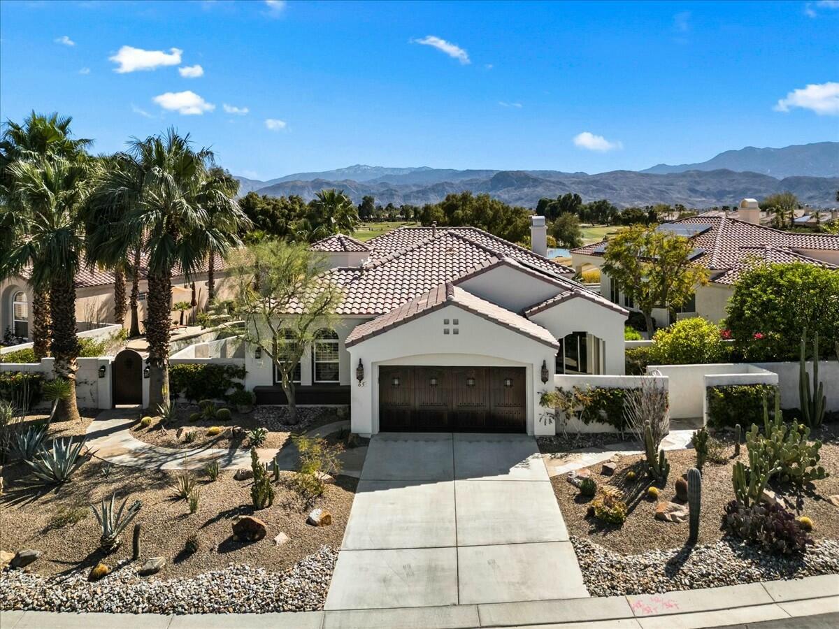 Enjoy the desert lifestyle in this stunning South-facing view home in guard gated Mira Vista. Located overlooking triple fairways with a mountain backdrop, this 3 bedroom 2.5 bath home is sure to impress. No detail was missed from the warm color palate and great room openness to the stacked stone fireplace, high-end finishes, zoned sound system and stunning lighting. The outdoor living provides endless enjoyment with the private gated courtyard featuring a PebbleTec, saltwater pool and spa with waterfall. Extensive desert landscaping in the back is accented by a fire pit and patios to enjoy the endless view. Efficiency-minded, the home offers new HVACs and new tankless water heater as well as a just installed, Owned 21 panel Solar system, and a back-up battery wall inside the painted garage with epoxy floors and storage for work area. Offered turnkey furnished including gas BBQ & pool furniture so you can enjoy immediately. Mira Vista's low HOA includes internet & fiber optic TV, 24 hour guard, lighted tennis & pickle ball courts, a huge community pool & BBQ pavilion in a convenient mid-valley location.Interested in this Listing?