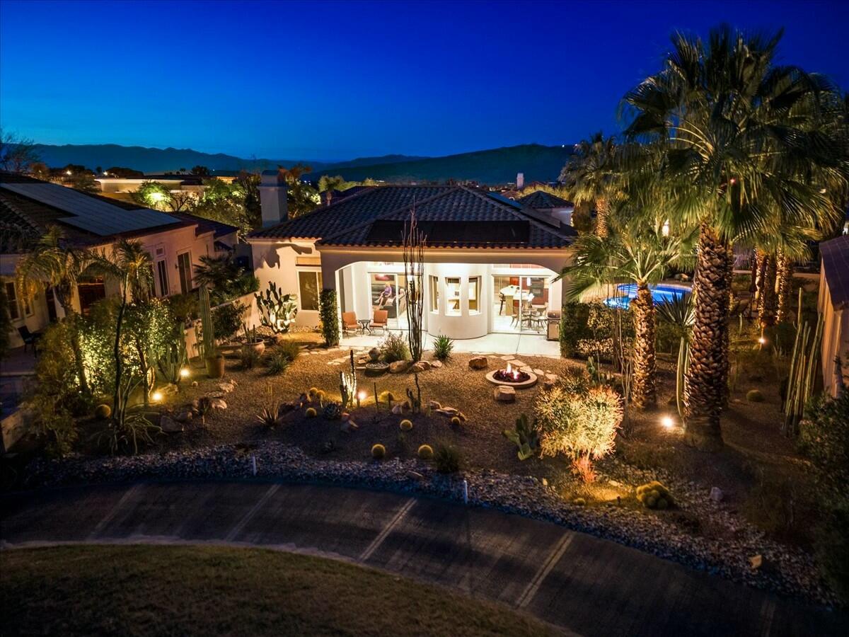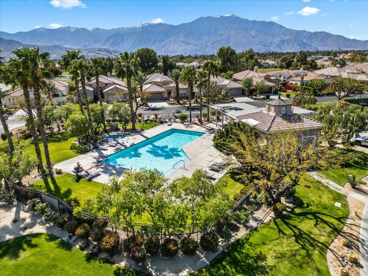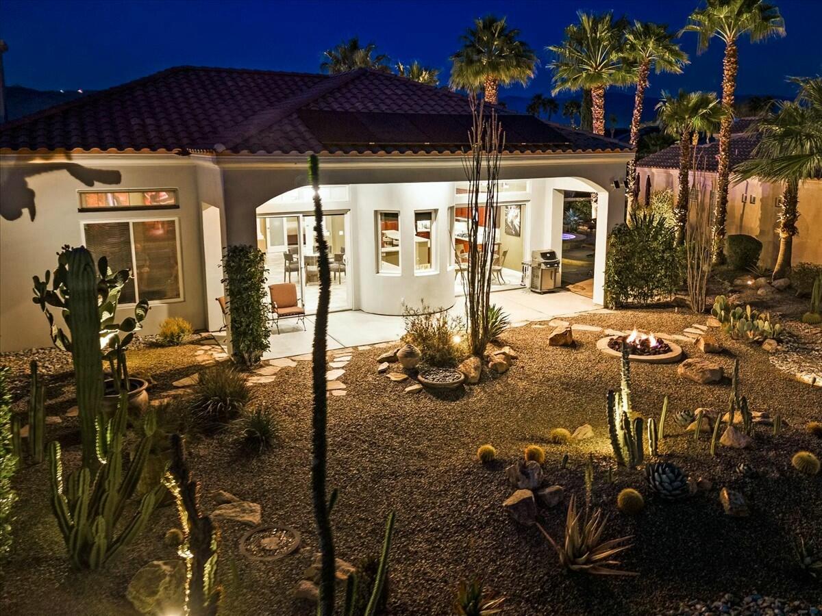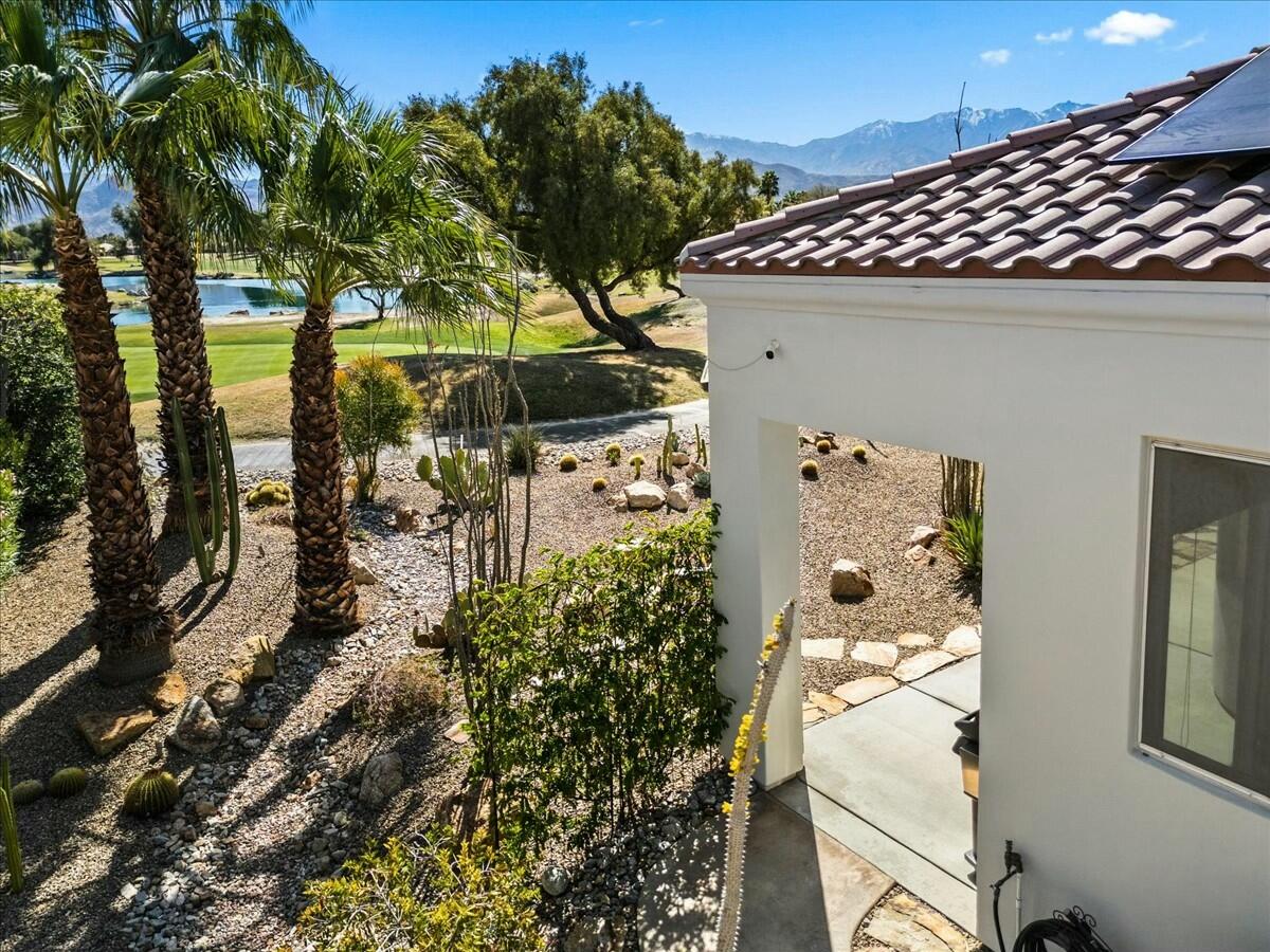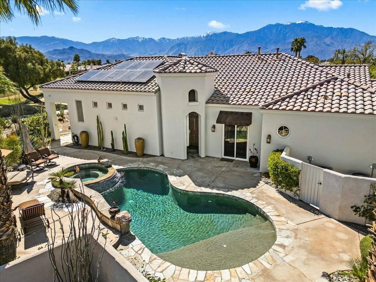 Enjoy the desert lifestyle in this stunning South-facing view home in guard gated Mira Vista. Located overlooking triple fairways with a mountain backdrop, this 3 bedroom 2.5 bath home is sure to impress. No detail was missed from the warm color palate and great room openness to the stacked stone fireplace, high-end finishes, zoned sound system and stunning lighting. The outdoor living provides endless enjoyment with the private gated courtyard featuring a PebbleTec, saltwater pool and spa with waterfall. Extensive desert landscaping in the back is accented by a fire pit and patios to enjoy the endless view. Efficiency-minded, the home offers new HVACs and new tankless water heater as well as a just installed, Owned 21 panel Solar system, and a back-up battery wall inside the painted garage with epoxy floors and storage for work area. Offered turnkey furnished including gas BBQ & pool furniture so you can enjoy immediately. Mira Vista's low HOA includes internet & fiber optic TV, 24 hour guard, lighted tennis & pickle ball courts, a huge community pool & BBQ pavilion in a convenient mid-valley location.Interested in this Listing?