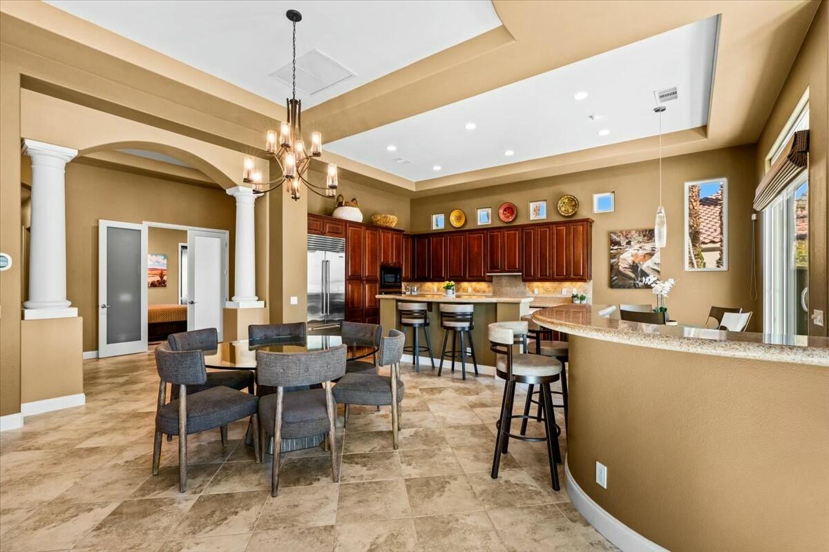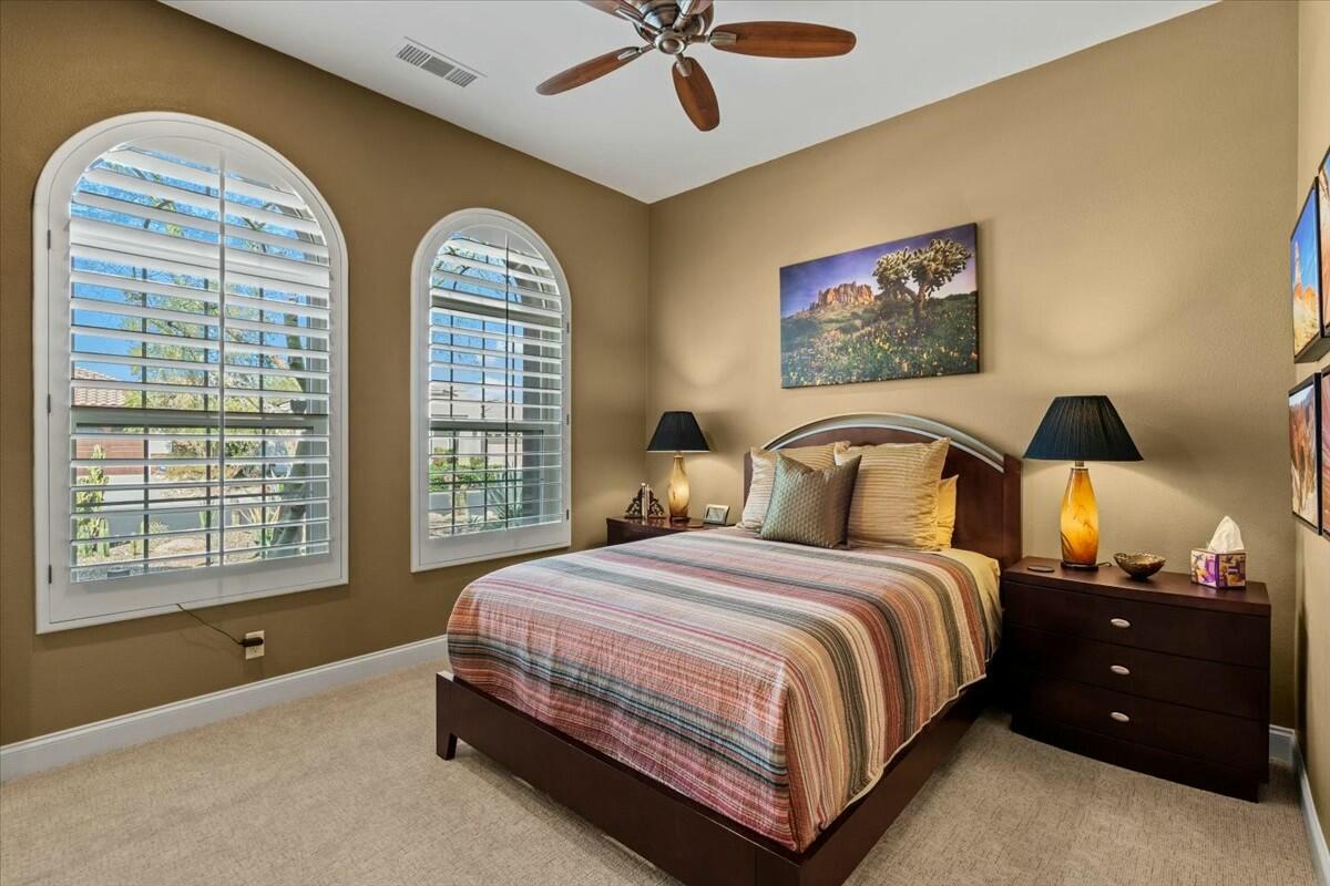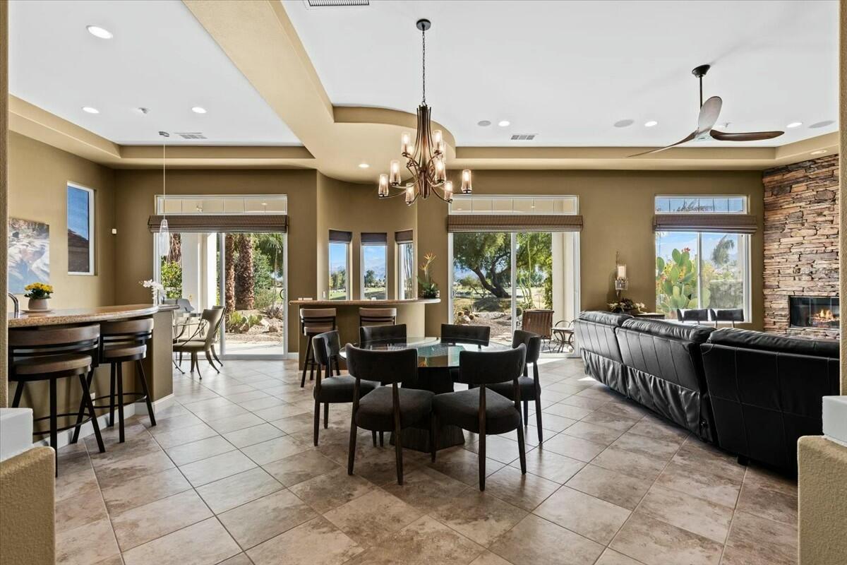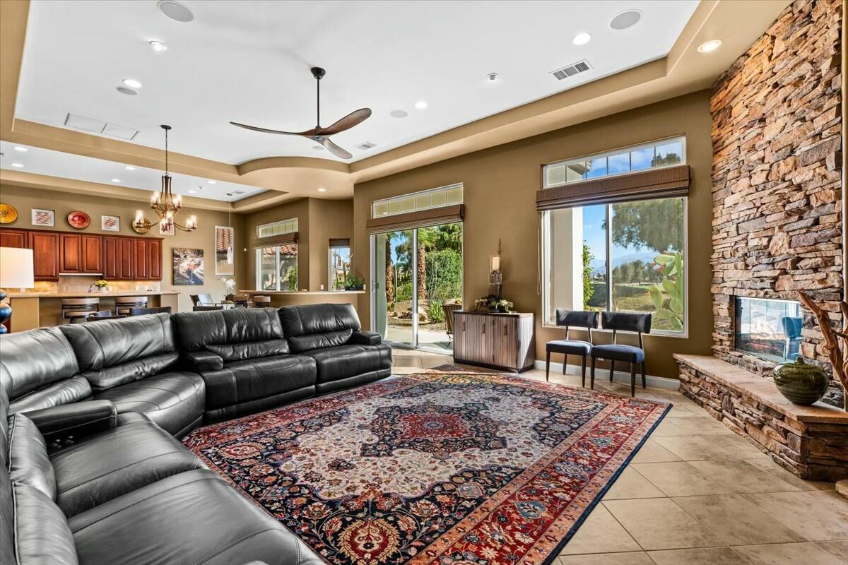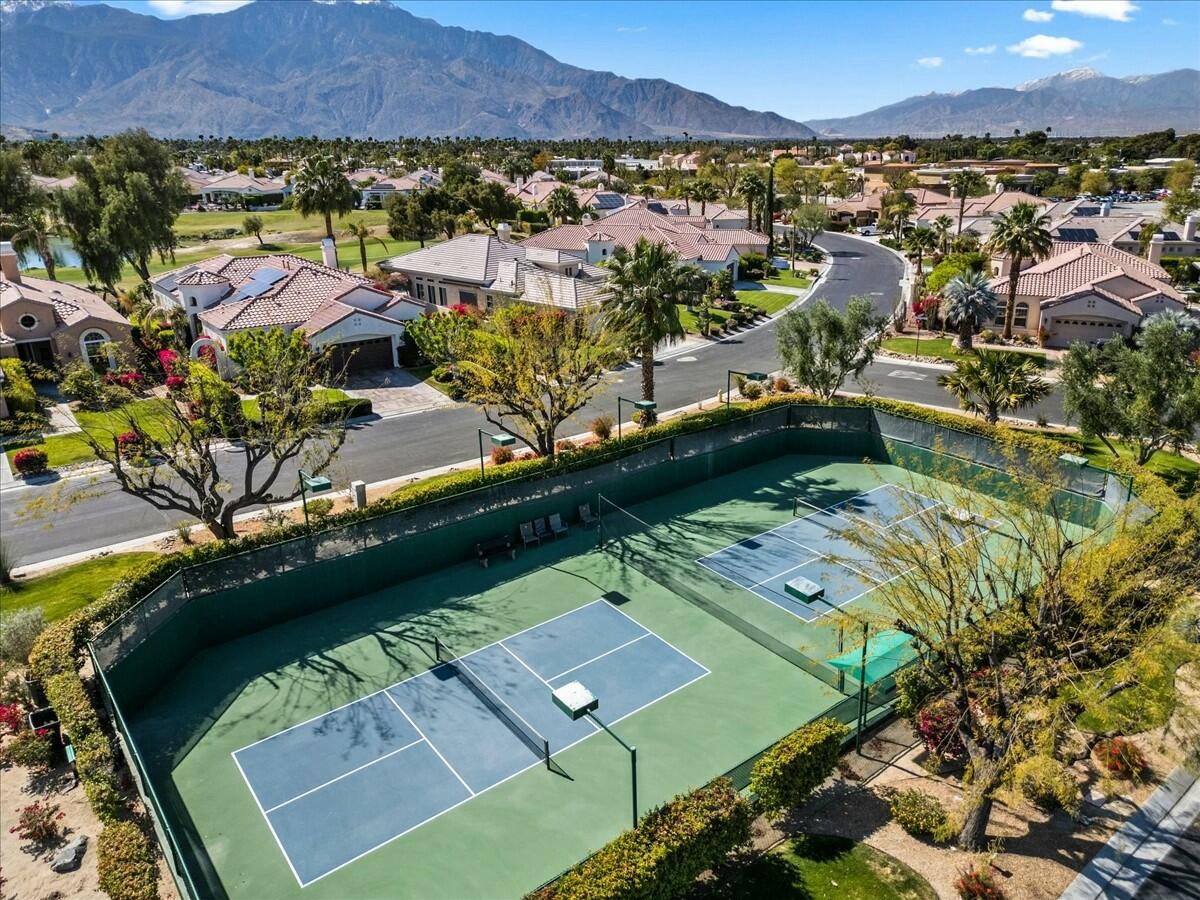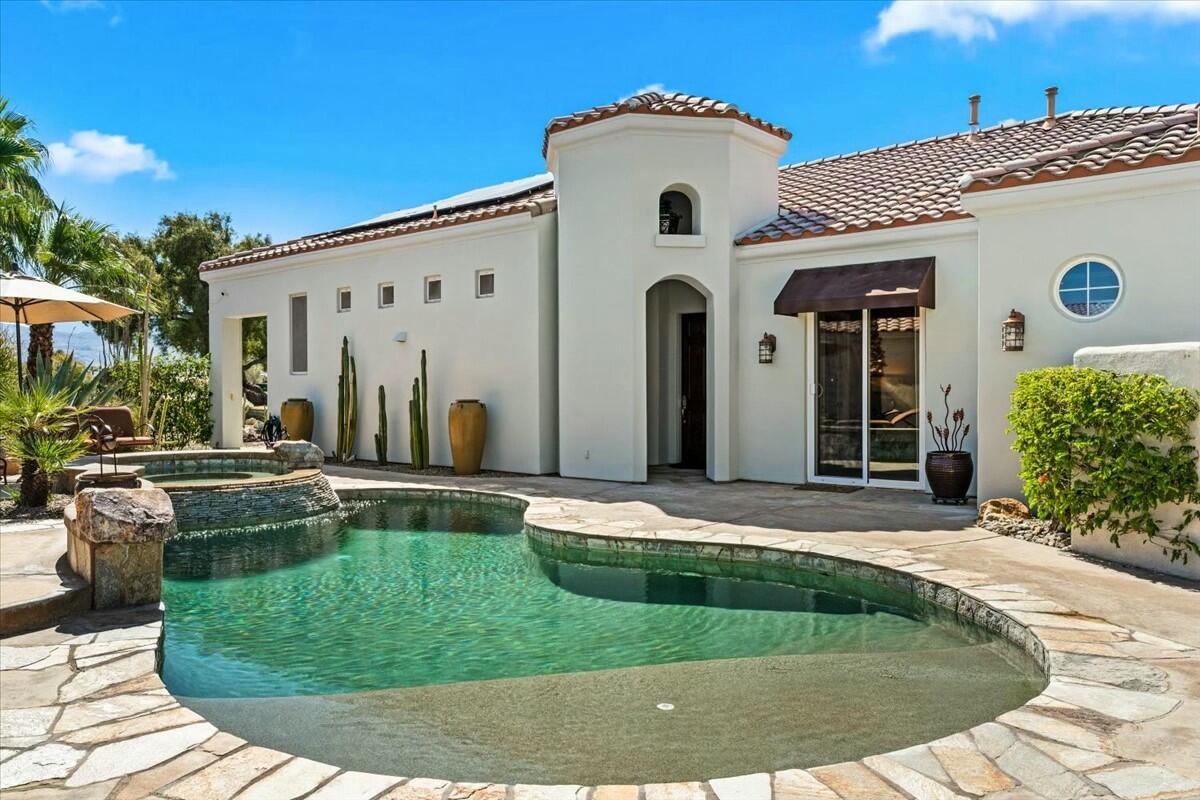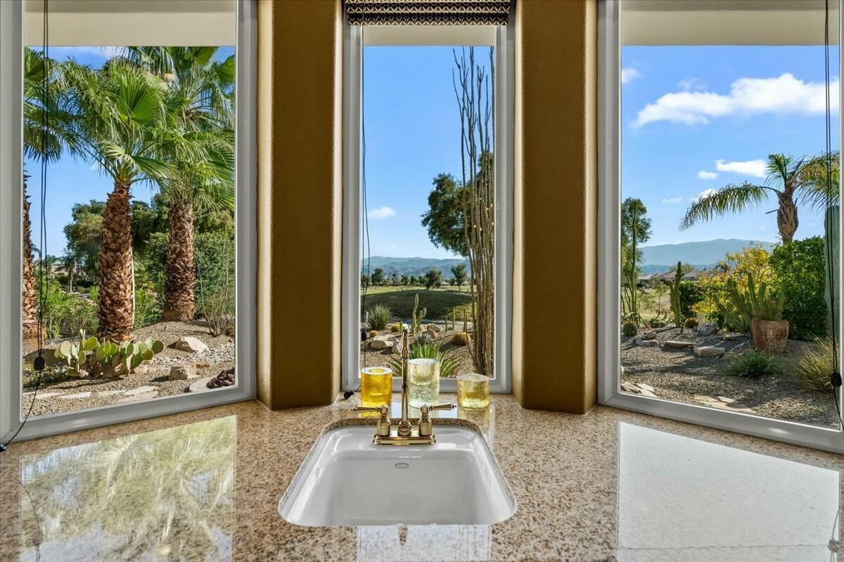 Enjoy the desert lifestyle in this stunning South-facing view home in guard gated Mira Vista. Located overlooking triple fairways with a mountain backdrop, this 3 bedroom 2.5 bath home is sure to impress. No detail was missed from the warm color palate and great room openness to the stacked stone fireplace, high-end finishes, zoned sound system and stunning lighting. The outdoor living provides endless enjoyment with the private gated courtyard featuring a PebbleTec, saltwater pool and spa with waterfall. Extensive desert landscaping in the back is accented by a fire pit and patios to enjoy the endless view. Efficiency-minded, the home offers new HVACs and new tankless water heater as well as a just installed, Owned 21 panel Solar system, and a back-up battery wall inside the painted garage with epoxy floors and storage for work area. Offered turnkey furnished including gas BBQ & pool furniture so you can enjoy immediately. Mira Vista's low HOA includes internet & fiber optic TV, 24 hour guard, lighted tennis & pickle ball courts, a huge community pool & BBQ pavilion in a convenient mid-valley location.Interested in this Listing?