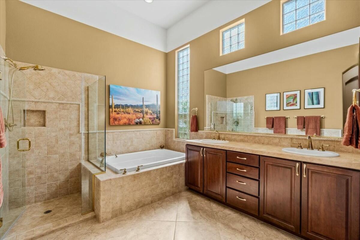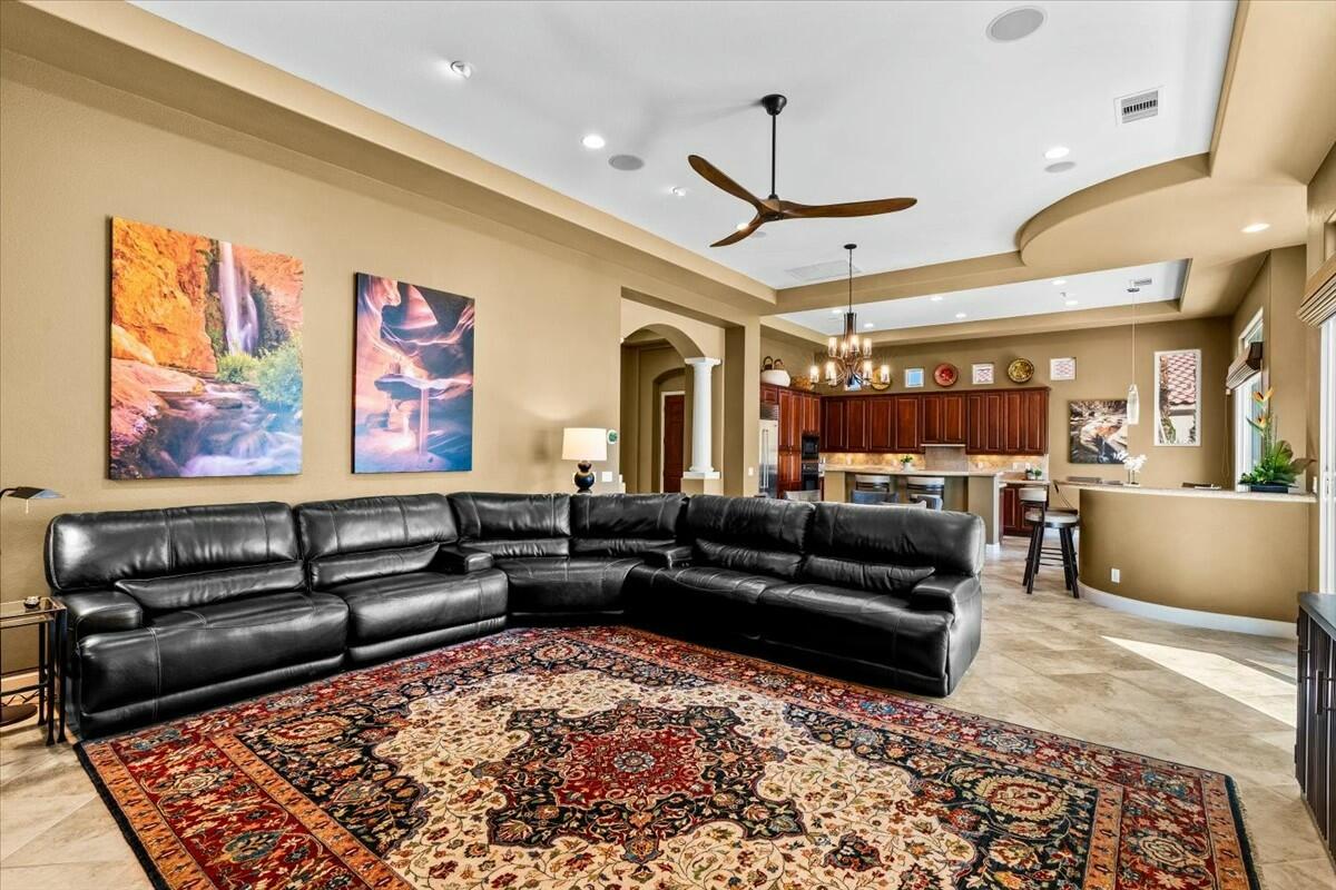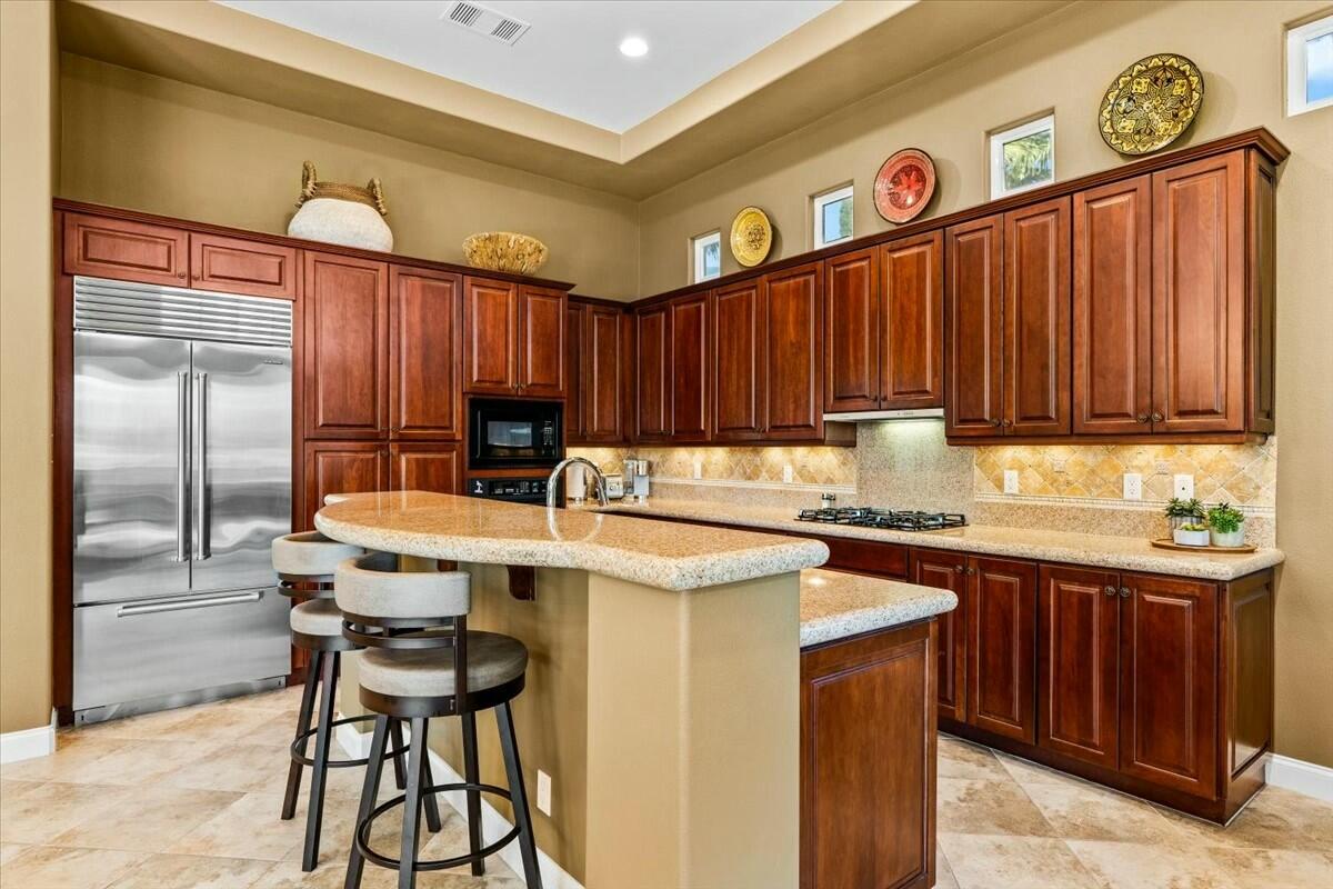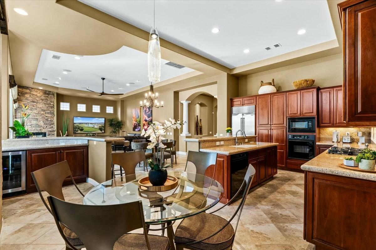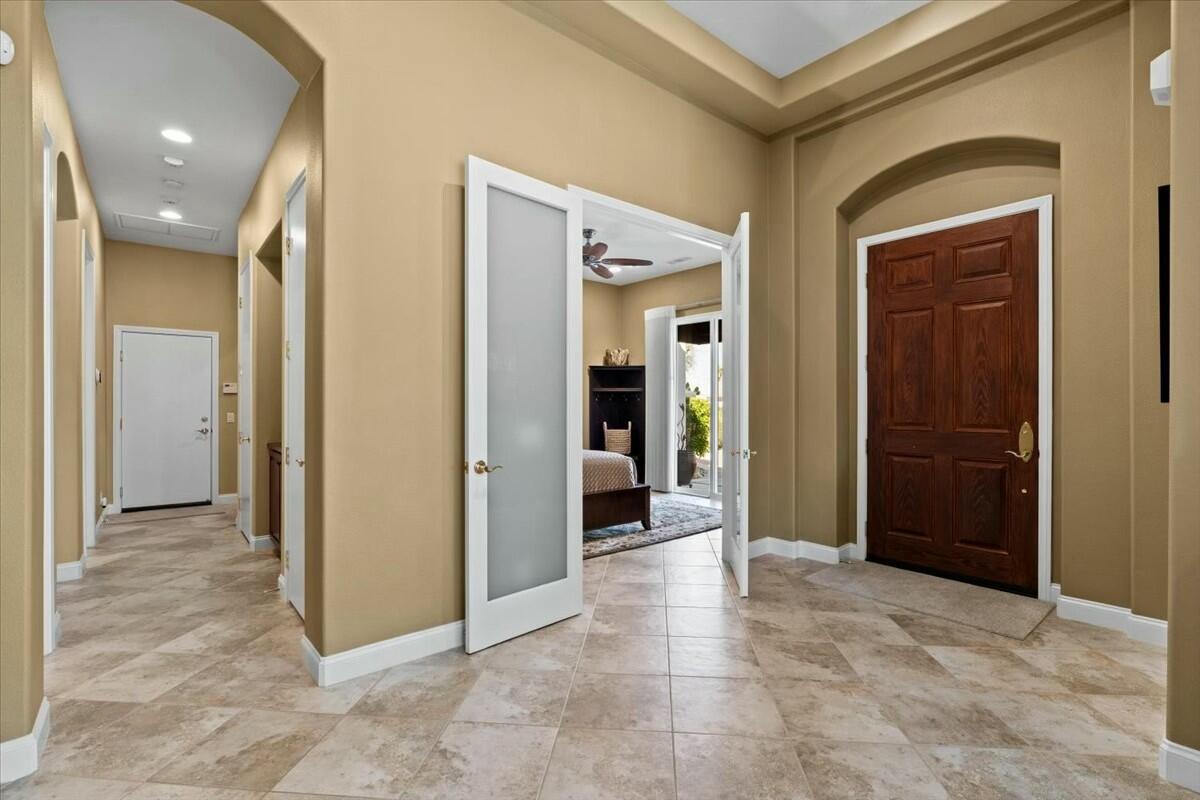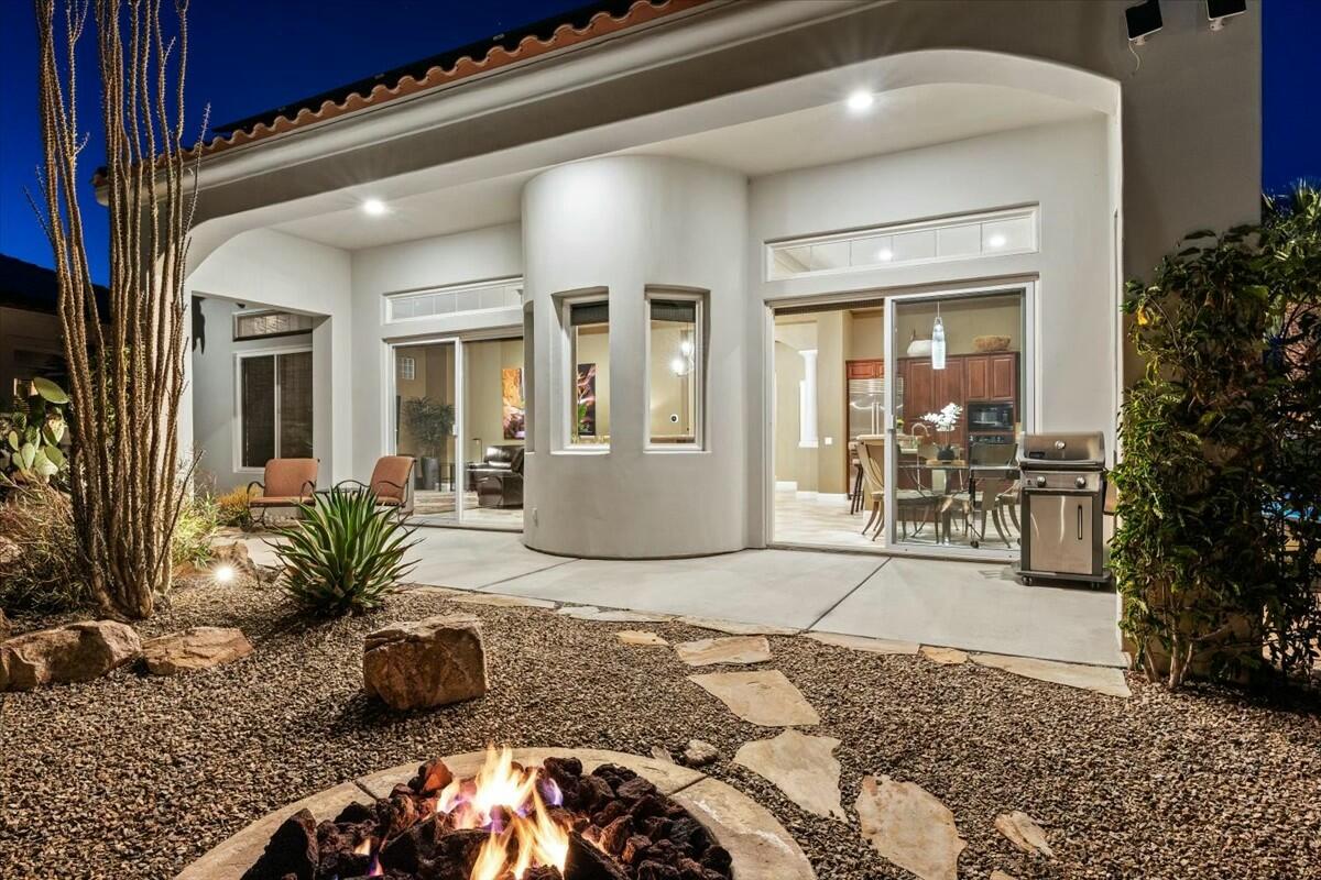Enjoy the desert lifestyle in this stunning South-facing view home in guard gated Mira Vista. Located overlooking triple fairways with a mountain backdrop, this 3 bedroom 2.5 bath home is sure to impress. No detail was missed from the warm color palate and great room openness to the stacked stone fireplace, high-end finishes, zoned sound system and stunning lighting. The outdoor living provides endless enjoyment with the private gated courtyard featuring a PebbleTec, saltwater pool and spa with waterfall. Extensive desert landscaping in the back is accented by a fire pit and patios to enjoy the endless view. Efficiency-minded, the home offers new HVACs and new tankless water heater as well as a just installed, Owned 21 panel Solar system, and a back-up battery wall inside the painted garage with epoxy floors and storage for work area. Offered turnkey furnished including gas BBQ & pool furniture so you can enjoy immediately. Mira Vista's low HOA includes internet & fiber optic TV, 24 hour guard, lighted tennis & pickle ball courts, a huge community pool & BBQ pavilion in a convenient mid-valley location.Interested in this Listing?