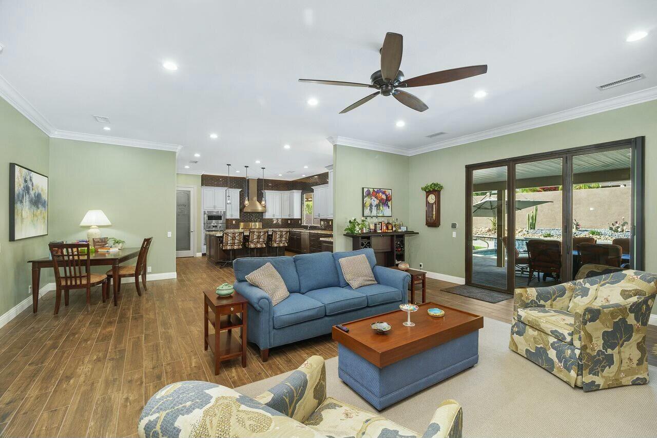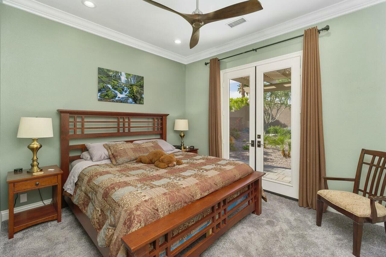 Located in the prestigious city of Rancho Mirage, this gorgeous four-bedroom, four-and-a-half-bath home offers luxurious desert living at its finest. Nestled in the coveted gated community of St. Augustine, this residence features an expansive open-concept layout that seamlessly connects the living room, dining area, and chef's kitchen--perfect for entertaining. The kitchen is a culinary dream, equipped with a Sub-Zero refrigerator, Wolf range, oversized island, and a generous walk-in pantry.The home has been recently re-tiled throughout, adding a sleek and modern touch. The spacious primary suite includes a cozy sitting area and a spa-like bathroom with dual vanities, a large walk-in shower, and an impressively oversized custom walk-in closet. All guest bedrooms feature en-suite bathrooms, and one can easily be converted into a casita--offering ultimate privacy and comfort for visitors.A versatile bonus room adapts effortlessly to your needs. Step outside to your private backyard retreat, complete with a sparkling saline pool and soothing spa--just moments from the primary suite.Additional highlights include a two-car garage with its own A/C unit, a 42-panel leased solar system, and low HOA dues of just $400/month, which include cable. Community amenities feature tennis courts, scenic walking paths, lush greenbelts, ponds, and streams.This home exudes pride of ownership and is truly a gem!Interested in this Listing?