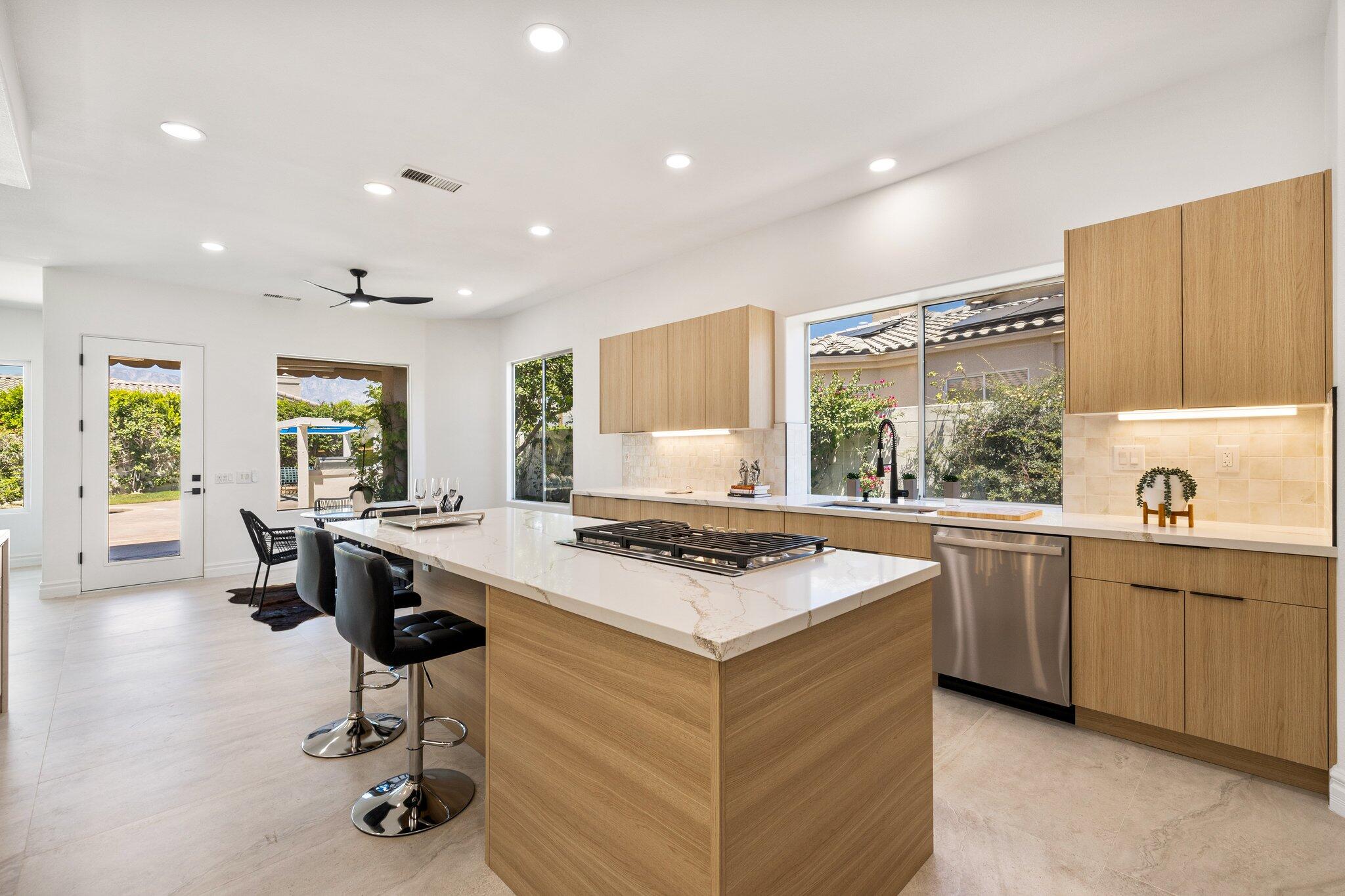 Stunning Remodel On This Princess Model Pool Home Behind The Gates Of Victoria Falls, With 3,788 sq ft of interior living space, & featuring 4 bedrooms and 4 bathrooms, this Princess model home has been completely renovated and the flow recreated. Step inside to experience a brilliantly open layout, where a thoughtful renovation has created a bright, airy atmosphere. The expansive living areas flow seamlessly into the dining and kitchen spaces, embracing natural light and providing an ideal setting for both everyday living and grand-scale gatherings. High-end finishes and sleek design elements underscore the home's contemporary elegance. The large contemporary designed chef's kitchen opens to the family room with fireplace and has a long center island, walk in pantry, new appliances plus bar seating overlooking the formal dining area. The spacious living room has walls of glass and abundant lighting throughout. Retreat to the oversized primary suite, complete with a sitting area, fireplace, and direct access to the pool, offering a private sanctuary for relaxation. The luxurious, fully remodeled master bath boasts a walk-in shower, soaking tub, and a walk-in closet--your personal spa retreat. Three additional spacious bedrooms, two full bathrooms, and a stylish powder room provide ample space for family and guests. The west facing backyard has a newly remodeled pool, outdoor kitchen and ample space to enjoy our desert's outdoor living at it's finest. Victoria Falls is centrally located--only a mile from Eisenhower Medical Campus, across the street from premier shopping, dining, and pub, and adjacent to the new Disney Cotino development. Community amenities include lush landscaping, picturesque walking paths, multiple tennis, pickleball, and basketball courts, making this neighborhood a true haven. Call me today to see this impressive brand new renovation!Interested in this Listing?