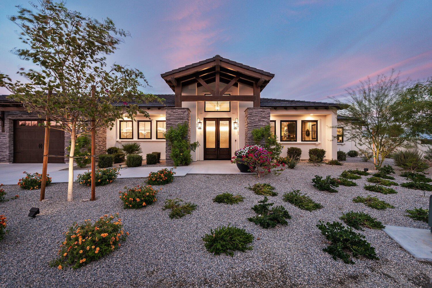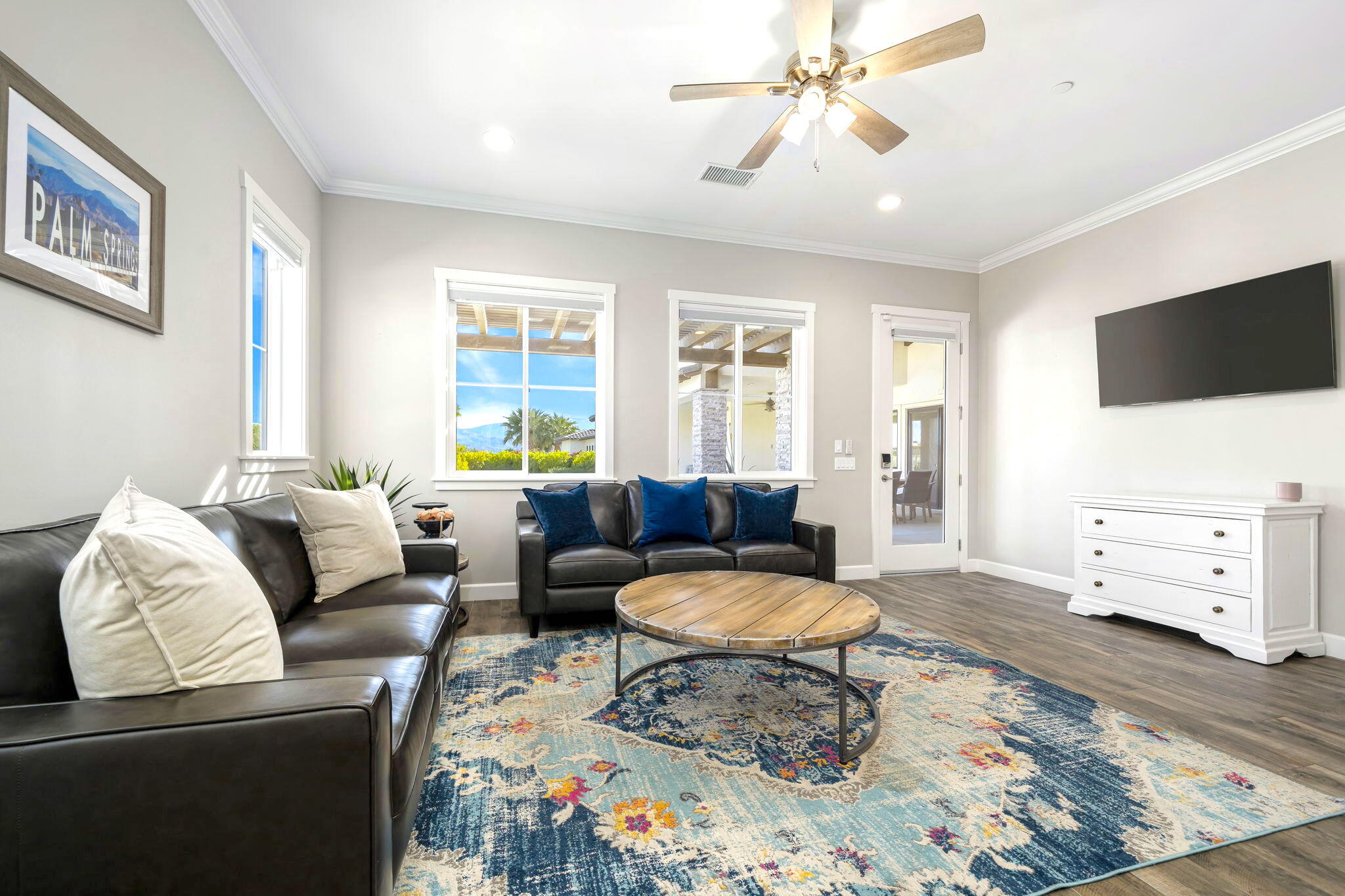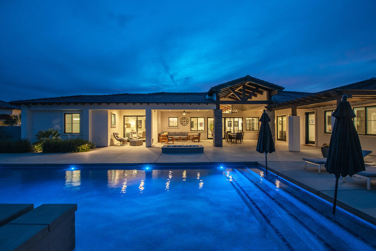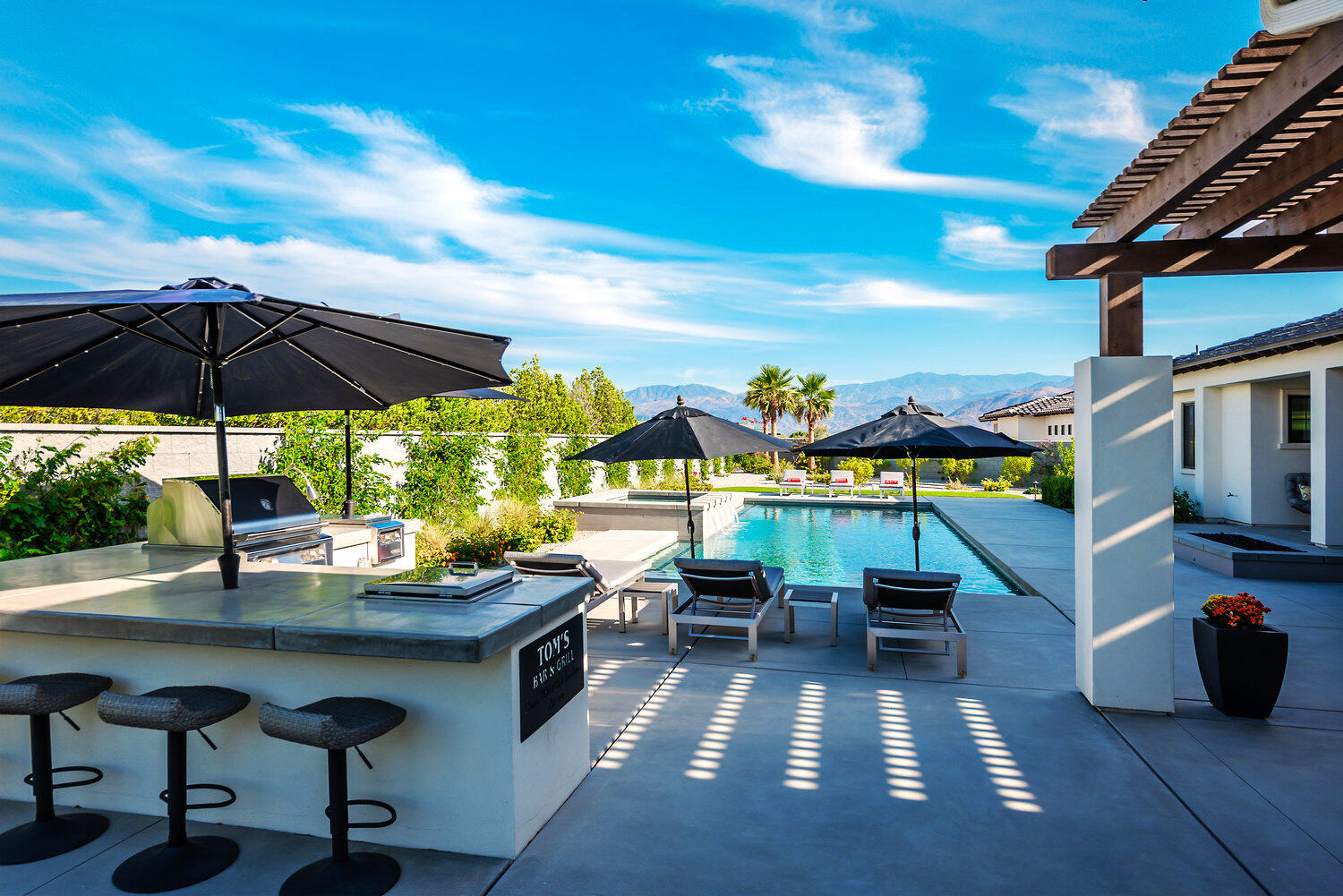 Unique custom built contemporary ranch-style property finished in 2021. This 5 bedroom, 4.5 bath property boasts two separate wings, primary suite and guest. Guest quarters have the versatility to be locked off as a 4, 2 or 1 bedroom Casita, independent of the main house, with kitchenette, washer/dryer, and everything your guests will need to staycation in beautiful Rancho Mirage. This property was built with attention to detail and ease of owning a smart home. Ample windows bring in bright natural light. Beautiful exposed beams and wood paneling bring in warmth and a cozy feel. Multiple lighting options & modes throughout create mood. Oversized high-end appliances add value. A seamless transition from inside living to an astounding 1,149 sq. ft. outdoor covered patio is perfect for entertaining and relaxing in the shade. A spectacular 44-ft. LED-lit pool is framed by two lounge areas, outdoor BBQ & bar, large fire pit, bocce ball court, & deep south-facing mountain views. This property has it all. No expense was spared in the design, architecture, craftsmanship, & upgrades in this property. Live in the most prestigious town in the Coachella Valley, perfectly situated between El Paseo and Palm Springs. Sold furnished, per inventory.Interested in this Listing?