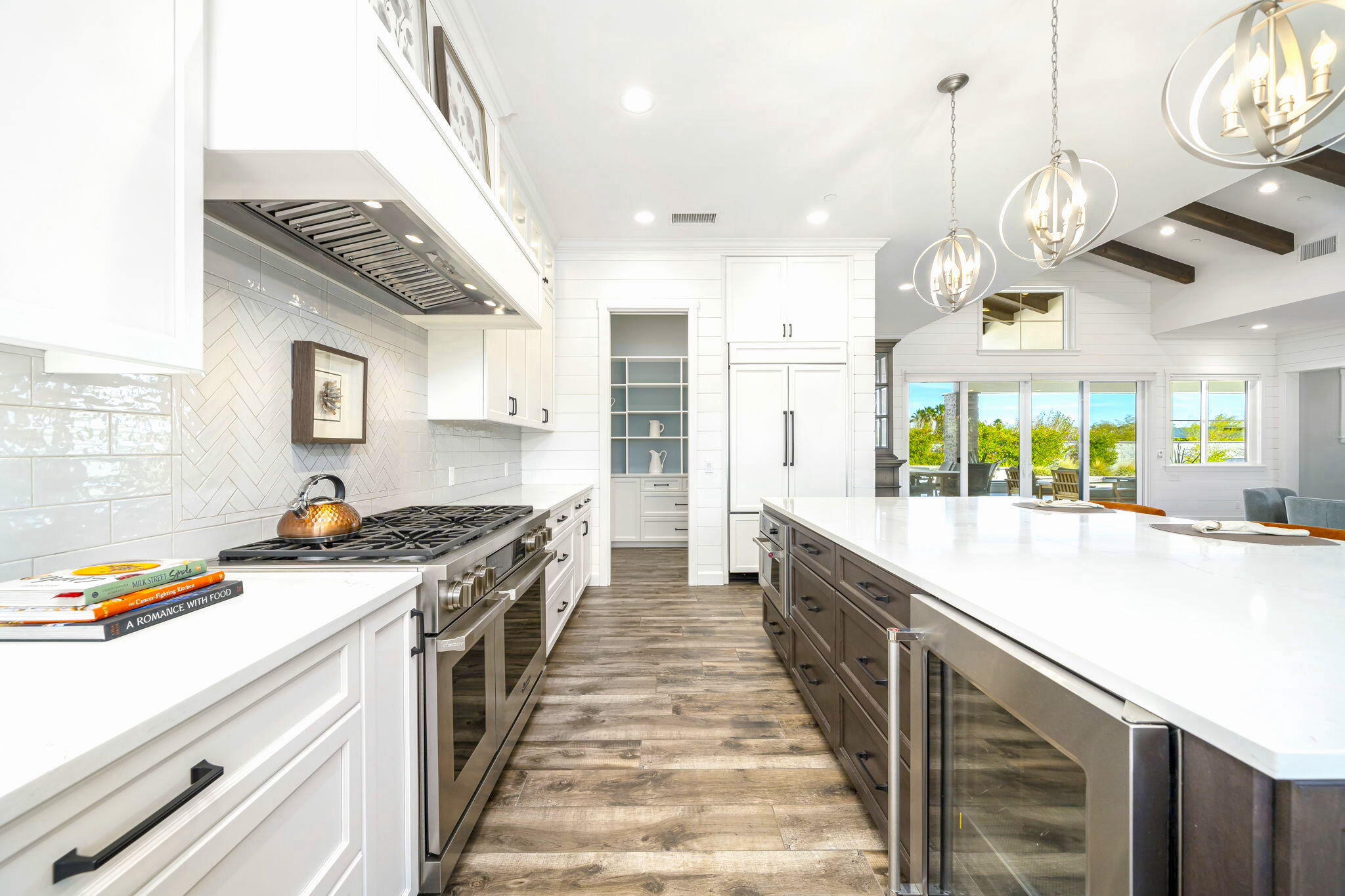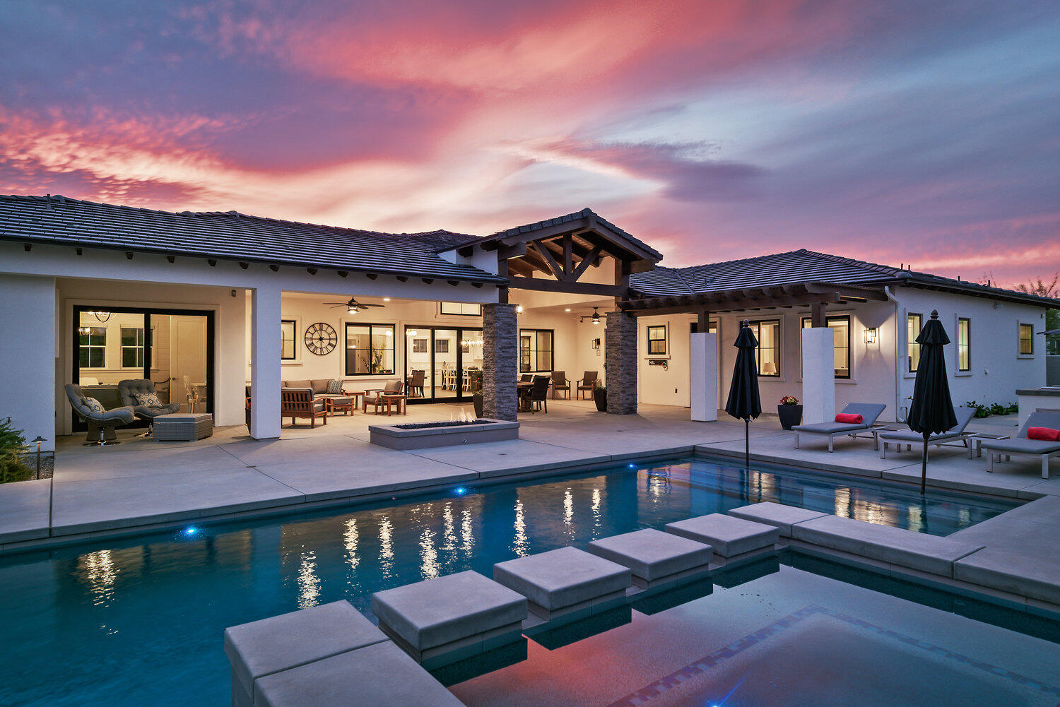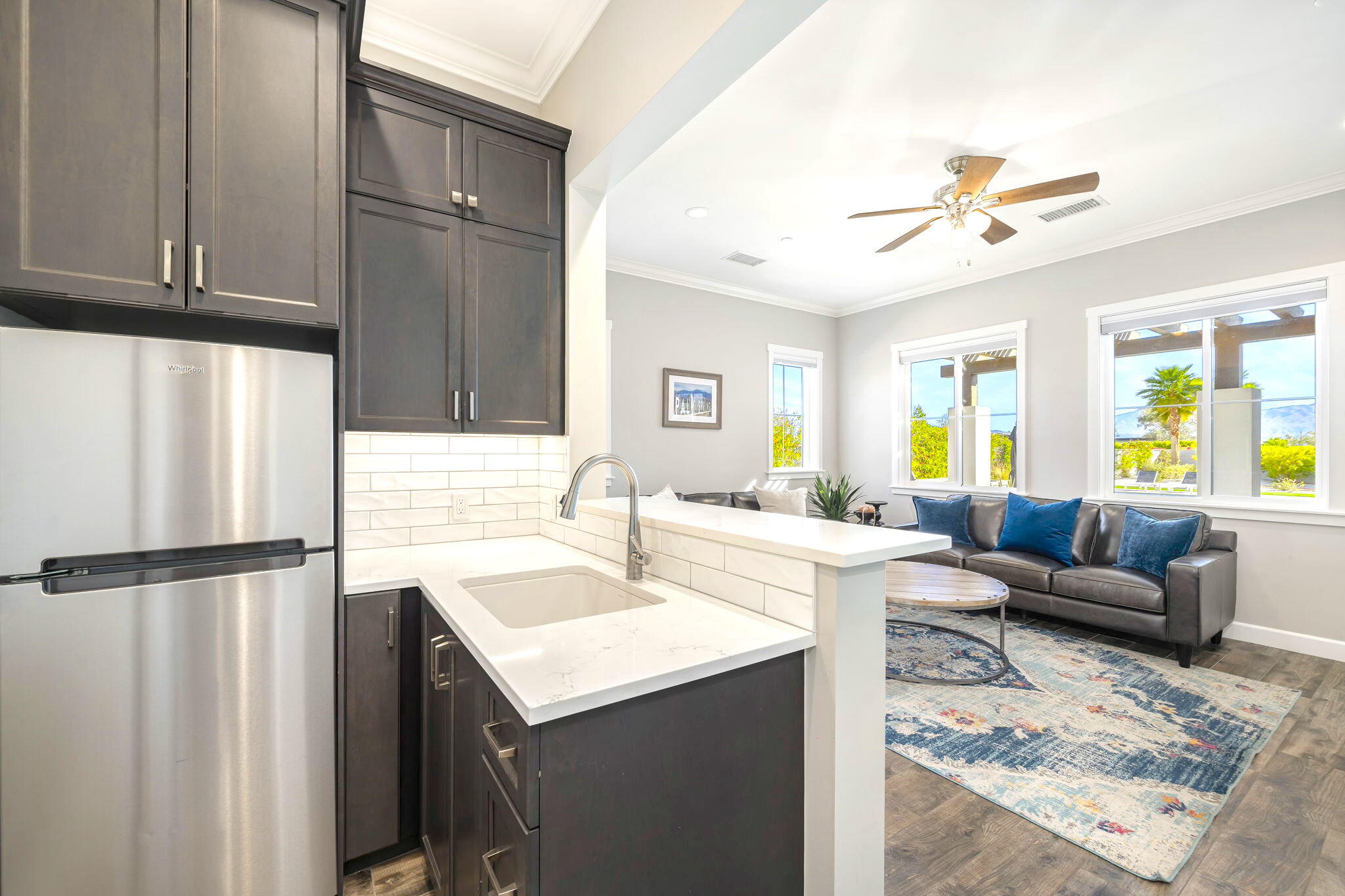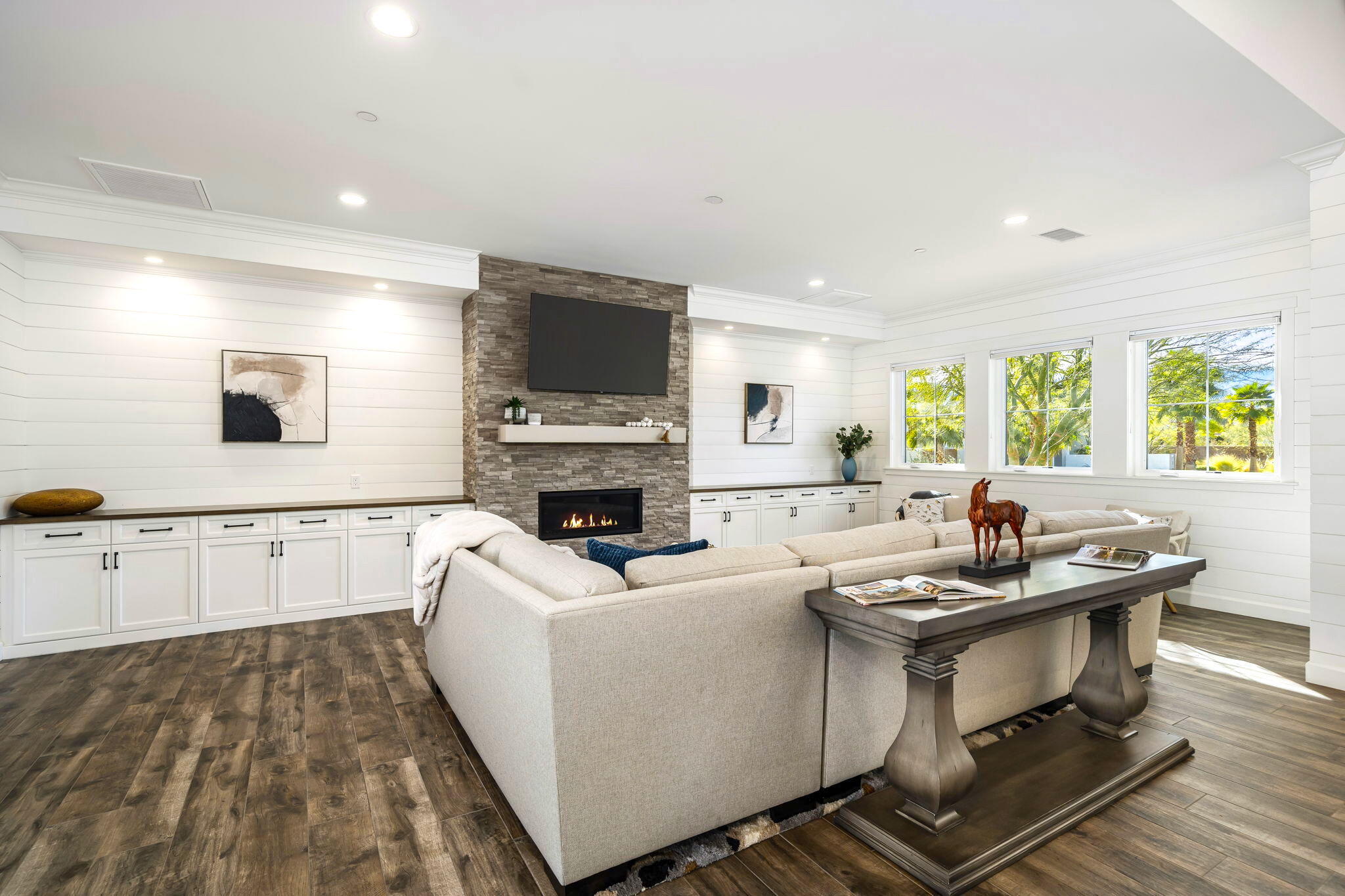 Unique custom built contemporary ranch-style property finished in 2021. This 5 bedroom, 4.5 bath property boasts two separate wings, primary suite and guest. Guest quarters have the versatility to be locked off as a 4, 2 or 1 bedroom Casita, independent of the main house, with kitchenette, washer/dryer, and everything your guests will need to staycation in beautiful Rancho Mirage. This property was built with attention to detail and ease of owning a smart home. Ample windows bring in bright natural light. Beautiful exposed beams and wood paneling bring in warmth and a cozy feel. Multiple lighting options & modes throughout create mood. Oversized high-end appliances add value. A seamless transition from inside living to an astounding 1,149 sq. ft. outdoor covered patio is perfect for entertaining and relaxing in the shade. A spectacular 44-ft. LED-lit pool is framed by two lounge areas, outdoor BBQ & bar, large fire pit, bocce ball court, & deep south-facing mountain views. This property has it all. No expense was spared in the design, architecture, craftsmanship, & upgrades in this property. Live in the most prestigious town in the Coachella Valley, perfectly situated between El Paseo and Palm Springs. Sold furnished, per inventory.Interested in this Listing?