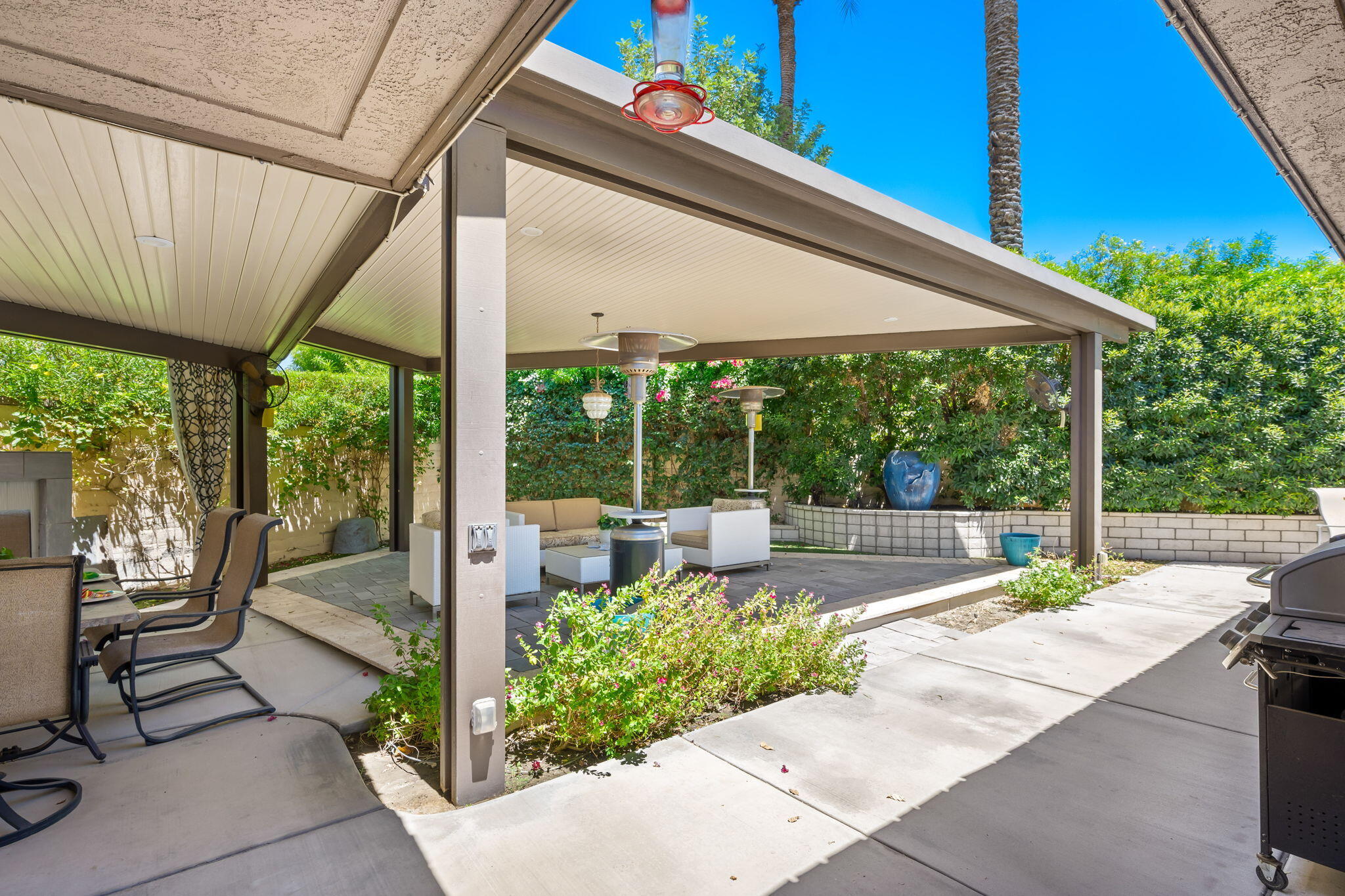 THIS HOME IS SPECTACULAR! Luxury greets you from the front door of this extensively remodeled contemporary 3 BD/3.5 BA ensuite Shaughnessy floor plan on a very private, oversized lot. The front courtyard w/ mountain view & large wrap around backyard are surrounded by a wall for complete privacy. This lovely home has been remodeled to include tile floors, an open gourmet chef's dream kitchen with large island, top of the line appliances, 2 quiet Fisher-Paykel dishwashers, built-in espresso machine, wine cooler,, a second under cabinet ice maker, 2 modular refrigerators in the bar area, beautiful cabinets, custom closets in all bedrooms, double vanities and large steam shower with heater flooring & towel racks in the primary suite bathroom. The spacious great room boasts high ceilings with a view of the pool/spa/fire pit on the back patio. An additional conversation pit and outdoor dining area fully under roof make this an entertainer's paradise. All interior doors are solid wood, the interior walls are a special 2 layer material 3/4 inch thick and soundproof. A detached 2+golf cart garage completes the amenities. A MUST SEE! The Springs is a premier country club in the heart of Rancho Mirage with an 18 hole championship golf course, recently remodeled clubhouse, fitness center, separate courts pavilion & a lively social scene! Located near the Eisenhower Medical Campus, the McCallum Theater for Performing Arts, and world class/dining.Interested in this Listing?