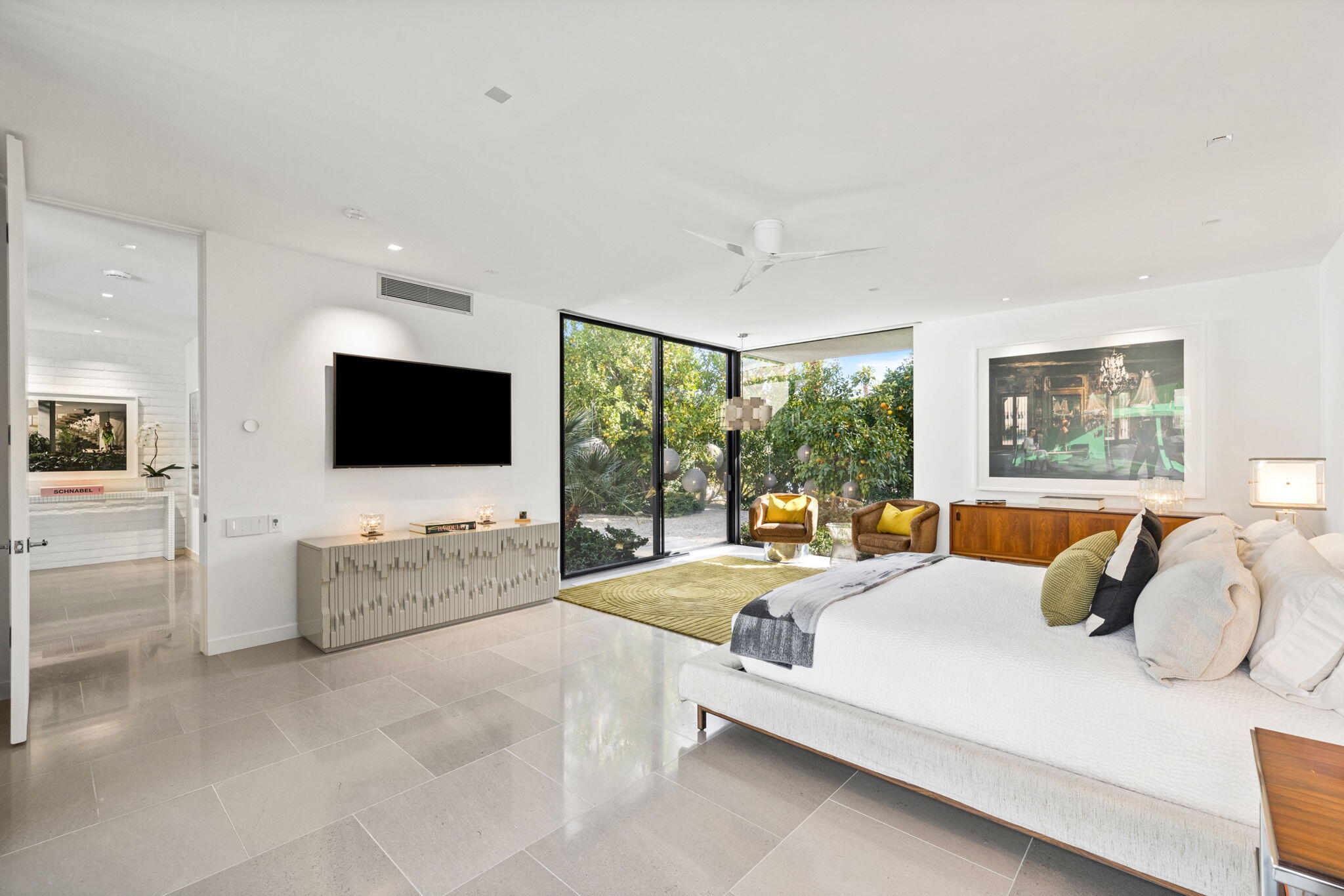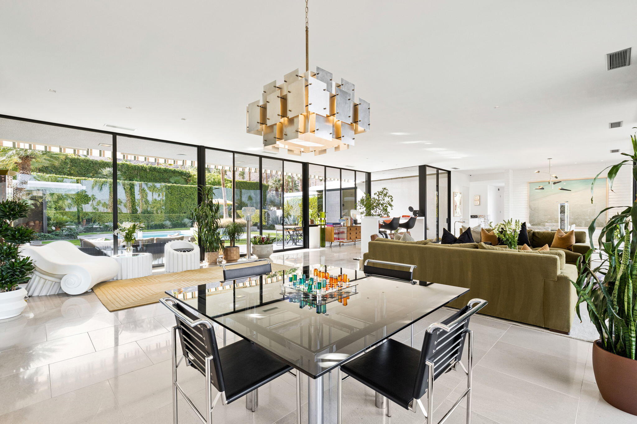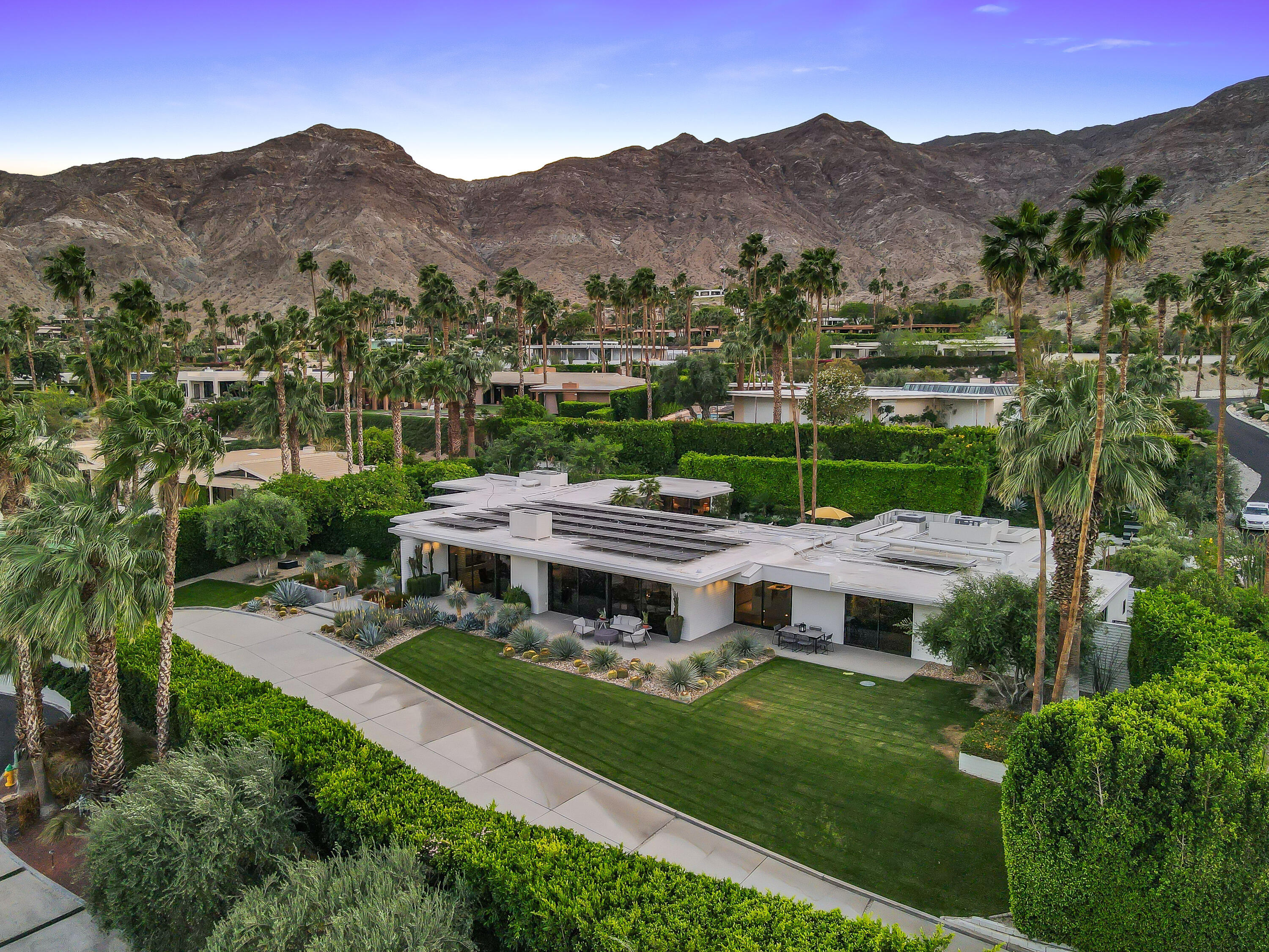 Architectural Masterpiece in Thunderbird Heights: A 1970s Modern Estate with Unmatched Panoramic Views.Discover an extraordinary private compound perched high above the desert floor in the prestigious, guard-gated community of Thunderbird Heights. Expertly crafted by renowned architects Ira Johnson, AIA, and George Ritter, AIA--both proteges of the legendary William Cody--this stunning residence is a bold reinterpretation of Cody's iconic 1950s-60s desert modernism, reimagined for the 1970s with sophisticated contemporary elements.Spanning approximately 4,700 square feet, the home integrates cutting-edge materials and architectural features, including expansive sliding glass doors, steel beam trusses, and timeless white mud brick walls--a signature of Cody's aesthetic. Every detail has been meticulously considered, especially the strategically designed sight lines, ensuring each of the four luxurious bedroom suites captures breathtaking 360-degree views of the Santa Rosa Mountains, desert landscapes, and shimmering city lights.The grand open-plan living space is a true showstopper, featuring floor-to-ceiling glass walls that dissolve the boundary between indoors and out, creating a seamless flow to the serene surroundings. The result is a Zen-like atmosphere that celebrates light, space, and tranquility.Additional highlights include: Dedicated office space off primary wing Owned Solar Tesla Powerwall Home Battery Glacier Pool Chiller with iAqualink Automation Custom modern steel & glass pivot door Three-car climate controlled garage Three automated steel-and-glass gates for privacy and security Designer furnishings, including custom European Mid-Century modern furniture Museum-quality art collection Custom Element lighting, fully integrated with a Control4/Lutron smart system State of the art Security System Whole house humidifier & air purification system Window-to-wall recessed motorized shades Patio misting systemThis expansive, one-of-a-kind architectural gemInterested in this Listing?