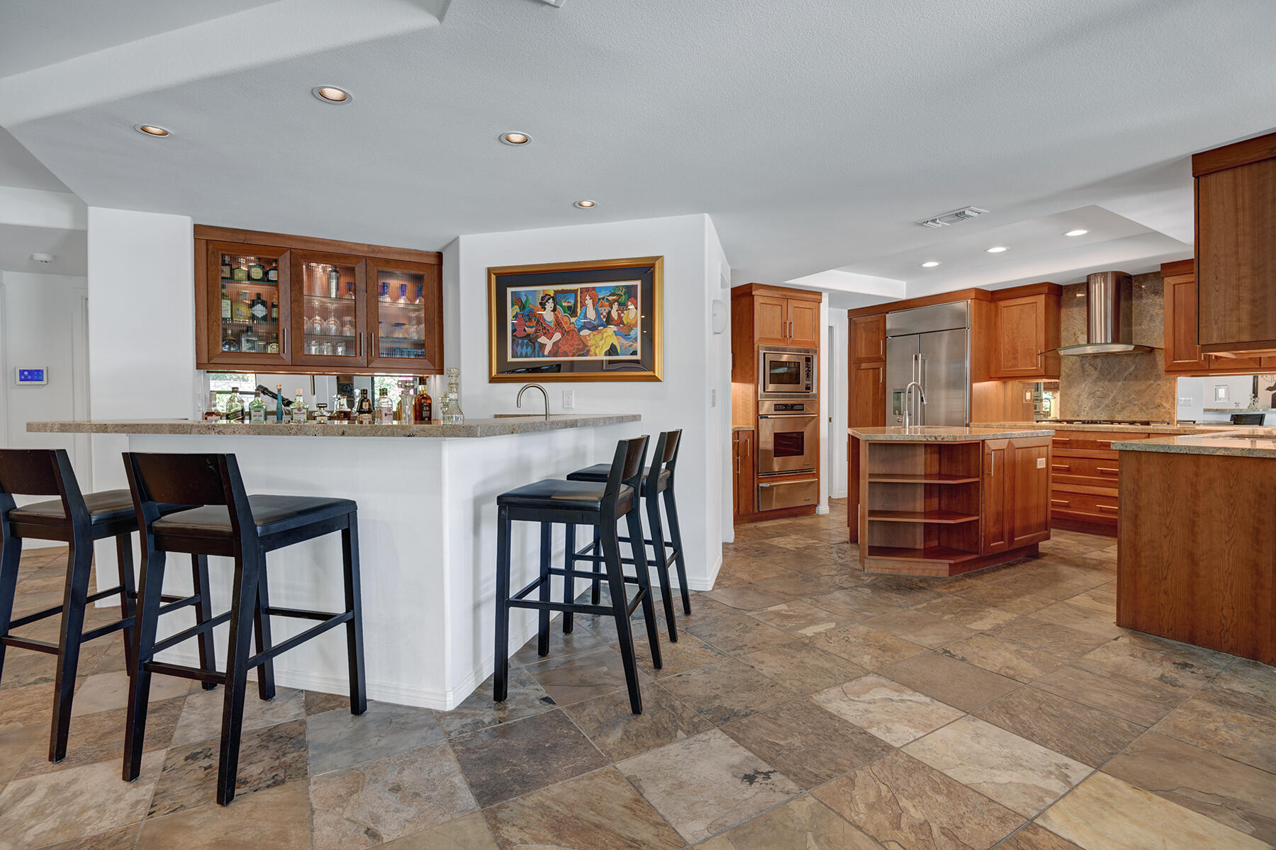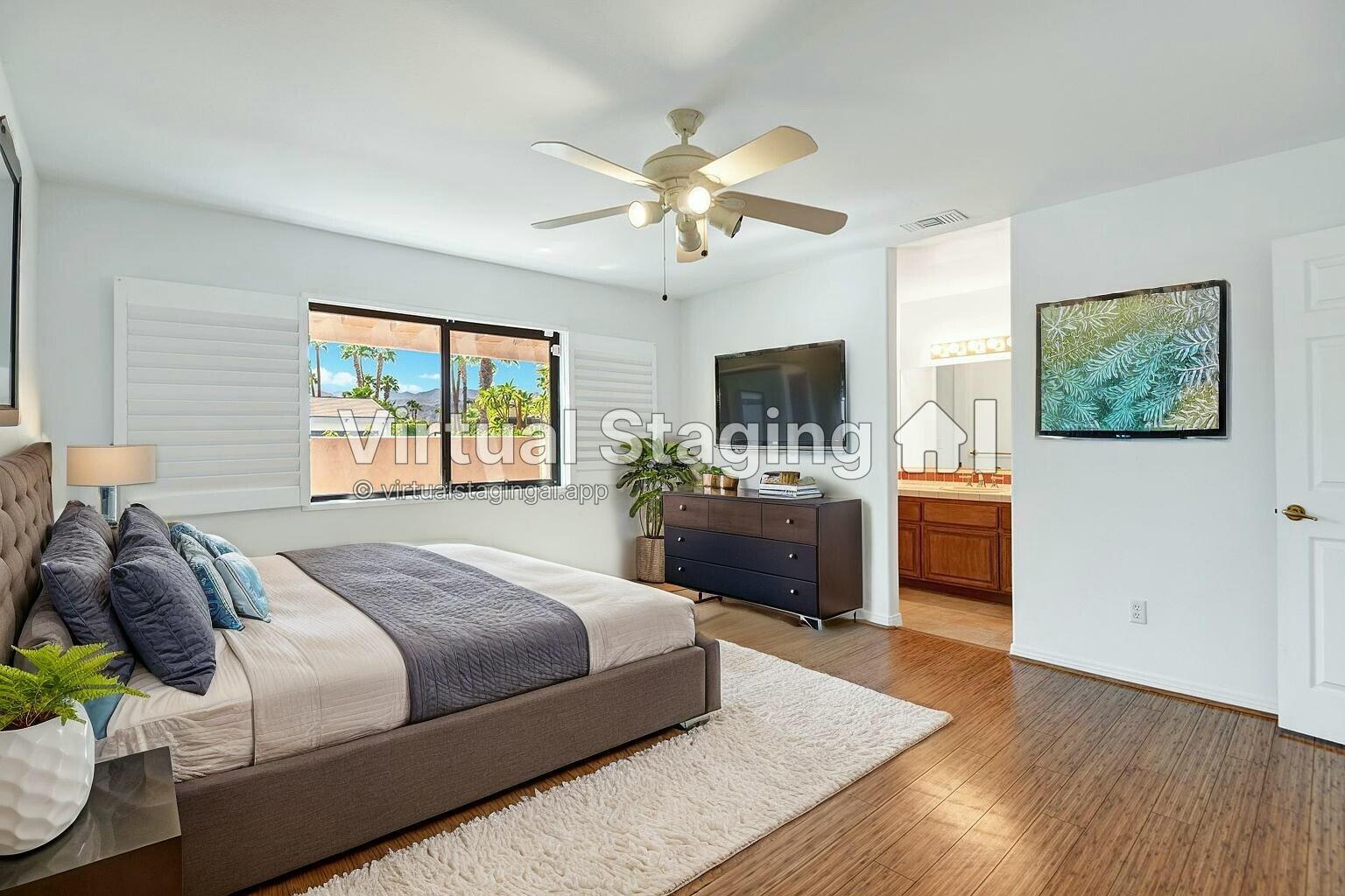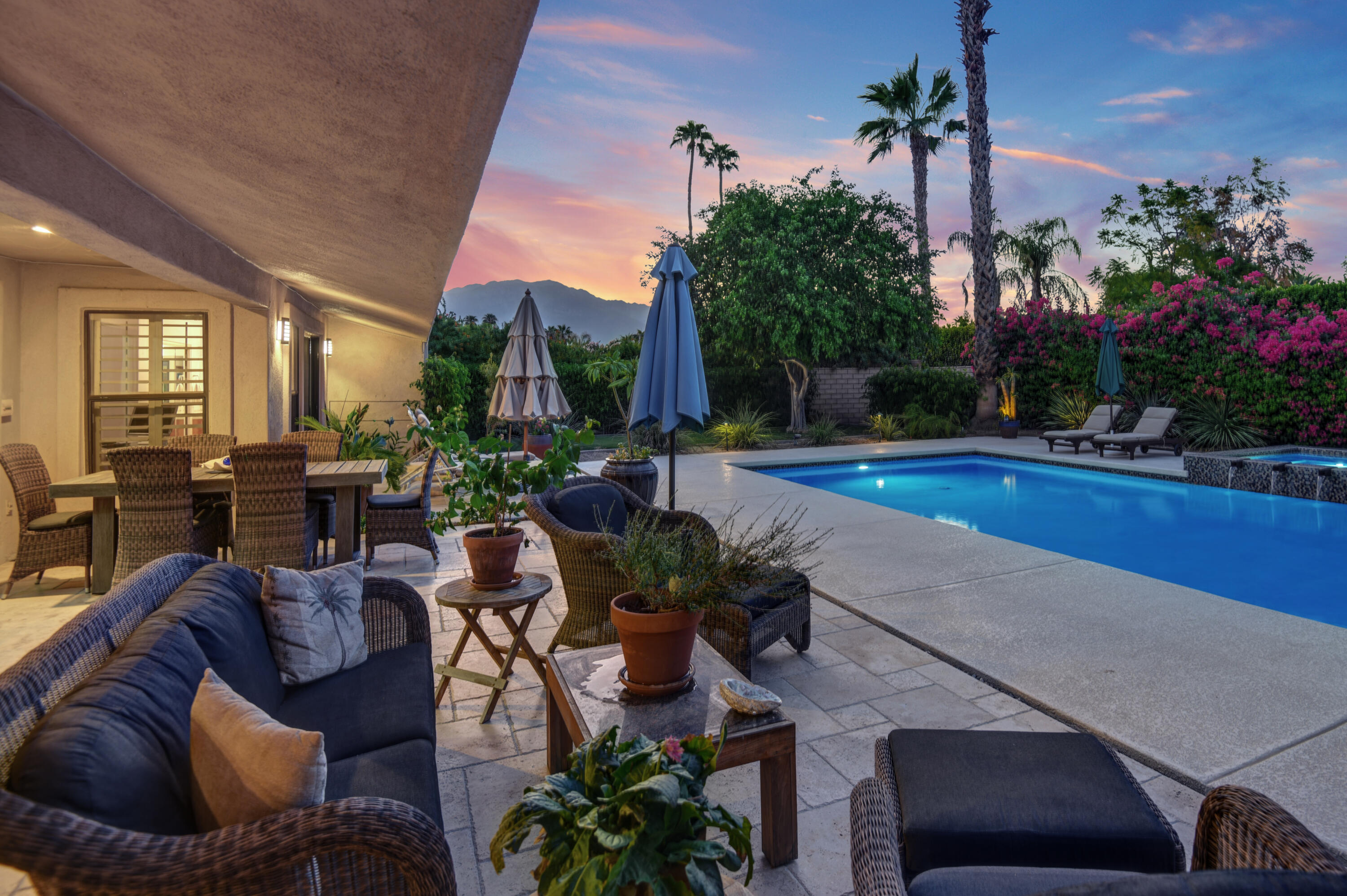 This 4-bedroom, 4-bath home in Tamarisk View Estates, Rancho Mirage, offers luxury living without HOA dues! The gourmet kitchen features a new GE Monogram built-in refrigerator, Dacor microwave and oven, and an ultra-quiet, wood-paneled Miele dishwasher, with a built-in refrigerator/freezer at the wet bar, perfect for entertaining. The home boasts two AC/heater units, a new tankless water heater with recirculation pump for instant hot water. A fully owned Tesla whole-house battery provides backup power, complemented by 37 leased solar panels for energy efficiency. Inside, you'll find a central vacuum system and built-in speakers throughout the house for your sound system. Enjoy the cozy gas fireplace in the family room, slate floors in most rooms, and bamboo flooring in the primary suite. The outdoor space is an oasis, featuring a saltwater pool and spa with a new variable speed pump, heater, cool decking around the pool, and a beautiful travertine tile patio for outdoor relaxation. The backyard also offers mature sweet pink grapefruit, tangelo, and Meyer lemon trees. The 2+ car garage includes space for a workshop or golf cart, new LED lighting, and a 220 electric car charger. The brick paver circular driveway adds both convenience and curb appeal. This home is truly a gem in a prime location! Motivated Seller! Present all offers!Interested in this Listing?