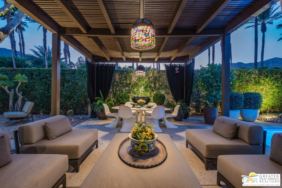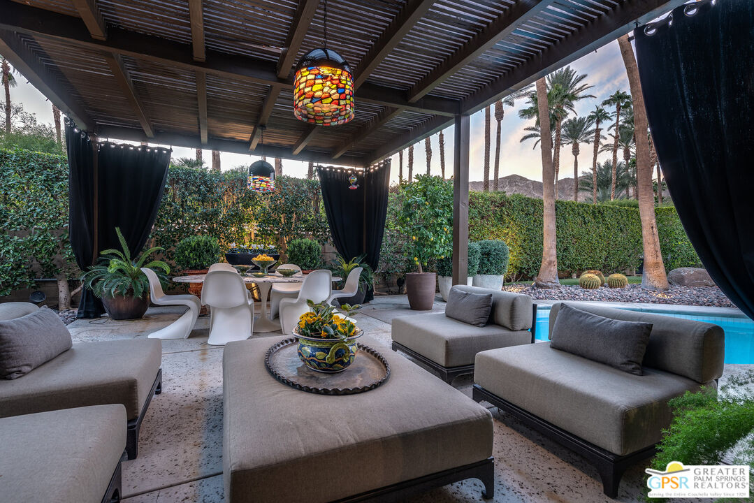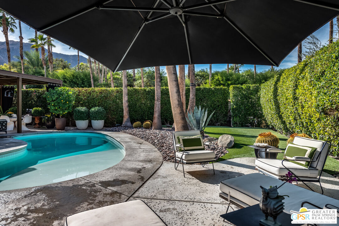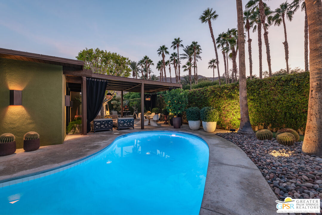 71407 Halgar Road is known as Oasi Della Nove Palme and this exquisite property is a testament to sophisticated living in a serene environment. With an expansive 1,955 square feet of living space nestled on a spacious lot, this captivating home offers unparalleled comfort and style. The residence features three bedrooms and two bathrooms, each exuding a sense of luxury with the primary bathroom featuring a frameless glass shower for a spa-like experience. The open floor plan provides a seamless transition from one room to another, creating an atmosphere that encourages relaxation and easy living. One cannot help but be impressed by the oversized windows that adorn the property. These architectural elements not only enhance the aesthetics of this beautiful abode but also allow for an abundance of natural light to flood in, adding warmth and vibrancy to every corner of the house. An inviting pool beckons you outdoors where you can enjoy the Californian sun or take refuge under the stars after a long day. The outdoor area is perfect for those who appreciate nature's beauty as it offers breathtaking mountain views that will surely captivate your senses. Privacy is another hallmark of this remarkable property. Situated in a quiet neighborhood adjacent to Sensei Porcupine Creek, it guarantees peace and solitude while still being conveniently close to shopping areas for all your needs. Rancho Mirage itself is known for its rich amenities including world-class golf courses, fine dining restaurants, high-end shopping centers, and numerous recreational facilities such as parks and hiking trails. From entertainment venues to health care facilities - everything you need is within reach. Whether you are seeking sanctuary or socialization, this exceptional home seamlessly combines both aspects into one harmonious package. Also available furnished for lease - please contact the listing agents for details. A great opportunity to experience Rancho Mirage living, whether for a season or a lifetime.Interested in this Listing?