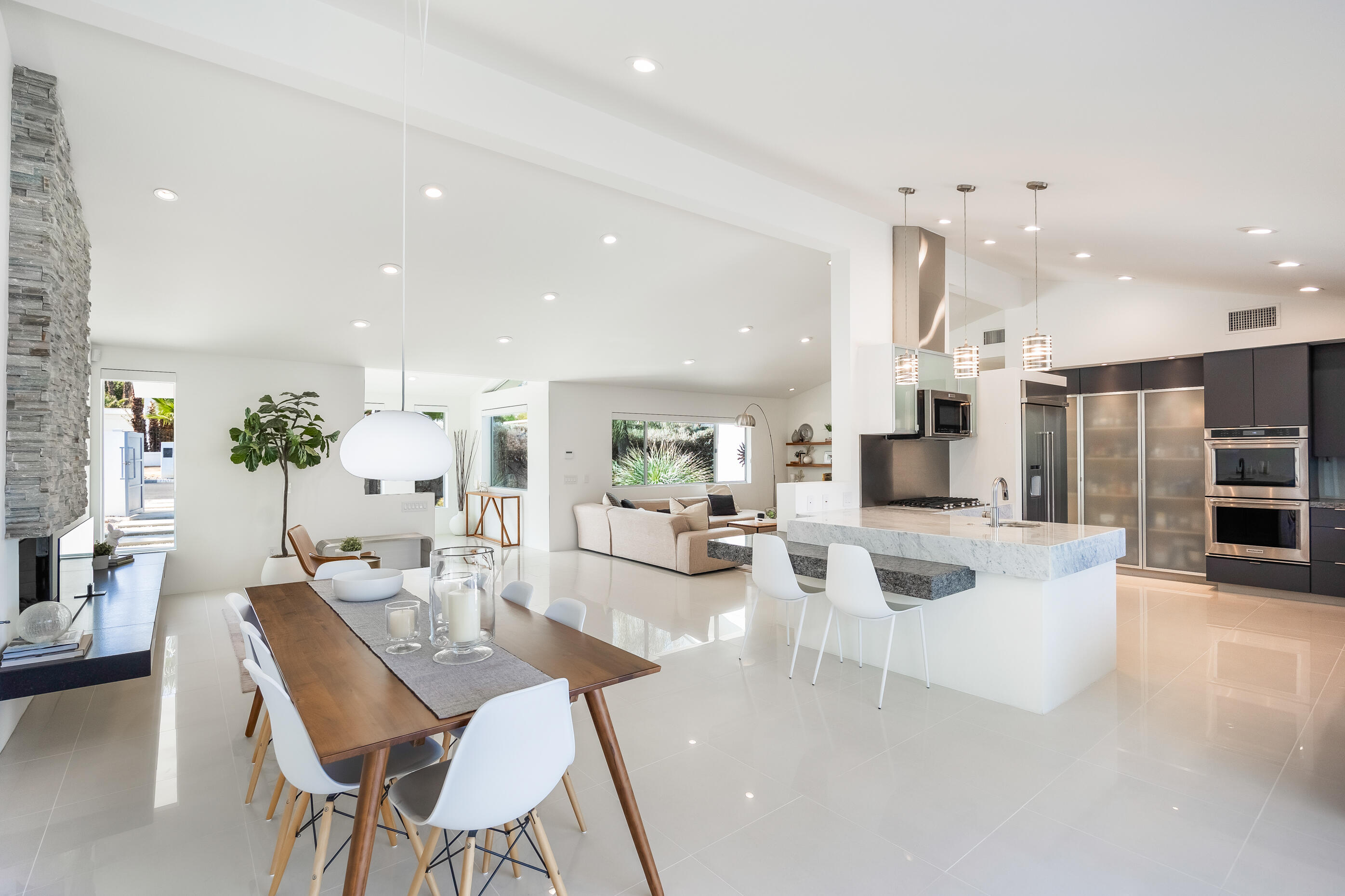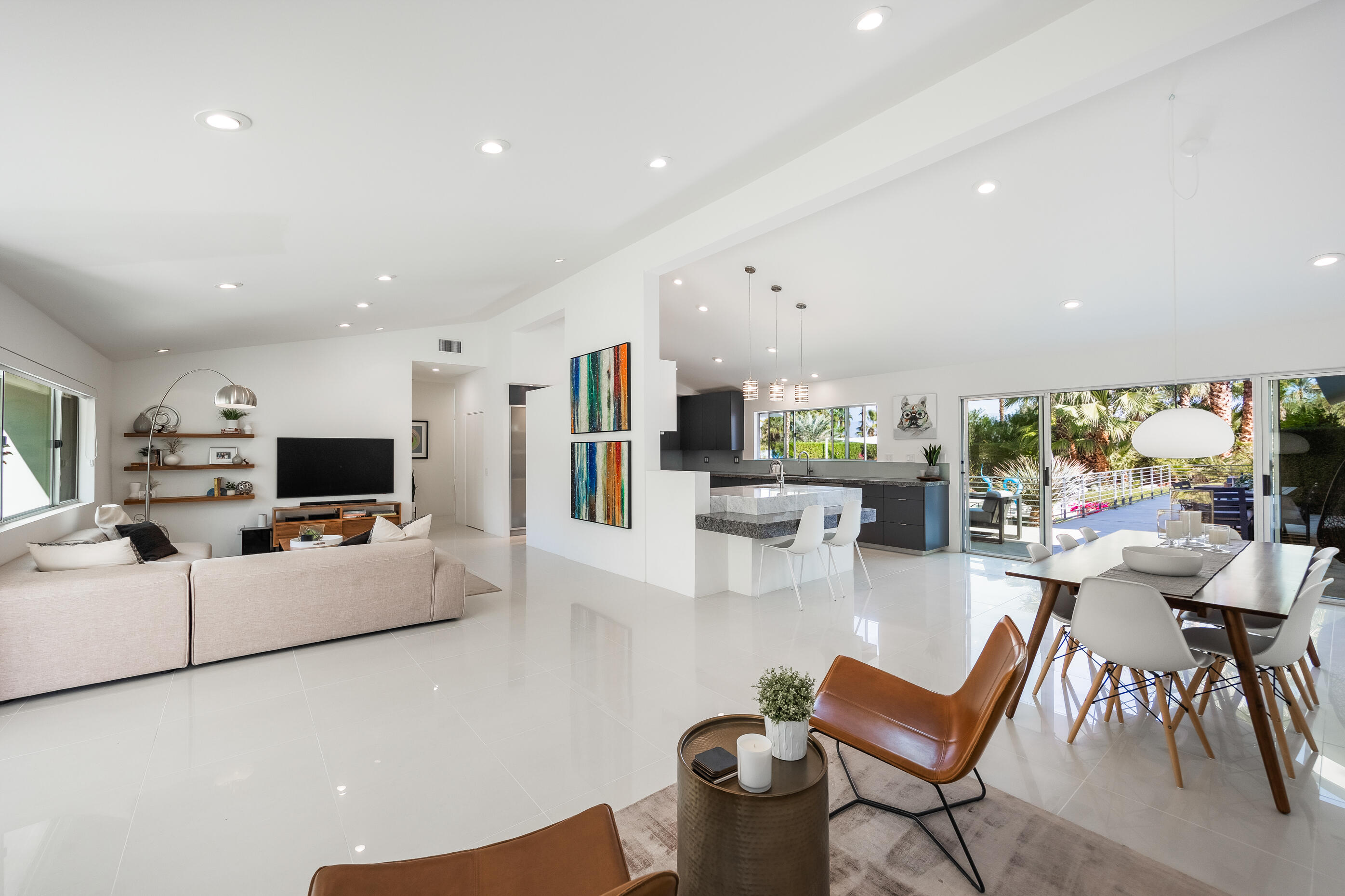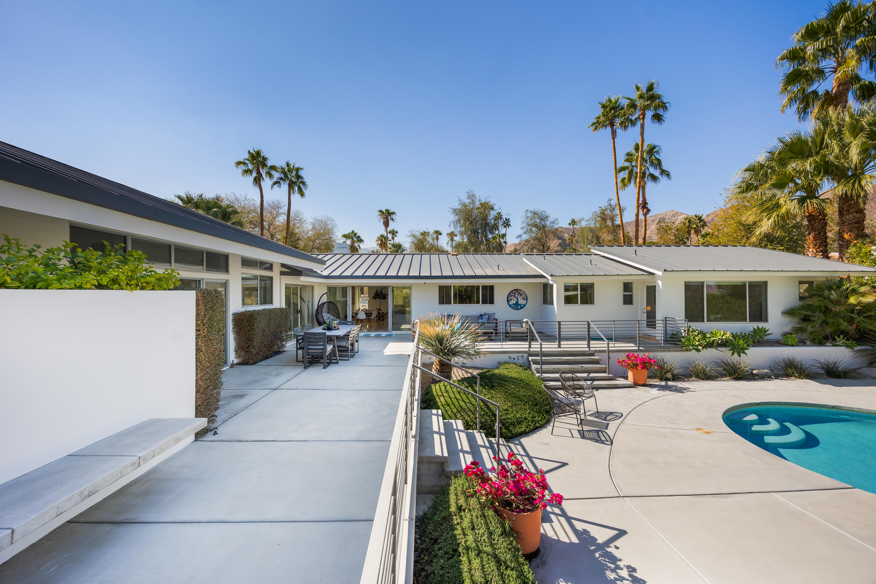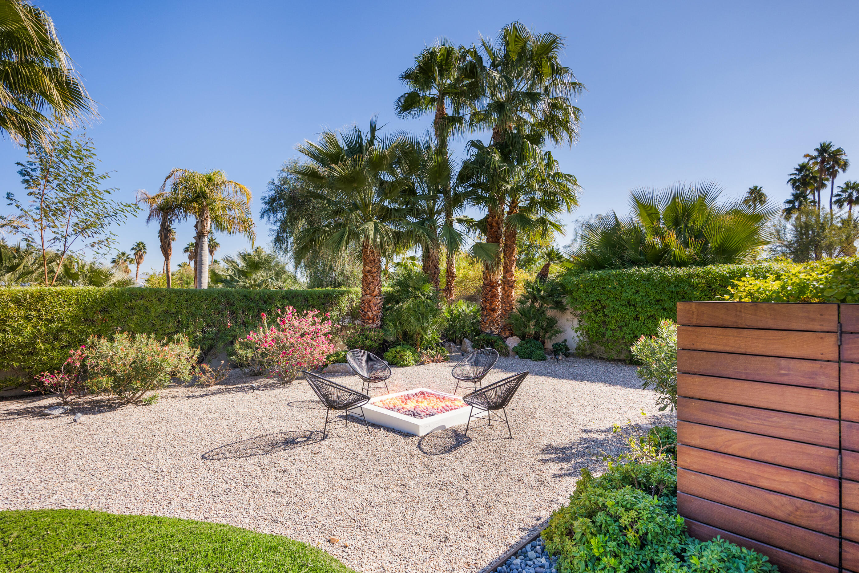 Truly an exceptional property in Magnesia Falls Cove, offering a seamless blend of contemporary design and resort-style amenities. Situated on over 1/3 of an acre, this gated Rancho Mirage compound provides unparalleled privacy and breathtaking mountain views. This 3,315 SQ FT home features 3 bedrooms, 3.5 bathrooms, plus a den/office--delivering space and versatility for modern living. Contemporary finishes are found throughout, including updated flooring, a floating fireplace, double-pane windows, sleek cabinetry, quartz countertops, stainless steel appliances, and spa-like bathrooms. The open-concept floor plan is perfect for entertaining, whether you're hosting a casual gathering or an elegant evening event. Step outside and enjoy true desert luxury: multiple lounging areas, a sun-drenched pool and spa, built-in BBQ with sink, fire pit, and outdoor shower--all set against a dramatic mountain backdrop. Located in one of Rancho Mirage's most desirable neighborhoods, this exquisite home offers the perfect balance of tranquility and sophistication. With owned solar, updated HVAC, newer water filtration & softener system, tankless water heater and being sold furnished, this property truly checks all the boxes. Don't miss this rare opportunity!Interested in this Listing?