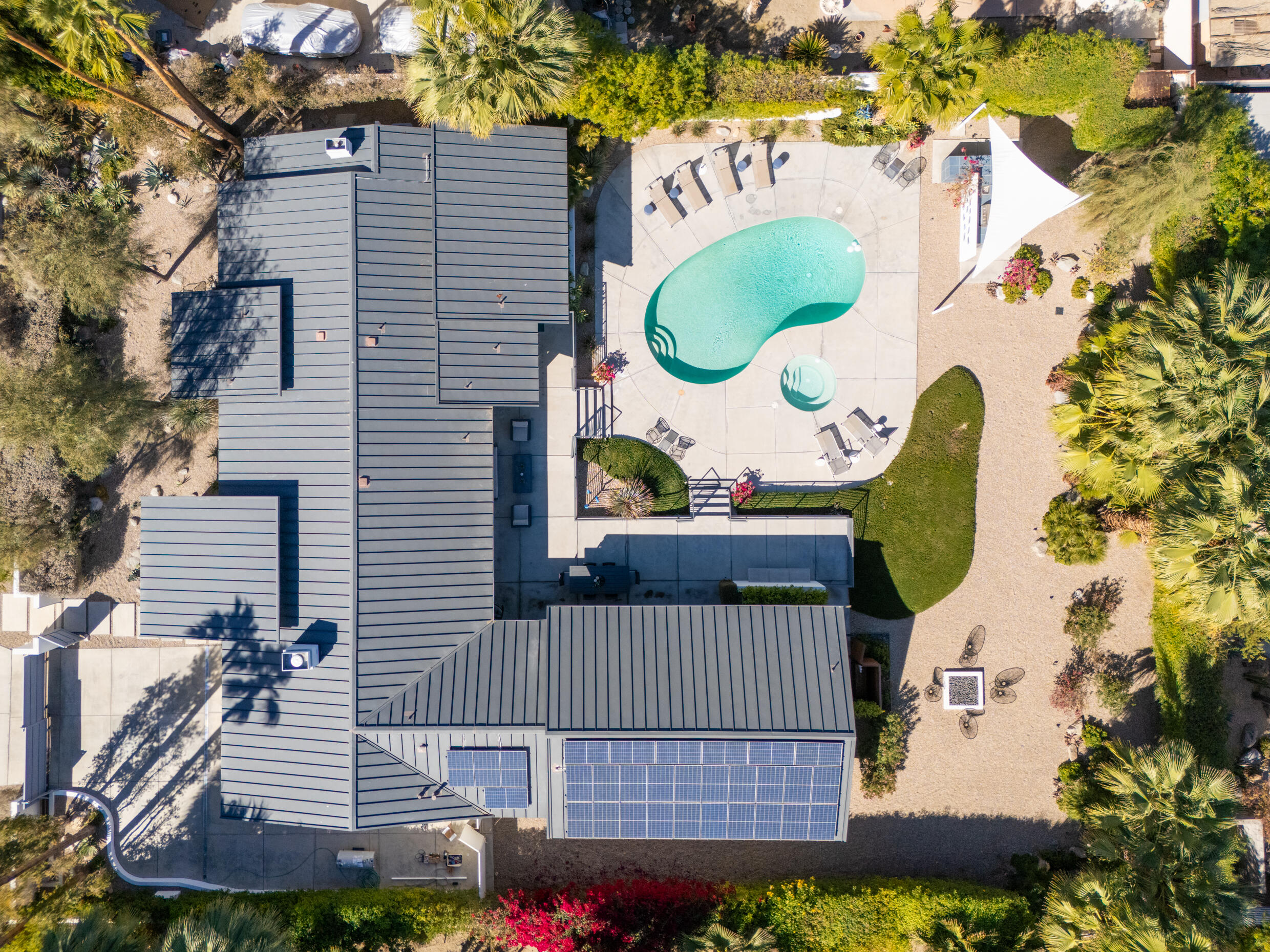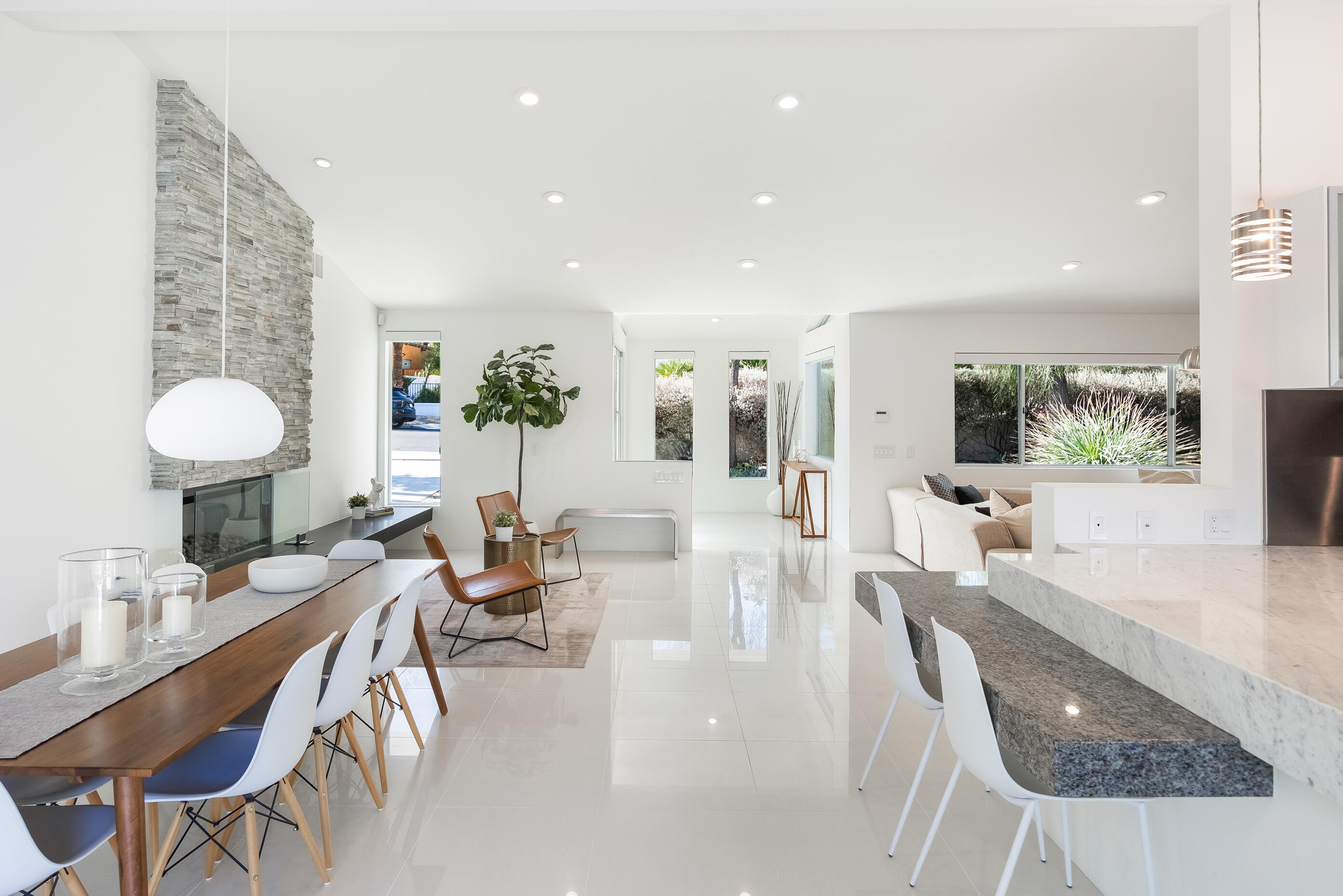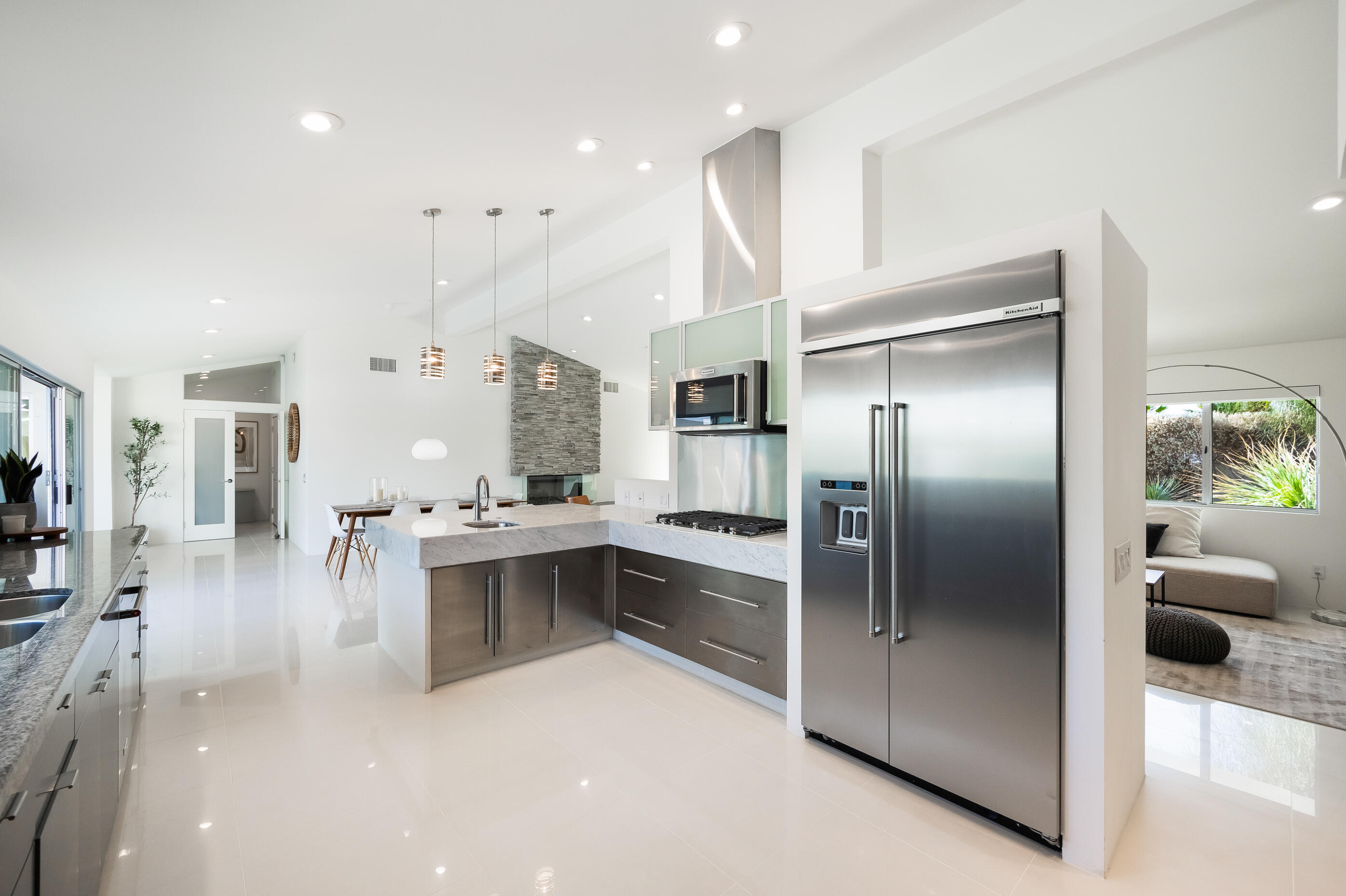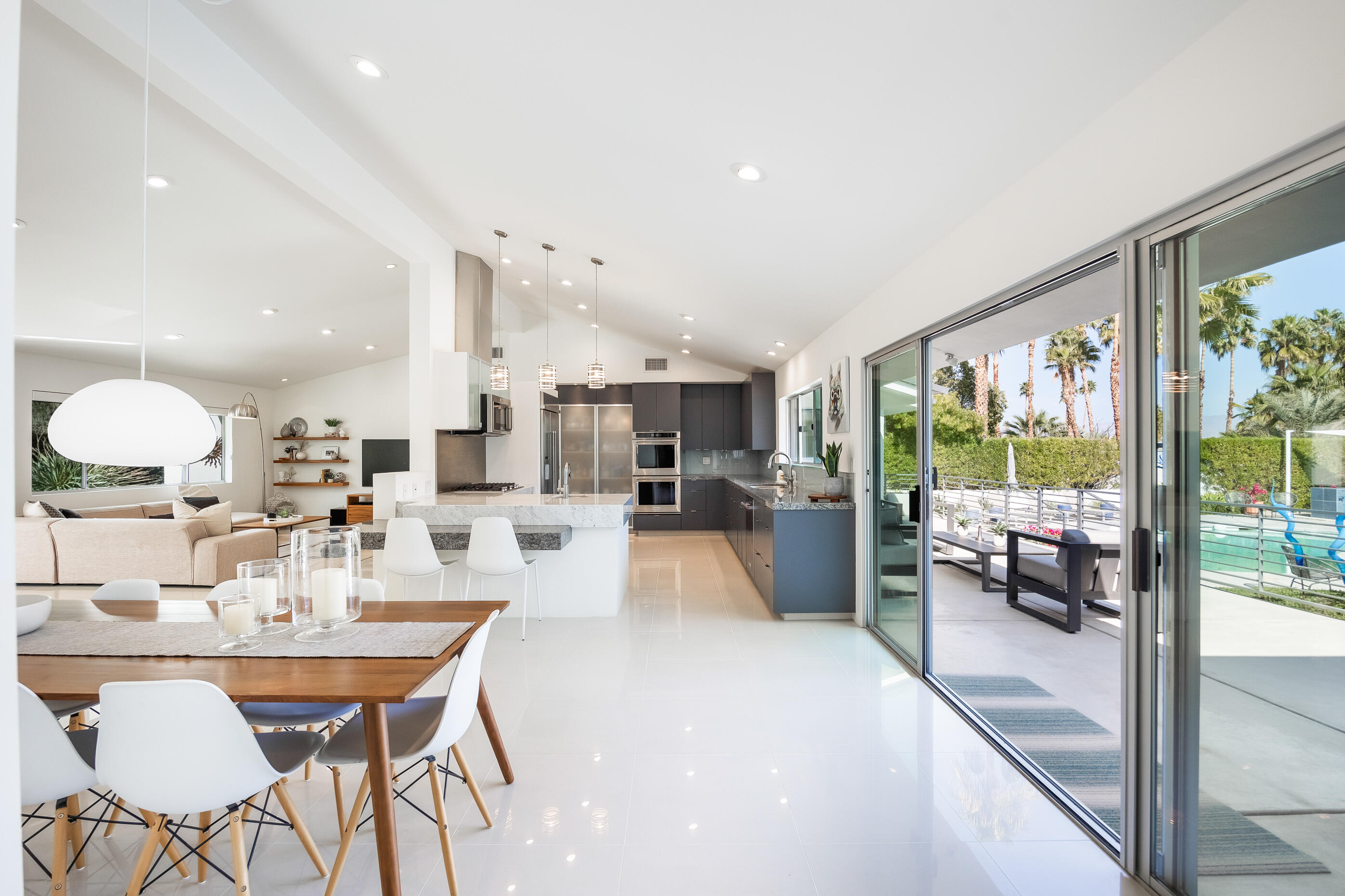 Truly an exceptional property in Magnesia Falls Cove, offering a seamless blend of contemporary design and resort-style amenities. Situated on over 1/3 of an acre, this gated Rancho Mirage compound provides unparalleled privacy and breathtaking mountain views. This 3,315 SQ FT home features 3 bedrooms, 3.5 bathrooms, plus a den/office--delivering space and versatility for modern living. Contemporary finishes are found throughout, including updated flooring, a floating fireplace, double-pane windows, sleek cabinetry, quartz countertops, stainless steel appliances, and spa-like bathrooms. The open-concept floor plan is perfect for entertaining, whether you're hosting a casual gathering or an elegant evening event. Step outside and enjoy true desert luxury: multiple lounging areas, a sun-drenched pool and spa, built-in BBQ with sink, fire pit, and outdoor shower--all set against a dramatic mountain backdrop. Located in one of Rancho Mirage's most desirable neighborhoods, this exquisite home offers the perfect balance of tranquility and sophistication. With owned solar, updated HVAC, newer water filtration & softener system, tankless water heater and being sold furnished, this property truly checks all the boxes. Don't miss this rare opportunity!Interested in this Listing?