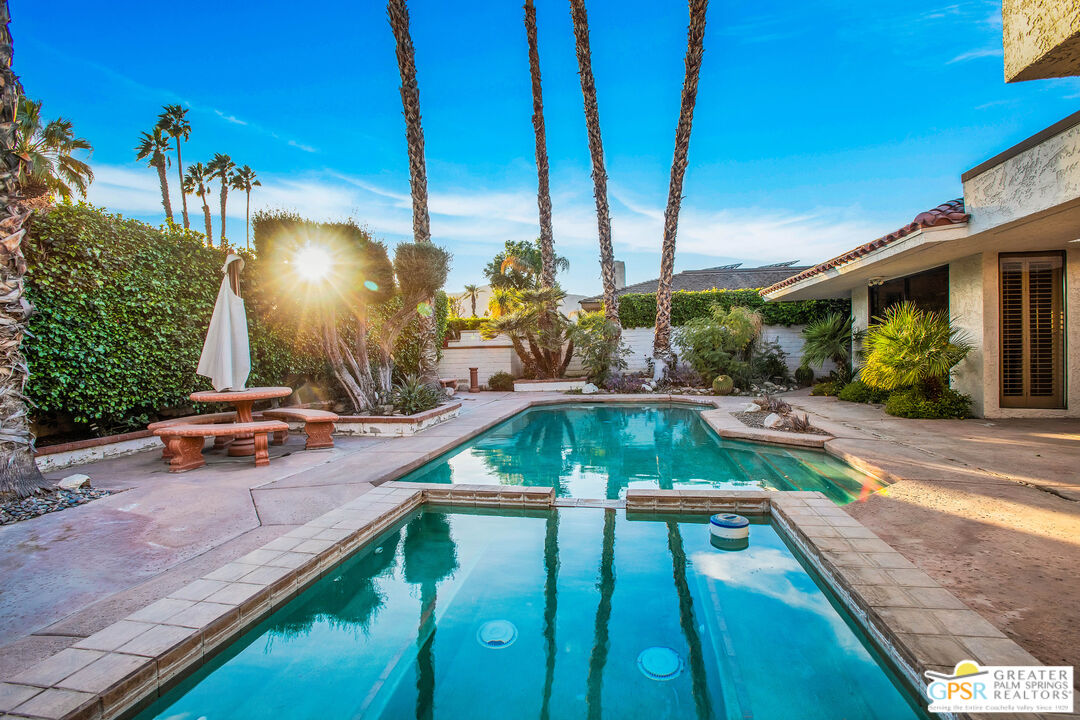 Welcome to The Springs Country Club. Desirable Broadmoor model with private back yard featuring it's own pool and spa. Wide foyer and hallway lead to three spacious primary sized en-suites (two with walk in closets) to give you and your guests a true luxury feel. Large living room with fireplace, adjacent wet bar and dining area. The home also features a private patio area off the front bedrooms. This one needs a bit of love. Update this desirable Broadmoor model to your tastes! The Springs Country Club HOA offers cable, wifi, 24 hour security, tennis, pickleball, dining and gym.Interested in this Listing?