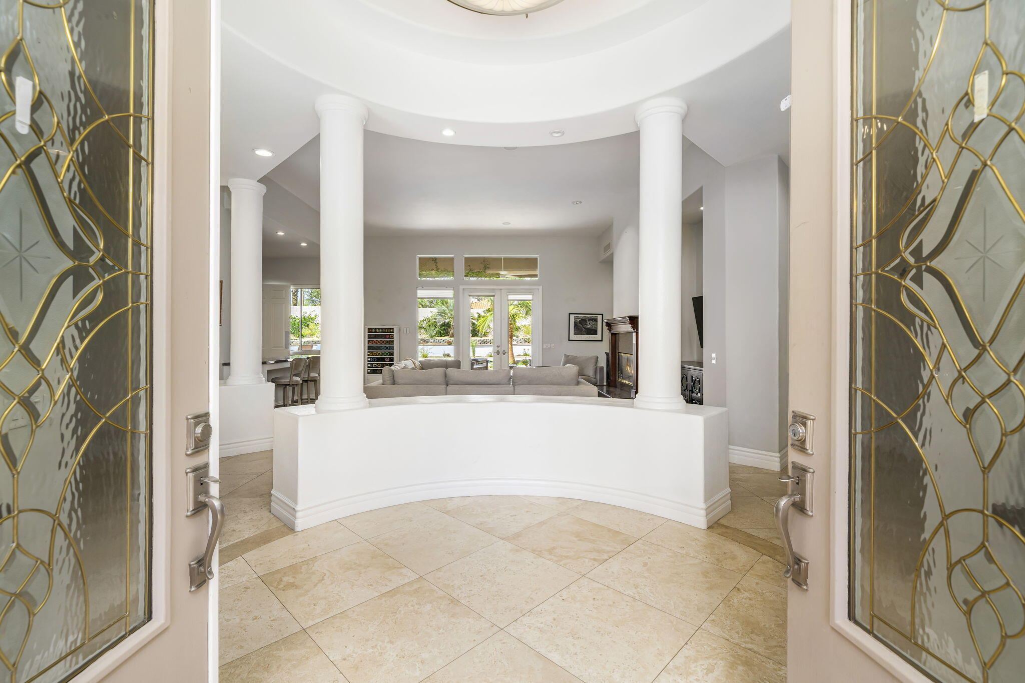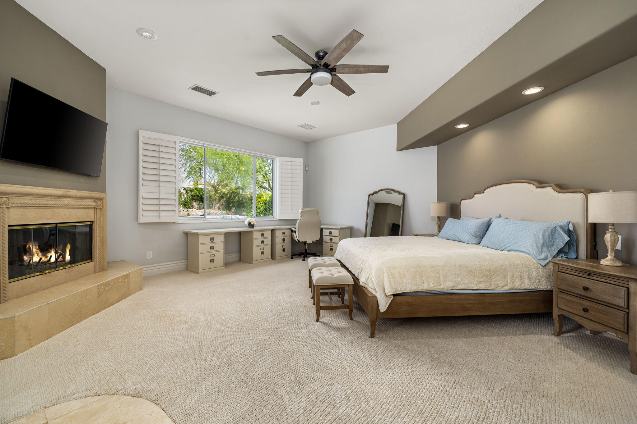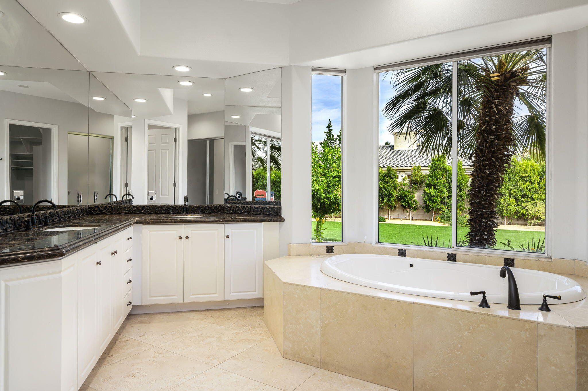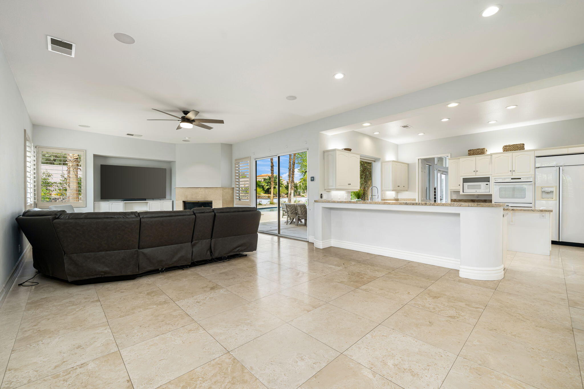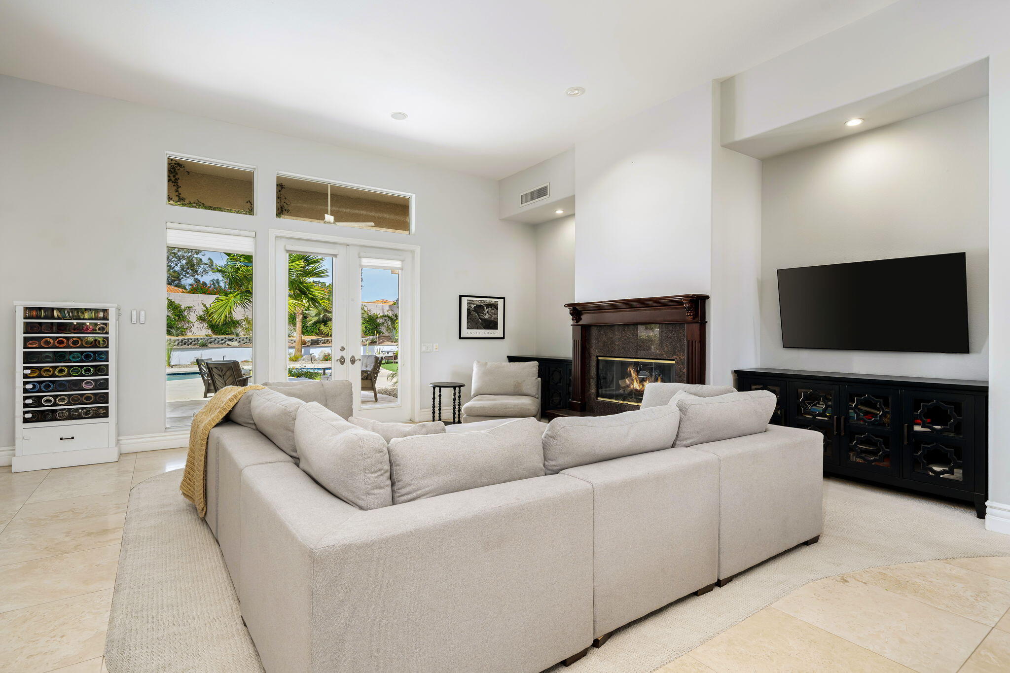 Nestled at the end of a quiet Col-De-Sac, situated on nearly Half an Acre, this elegant Five Bedroom, Five Bathroom home is Ideal for a large family looking for a home in the heart of Rancho Mirage. Enter the home from the charming courtyard into a large circular entryway, leading to the Formal Living Room with Travertine Tiled Flooring and step down bar, with Walls of Glass over looking the backyard with Sparkling Pool. Off the living room is situated the Formal Dining room, perfect for entertaining friends and family. The Kitchen with Granite Countertops, white cabinetry and appliances, with under counter seating. A Cozy Family Room off the kitchen with Fireplace and sliding glass door that leads out to the Back Patio and Built in Barbeque. Four ample sized bedrooms. A Detached Casita with its Own Entry. The Primary bedroom suit with Fireplace and sliding glass door out to the patio. A Large Primary Bathroom with Soaking Tub and sizeable shower with travertine Tiled Walls. A Substantial Walk in Closet with built in dresser and plenty of hanging space. The large back and side yard with patio over hang and electric awning for Alfresco Living and Dining with views of the San Jacinto Mountain. Victoria Falls amenities included Tennis, Pickleball and Basketball. Come home to your own, private desert retreat!Interested in this Listing?