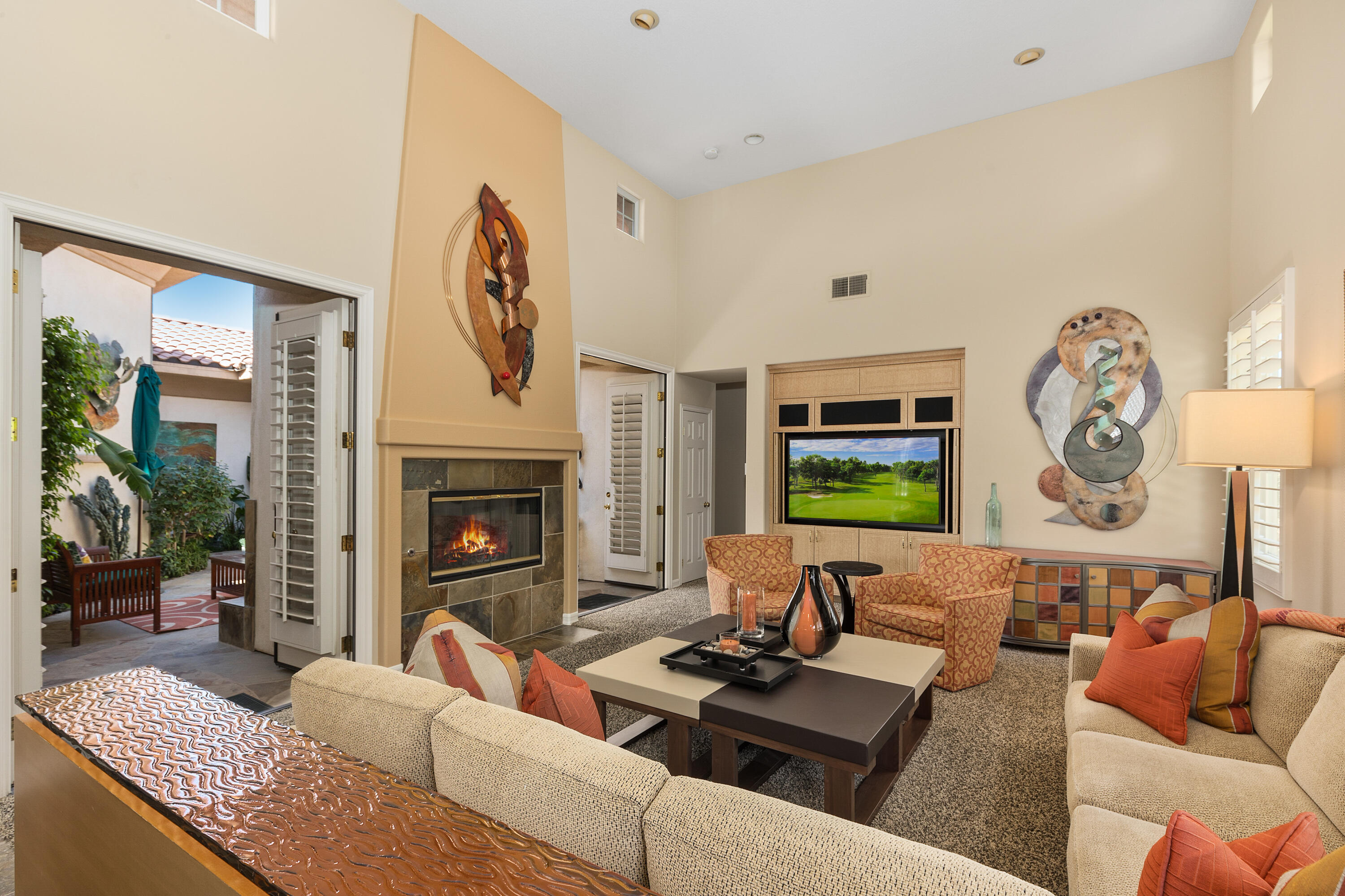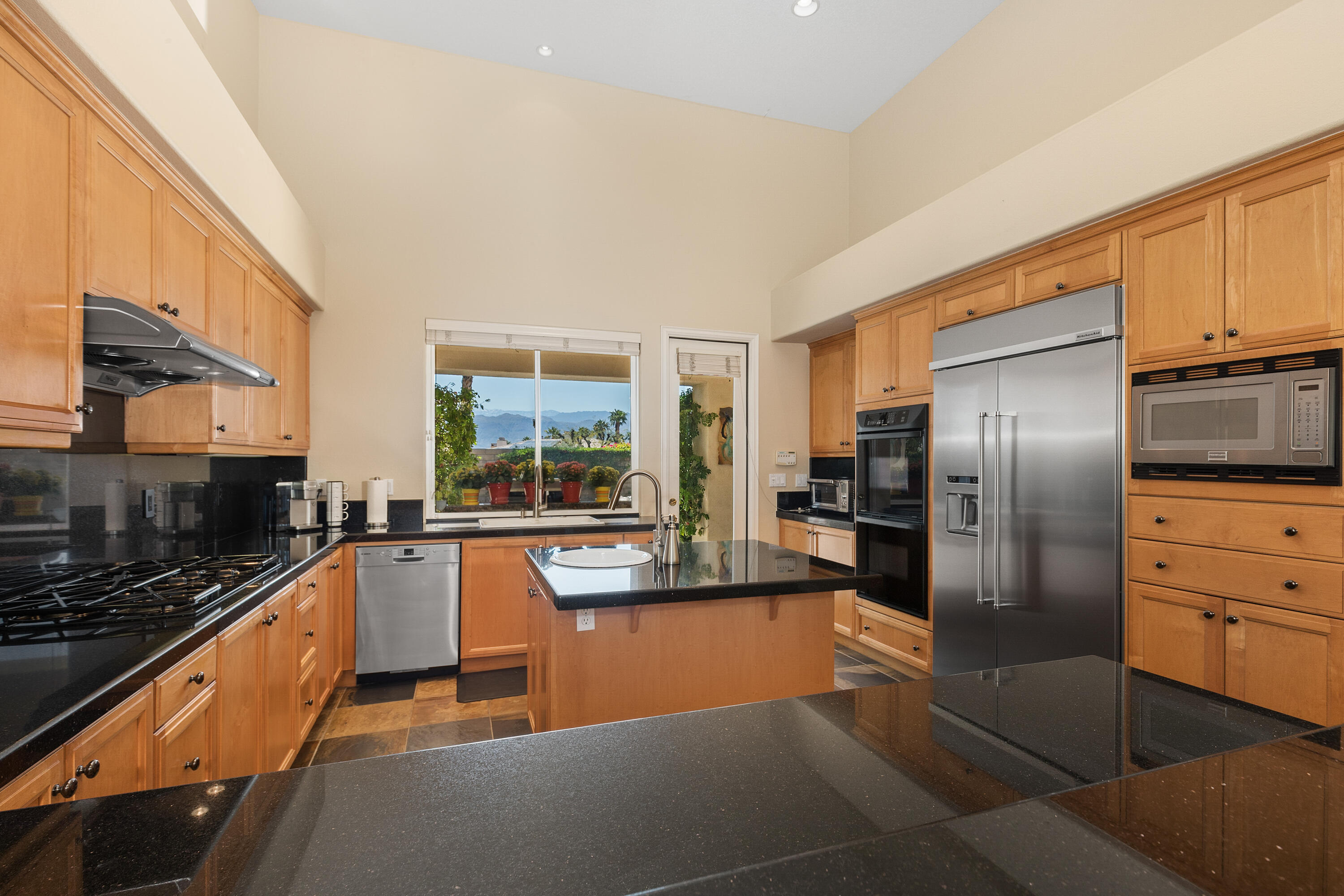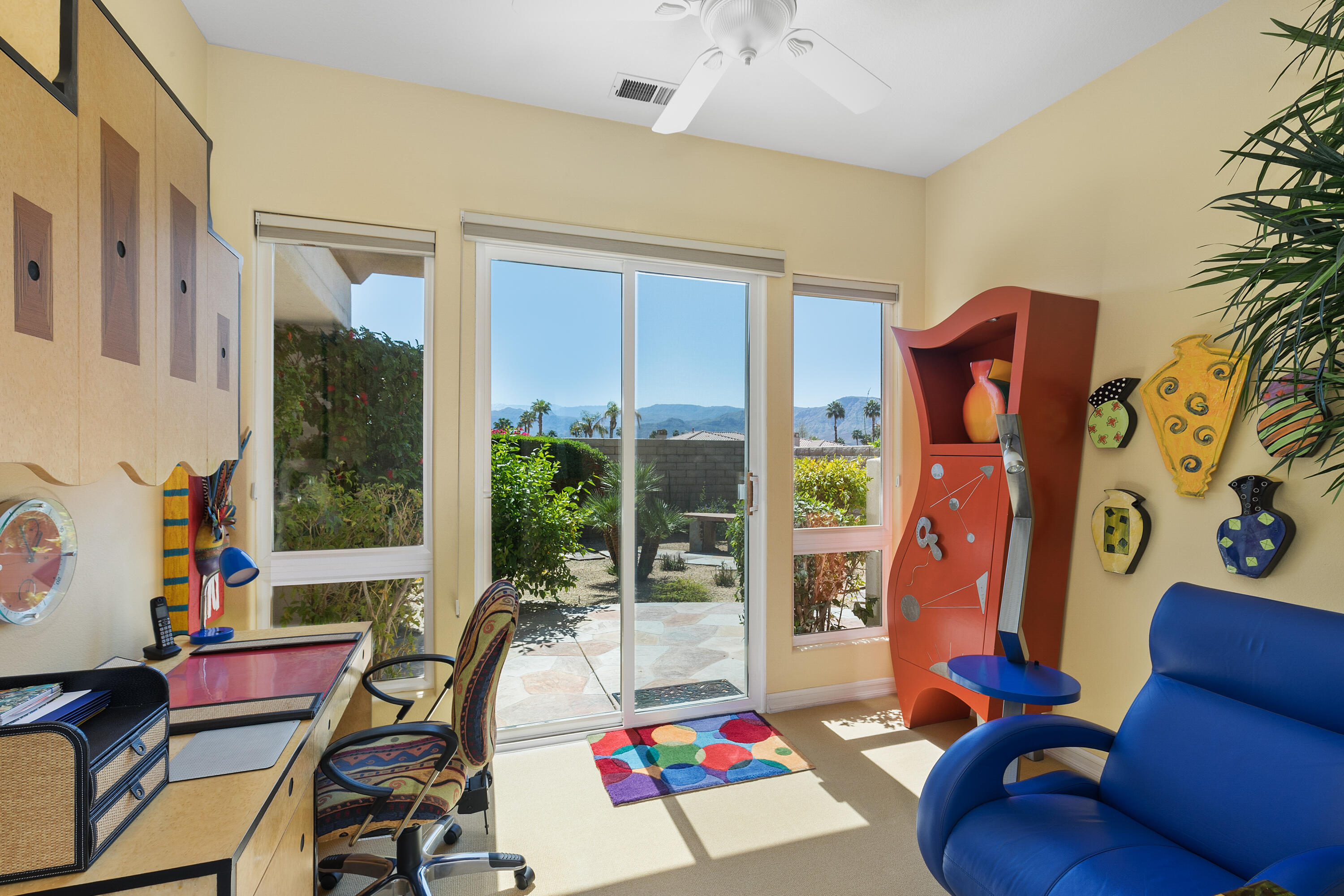 South & West mountain vistas await from this meticulously maintained Mission Hills Country Club Oakmont Estates home. Extensive desert landscaping surrounds all sides of the home. This contemporary gem boasts an energy efficient PREPAID solar lease until 2030. (42 panels), tankless water heater and drip outside irrigation result in low utility costs. The entry courtyard and pool area are completely private to passersby. Enter front courtyard, revealing a delightful alfresco setting with a gas fireplace and fountain. Slate accents adorn the entrance and foyer, extending throughout the home. Within the last 18 months the following has been remodeled: all bathrooms, powder room, laundry room (w free standing wine cooler), 3 bedrooms/3.5 baths, living room, dining room, great room with fireplace, wet bar, and island kitchen featuring solid surface countertops. There are also slate floors, alongside a casual dining space. The Primary Suite provides convenient access to the modern pool/spa with mountain views, oversized walk-in closet, an office/bonus room, plus an office/library, and a lavish bath with dual sinks. Primary also has a luxurious spa tub, separate large shower with dramatic high ceilings and doorways. You will enjoy relaxing in your private front courtyard patio with fireplace. The garage has convenient direct access. HOA dues are only a modest $300/mo.Interested in this Listing?