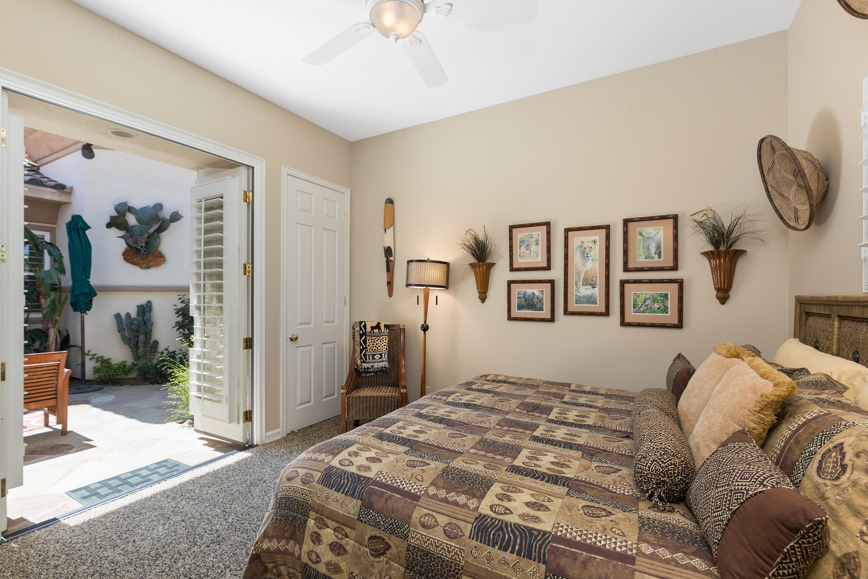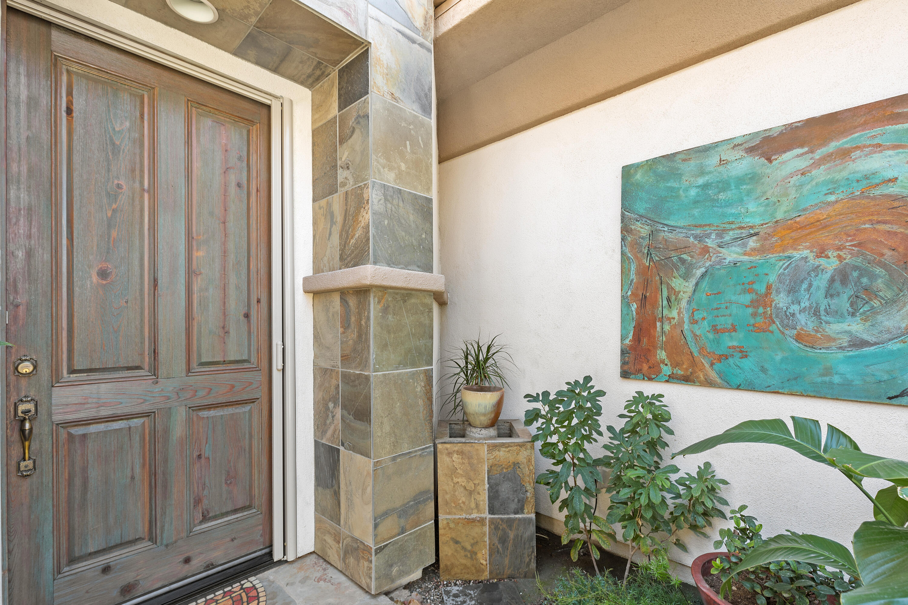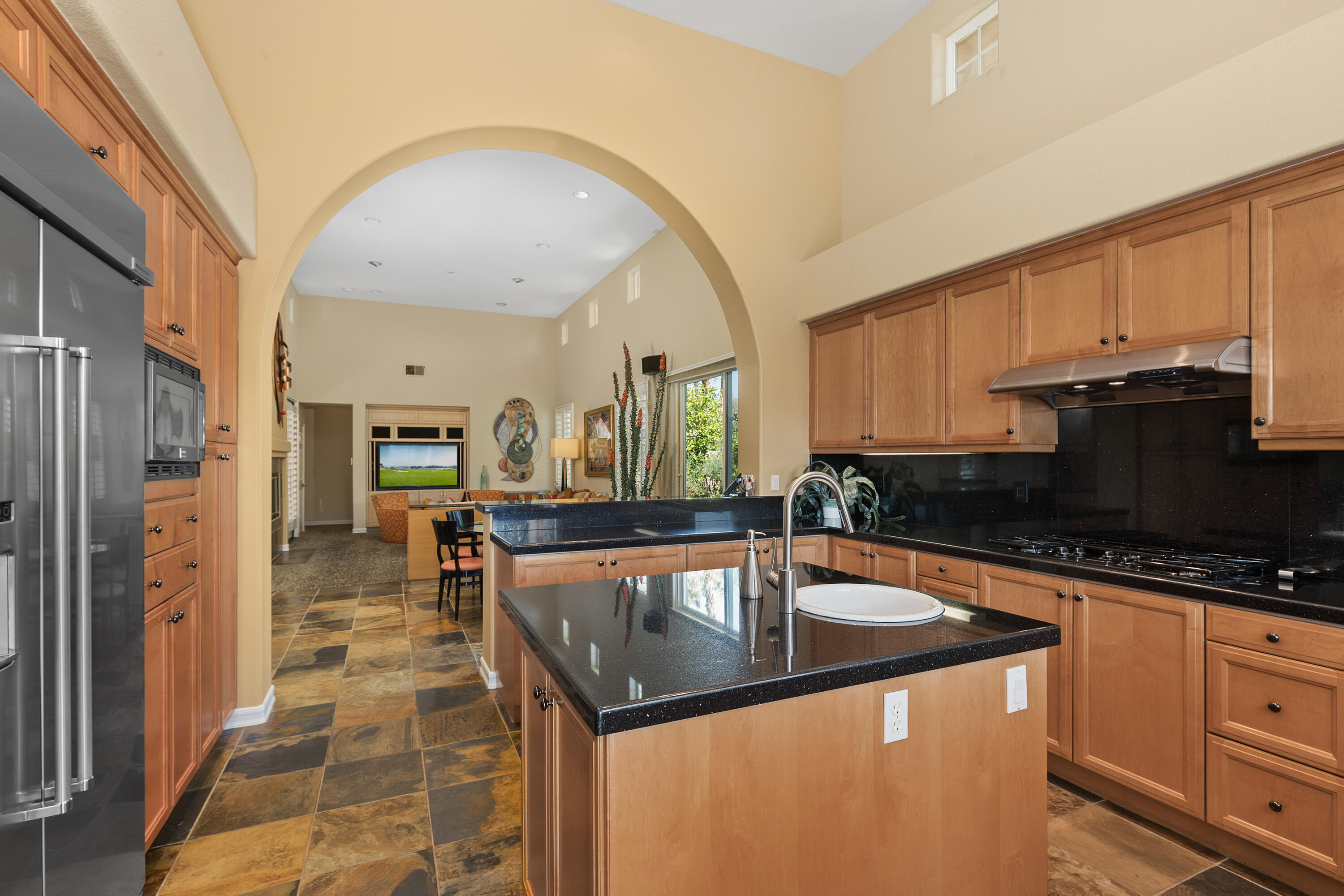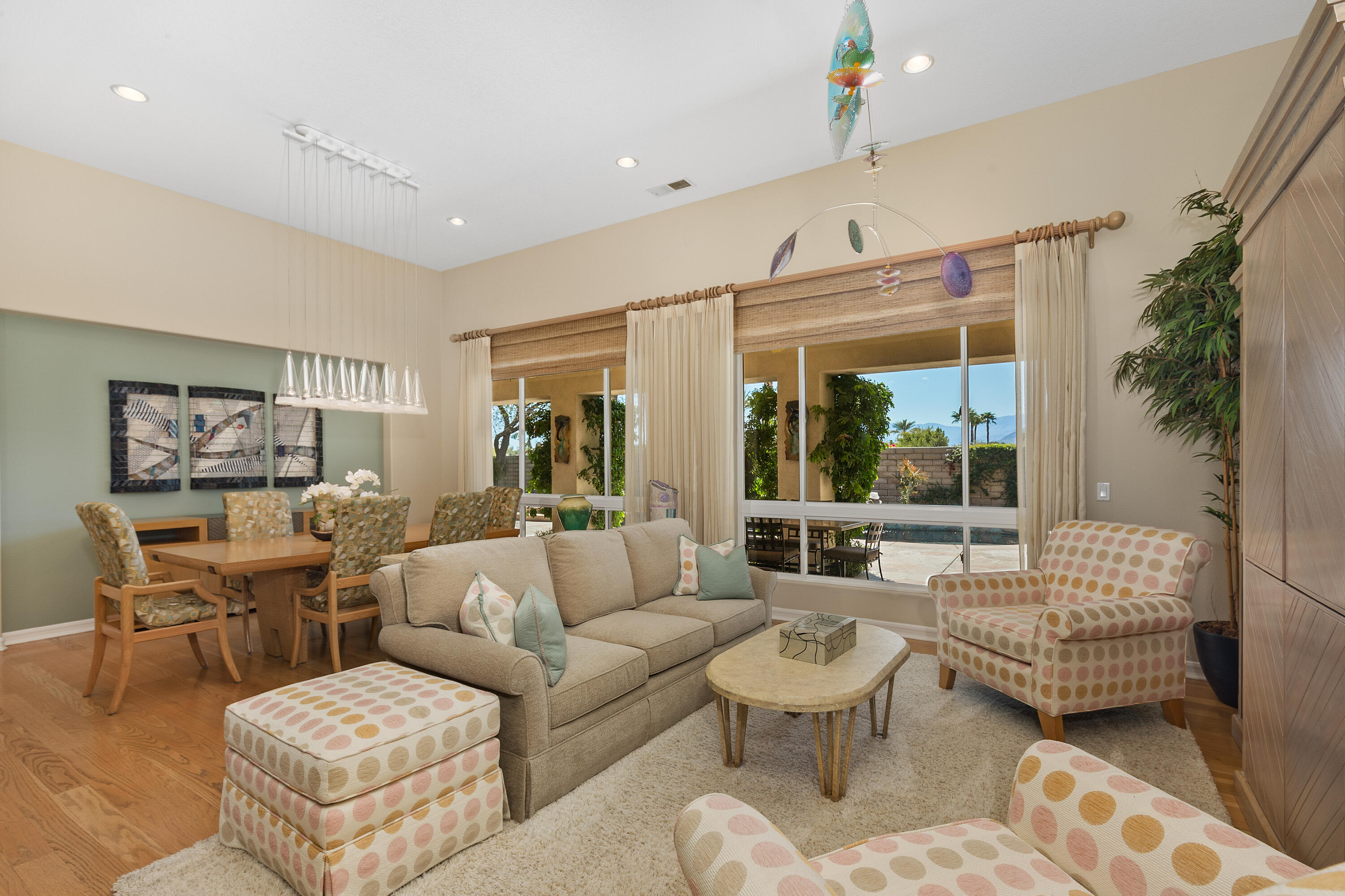South & West mountain vistas await from this meticulously maintained Mission Hills Country Club Oakmont Estates home. Extensive desert landscaping surrounds all sides of the home. This contemporary gem boasts an energy efficient PREPAID solar lease until 2030. (42 panels), tankless water heater and drip outside irrigation result in low utility costs. The entry courtyard and pool area are completely private to passersby. Enter front courtyard, revealing a delightful alfresco setting with a gas fireplace and fountain. Slate accents adorn the entrance and foyer, extending throughout the home. Within the last 18 months the following has been remodeled: all bathrooms, powder room, laundry room (w free standing wine cooler), 3 bedrooms/3.5 baths, living room, dining room, great room with fireplace, wet bar, and island kitchen featuring solid surface countertops. There are also slate floors, alongside a casual dining space. The Primary Suite provides convenient access to the modern pool/spa with mountain views, oversized walk-in closet, an office/bonus room, plus an office/library, and a lavish bath with dual sinks. Primary also has a luxurious spa tub, separate large shower with dramatic high ceilings and doorways. You will enjoy relaxing in your private front courtyard patio with fireplace. The garage has convenient direct access. HOA dues are only a modest $300/mo.Interested in this Listing?