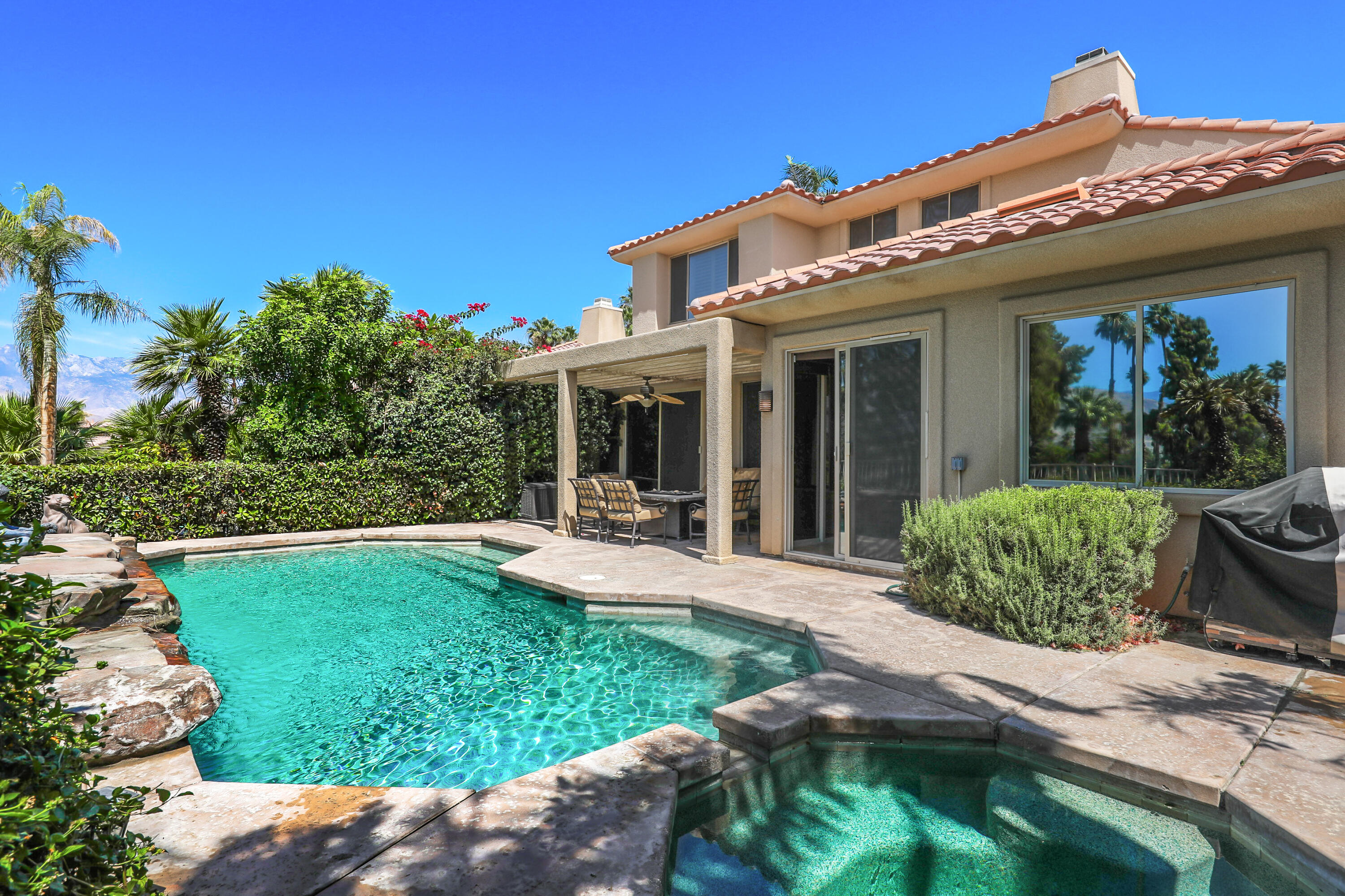 Welcome to sought-after Rancho Mirage Country Club. This rare, freestanding two-story home is one of only eight of this larger model ever built in Ranch Country Club, and none compare to this one. Perfectly positioned on a premium interior lot, it boasts sweeping 180 degree south and west-facing views overlooking four fairways, sparkling lakes, and the majestic mountains beyond.Designed for those who appreciate quality and space, this home offers 4 bedrooms, plus a large office with beautiful pocket doors, and 4 bathrooms.The residence is loaded with top-tier upgrades and custom features throughout. With dual master suites, one on each level, it's ideal for flexible living or hosting guests. The upstairs suite features a private loft retreat, while the downstairs suite offers a serene spa-like escape.The heart of the home is the gourmet kitchen, crafted for the serious chef. Highlights include a Thermador professional gas/electric range, 42'' Sub-Zero refrigerator, Bosch dishwasher, double GE Monogram ovens, and a custom wine chiller. Rich Alder cabinetry with sleek nickel hardware pairs perfectly with single-slab granite counters and a tumbled travertine backsplash, all in warm, inviting tones. An oversized island provides ample prep space and casual seating.Soaring 20-foot ceilings in the living room elevate the open-concept design, while custom built-ins throughout the home add both function and sophistication. High-end tumbled travertine flooring runs seamlessly throughout.Step outside to a backyard oasis where multiple seating areas, a built-in BBQ, and a private spa awaita'all surrounded by jaw-dropping views that redefine ''premium.'' This is desert living at its finest.Don't miss this extraordinary opportunity to own one of the rarest and most desirable homes in the community.HOA fees include; roof, exterior paint, stucco, skylights, cable, TV, high-speed Internet, guard gate, front, landscape, maintenance, for community pools, and spas, maintenance of golInterested in this Listing?