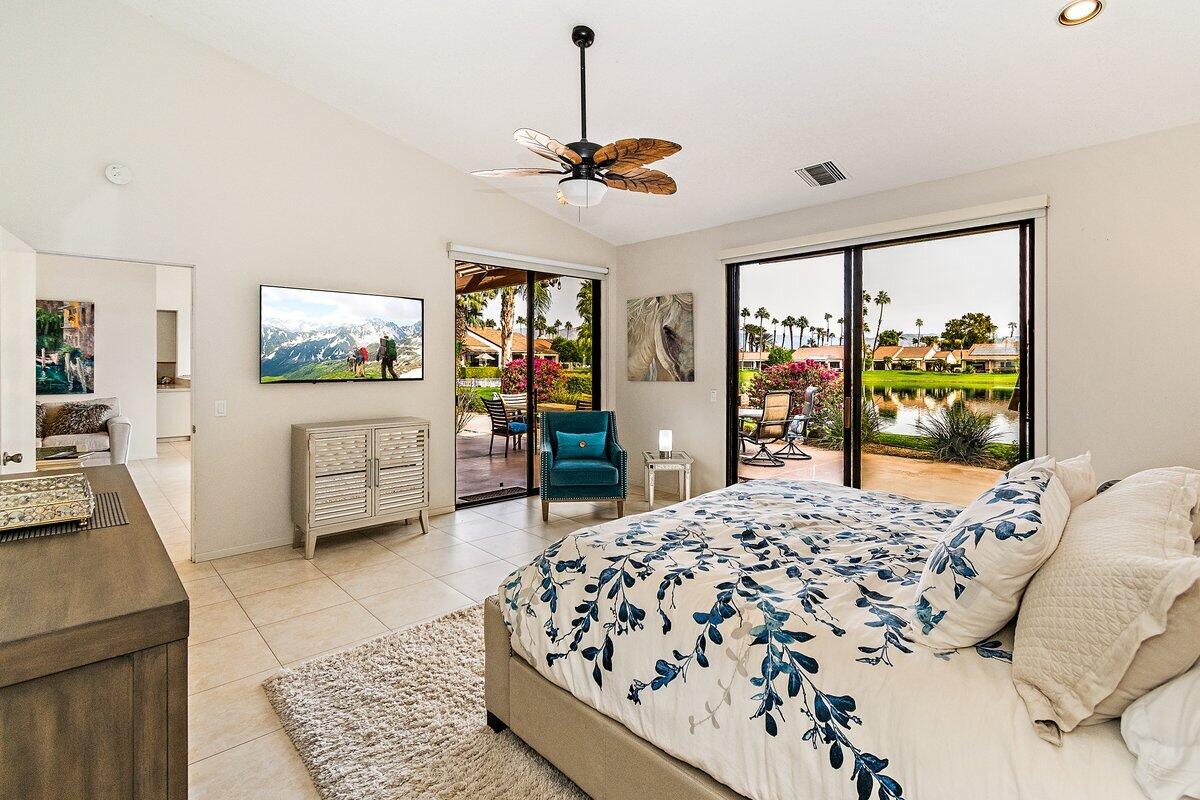 Call now to see this fabulous home! This fabulous Carmel Valley model home in a perfect quiet and serene location with incredible lake and mountain views offers 3 bedrooms, 3 baths, 2 car garage plus golf cart garage. The home is a former model home and in pristine condition. You will love the spacious living room with fireplace and vaulted ceiling, dining room with side patio, large cook's kitchen with island and lots of cabinets plus a breakfast area looking to the lake and mountains, 3 large bedrooms with their own private baths, separate laundry room, and wonderful large patio with gorgeous mountain and lake views plus a BBQ. The home is tiled throughout. The garage has double storage closets and a workbench. The never-ending lake views are seen for the main bedroom, living room, breakfast area and kitchen. The home can be purchased partially furnished if you choose. There are 2 community pools nearby and the Mission Hills Country Club offers a social and golf membership(3 courses) with tennis, pickleball, golf, fitness, and lots of events and activities. The lease is available for purchase or to be extended. This home is truly living in paradise every day!Interested in this Listing?