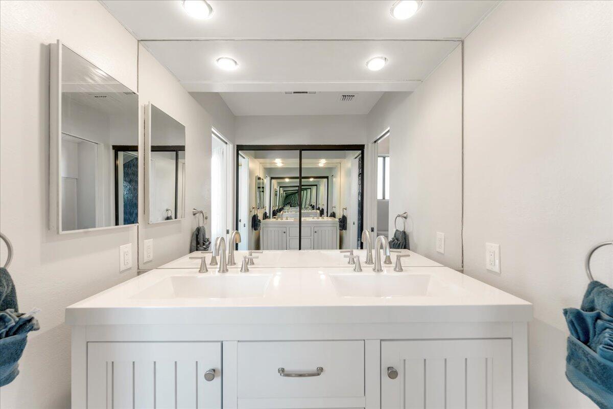 This recently renovated 2 bedroom 2 bathroom Tennis Villa Condo is located in the prime location nestled in between the racquet club and the Mission Hills CC clubhouse. This home features three outdoor spaces that come with spectacular views of the golf course, racquet club and mountain ranges. The private rooftop deck overlooks the racquet club and has the most amazing 360-degree mountain views. The back patio has double sliding doors that add an extra touch of luxury for indoor/outdoor living and looks onto the Arnold Palmer golf course 18th green. With over 1500 sq ft of living space you will enjoy two primary suites with one on each floor. There are tons of updated features throughout the entire property and comes with two detached single car garages just steps away from the front door. HOA includes 24 hour guard gates, 4 community pools/spas, common area landscaping, cable tv, trash and the exterior maintenance of roofs and painting. This property is easy to rent for long term stays and is 15 minutes away from Eisenhower Hospital, Palm Springs Airport and The River restaurants and shopping area.Interested in this Listing?