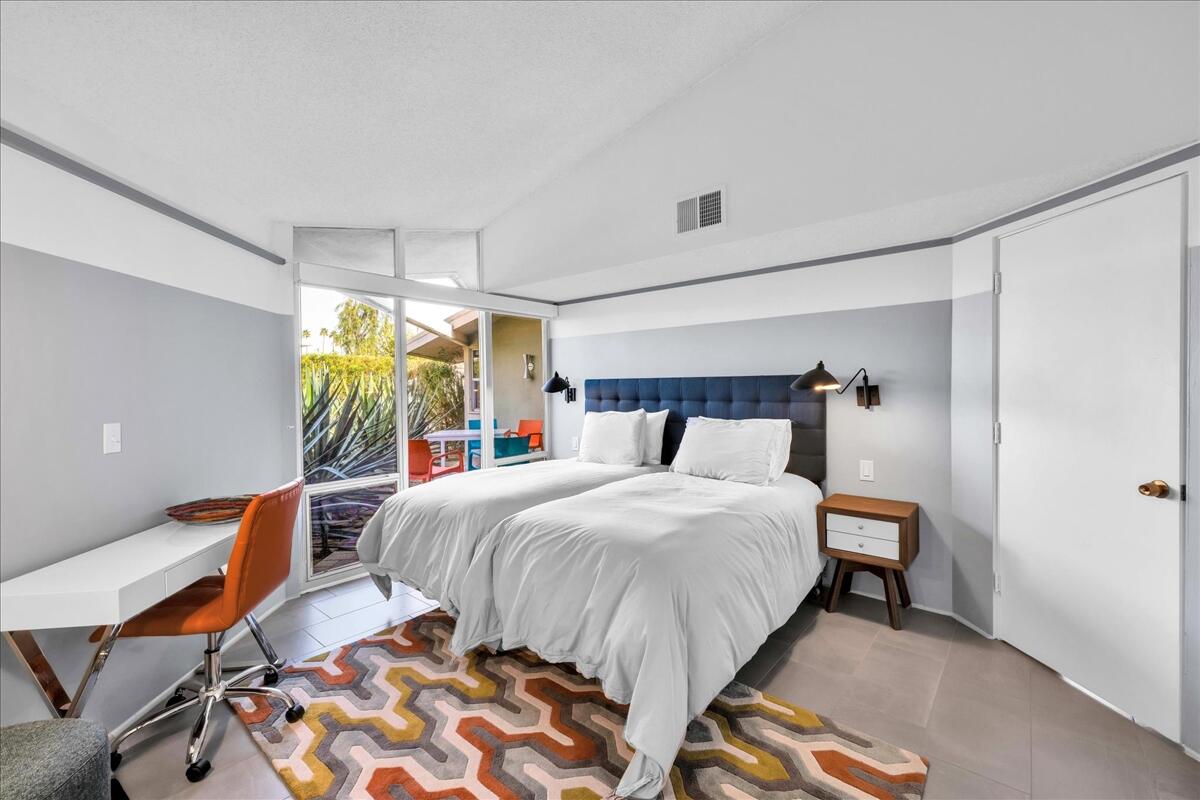 MAJOR PRICE ADJUSTMENT! Welcome to Iconic Da Vaal Estates, often referred to as the original Desert-X! This Midcentury Modern architectural masterpiece is located in the highly sought after Tamarisk Country Club area of Rancho Mirage. The property was designed in 1960 by renowned architect Val Powelson & built by contractor, Robert Marx, son of Gummo Marx. Consisting of five, one-level, 4-unit condominium groupings based on a four-pointed star. There are no common walls. The only point at which these units are attached is at the center of the ''X'' where each unit has a large storage area originally designed to store your golf cart. The space now houses your laundry, HVAC and water heater. The open living plan spans approximately 32ft & features a vaulted tongue and groove ceiling that soars to 14ft! At one end of the triangular floor-plan is a very generous Primary Suite & at the other a guest bedroom & bathroom suite. There are walls of glass and clerestory windows that fill the space with an abundance of natural light. Once a grapefruit orchard, Da Vaal Estates retains original fruit trees on a 2 1/2 acre site with astounding views! The property is listed on the Rancho Mirage Register of Historic Properties which allows you a very low annual property tax base. Taxes are included in the monthly HOA fee. Da Vaal Estates is a Stock Cooperative. Each owner is issued a ''stock certificate'' granting a 1/20th share of the complex with exclusive use of a specific unitInterested in this Listing?