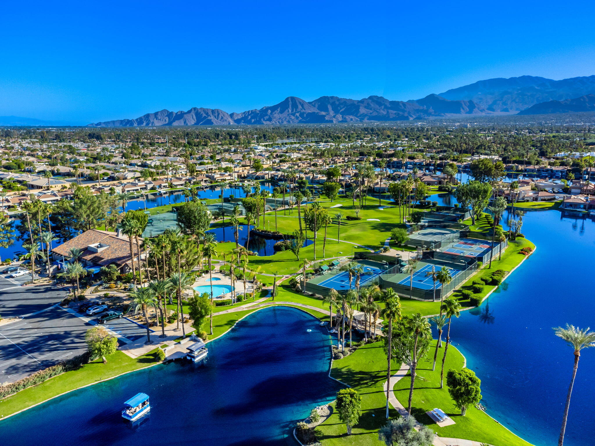 What an opportunity to experience west views & lakefront living in the heart of Rancho Mirage now offered at $598,000. BRING OFFERS. This single-story 3-bed, 2.5-bath condo features an elevated patio with an awning & misters for year-round enjoyment. First time on the resale market, this home boasts a chef's kitchen with extra counter space, storage & island seating. A picture window connects the kitchen to the family room, which features high ceilings, a fireplace & stunning lake/mountain views. The dining room looks to atrium & built-in bar. The primary suite includes a full bath, updated shower & custom closet. The 2nd bedroom has built-ins & an en-suite bath, while the 3rd bedroom is a built-in office with a half bath which can be coverted to full bath. Lake Mirage is an active gated community in Rancho Mirage close to Palm Springs, El Paseo & The River for shopping & dining, Agua Caliente casino, Acrisure arena hockey & concerts and Eisenhower medical center. Lake Mirage has 2 lakes you can enjoy. HOA includes exterior maintenance, structure insurance, roof, the clubhouse, 11 community pools/spas, gym, tennis, pickleball, 3-hole pitch putt golf course, basketball, racquetball & pool table. Come enjoy the sunshine & this lakefront resort paradise!Interested in this Listing?