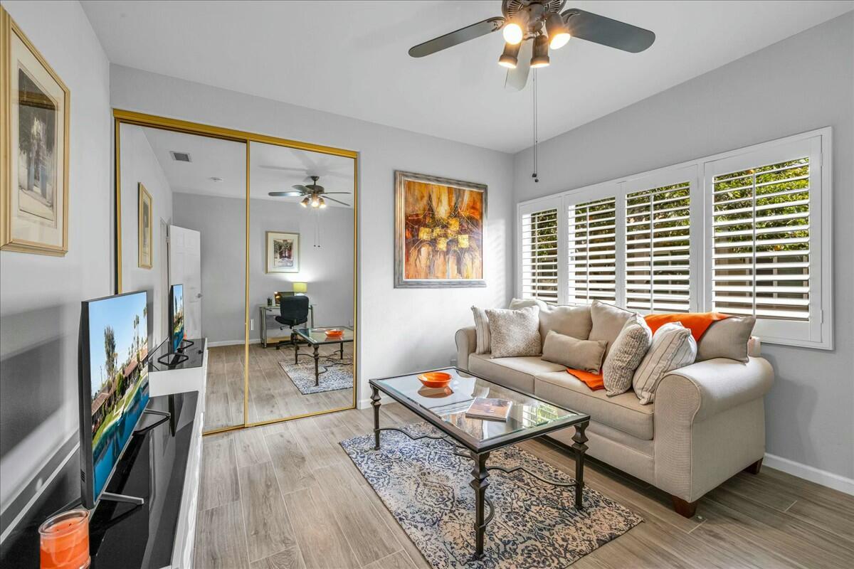 This exceptional Lake Mirage residence blends breathtaking southern mountain vistas and tranquil lakefront scenery. The highly coveted St. Tropez floor plan is designed to capture the essence of indoor-outdoor elegance, with the expansive living area, kitchen, and primary suite opening directly to the lakeside patio. Recently refreshed, the home features dramatic beveled glass entry doors, ceramic plank tile flooring, an updated kitchen, a spa-inspired primary bath, EV charger, and a brand-new washer and dryer. Offered furnished per inventory, this sophisticated retreat is effortlessly move-in ready.The extended patio offers ample space for gatherings or quiet moments overlooking the shimmering water, where resident swans glide by. A dock is just steps away inviting you to set out on the included paddleboat, drifting across the lake or paddling toward the nearest pool.Ranked among the top 40 communities in the Coachella Valley, Lake Mirage offers a guard-gated sanctuary with seven tennis courts (six lighted), six pickle ball courts, fitness facility, and 11 pools and spas. Optional membership to the SCYA Yacht Club and an active social calendar. Just moments from world-class dining, shopping, Eisenhower Medical Center, and Palm Springs International Airport, this Rancho Mirage haven is a rare offering of luxury, leisure, and convenience, also a Certified Wildlife Habitat by the National Wildlife Federation.Interested in this Listing?