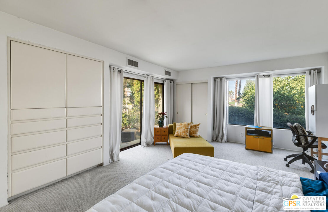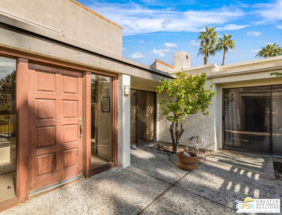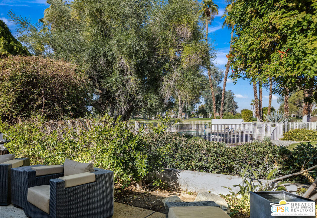 Three bedroom condo overlooking the pool and the Tournament Course in Mission Hills Country Club. Close to the clubhouse. Open floor plan. Formal entry from a large gated courtyard patio. Huge great room with fireplace, wet bar and vaulted ceilings. Dual master suites. The largest features a seating area, built-ins, dressing area, sunken tub and atrium. All the bedrooms open to patios. Gourmet kitchen with a breakfast bar adjacent to the dining room. Newer washer and dryer in the utility closet. The rear patio is steps from the pool. It features a built-in barbecue, fountain and pass through from the wet bar. Ample entertainment space inside and out. Detached two car plus golf cart garage. This property is furnished per inventory. The country club features three 18 hole golf courses, 43 racquet sports courts, croquet, state of the art fitness center and dining. Membership is required for the club amenities. The seller will participate in the land lease upgrade costs with an acceptable offer.Interested in this Listing?
