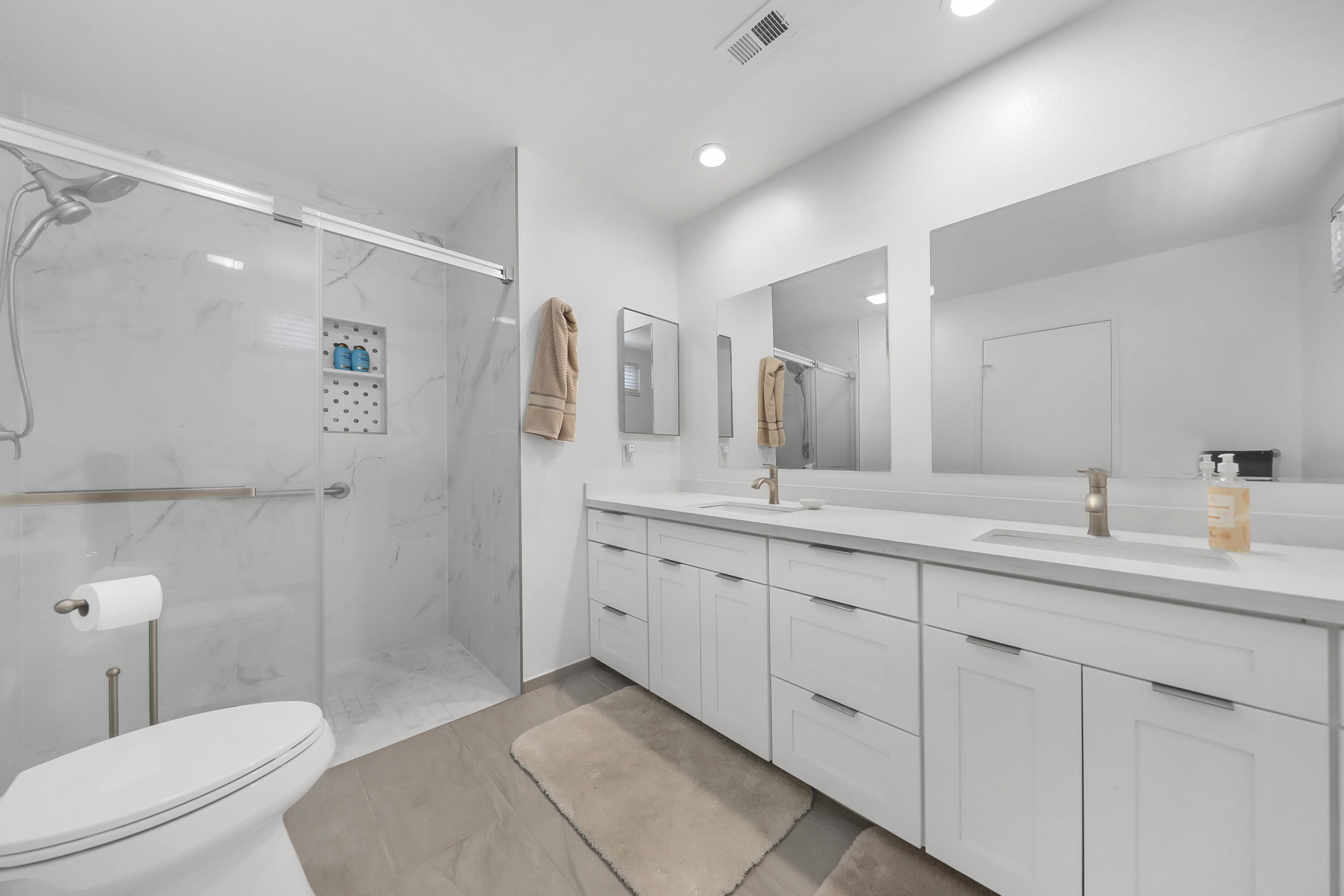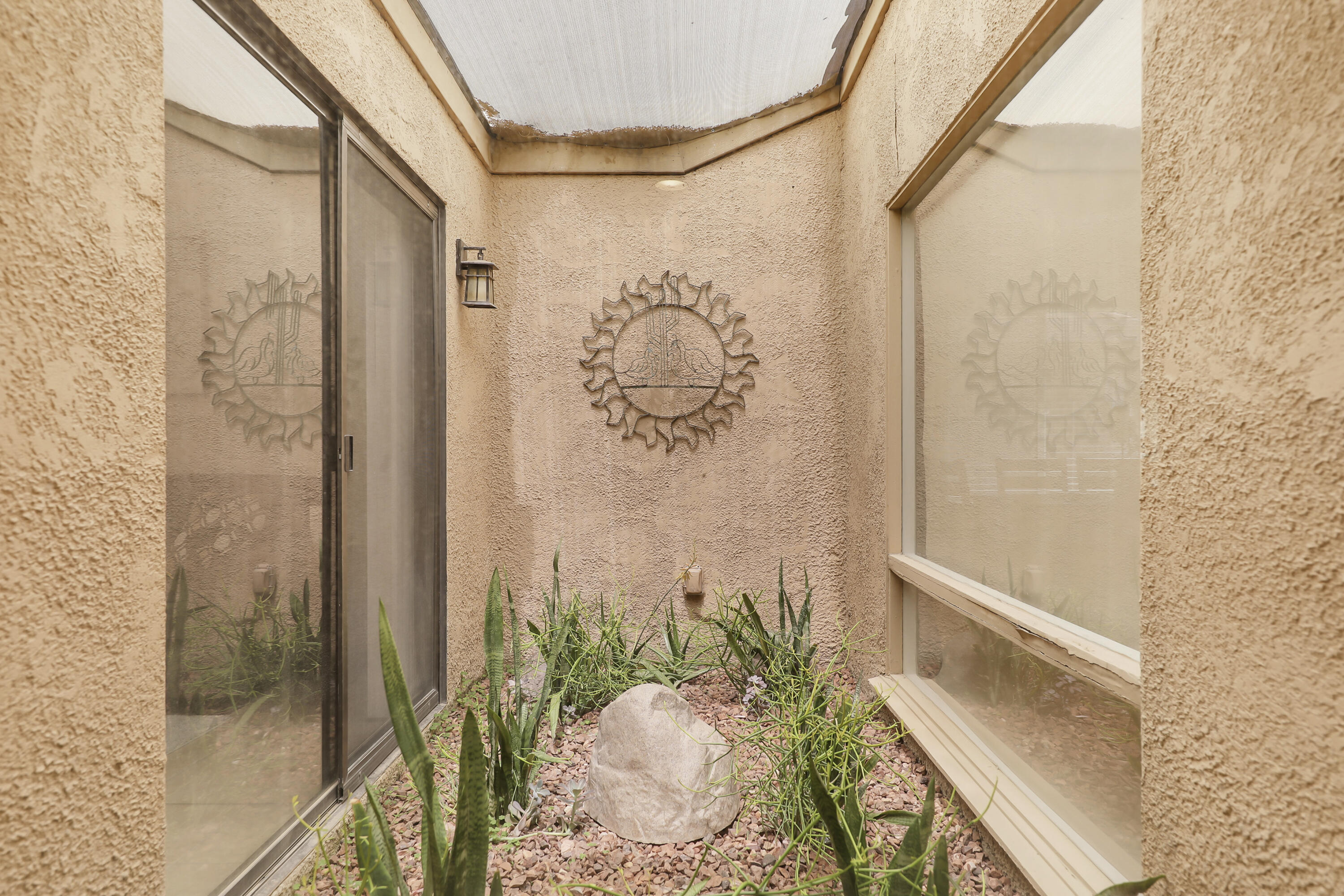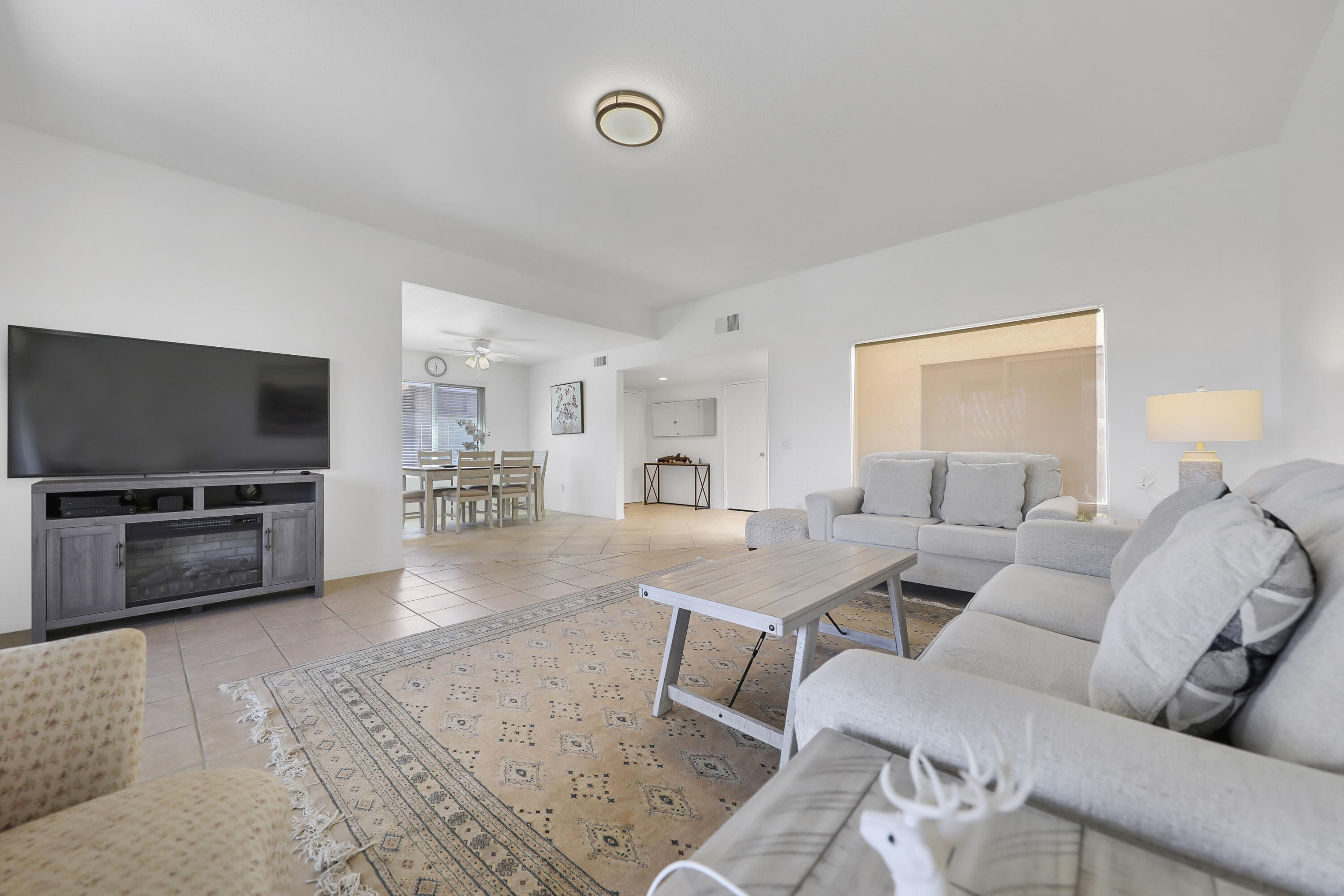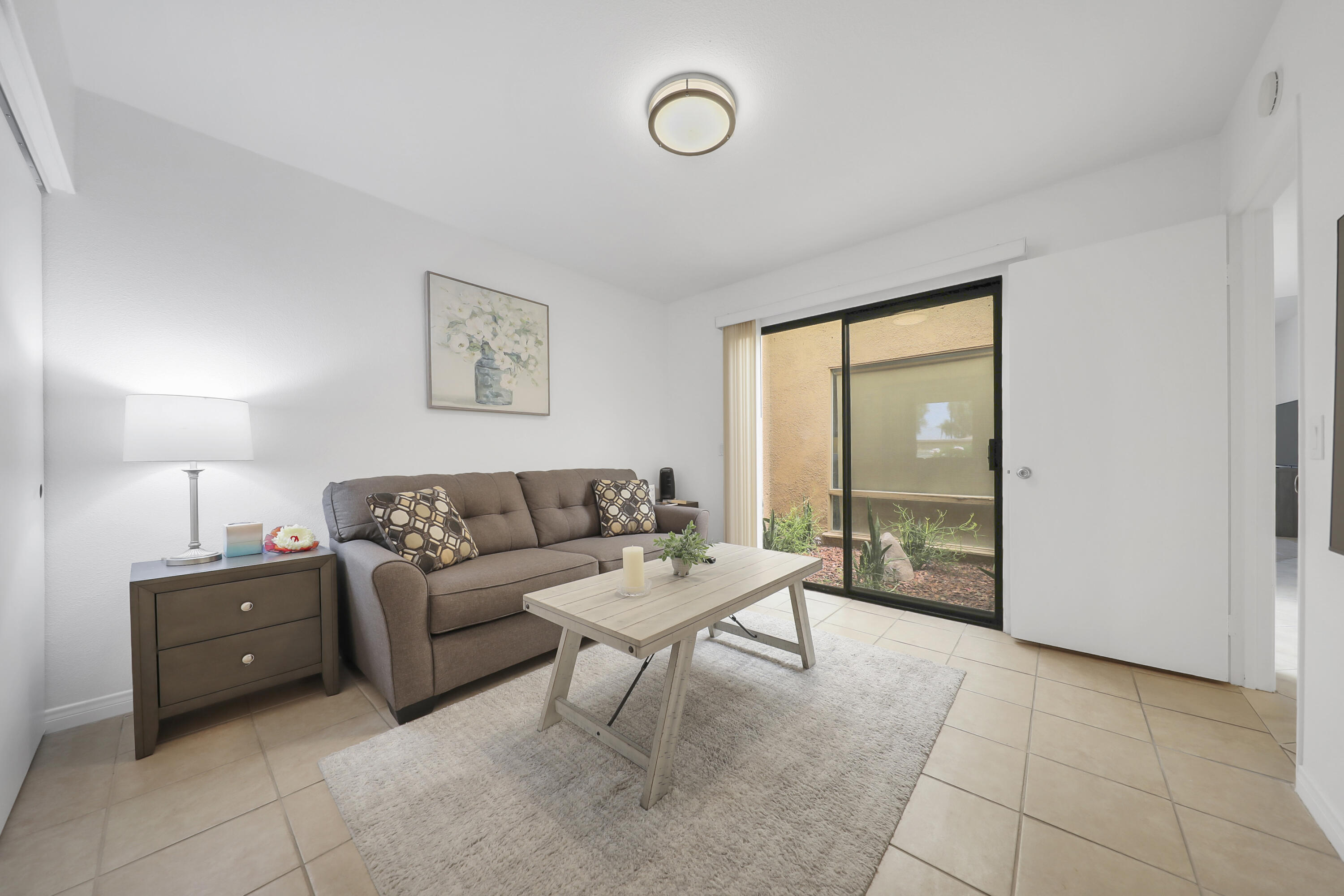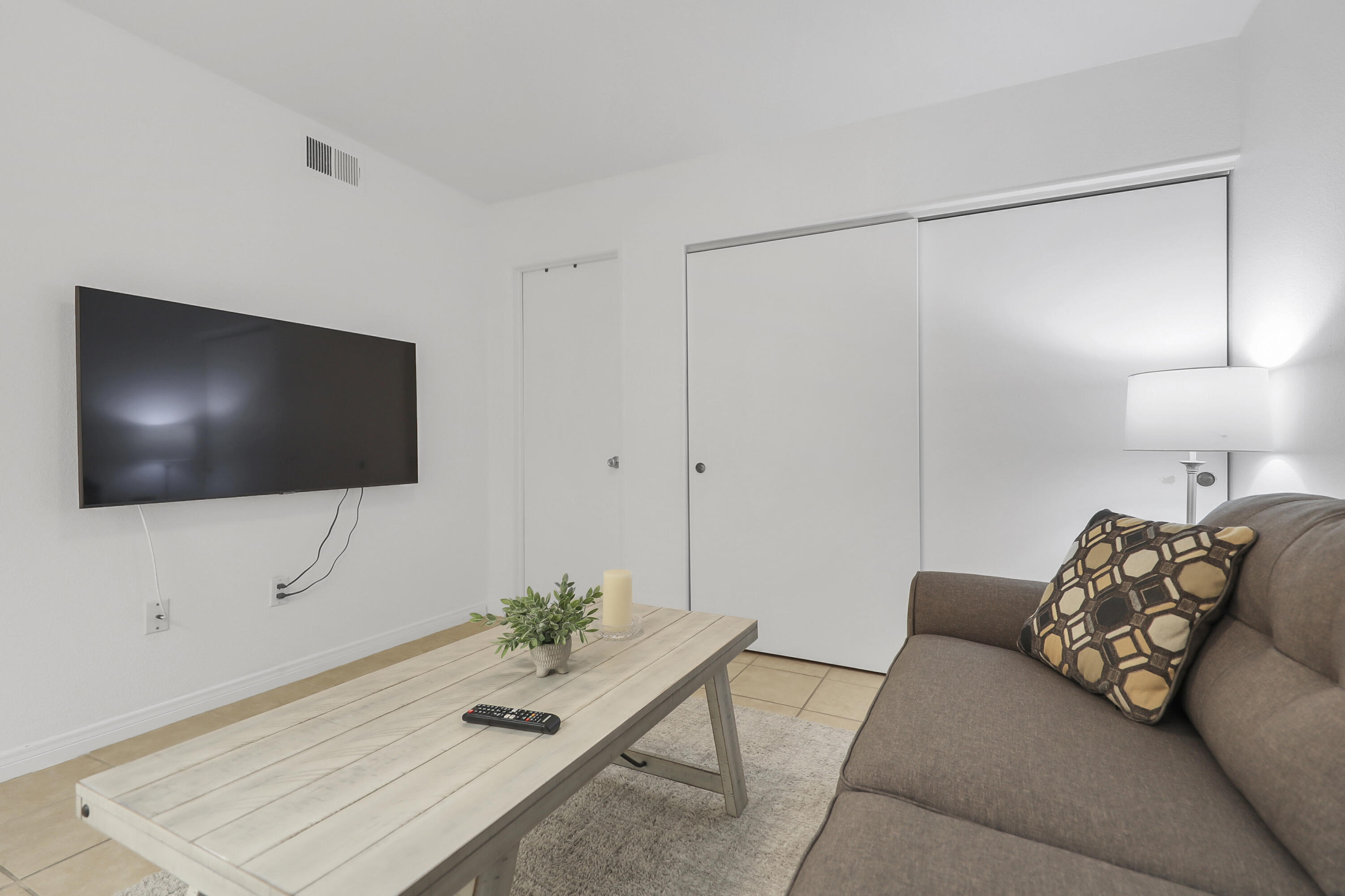 Step into your own private sanctuary, where lush green space offers a serene escape from the hustle and bustle. Situated away from the golf course, you'll enjoy uninterrupted peace without the worry of stray golf balls. Perfectly tailored for dog lovers, this haven welcomes furry friends to frolic and explore in safety and comfort. This beautifully remodeled home, completed last year, offers modern amenities and luxurious upgrades throughout. The kitchen features an open concept with the entry wall removed, new wood cabinets, quartz countertops, and stainless-steel appliances, including a sink and faucet. The two bathrooms have been totally remodeled to be handicap-friendly, ensuring comfort and accessibility. The home is equipped with all-new LED ceiling lights and fans, new plugs and switches, and new toilets. Enjoy the natural light from the all-new windows and sliding door, and the fresh look of new paint throughout. The bedrooms are furnished with a new bedroom set and a sofa bed, while the living room boasts new furniture, lighting, and a modern Persian handmade rug. Entertainment is a breeze with two new smart Samsung TVs and a new dining set. The outdoor space is perfect for gatherings, featuring a new outdoor dining set, BBQ, and new outdoor plants. The entryway is enhanced with a mirror and console table, and the atrium requires no maintenance. Additional upgrades include a new laundry sink, washer, and dryer, as well as a total garage remodeling. This home is a perfect blend of style, comfort, and functionality. The owner WILL negotiate new flooring throughout the condo at an acceptable offer.Interested in this Listing?