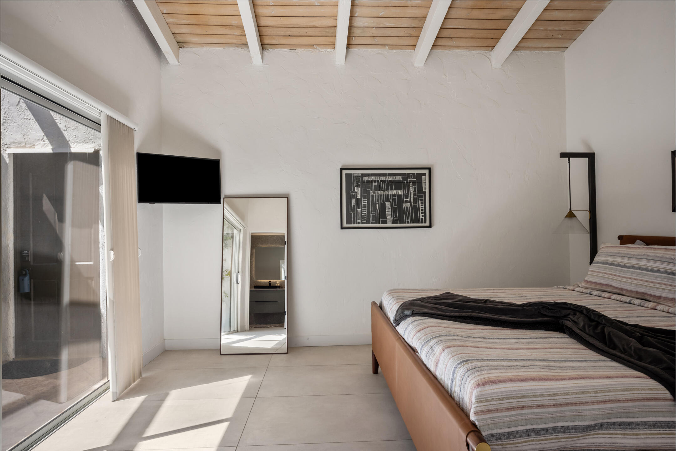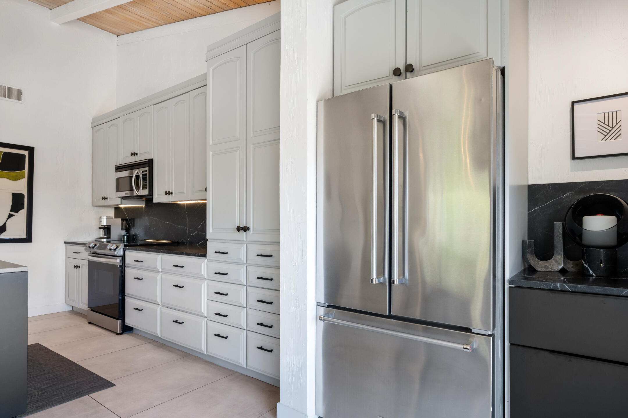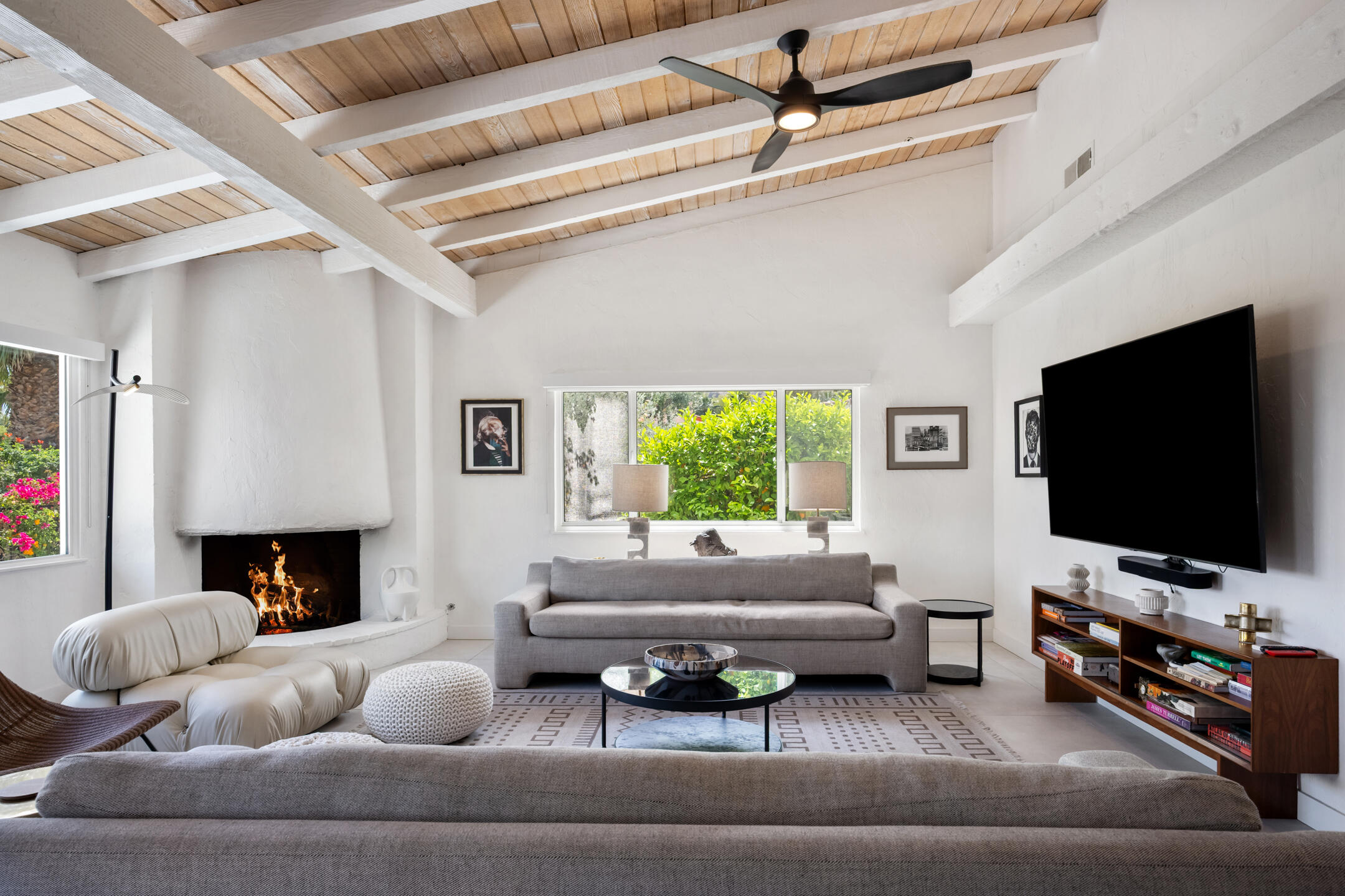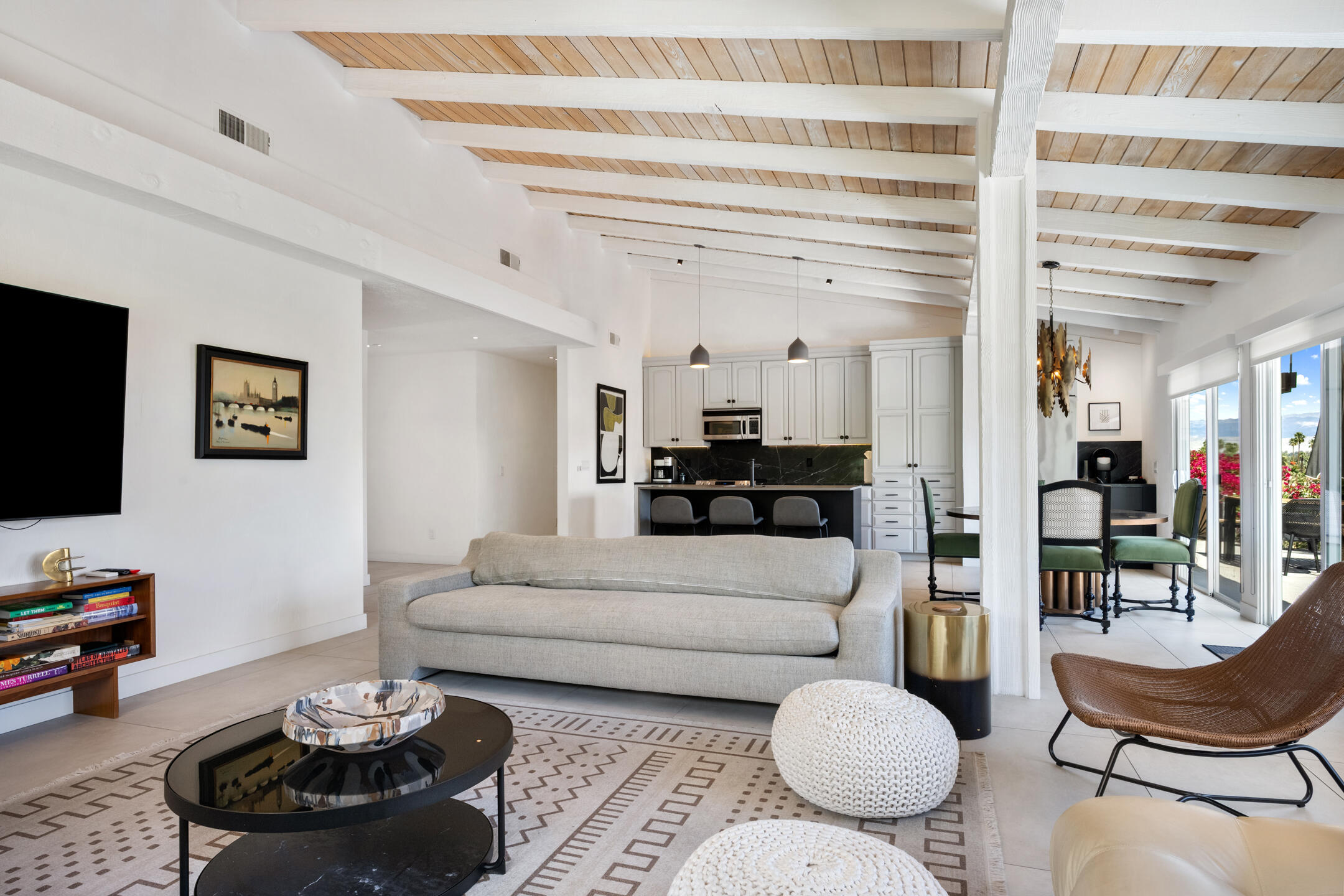Stunning 3 bed, 2.5 bath home in Thunderbird Villas gated community set above the valley floor, this beautiful home offers panoramic mountain views and exceptional curb appeal, featuring drought-resistant landscaping and a private courtyard. The spacious living room is designed with open beams, vaulted wood ceilings and an adobe-style fireplace, creating a welcoming atmosphere. It seamlessly flows into the kitchen, which is equipped with slab granite countertops, a breakfast bar, updated fixtures, stainless steel appliances, and an under-counter mounted stainless steel sink. The home includes three generously sized bedrooms, each with open beam ceilings. The primary bedroom offers a spa-like en-suite bathroom and access to a private patio. The additional bathrooms are modern and thoughtfully designed for comfort and convenience. Exit outside to the private rear patio and beautifully landscaped backyard, perfect for outdoor dining, entertaining, or relaxing while enjoying stunning views. The community pool is close by, and the HOA covers 24 hour guard-gated entry, cable, trash, landscaping, and access to community pools. This exceptional property offers a perfect blend of luxury, comfort, and convenience ideal for those seeking an elevated lifestyle.Home is close to Disneyland's Cotina Resort and Sunnylands garden. Adjacent to the famous Thunderbird Country Club. Net tiled floor, designer kitchen and shower room, new HVAC and furnace , open plan living space , vaulted ceilings, Landscaper gardens with landscaping built into HOA fee. Access to Thunderbird Heights and club through private path. Adjacent to stunning Abraham Hicks Trail. ***Furnishings available outside of escrow.***Interested in this Listing?