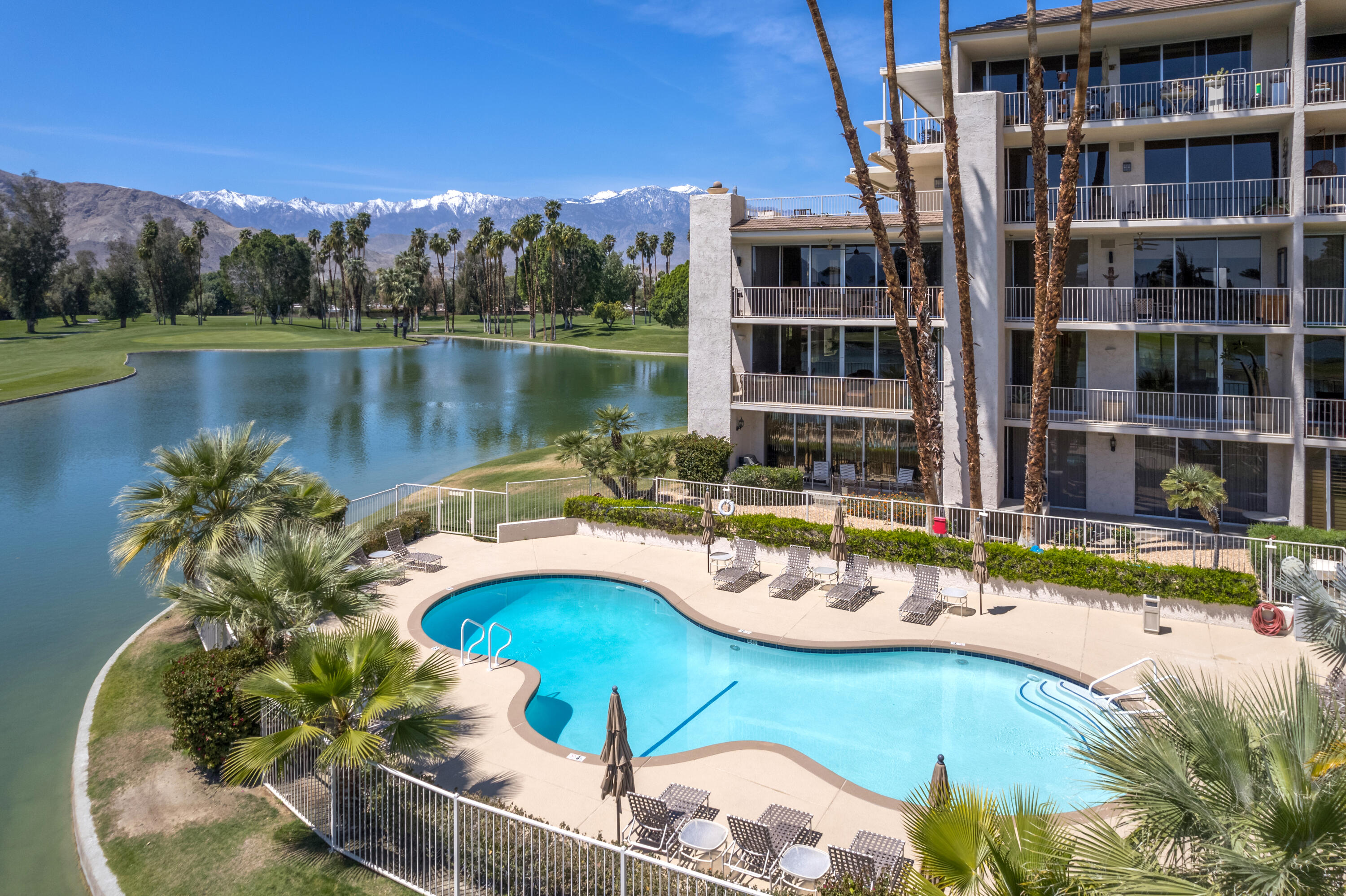 Prime Southern location overlooking the sparkling lake and majestic mountains. 'With a little imagination, this fabulous view, two-bedroom can be a showplace.' Desert Island is a unique high-rise condominium community on a lush green 25-acre island, surrounded by a sparkling lake and an immaculate 18-hole championship golf course. Homeowners enjoy the open park-like grounds with walking paths, fruit trees, benches, tennis and pickleball courts, heated swimming pools and spas, pedal boats, fishing, and 24-hour guard gate entry. HOA monthly dues include most utilities, cable TV, and internet. Buyer to verify square footage.Interested in this Listing?