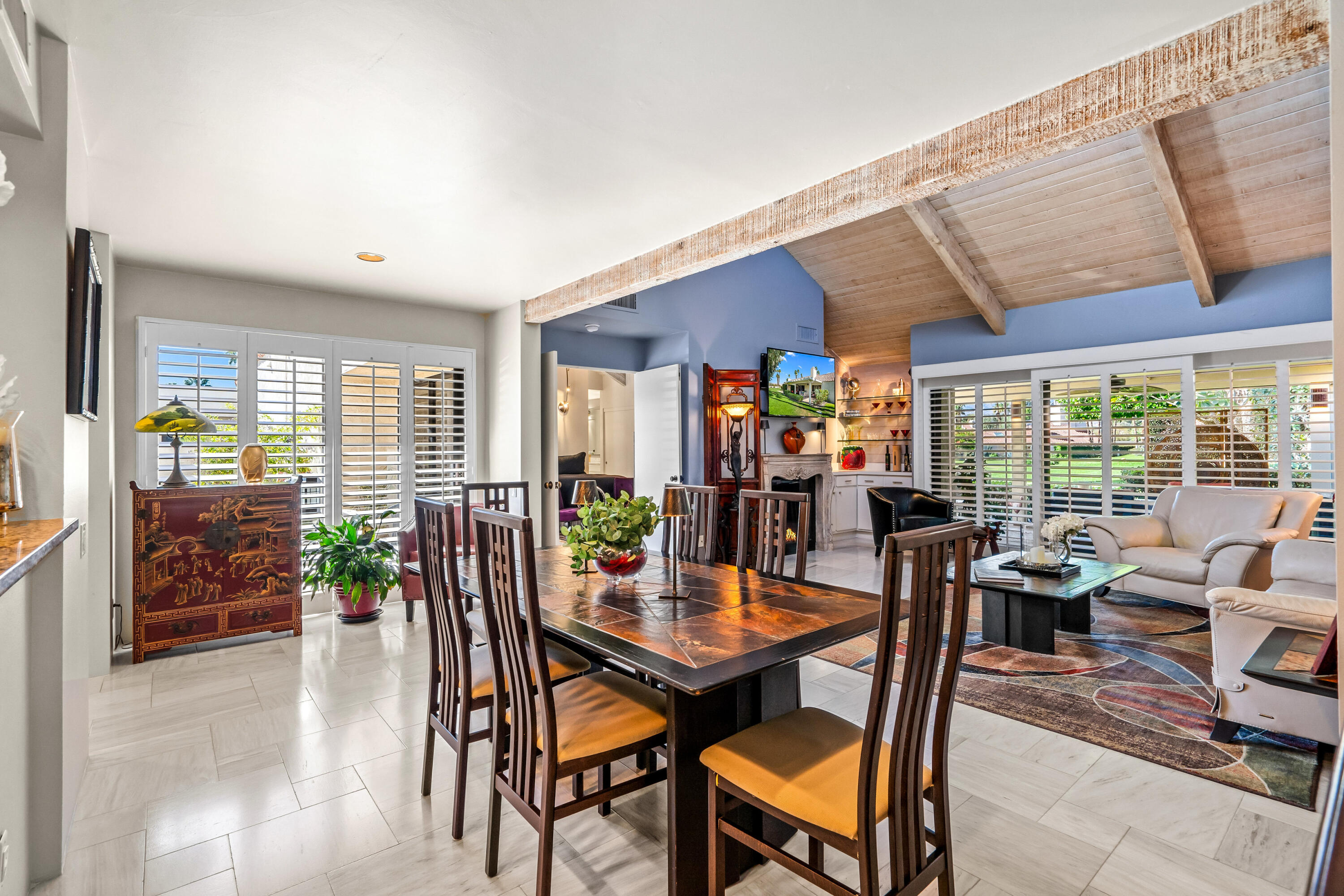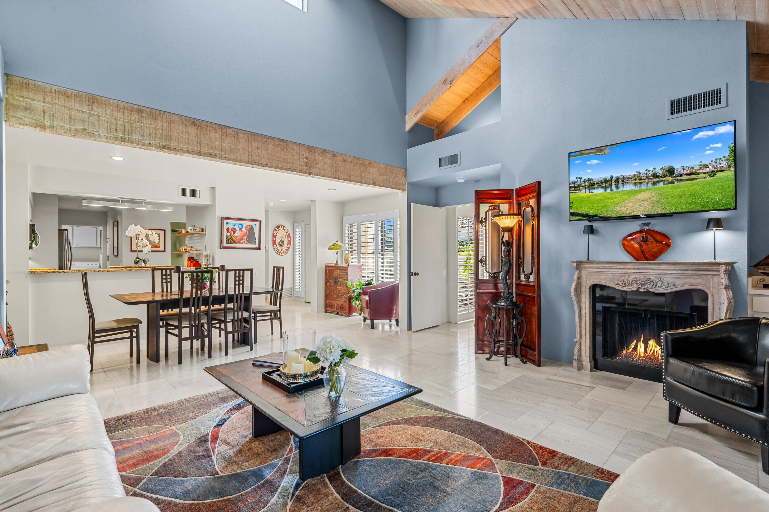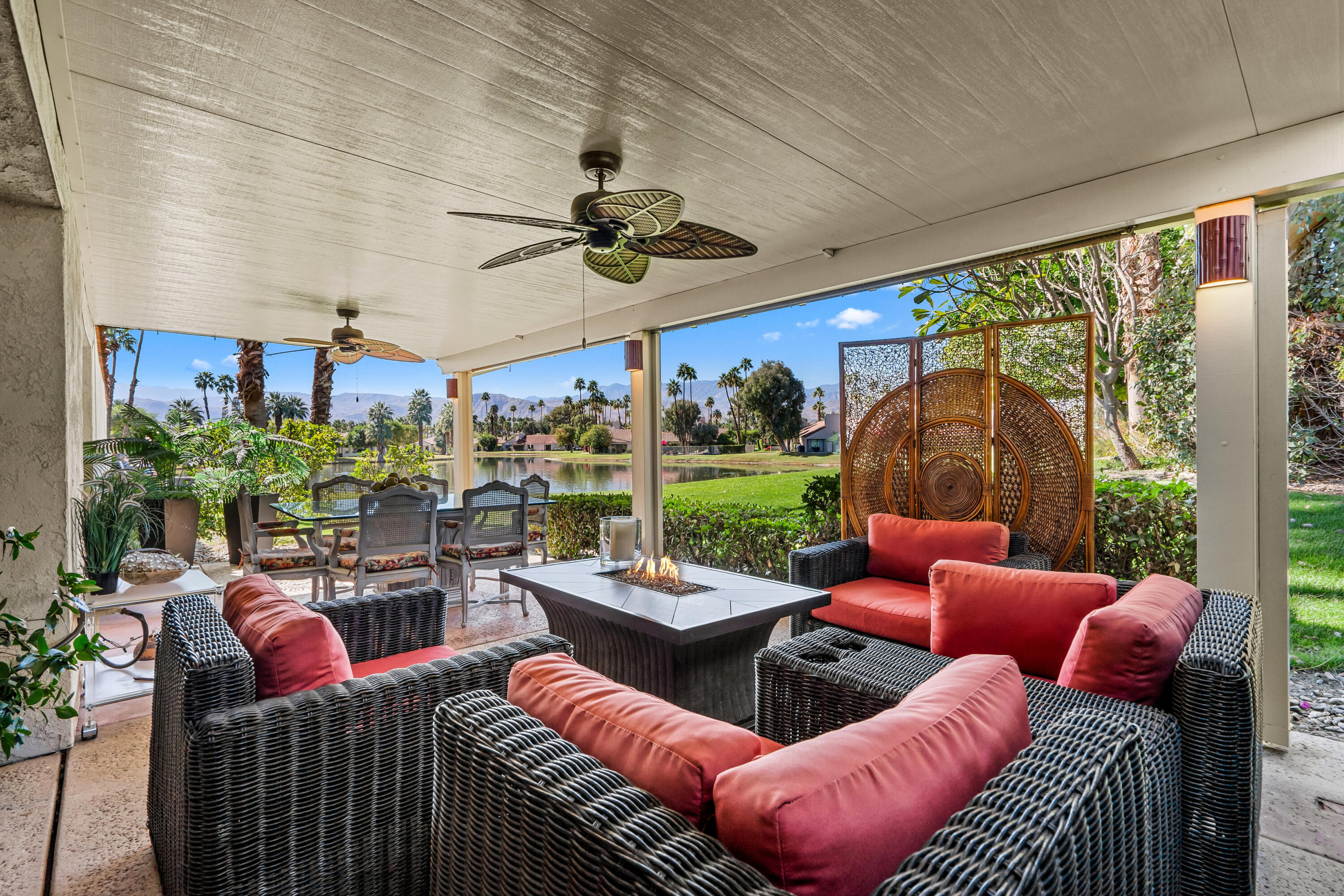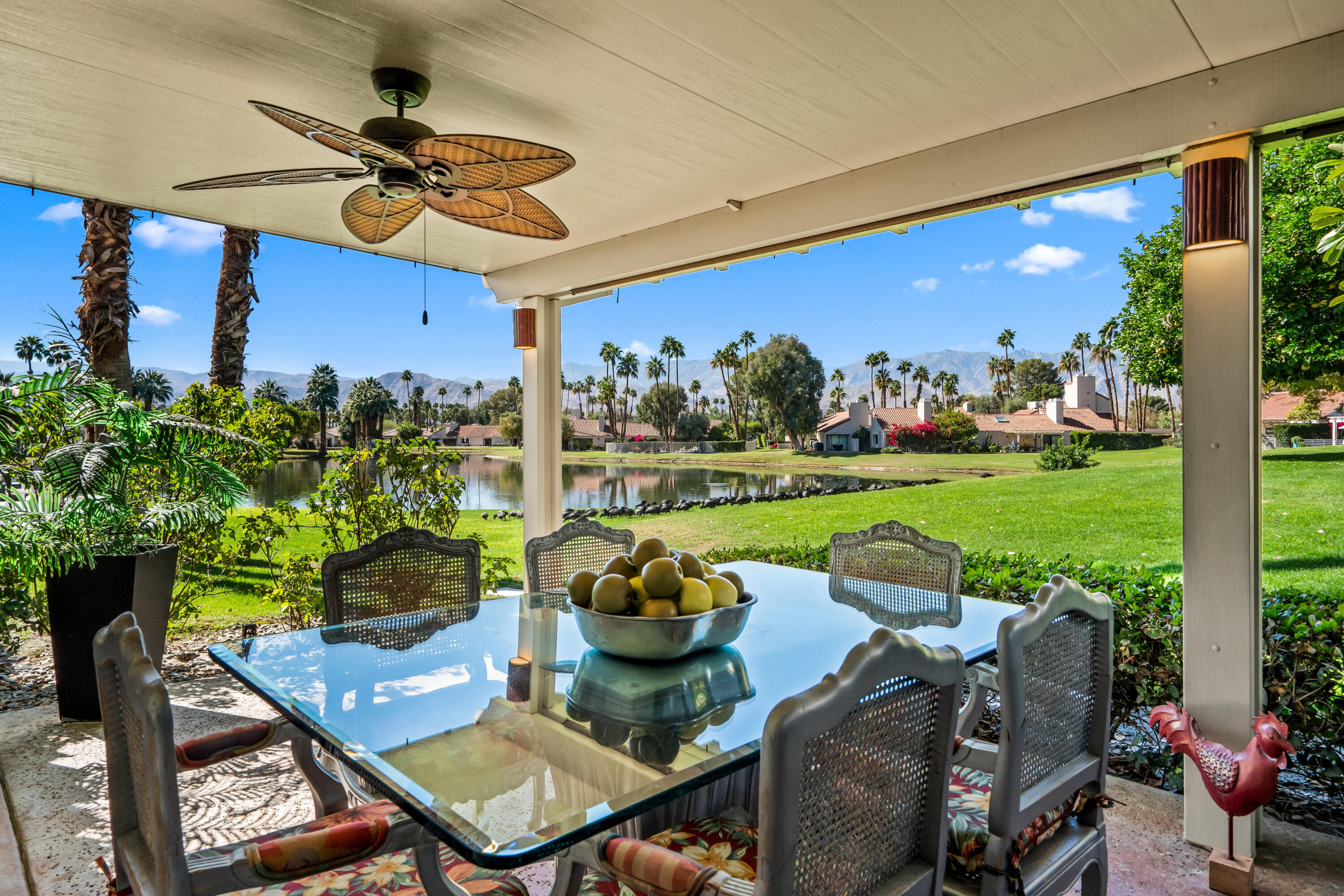 Meticulously cared for by full-time homeowner, this residence showcases exceptional pride of ownership and a sense of warmth and elegance that's felt throughout. Rare & Unmatched Lake and Mountain Views | Mission Hills Country Club | Now $480,000!An incredible opportunity awaits! This highly sought-after Tennis Villa at Mission Hills Country Club has just been attractively repriced to $480,000, offering outstanding value for one of the community's most scenic locations. Originally listed at $550,000, the motivated seller is relocating out of the area, creating a unique chance for a savvy buyer.Set against a backdrop of rare, breathtaking lake and mountain views, this peaceful retreat showcases custom brushed marble floors in an elegant Leon pattern, soaring vaulted wood ceilings, and a dual-sided fireplace in the spacious open-concept great room. The primary suite offers a spa-like experience with marble countertops, floating mirrors, a soaking tub, an easy-entry rain shower with mosaic tile flooring, and a dramatic floor-to-ceiling marble accent wall.Additional upgrades include newer fixtures, faucets, and lighting, plus a 4-year-old HVAC system for added comfort. Outdoor living shines on the oversized private patio, featuring a custom alumawood pergola with dimmable lighting, shades, and misters, perfect for relaxing and taking in the remarkable views.Residents enjoy five pools and spas with updated furnishings, and the two-car garage is just steps away.HOA dues include cable and Wi-Fi through Spectrum, and the land lease has been extended through 2121 a significant added value. The home is offered furnished per inventory, providing an easy, turnkey transition.Rarely does a villa in such a prime location come available at this price don't miss this exceptional offering in Mission Hills Country Club!Interested in this Listing?