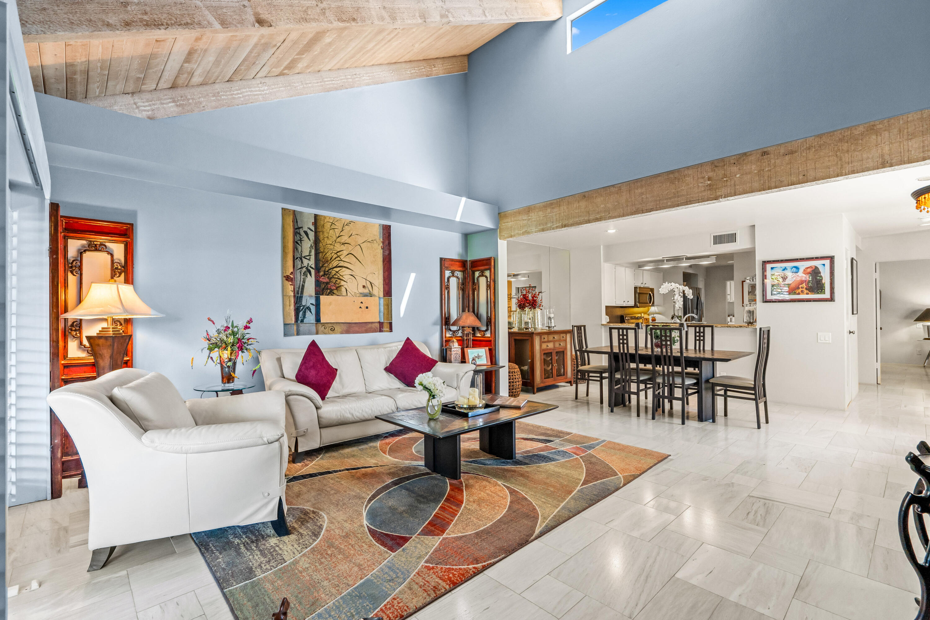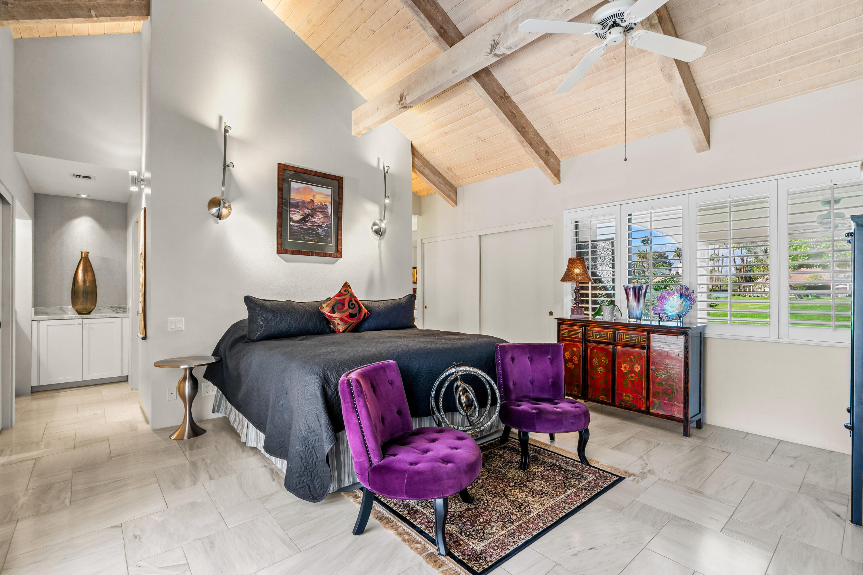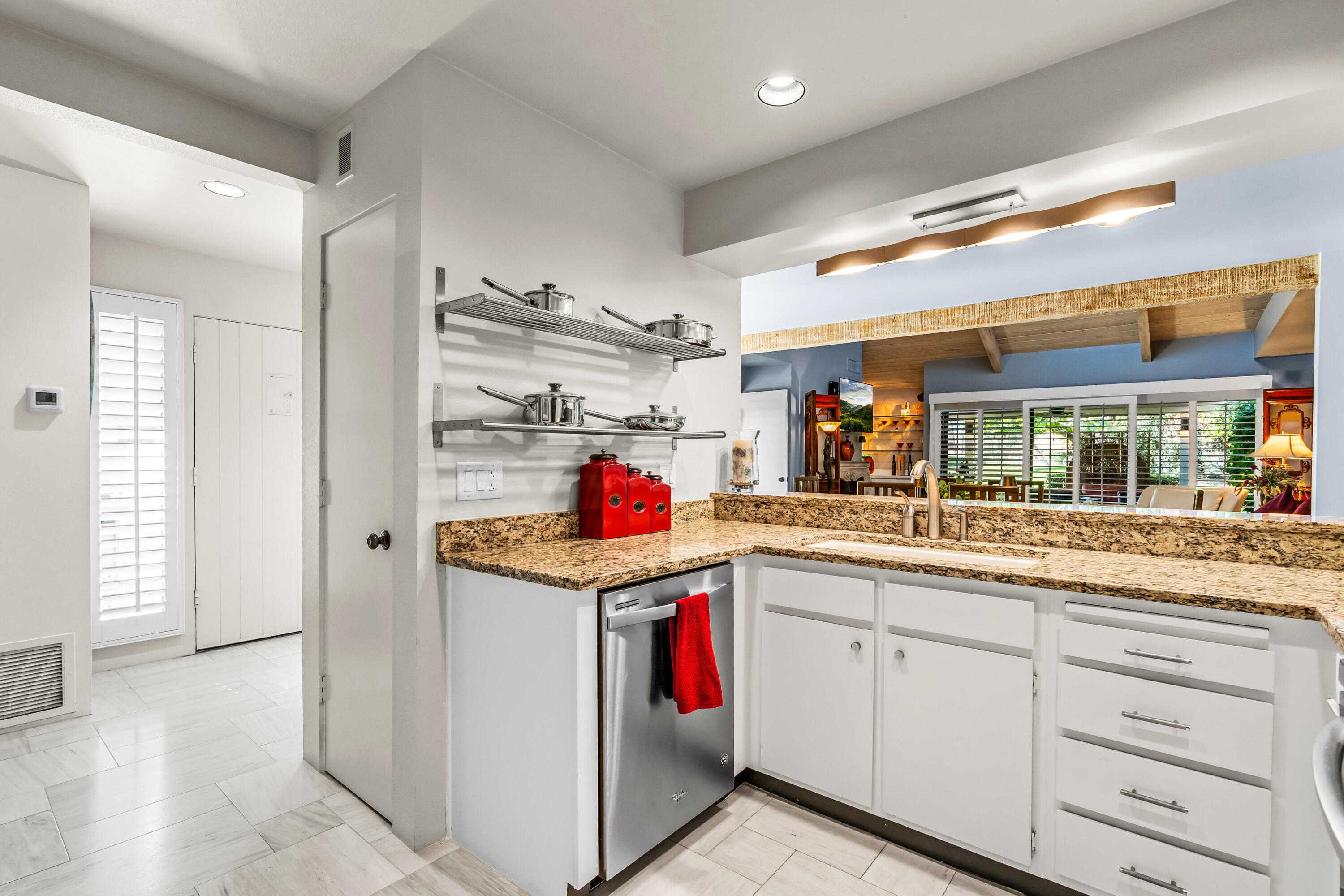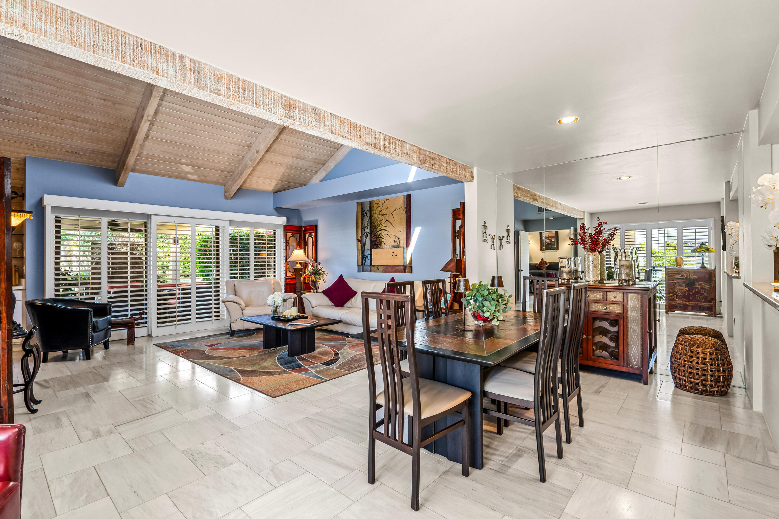 Meticulously cared for by full-time homeowner, this residence showcases exceptional pride of ownership and a sense of warmth and elegance that's felt throughout. Rare & Unmatched Lake and Mountain Views | Mission Hills Country Club | Now $480,000!An incredible opportunity awaits! This highly sought-after Tennis Villa at Mission Hills Country Club has just been attractively repriced to $480,000, offering outstanding value for one of the community's most scenic locations. Originally listed at $550,000, the motivated seller is relocating out of the area, creating a unique chance for a savvy buyer.Set against a backdrop of rare, breathtaking lake and mountain views, this peaceful retreat showcases custom brushed marble floors in an elegant Leon pattern, soaring vaulted wood ceilings, and a dual-sided fireplace in the spacious open-concept great room. The primary suite offers a spa-like experience with marble countertops, floating mirrors, a soaking tub, an easy-entry rain shower with mosaic tile flooring, and a dramatic floor-to-ceiling marble accent wall.Additional upgrades include newer fixtures, faucets, and lighting, plus a 4-year-old HVAC system for added comfort. Outdoor living shines on the oversized private patio, featuring a custom alumawood pergola with dimmable lighting, shades, and misters, perfect for relaxing and taking in the remarkable views.Residents enjoy five pools and spas with updated furnishings, and the two-car garage is just steps away.HOA dues include cable and Wi-Fi through Spectrum, and the land lease has been extended through 2121 a significant added value. The home is offered furnished per inventory, providing an easy, turnkey transition.Rarely does a villa in such a prime location come available at this price don't miss this exceptional offering in Mission Hills Country Club!Interested in this Listing?