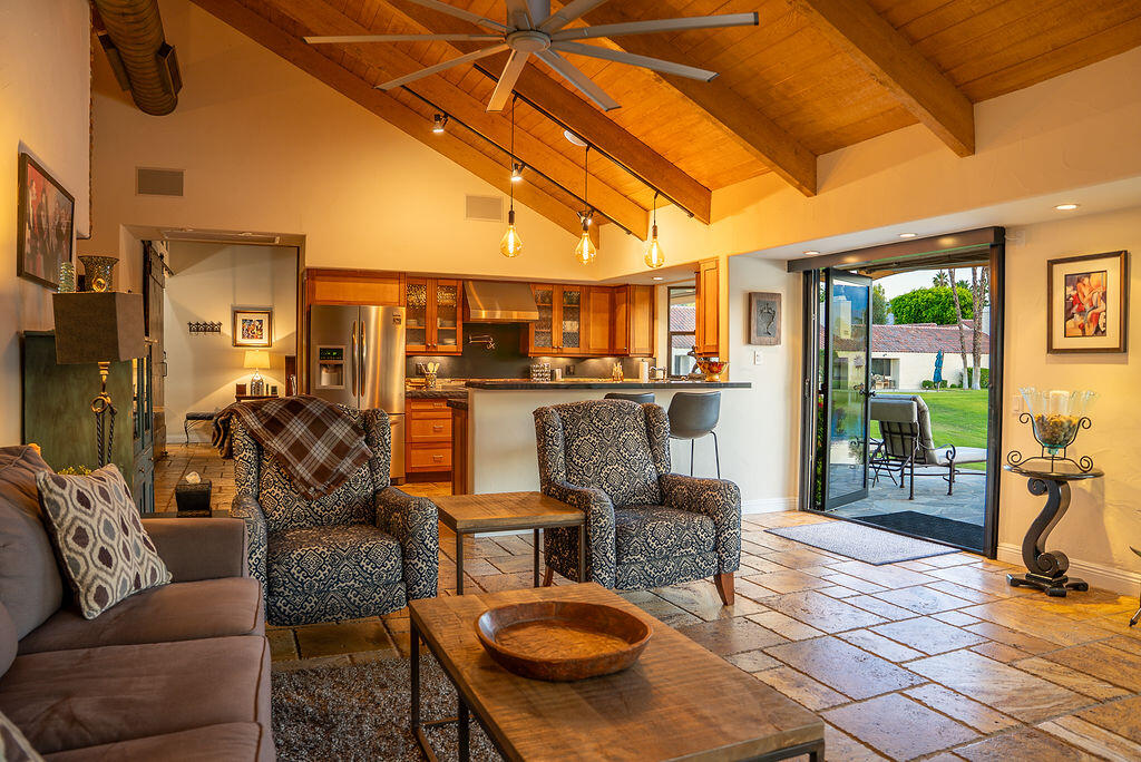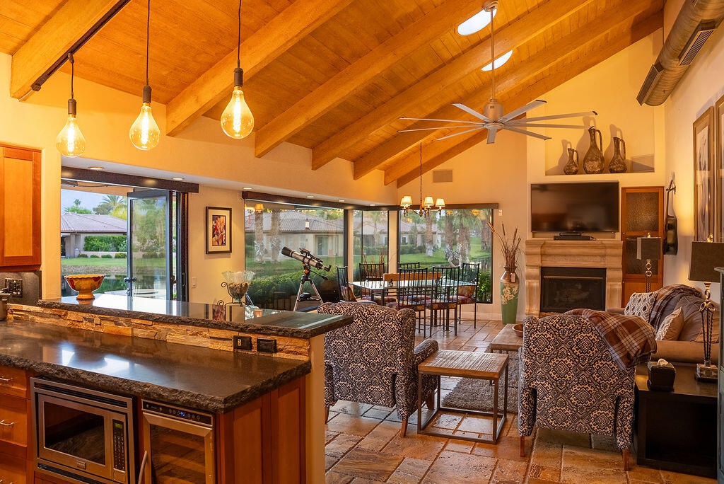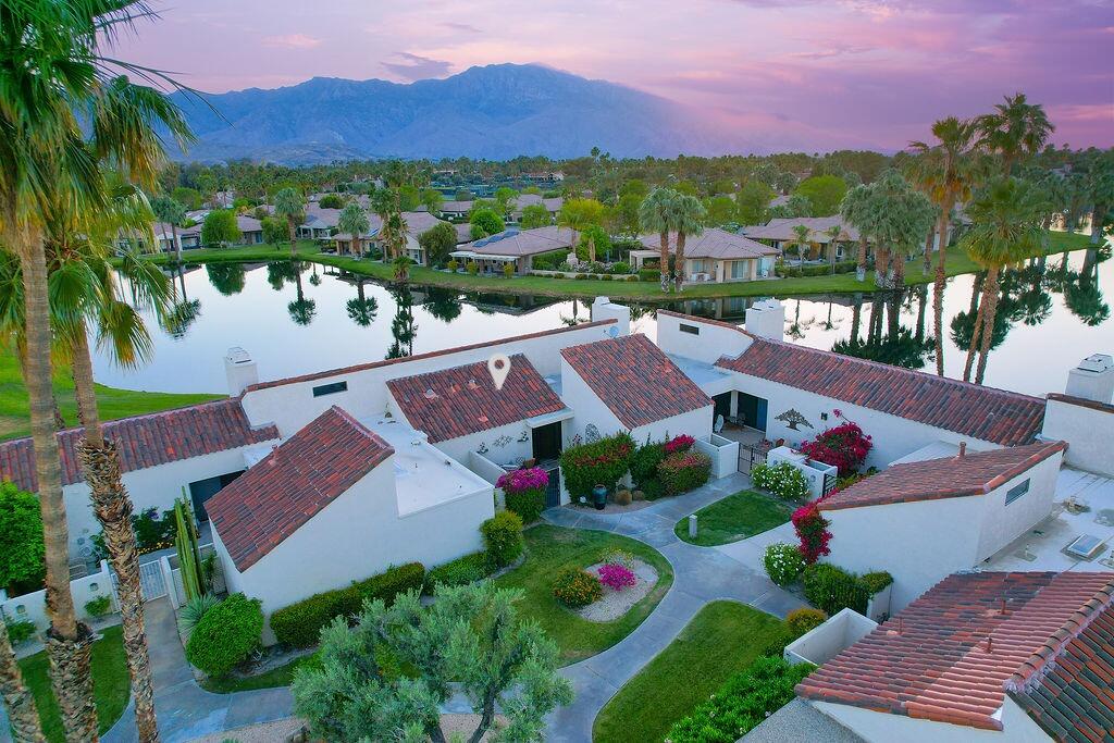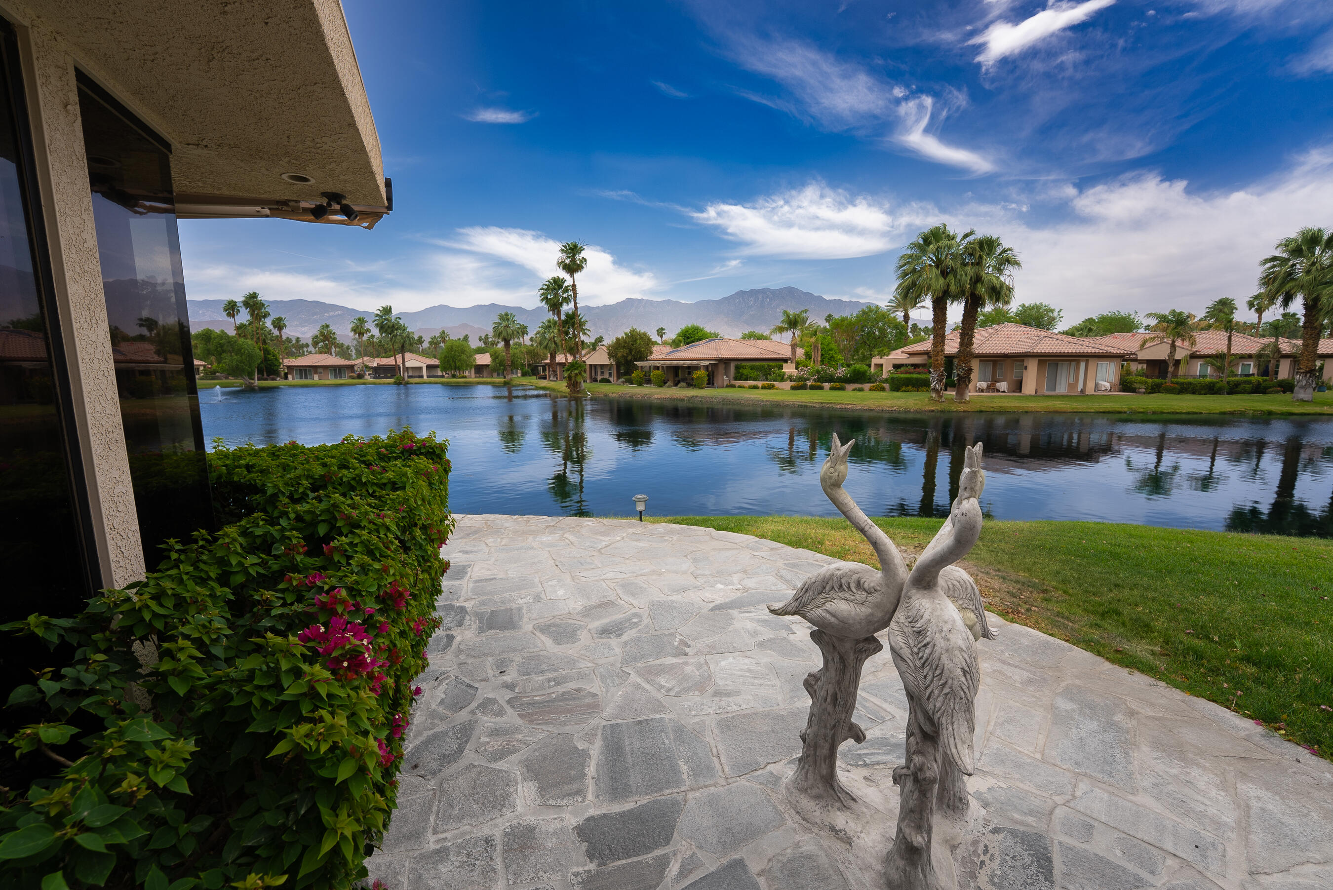 Step into this beautifully updated loft-style condo located in the heart of Mission Hills Country Club. Enjoy sweeping, unobstructed views of the Santa Rosa and San Jacinto Mountains from every room, along with the serene backdrop of a tranquil lake. The expansive wraparound patio is perfect for entertaining, featuring elegant natural stone finishes and a fully equipped Viking outdoor kitchen. Inside, you'll find a dramatic stone-accented entry, travertine stone flooring, gourmet kitchen with slab granite countertops, newer stainless-steel appliances, exposed ductwork, and soaring wood-beamed ceilings. This is a rare chance to own an architecturally distinct property that combines luxury, comfort, and jaw-dropping views.Interested in this Listing?