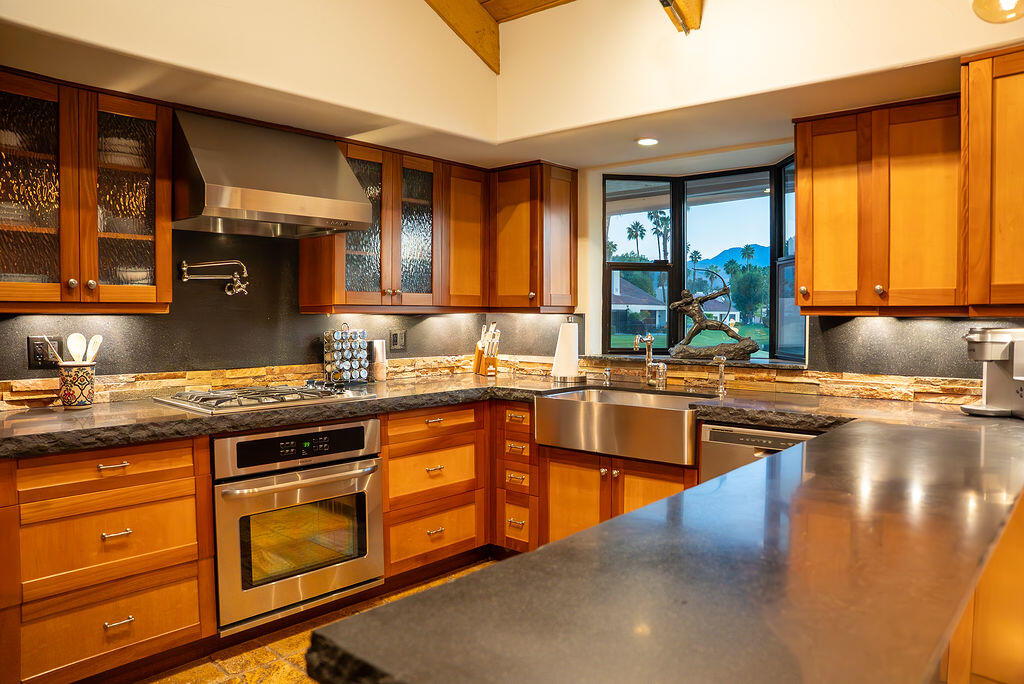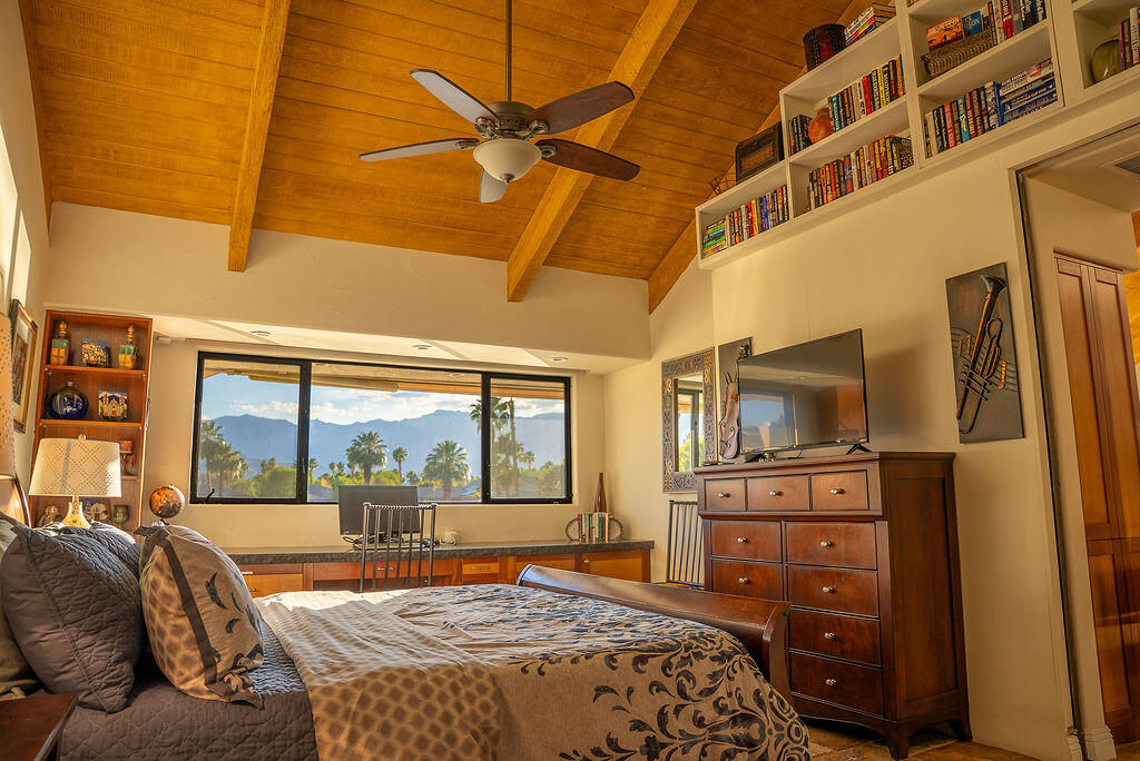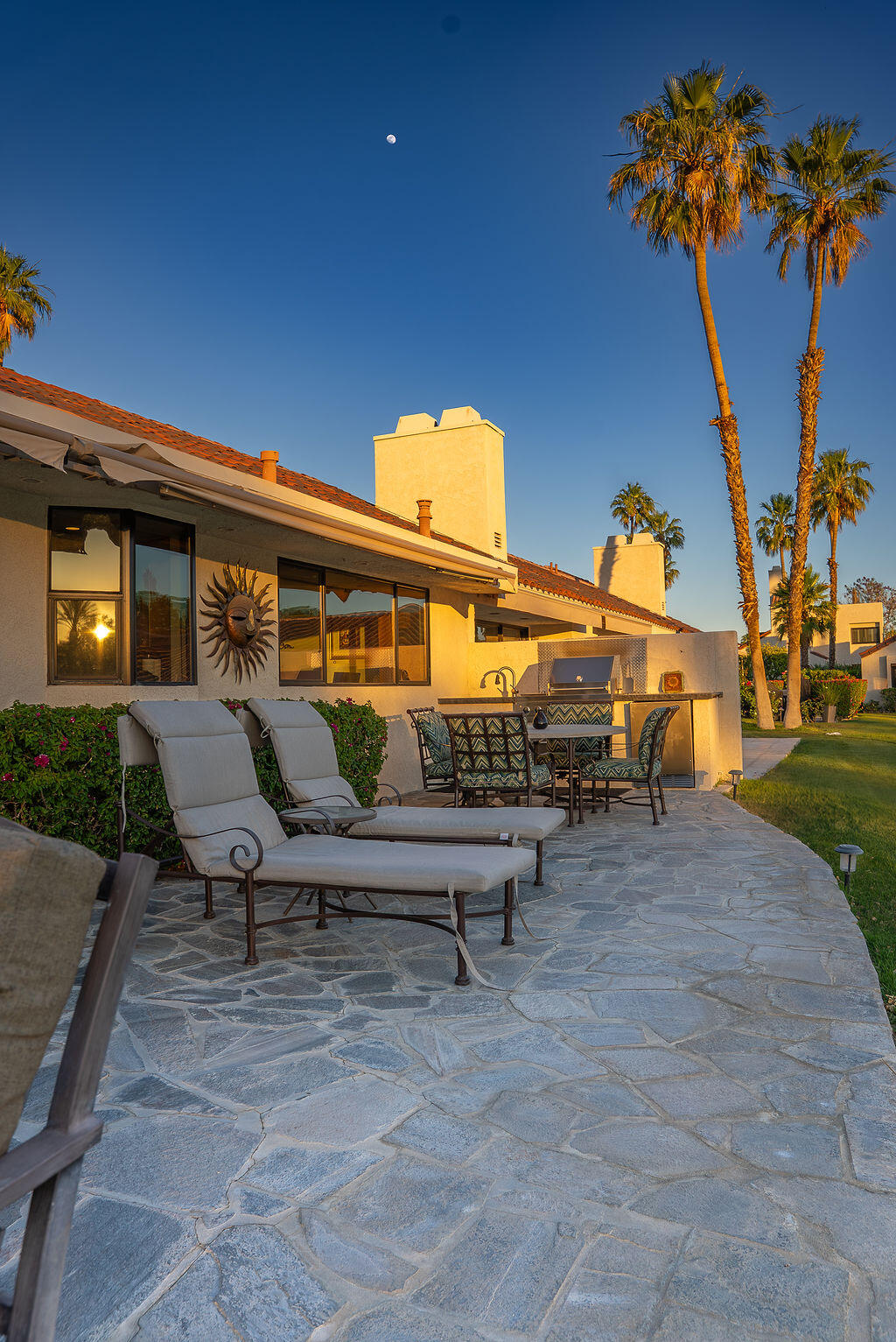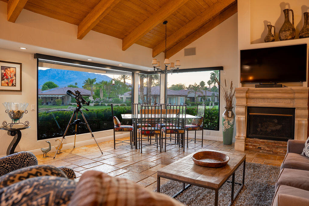 Step into this beautifully updated loft-style condo located in the heart of Mission Hills Country Club. Enjoy sweeping, unobstructed views of the Santa Rosa and San Jacinto Mountains from every room, along with the serene backdrop of a tranquil lake. The expansive wraparound patio is perfect for entertaining, featuring elegant natural stone finishes and a fully equipped Viking outdoor kitchen. Inside, you'll find a dramatic stone-accented entry, travertine stone flooring, gourmet kitchen with slab granite countertops, newer stainless-steel appliances, exposed ductwork, and soaring wood-beamed ceilings. This is a rare chance to own an architecturally distinct property that combines luxury, comfort, and jaw-dropping views.Interested in this Listing?