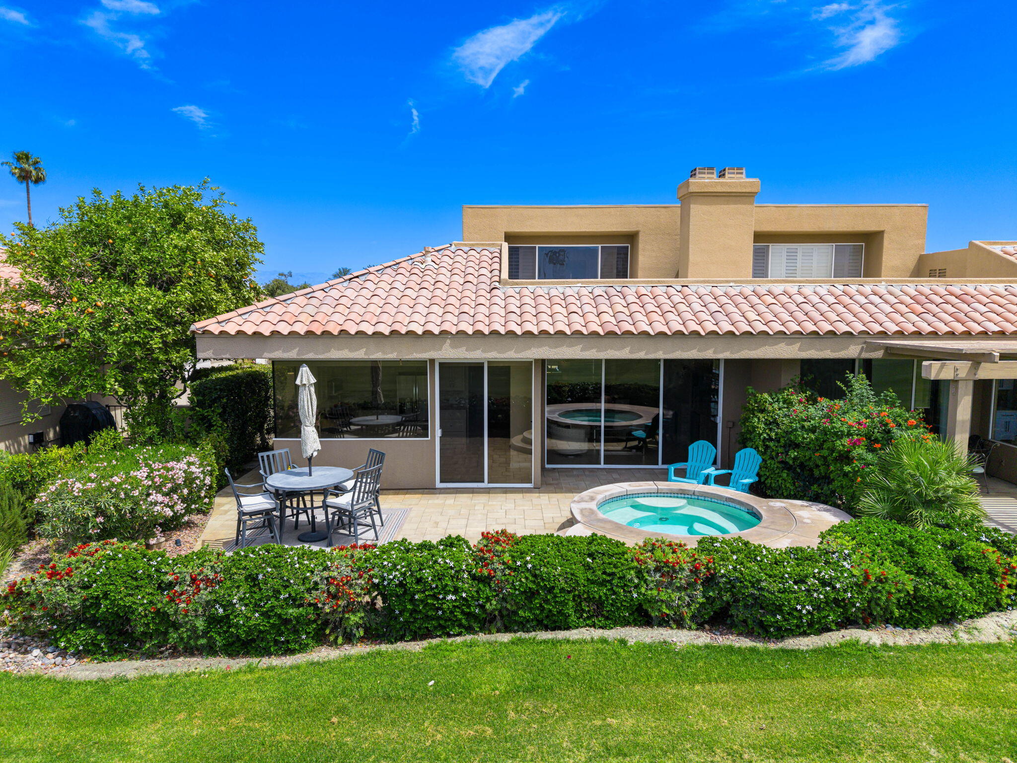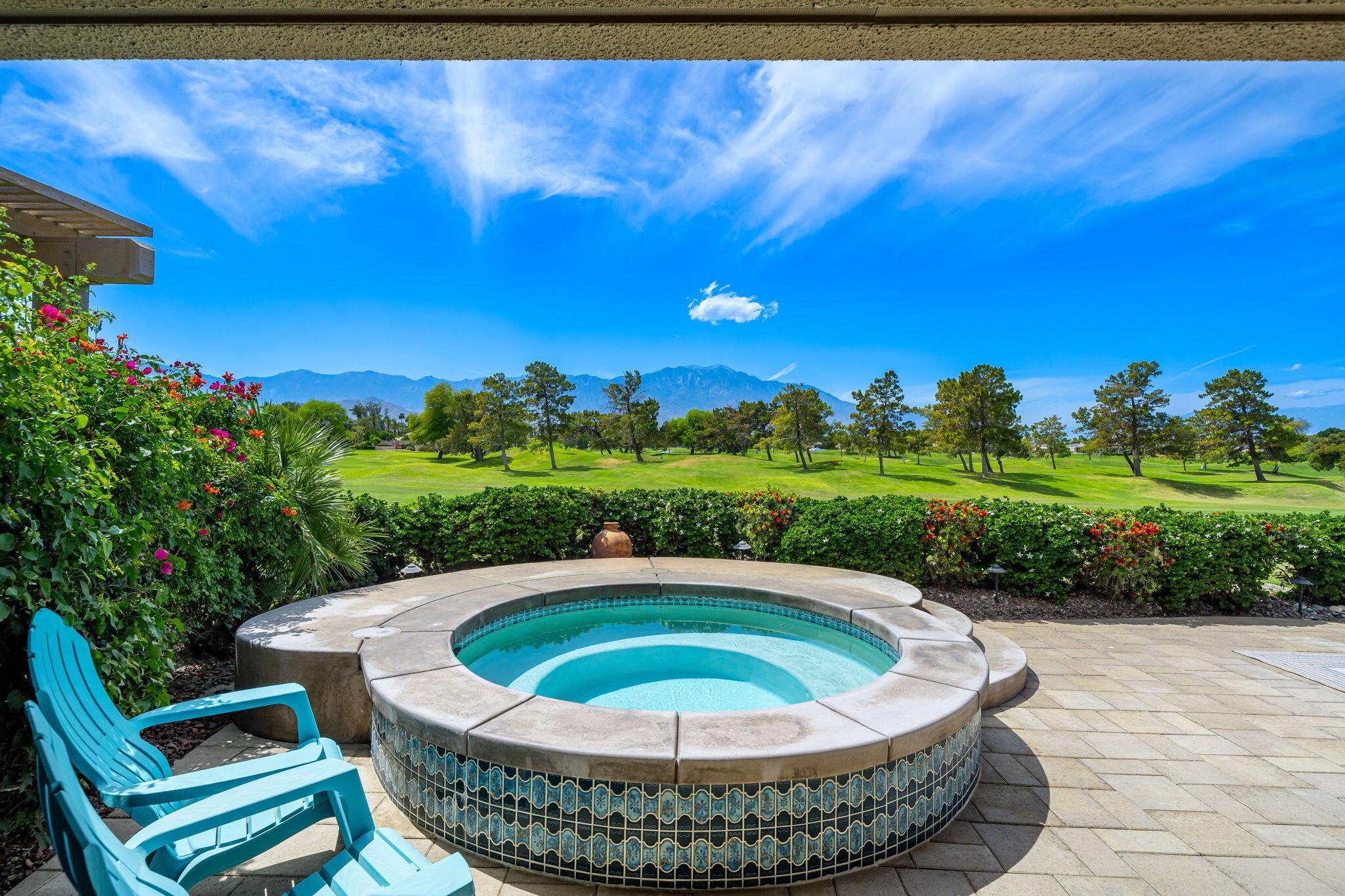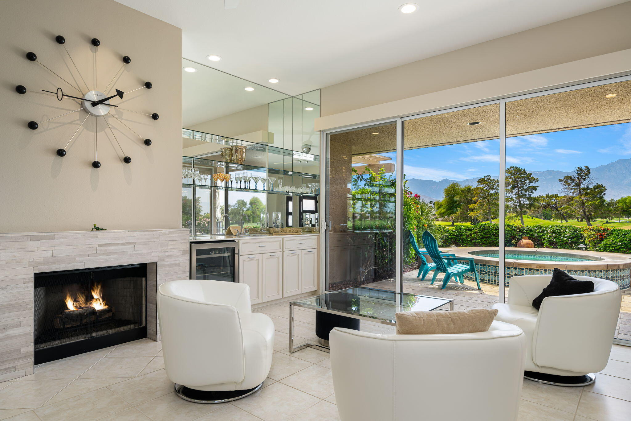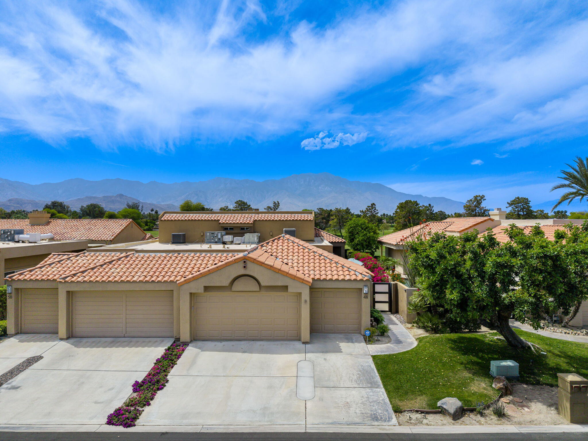Welcome to 48 Colonial Drive where the private gated courtyard with mature desert landscaping begins your tour of this home. The San Jacinto mountains and fairway views greet you as you enter in this upgraded, contemporary home. The Great Room features a fireplace, wet bar, custom built-ins and walls of glass that highlight the mountain views. Enter the kitchen with counter seating, quartz countertops and stainless appliances and slider access to the terrace. There is a separate living space to enjoy media entertaining or relaxing with a good book. A Primary Suite on the main level includes slider access to the courtyard, custom closet built-ins and ensuite bath with dual vanities, quartz countertops, custom cabinetry and dual shower. A second bedroom and ensuite bath provide flexible space for guests or an office, den or gym. Upstairs is a second Primary Suite with stunning mountain views, a great expansive retreat complete with bath featuring dual vanities, tub, shower and walk-in closet. The backyard terrace overlooks the golf course with mountain views and a private spa. HOA included cable and trash. Fee land. Call for your private showing today!Interested in this Listing?