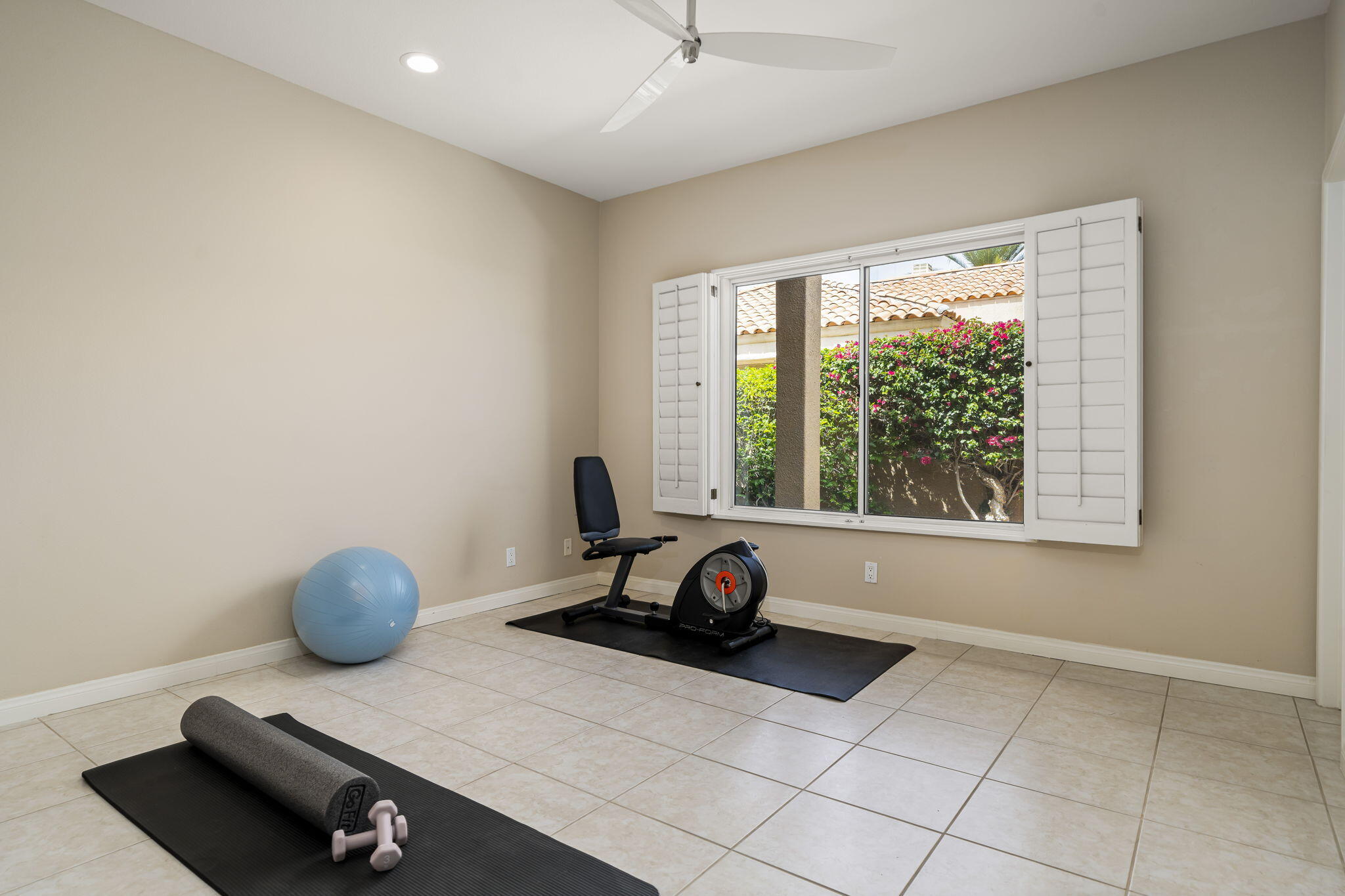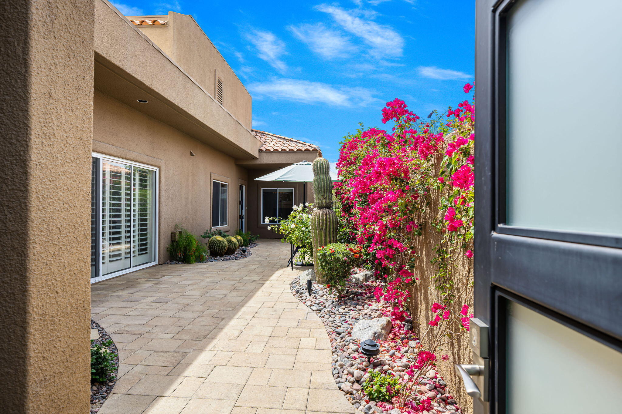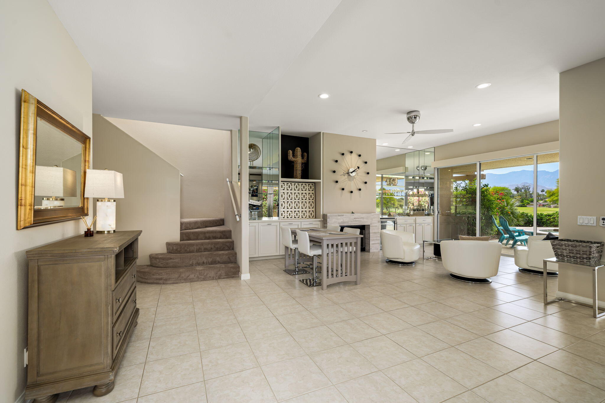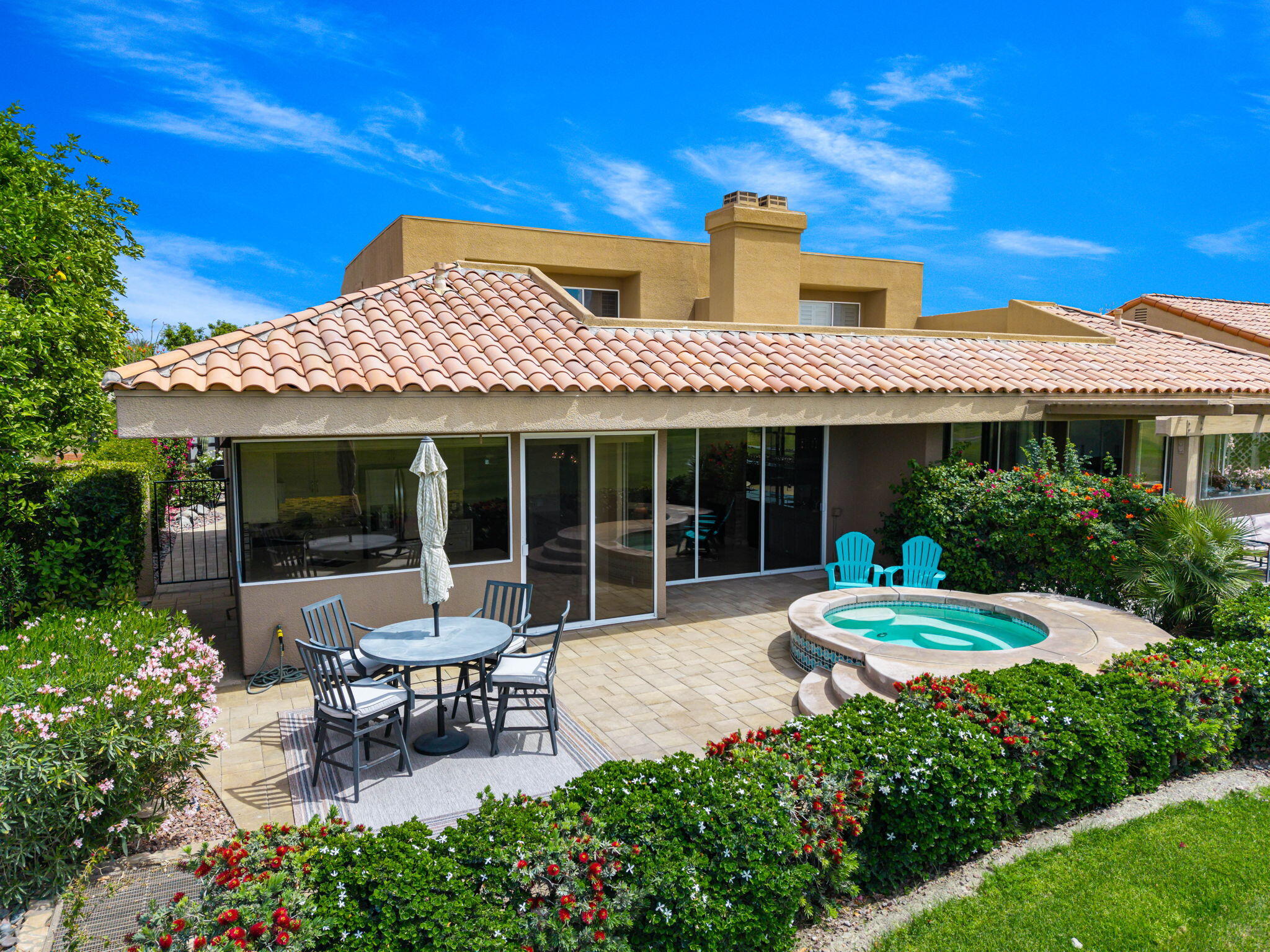 Welcome to 48 Colonial Drive where the private gated courtyard with mature desert landscaping begins your tour of this home. The San Jacinto mountains and fairway views greet you as you enter in this upgraded, contemporary home. The Great Room features a fireplace, wet bar, custom built-ins and walls of glass that highlight the mountain views. Enter the kitchen with counter seating, quartz countertops and stainless appliances and slider access to the terrace. There is a separate living space to enjoy media entertaining or relaxing with a good book. A Primary Suite on the main level includes slider access to the courtyard, custom closet built-ins and ensuite bath with dual vanities, quartz countertops, custom cabinetry and dual shower. A second bedroom and ensuite bath provide flexible space for guests or an office, den or gym. Upstairs is a second Primary Suite with stunning mountain views, a great expansive retreat complete with bath featuring dual vanities, tub, shower and walk-in closet. The backyard terrace overlooks the golf course with mountain views and a private spa. HOA included cable and trash. Fee land. Call for your private showing today!Interested in this Listing?